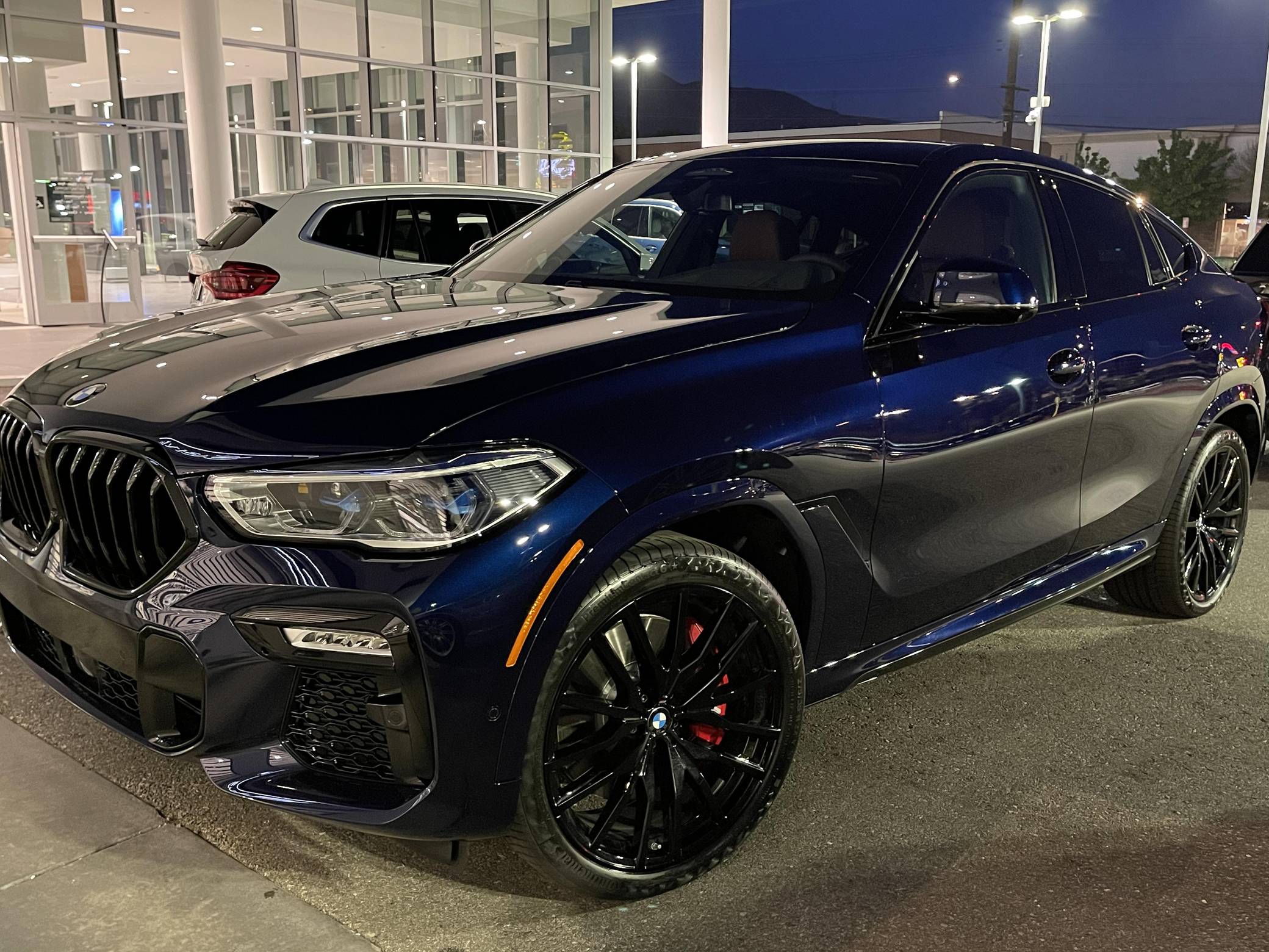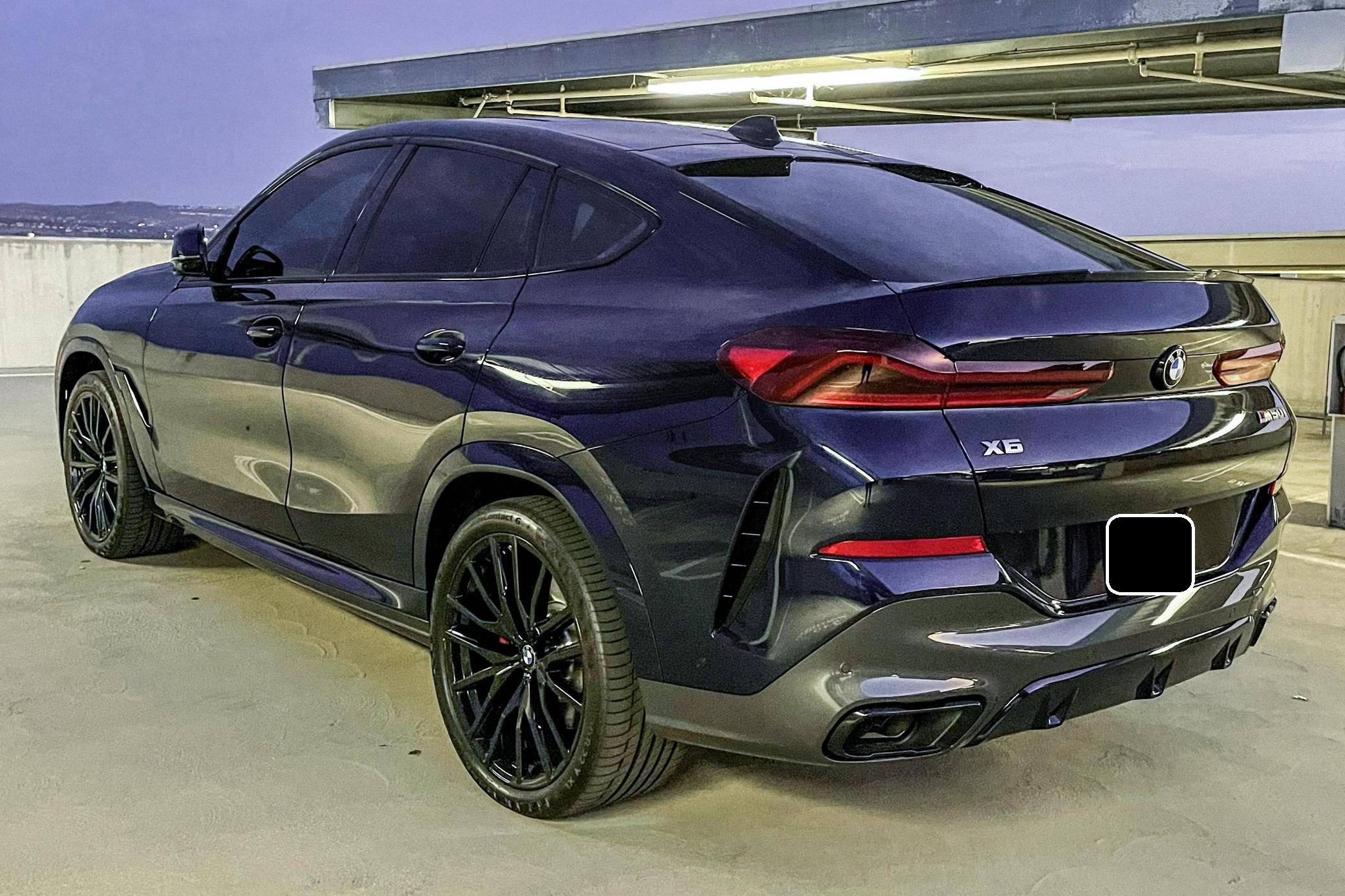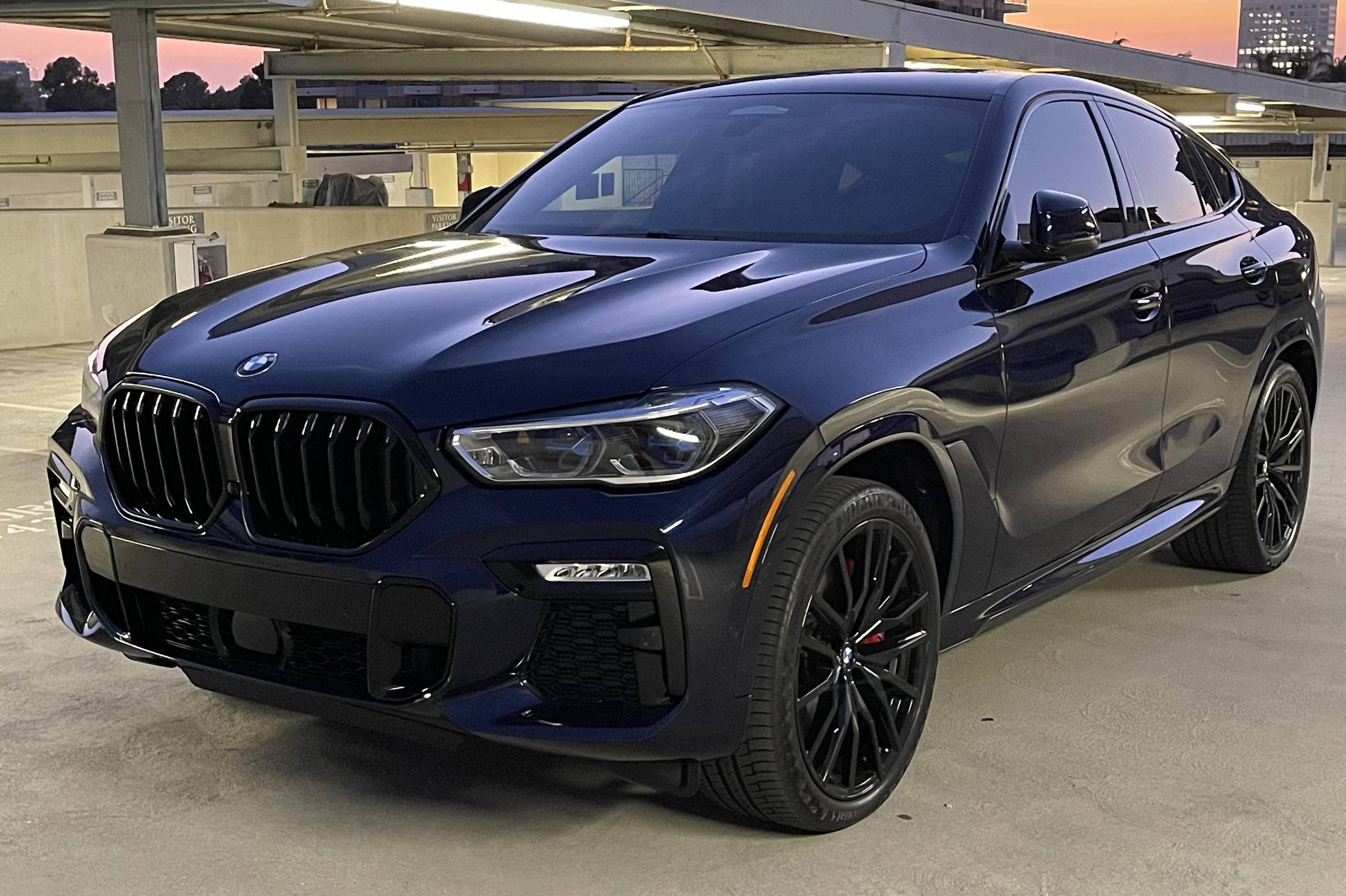 THIS… is a 2021 BMW X6 M50i xDrive, finished in Tanzanite Blue II Metallic with a Tacora Red interior. The odometer on this X6 currently displays ~5,700 miles. Modifications reported by the seller include paint protection film on the front end, a ceramic coating on the exterior, and window tint. Called "G06" internally, BMW's third-generation X6 was a swoopier evolution of the X5 marketed as a Sports Activity Coupe. It rode on an updated version of its predecessor's underpinnings, but it was slightly larger inside and out. Inside, the technological leap included two 12. 3-inch displays with the automaker's latest infotainment software. Power comes from a 4. 4-liter "TwinPower" turbocharged V8 engine, rated at 523 horsepower and 553 lb-ft of torque. Output is sent to all four wheels via an 8-speed transmission.