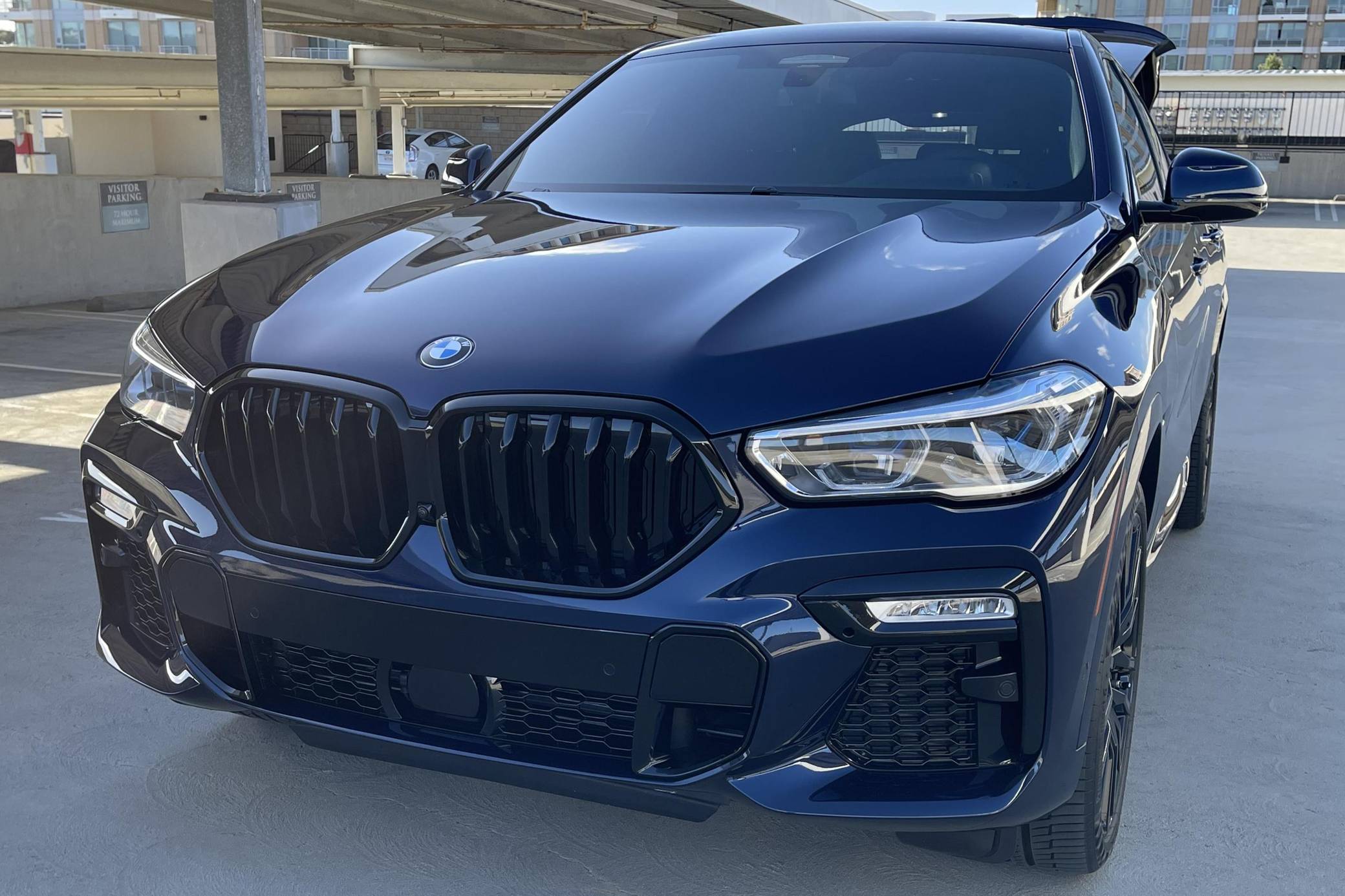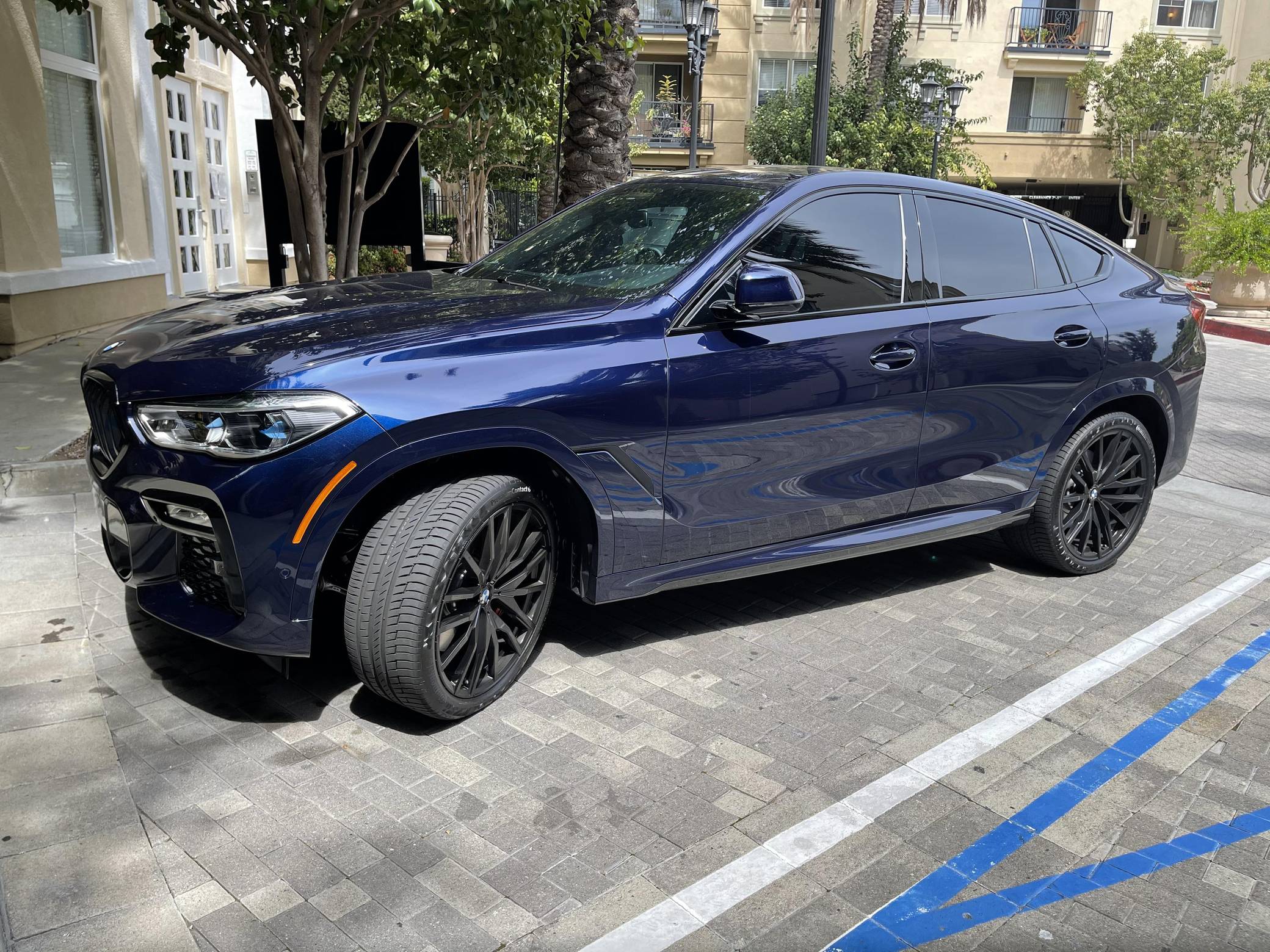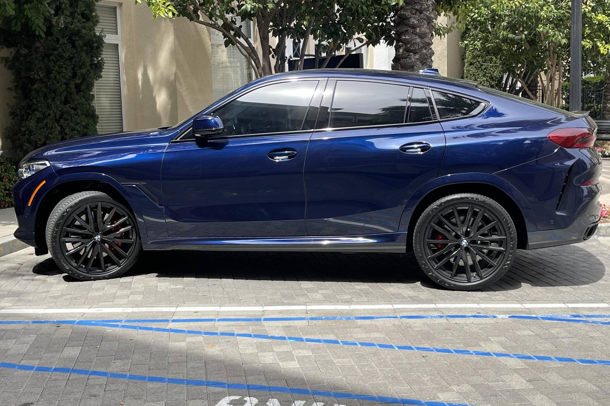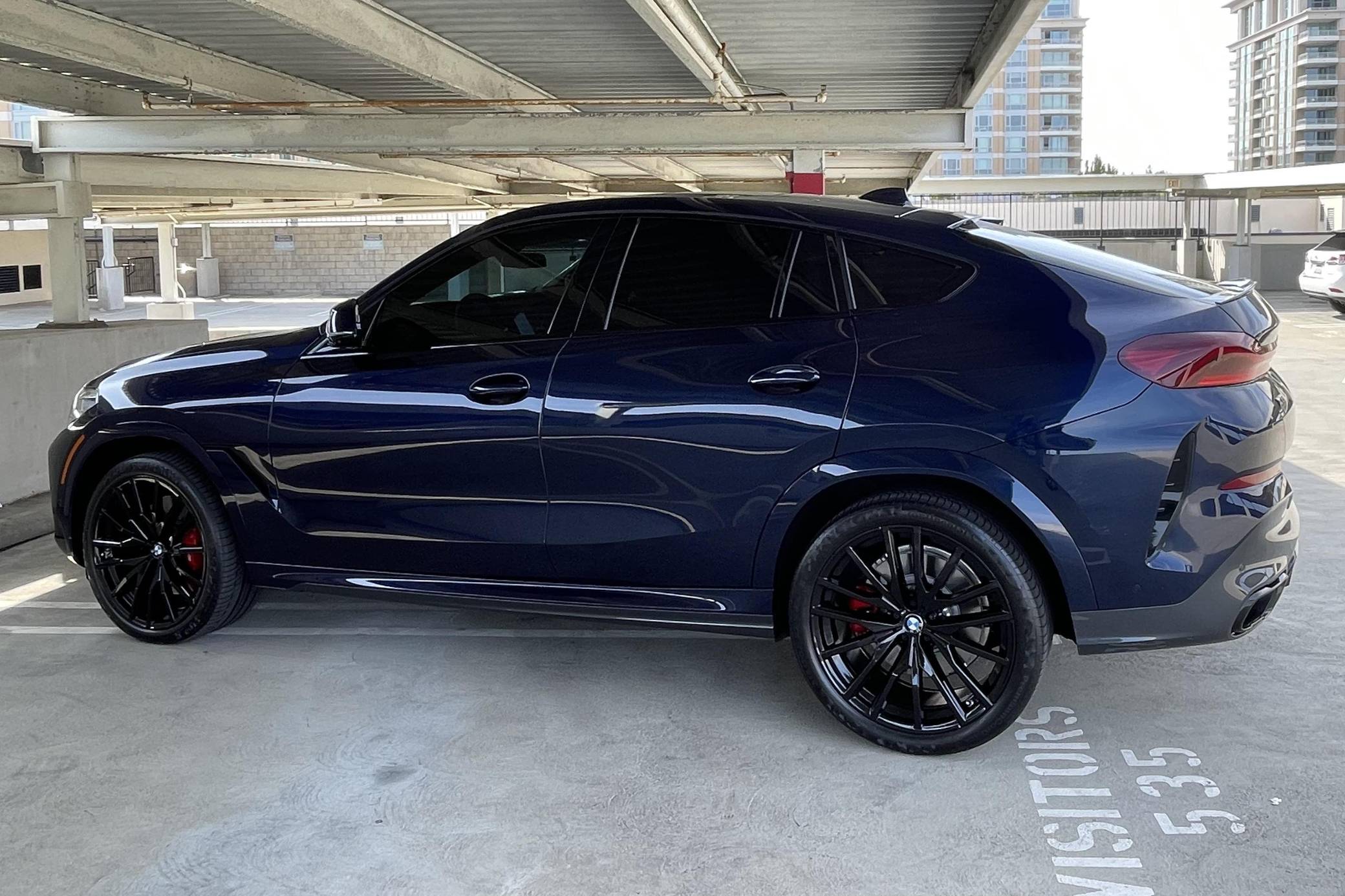 THIS… is a 2021 BMW X6 M50i xDrive, finished in Tanzanite Blue II Metallic with a Tacora Red interior. The odometer on this X6 currently displays ~5,700 miles. Modifications reported by the seller include paint protection film on the front end, a ceramic coating on the exterior, and window tint. Called "G06" internally, BMW's third-generation X6 was a swoopier evolution of the X5 marketed as a Sports Activity Coupe. It rode on an updated version of its predecessor's underpinnings, but it was slightly larger inside and out. Inside, the technological leap included two 12. 3-inch displays with the automaker's latest infotainment software. Power comes from a 4. 4-liter "TwinPower" turbocharged V8 engine, rated at 523 horsepower and 553 lb-ft of torque. Output is sent to all four wheels via an 8-speed transmission.