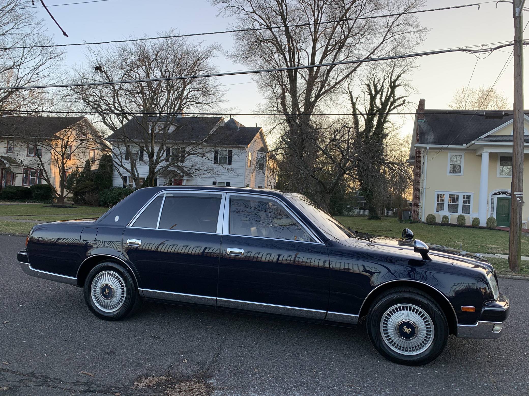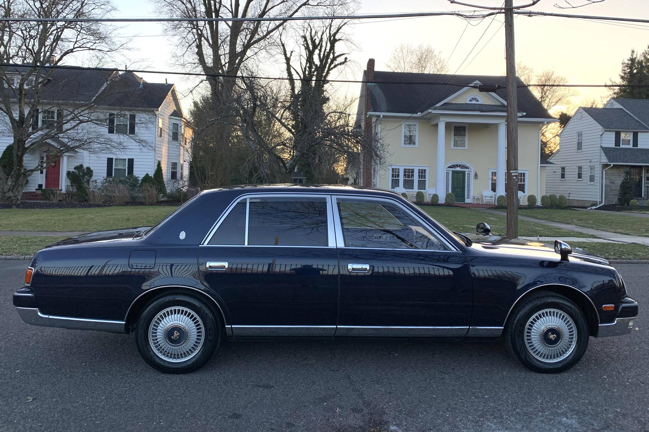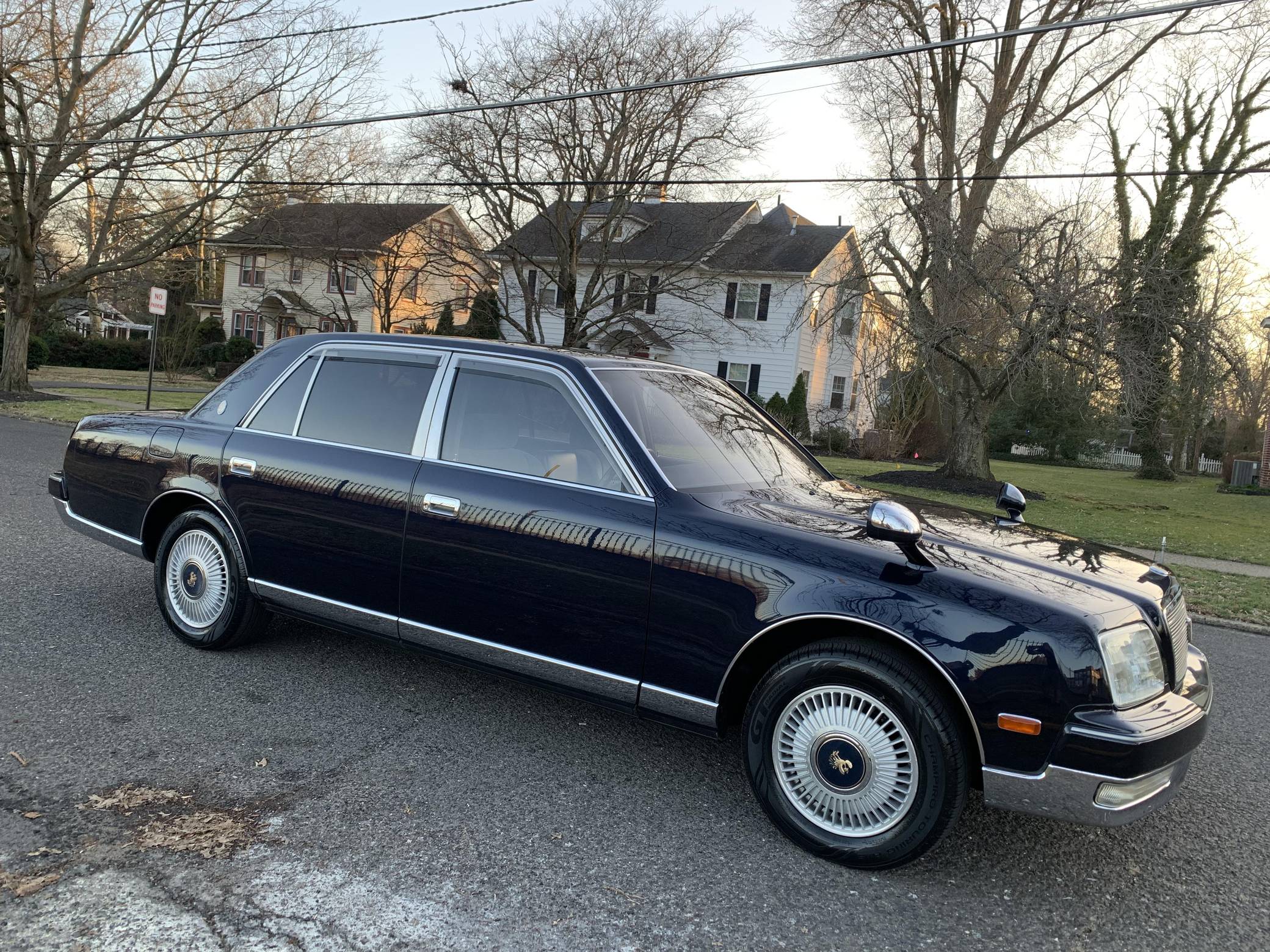 1997 Toyota Century, finished in Blue Mica with a gray interior. Said to be imported from Japan in September 2022, It's equipped with a metric instrument cluster, and the odometer shows about 236,600 kilometers, which represents approximately 147,100 miles. Factory equipment includes the Dual Electro Multi-Vision Package, 16-inch wheels, a TEMS suspension system, soft-close doors and trunk, wool cloth upholstery, heated front and rear seats, massaging and reclining rear seats, and more as detailed below. The only modification reported by the seller is a set of window rain guards. Toyota's home-market flagship sedan has been in production since 1967, and this "G50" variant represents the second-generation model that was sold from 1997 to 2017. Aimed at wealthy yet restrained Japanese business-types, these stout luxo-barges were equipped with every bit of comfort and tech wizardry at Toyota's disposal and are commonly acknowledged by the motoring press as one of the finest-built cars anywhere. Toyota never sold the Century in the United States. Power comes from a 5. 0-liter V12, rated at approximately 276 horsepower and 340 lb-ft of torque. Output is sent to the rear wheels through a 4-speed automatic transmission.