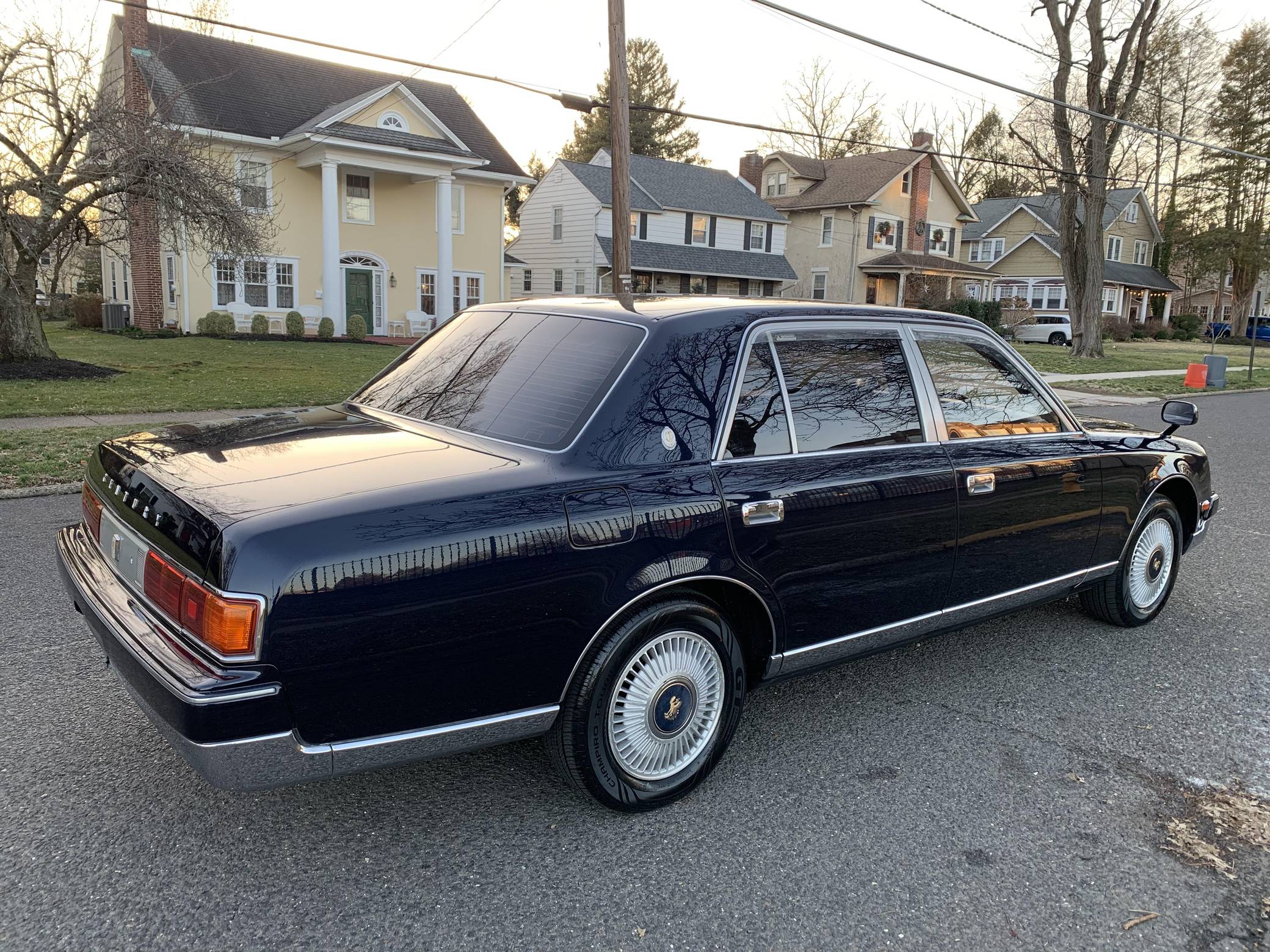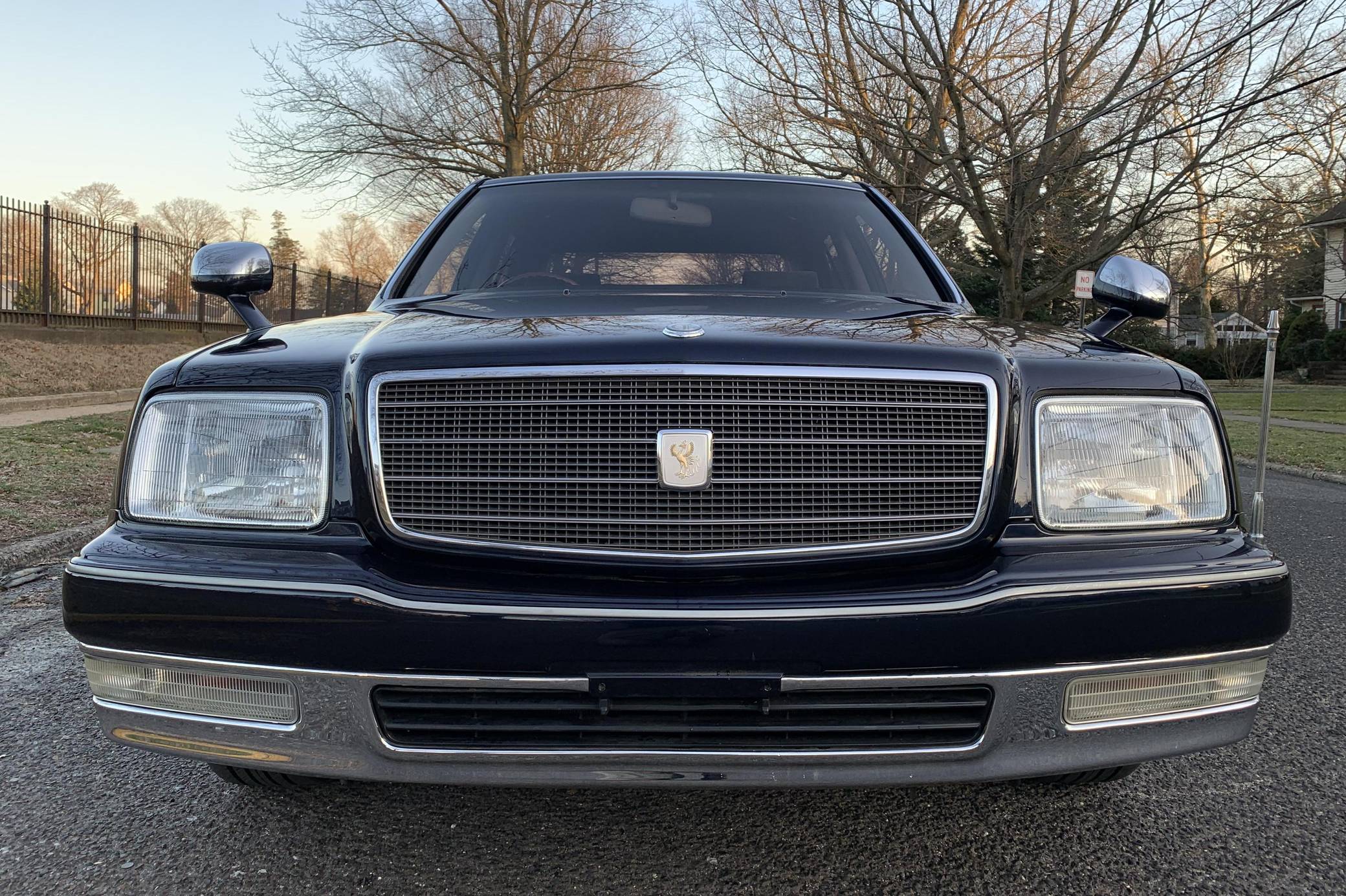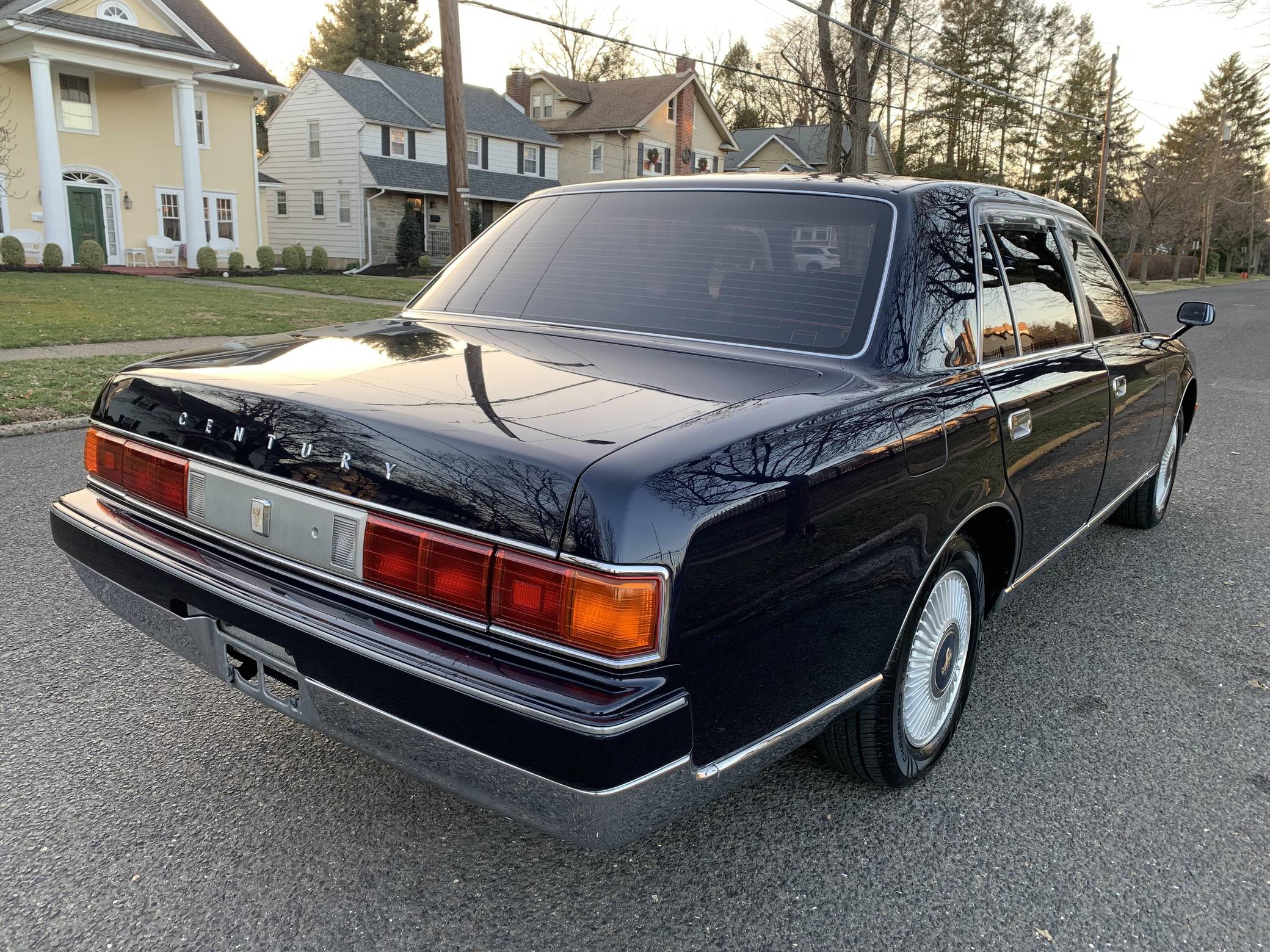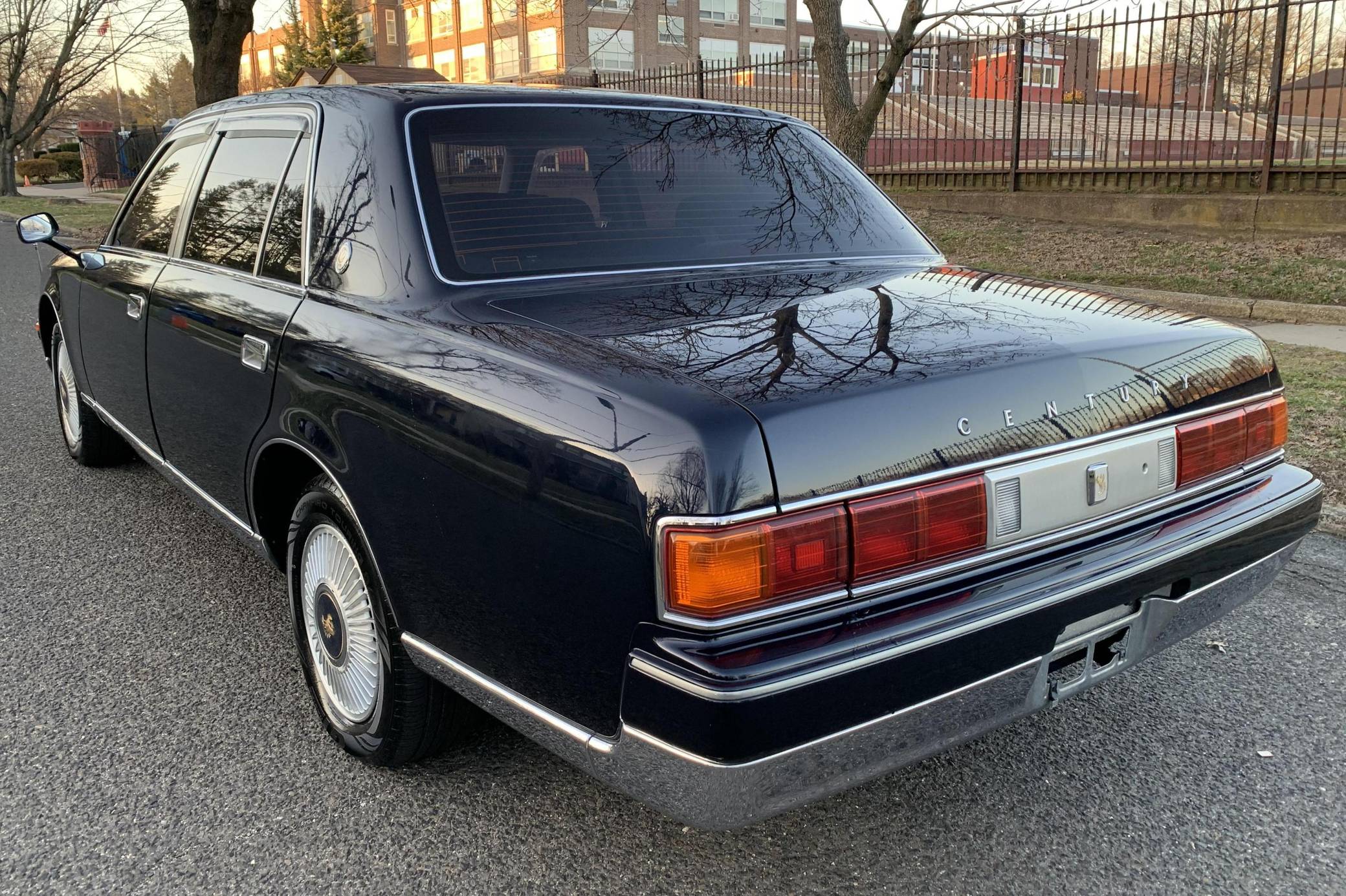 1997 Toyota Century, finished in Blue Mica with a gray interior. Said to be imported from Japan in September 2022, It's equipped with a metric instrument cluster, and the odometer shows about 236,600 kilometers, which represents approximately 147,100 miles. Factory equipment includes the Dual Electro Multi-Vision Package, 16-inch wheels, a TEMS suspension system, soft-close doors and trunk, wool cloth upholstery, heated front and rear seats, massaging and reclining rear seats, and more as detailed below. The only modification reported by the seller is a set of window rain guards. Toyota's home-market flagship sedan has been in production since 1967, and this "G50" variant represents the second-generation model that was sold from 1997 to 2017. Aimed at wealthy yet restrained Japanese business-types, these stout luxo-barges were equipped with every bit of comfort and tech wizardry at Toyota's disposal and are commonly acknowledged by the motoring press as one of the finest-built cars anywhere. Toyota never sold the Century in the United States. Power comes from a 5. 0-liter V12, rated at approximately 276 horsepower and 340 lb-ft of torque. Output is sent to the rear wheels through a 4-speed automatic transmission.