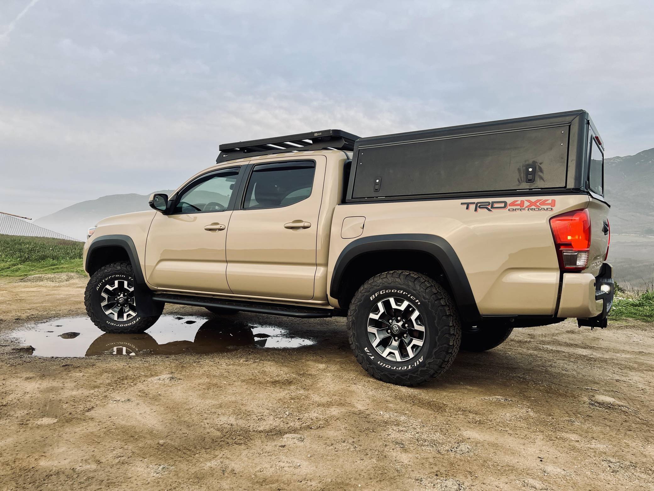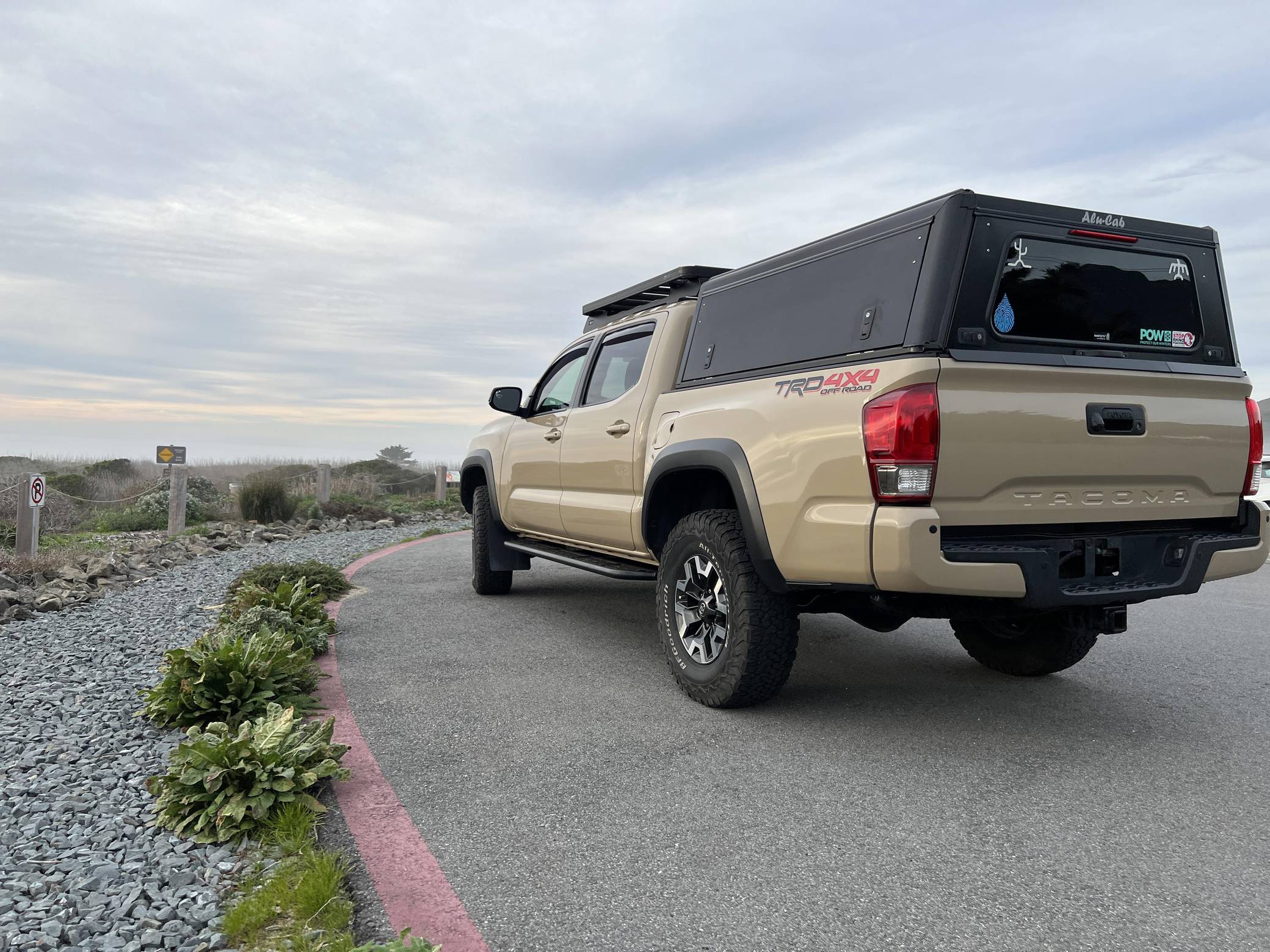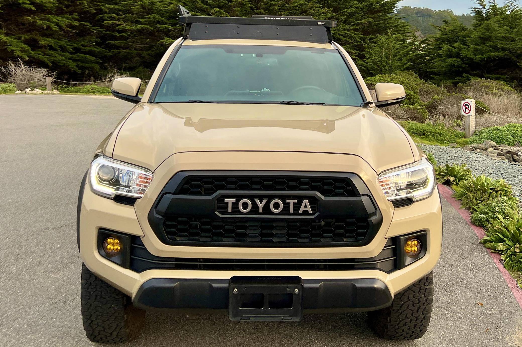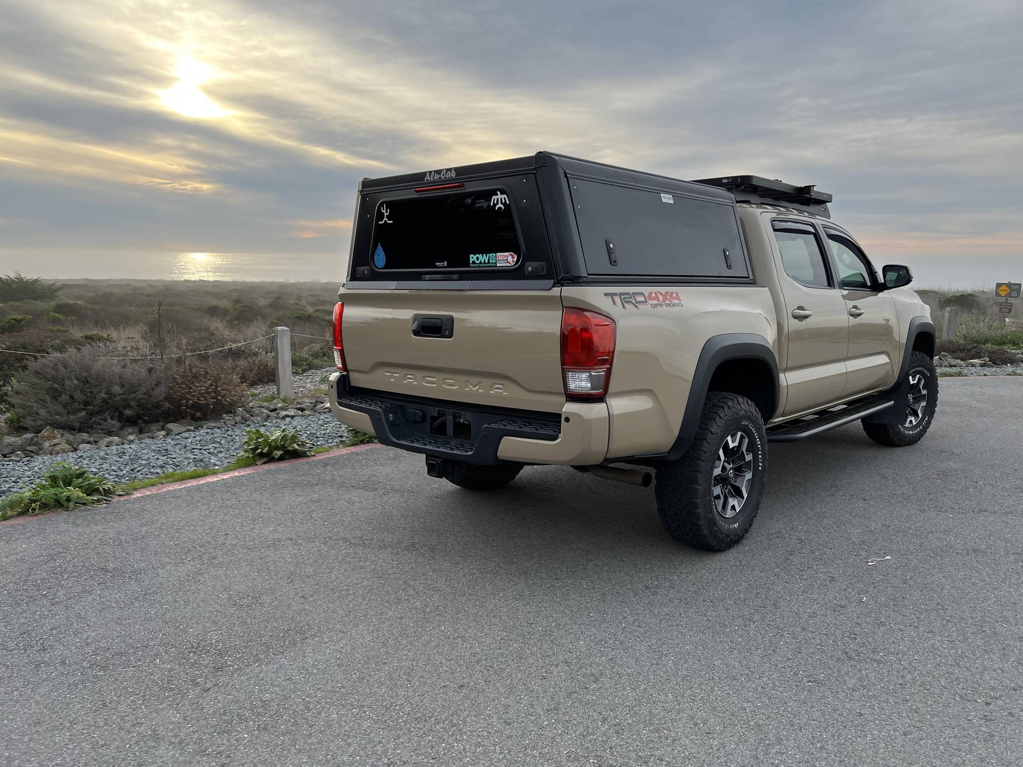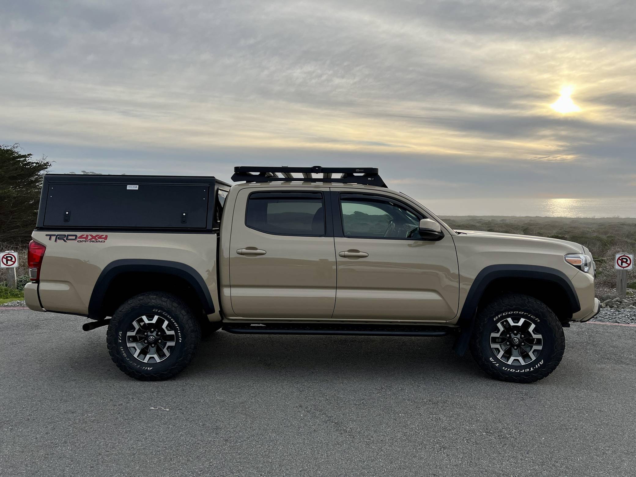 2017 Toyota Tacoma TRD Off-Road Double Cab, finished in Quicksand with a black interior. This Tacoma came equipped with the Premium and Technology package, which adds features such as heated front seats, a wireless smartphone charging station, and a blind-spot monitor. Additional features include a locking rear differential with A-TRAC, off-road-tuned suspension, an Entune premium audio/navigation system, and more as detailed below. The seller has modified this Tacoma extensively to perform better off-road, and a detailed list of mods is included below. Some highlights include an Alu-Cab Explorer III bed canopy, Toytec Lift rear add-a-leaf kit, Timbren active off-road bump stops, Total Chaos bedside reinforcement braces, and an OVTune 91 octane ECU tune. Introduced in 2015, the third-generation Tacoma came equipped with an optional Atkinson cycle V6 engine utilizing Variable Valve Timing with intelligence (VVT-i), which replaced Toyota's previous VVT system. The third-generation "Taco" also featured updated styling, a more comfortable interior, and a more rigid high strength steel frame. Power for this Tacoma comes from a "2GR-FKS" 3. 5-liter V6 engine, rated at 278 horsepower and 265 lb-ft of torque. Due to the tune added to this Taco, it may produce more power, but a dyno sheet was not provided to confirm. Output is sent to all four wheels via a 6-speed manual transmission.