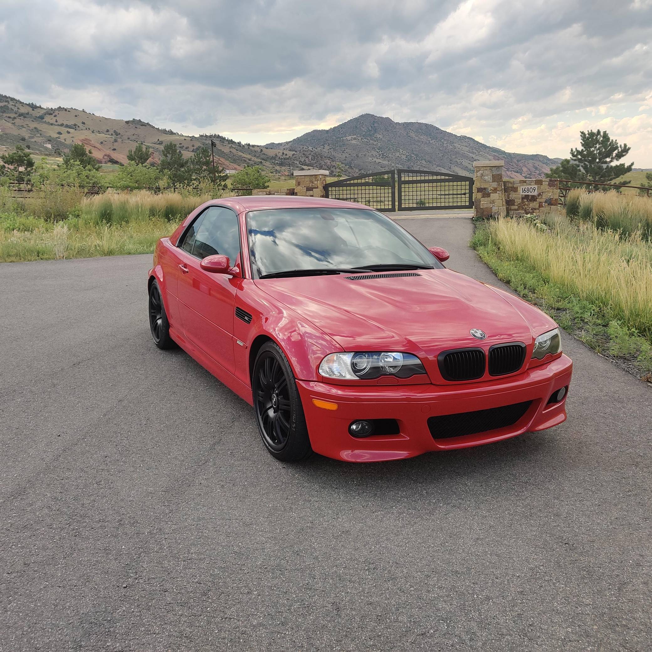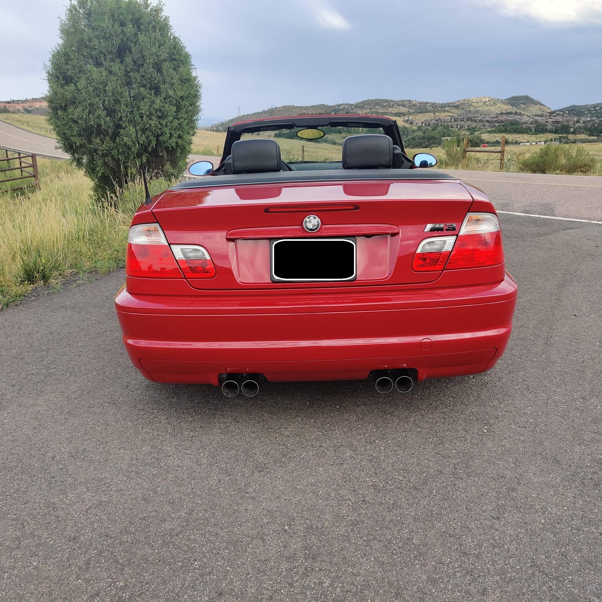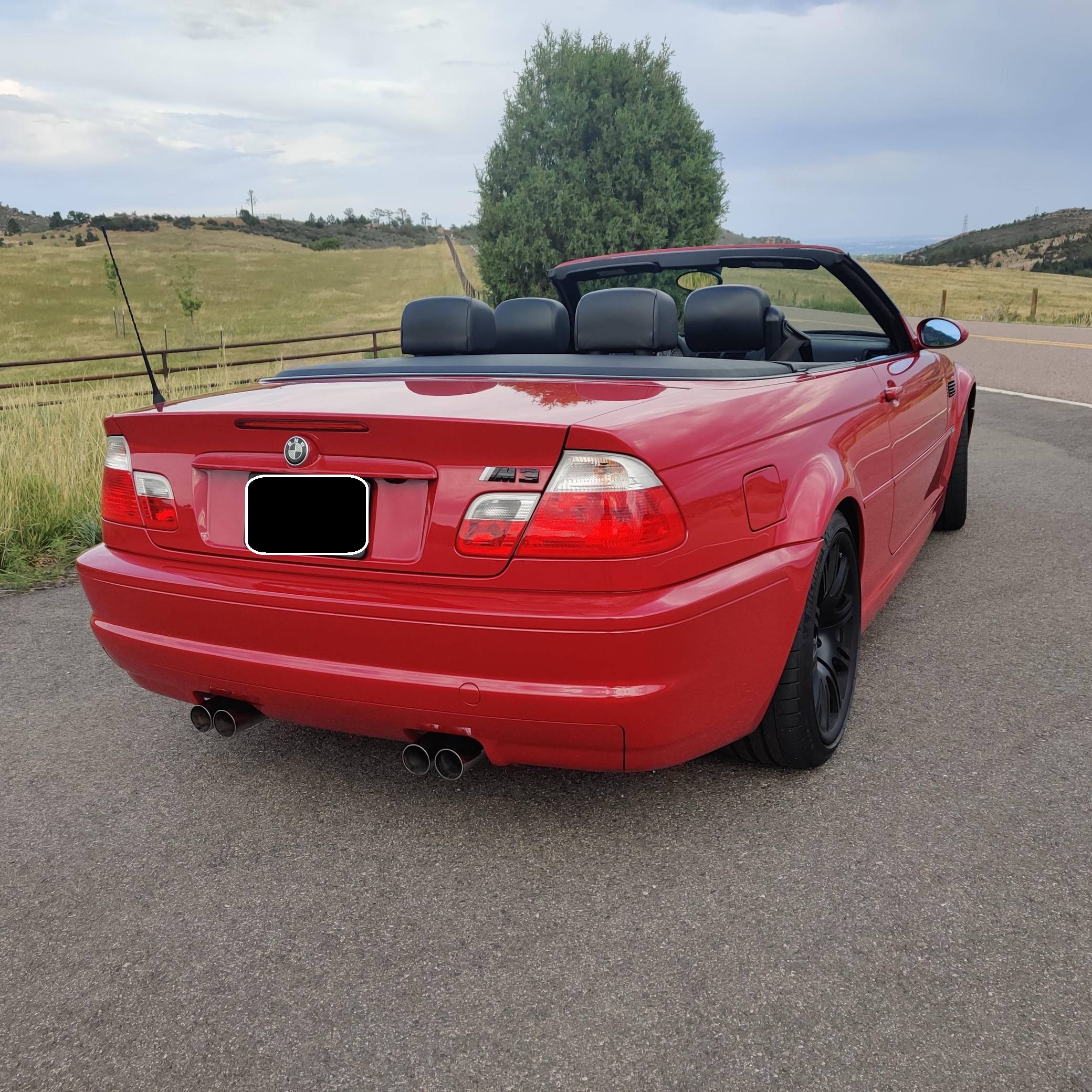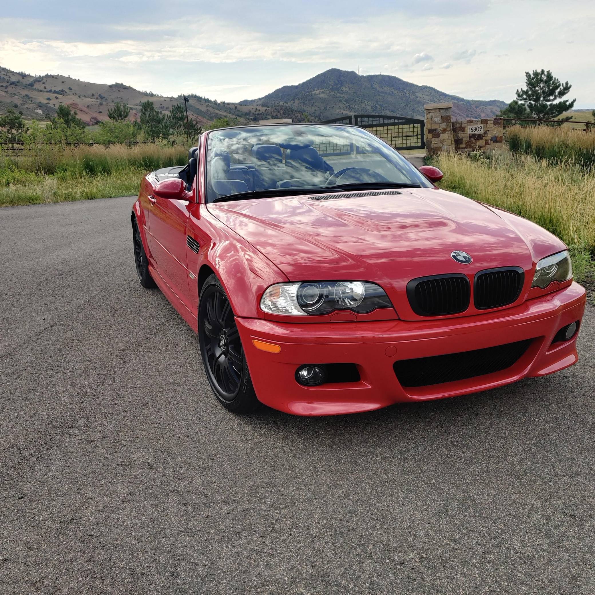 2001 BMW M3 Convertible, finished in Imola Red with body-colored hardtop, a black soft top, and a black interior. This M3 is equipped with the desirable 6-speed manual transmission. The odometer on this M3 currently displays approximately 66,100 miles. According to the build sheet provided in the gallery, factory equipment includes 19-inch Style 67 wheels, fog lights, a power-retractable soft top, Nappa leather upholstery, a leather-wrapped multifunction steering wheel, and cruise control. The only modifications reported by the seller are black-painted factory wheels, black kidney and fender grilles, and aftermarket exterior emblems and center caps. The third-generation M3 made its debut for the 2000 model year as the quickest and most powerful evolution of the E46 3 Series. Offered as a coupe and as a convertible, it received a high-revving straight-6 engine, suspension improvements, and a muscular-looking exterior design. Production ended in 2006. Power comes from a 3. 2-liter "S54" straight-6 engine, rated at 333 horsepower and 262 lb-ft of torque. Output is sent to the rear wheels via a 6-speed manual transmission.