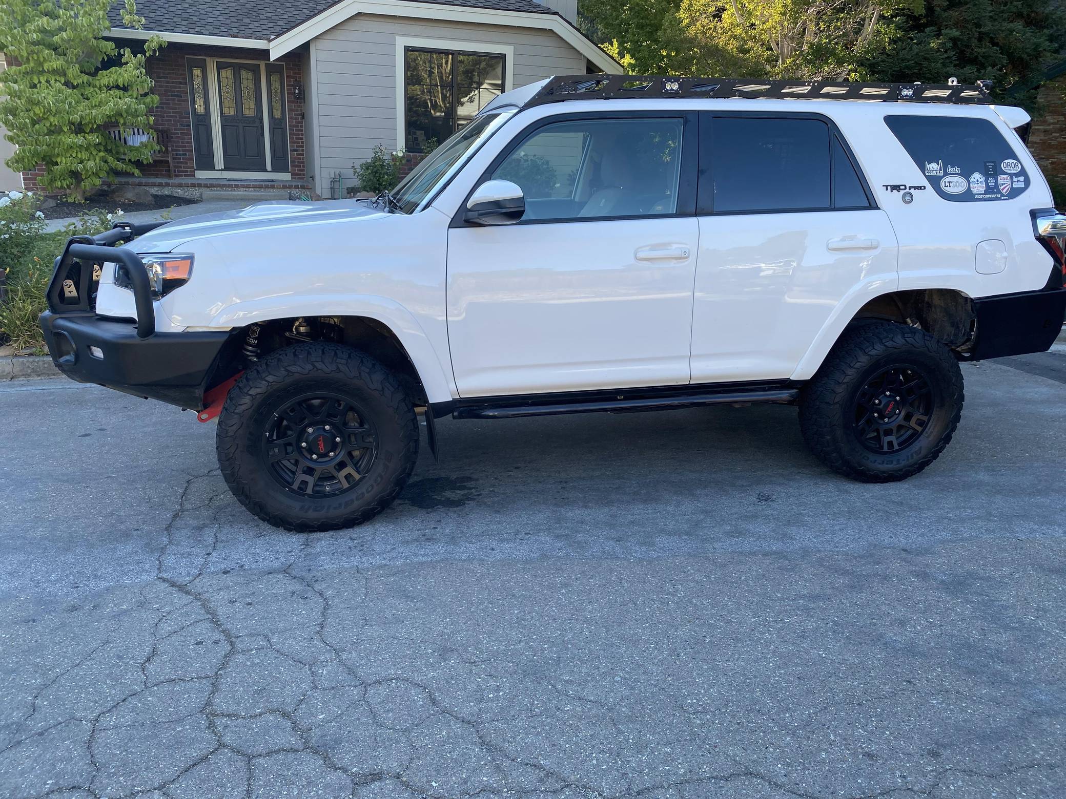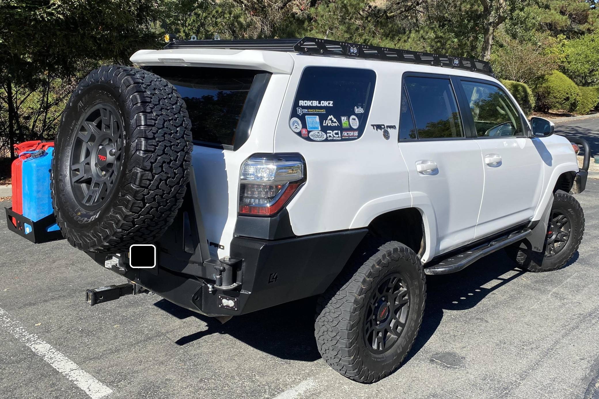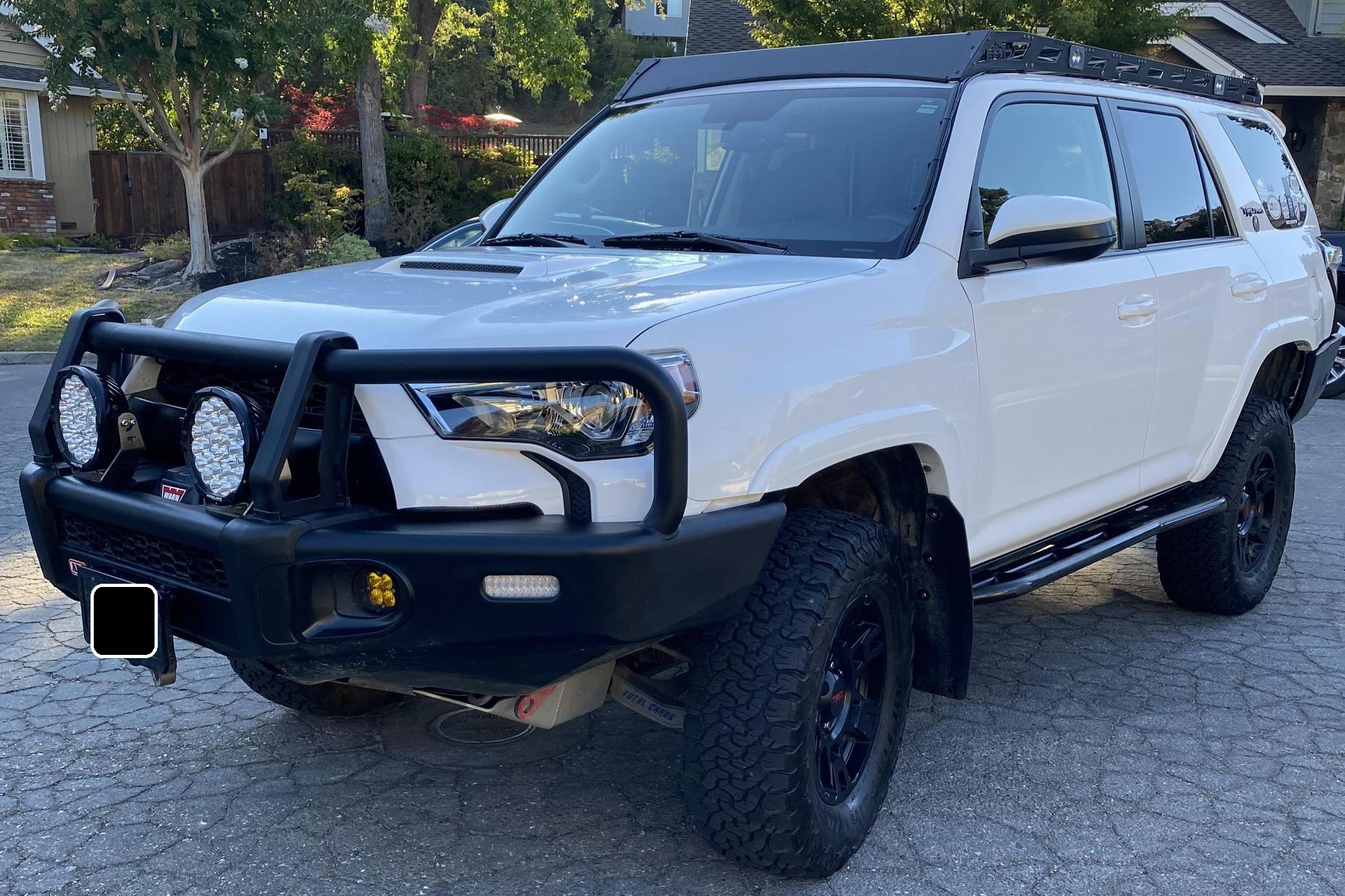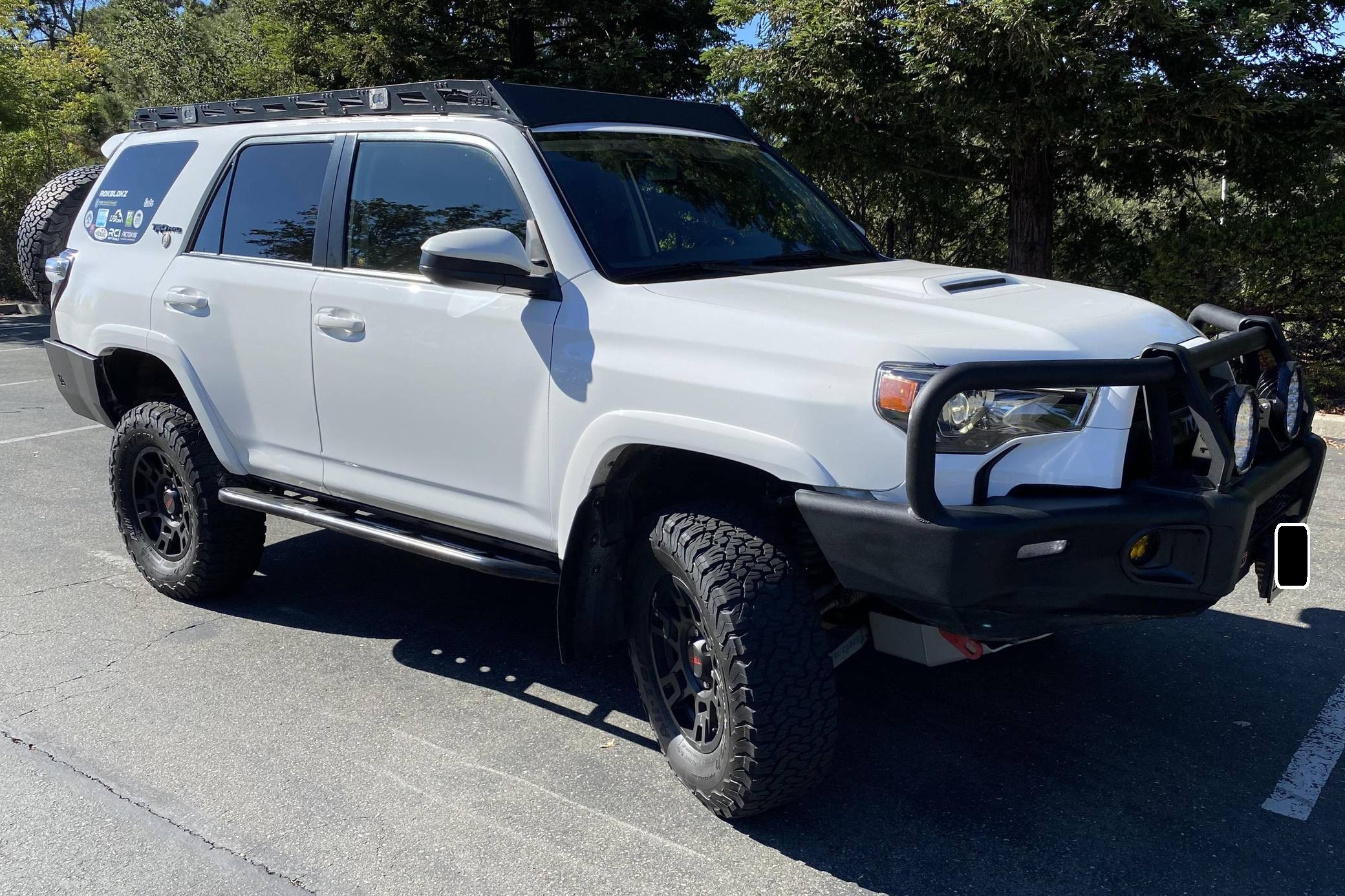 2018 Toyota 4Runner TRD Pro, finished in Super White with a black interior. Other equipment includes a locking rear differential, LED taillights, a power-sliding rear window, SofTex upholstery, heated front seats, Multi Terrain Select, Crawl Control, Hill-Start Assist Control, and a 6. 1-inch touchscreen infotainment system. Modifications to this 4Runner are extensive, and the full list is detailed below. include a TRD Pro air intake system, an ICON Stage 5 3. 5-inch lift, ARB front bumper, Teralume Industries 8. 5-inch driving lights, WARN Industries winch, RCI skid plates, Treaty Oak recovery points, a Southern Style OffRoad roof rack, an ARB dual air compressor, and a Sprint Booster throttle response module. Toyota introduced the 5th and current generation of the 4Runner for the 2010 model year. While many of its rivals moved to a unibody architecture, the 4Runner kept its body-on-frame layout and continued to offer exceptional off-road prowess. It's capable out of the box, but many owners laud it as a blank canvas for adventure-focused modifications. 2015 brought the TRD Pro model, which was aimed at buyers who wanted even greater all-terrain capability without turning to the aftermarket; it's still available in 2022. Power comes from a 4. 0-liter V6, rated at 270 horsepower and 278 lb-ft of torque. Output is sent to the rear or all four wheels through a 5-speed automatic transmission.