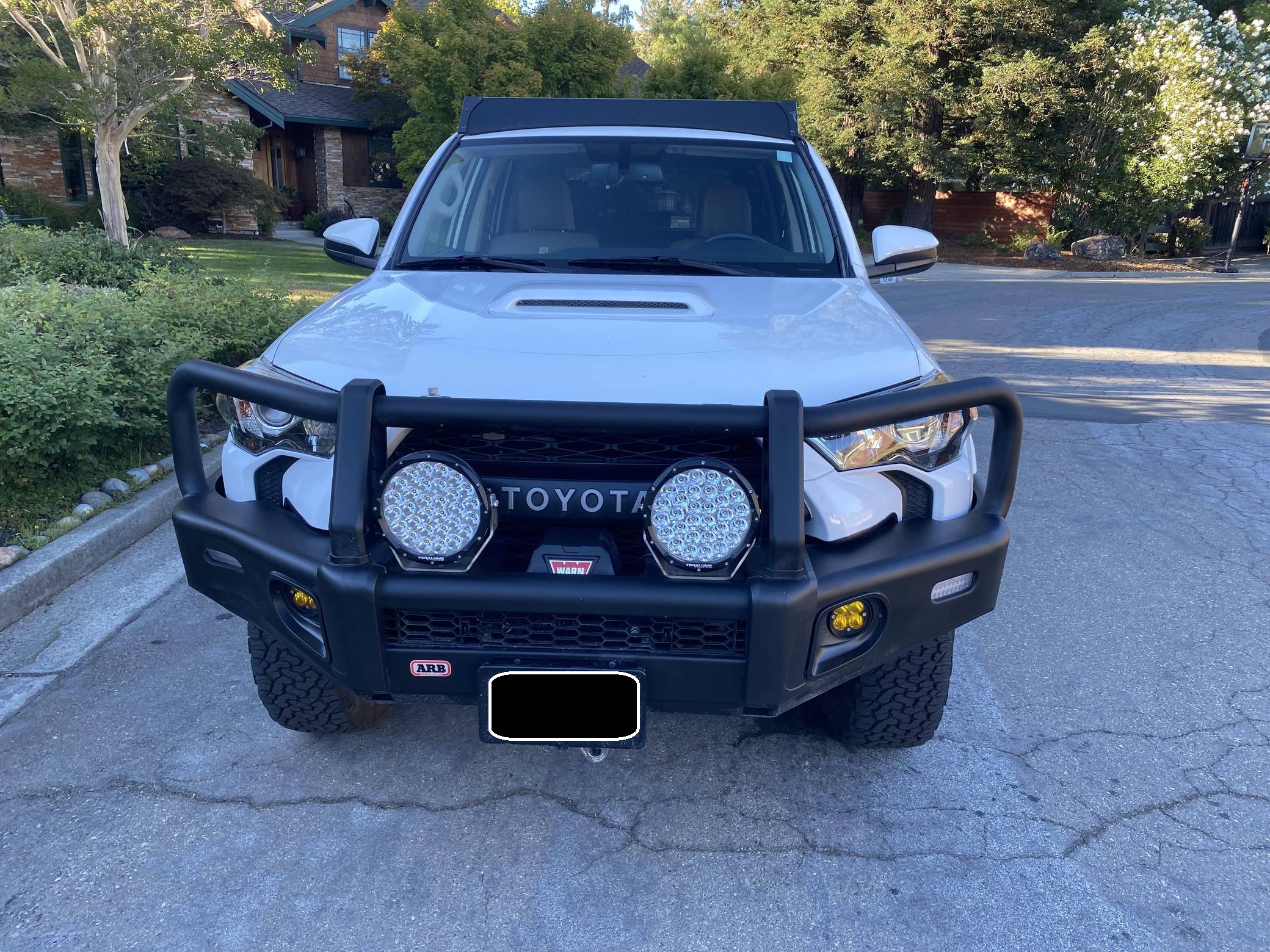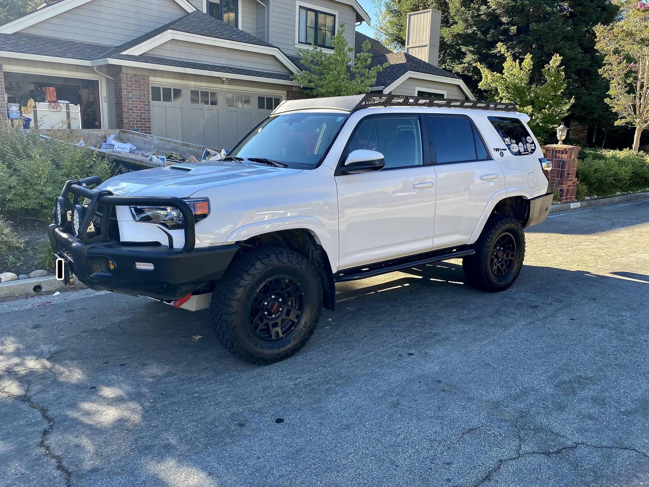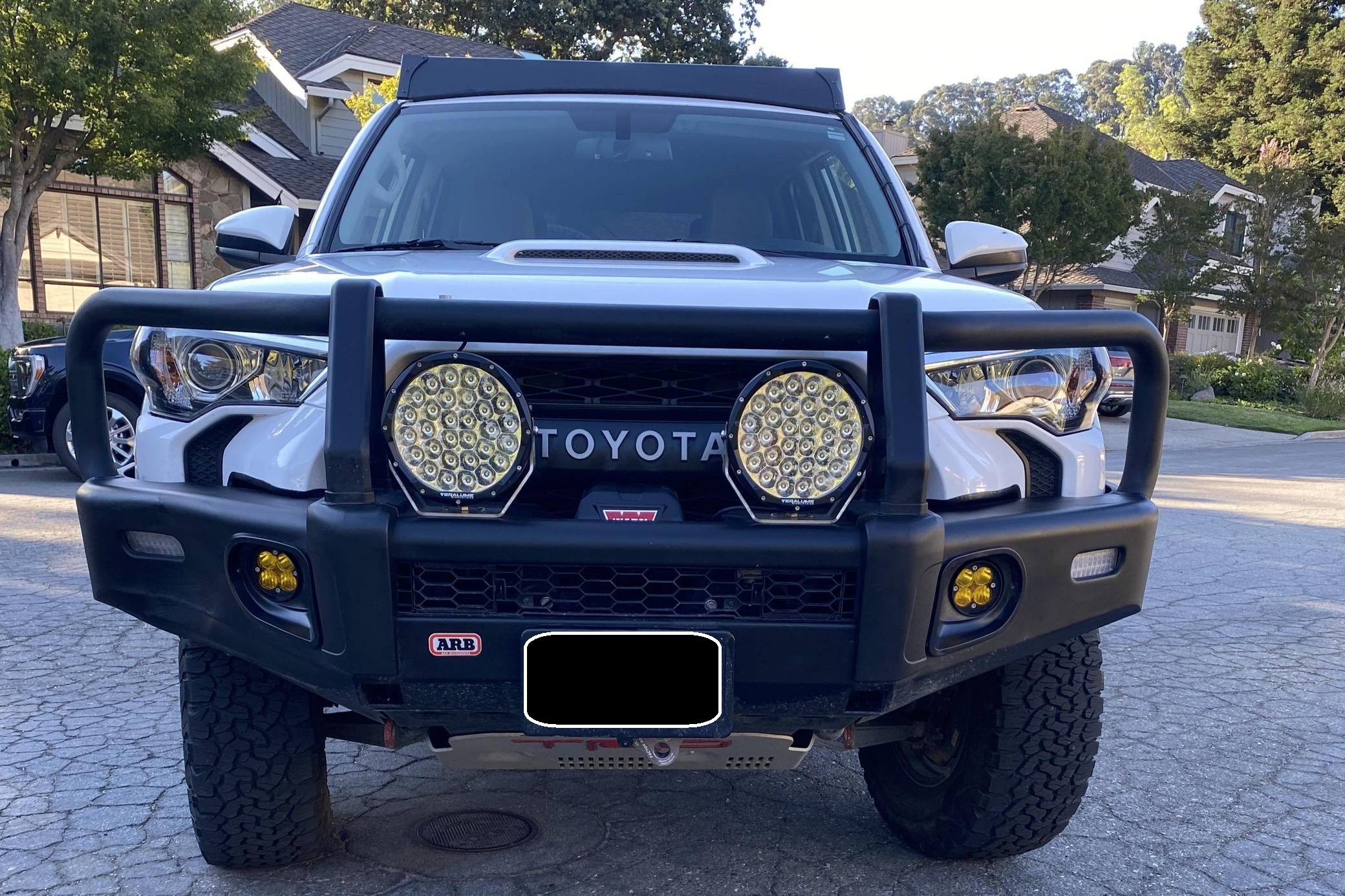2018 Toyota 4Runner TRD Pro, finished in Super White with a black interior. Other equipment includes a locking rear differential, LED taillights, a power-sliding rear window, SofTex upholstery, heated front seats, Multi Terrain Select, Crawl Control, Hill-Start Assist Control, and a 6. 1-inch touchscreen infotainment system. Modifications to this 4Runner are extensive, and the full list is detailed below. include a TRD Pro air intake system, an ICON Stage 5 3. 5-inch lift, ARB front bumper, Teralume Industries 8. 5-inch driving lights, WARN Industries winch, RCI skid plates, Treaty Oak recovery points, a Southern Style OffRoad roof rack, an ARB dual air compressor, and a Sprint Booster throttle response module. Toyota introduced the 5th and current generation of the 4Runner for the 2010 model year. While many of its rivals moved to a unibody architecture, the 4Runner kept its body-on-frame layout and continued to offer exceptional off-road prowess. It's capable out of the box, but many owners laud it as a blank canvas for adventure-focused modifications. 2015 brought the TRD Pro model, which was aimed at buyers who wanted even greater all-terrain capability without turning to the aftermarket; it's still available in 2022. Power comes from a 4. 0-liter V6, rated at 270 horsepower and 278 lb-ft of torque. Output is sent to the rear or all four wheels through a 5-speed automatic transmission.
