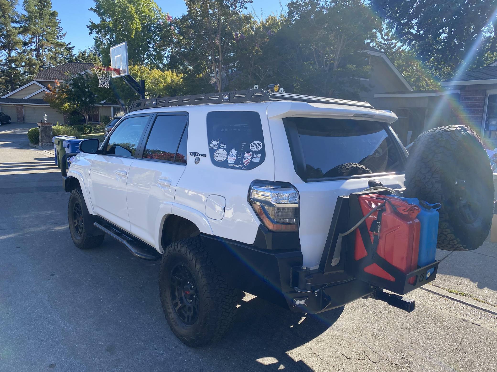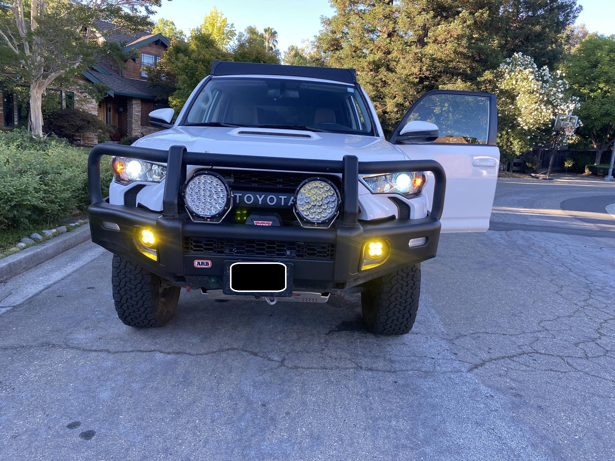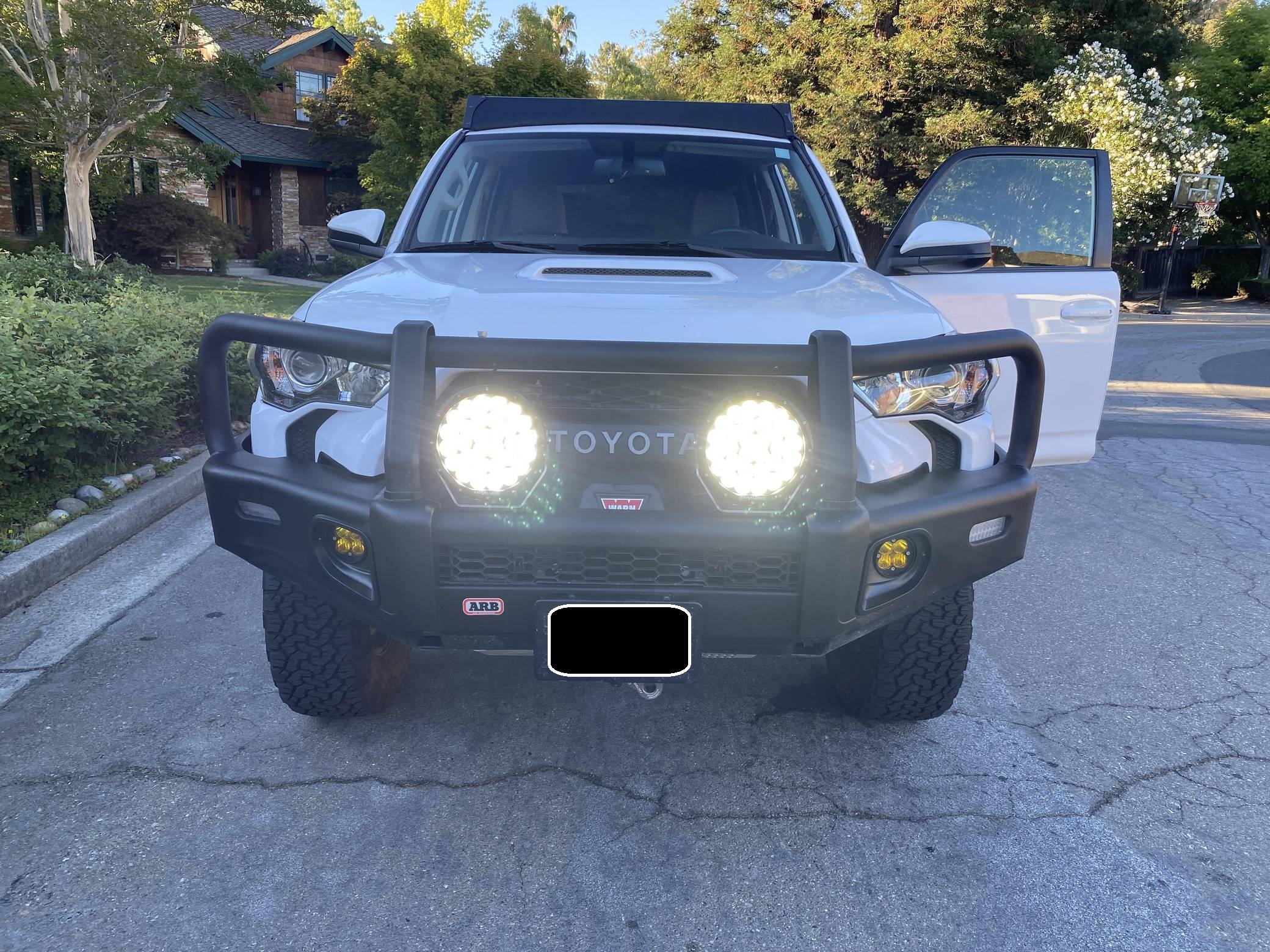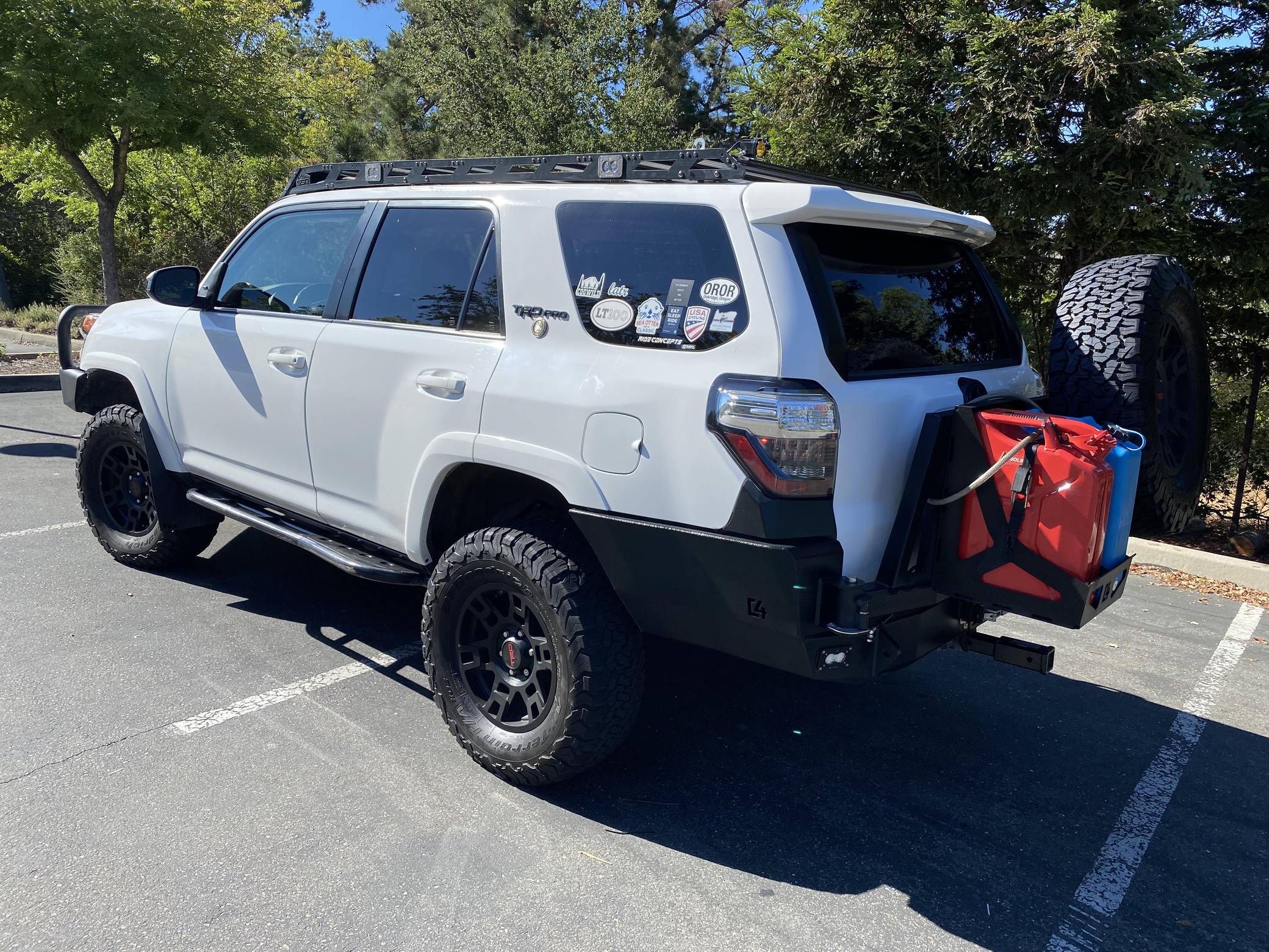 2018 Toyota 4Runner TRD Pro, finished in Super White with a black interior. Other equipment includes a locking rear differential, LED taillights, a power-sliding rear window, SofTex upholstery, heated front seats, Multi Terrain Select, Crawl Control, Hill-Start Assist Control, and a 6. 1-inch touchscreen infotainment system. Modifications to this 4Runner are extensive, and the full list is detailed below. include a TRD Pro air intake system, an ICON Stage 5 3. 5-inch lift, ARB front bumper, Teralume Industries 8. 5-inch driving lights, WARN Industries winch, RCI skid plates, Treaty Oak recovery points, a Southern Style OffRoad roof rack, an ARB dual air compressor, and a Sprint Booster throttle response module. Toyota introduced the 5th and current generation of the 4Runner for the 2010 model year. While many of its rivals moved to a unibody architecture, the 4Runner kept its body-on-frame layout and continued to offer exceptional off-road prowess. It's capable out of the box, but many owners laud it as a blank canvas for adventure-focused modifications. 2015 brought the TRD Pro model, which was aimed at buyers who wanted even greater all-terrain capability without turning to the aftermarket; it's still available in 2022. Power comes from a 4. 0-liter V6, rated at 270 horsepower and 278 lb-ft of torque. Output is sent to the rear or all four wheels through a 5-speed automatic transmission.