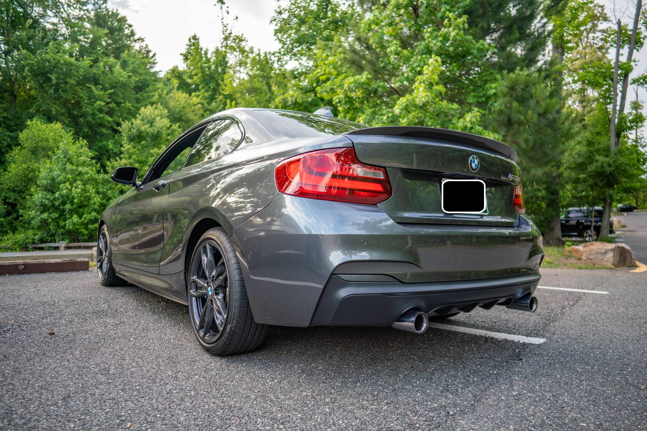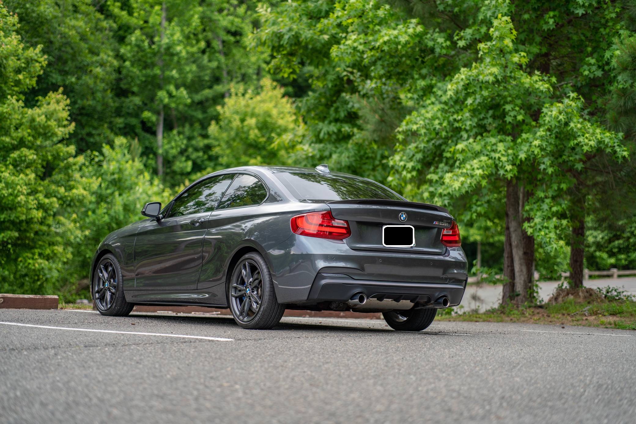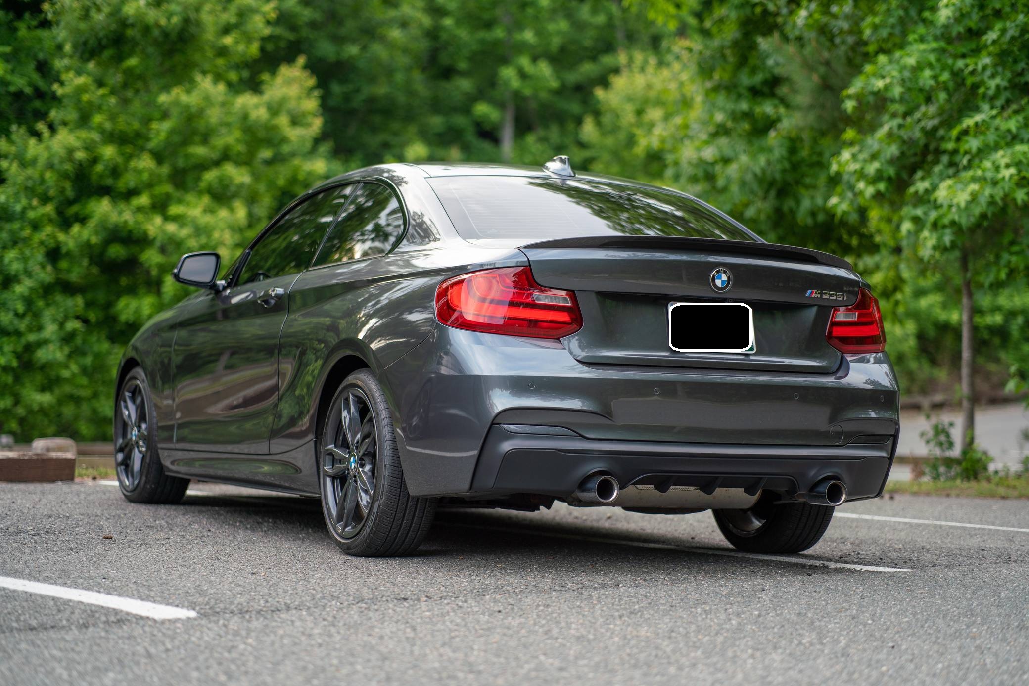 2016 BMW M235i Coupe, finished in Mineral Grey Metallic with a black interior. This BMW is equipped with the desirable 6-speed manual transmission. This M235i's odometer displays approximately 33,000 miles. It came equipped with the Driver Assistance and Technology packages, an adaptive M suspension system, M Sport brakes, heated and power-adjustable front sport seats, the Comfort Access keyless entry system, and a Harman/Kardon sound system, among other features. Modifications reported by the seller include an Active Autowerke catted downpipe, a Rogue Engineering Octane short shift kit, Evolution Raceworks charge pipes, a BMW M Performance front lip, IND Distribution paint-matched reflector deletes, APEX wheel studs, and more as detailed below. BMW released the F22 2 Series for the 2014 model year as a replacement for the two-door variants of the 1 Series. At launch, the range consisted of the 228i, which received a 4-cylinder engine, and the sportier M235i, which was powered by a straight-6. Both picked up where their esteemed predecessors left off by offering enthusiasts balanced handling, strong performance, and the luxurious interior BMW is known for. Power comes from a turbocharged "N55" 3. 0-liter straight-6, rated at 320 horsepower and 330 pound-feet of torque. Due to the modifications performed to this N55, it may produce more power, but a dyno sheet was not provided to confirm. Output is sent to the rear wheels via a 6-speed manual transmission.