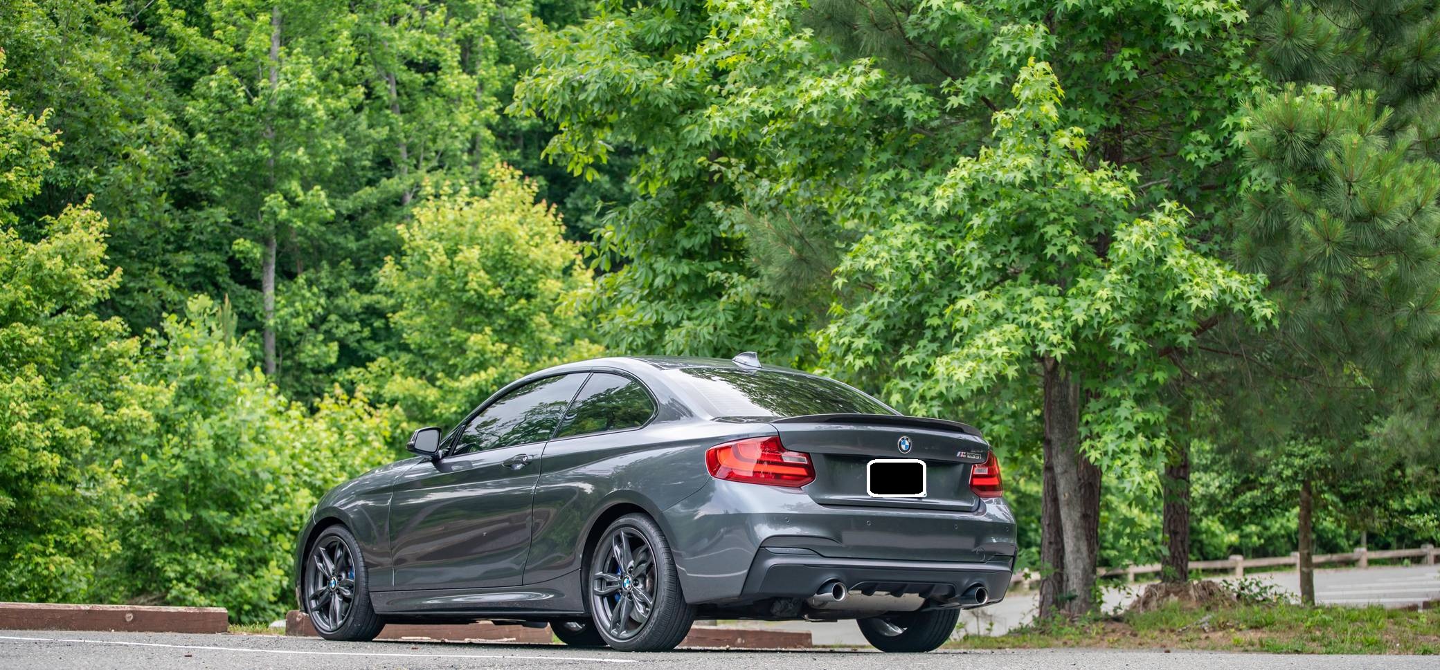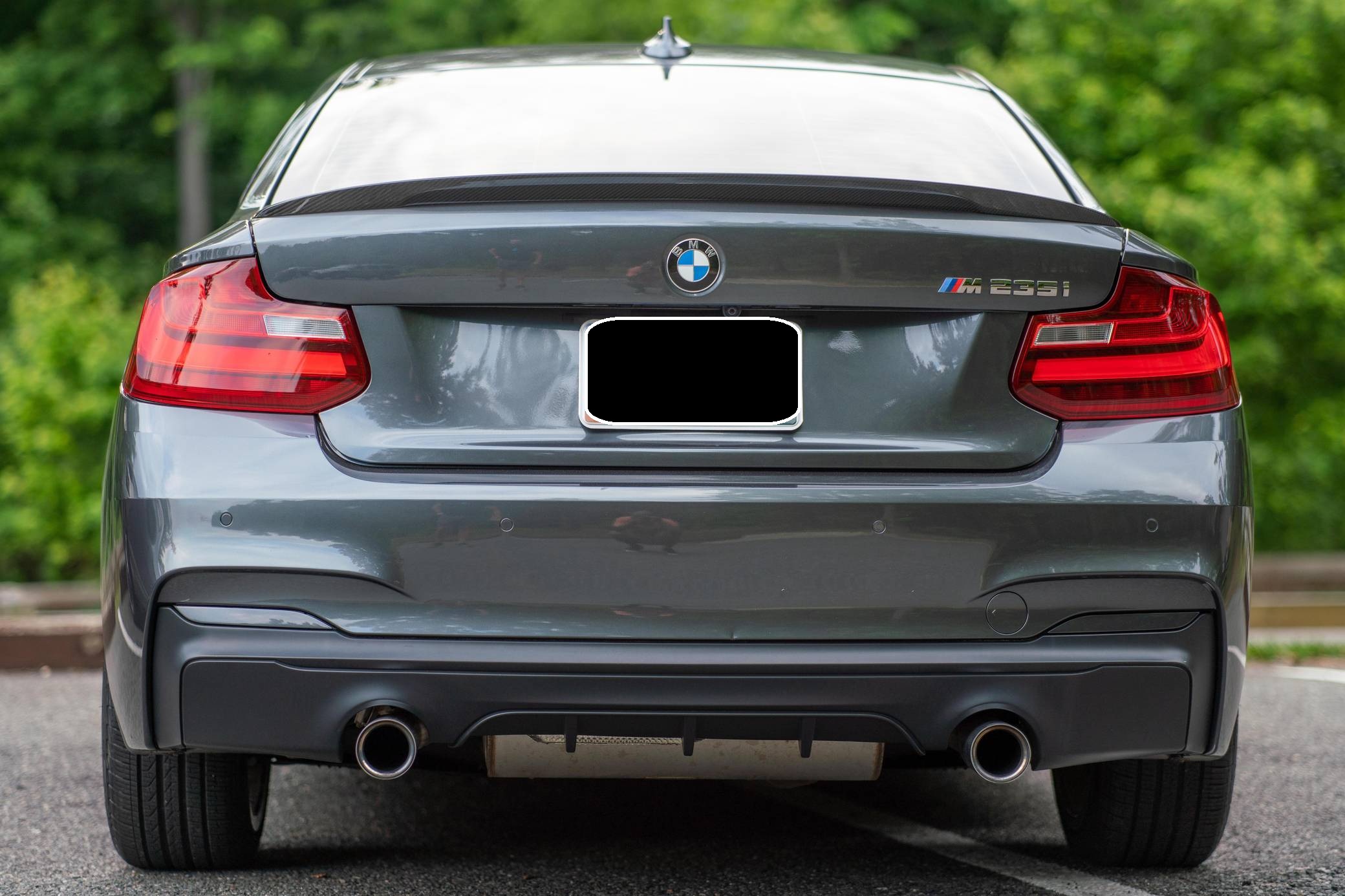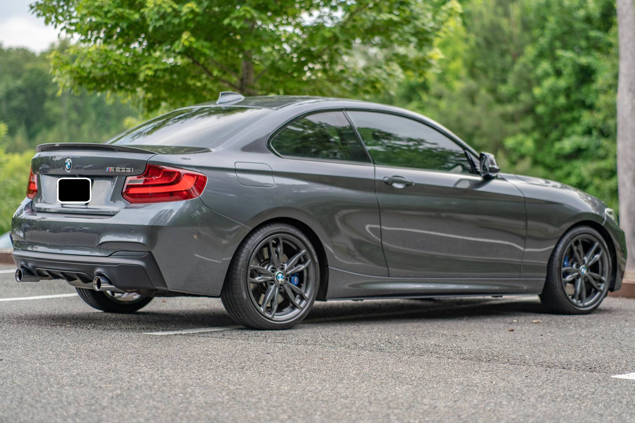 2016 BMW M235i Coupe, finished in Mineral Grey Metallic with a black interior. This BMW is equipped with the desirable 6-speed manual transmission. This M235i's odometer displays approximately 33,000 miles. It came equipped with the Driver Assistance and Technology packages, an adaptive M suspension system, M Sport brakes, heated and power-adjustable front sport seats, the Comfort Access keyless entry system, and a Harman/Kardon sound system, among other features. Modifications reported by the seller include an Active Autowerke catted downpipe, a Rogue Engineering Octane short shift kit, Evolution Raceworks charge pipes, a BMW M Performance front lip, IND Distribution paint-matched reflector deletes, APEX wheel studs, and more as detailed below. BMW released the F22 2 Series for the 2014 model year as a replacement for the two-door variants of the 1 Series. At launch, the range consisted of the 228i, which received a 4-cylinder engine, and the sportier M235i, which was powered by a straight-6. Both picked up where their esteemed predecessors left off by offering enthusiasts balanced handling, strong performance, and the luxurious interior BMW is known for. Power comes from a turbocharged "N55" 3. 0-liter straight-6, rated at 320 horsepower and 330 pound-feet of torque. Due to the modifications performed to this N55, it may produce more power, but a dyno sheet was not provided to confirm. Output is sent to the rear wheels via a 6-speed manual transmission.