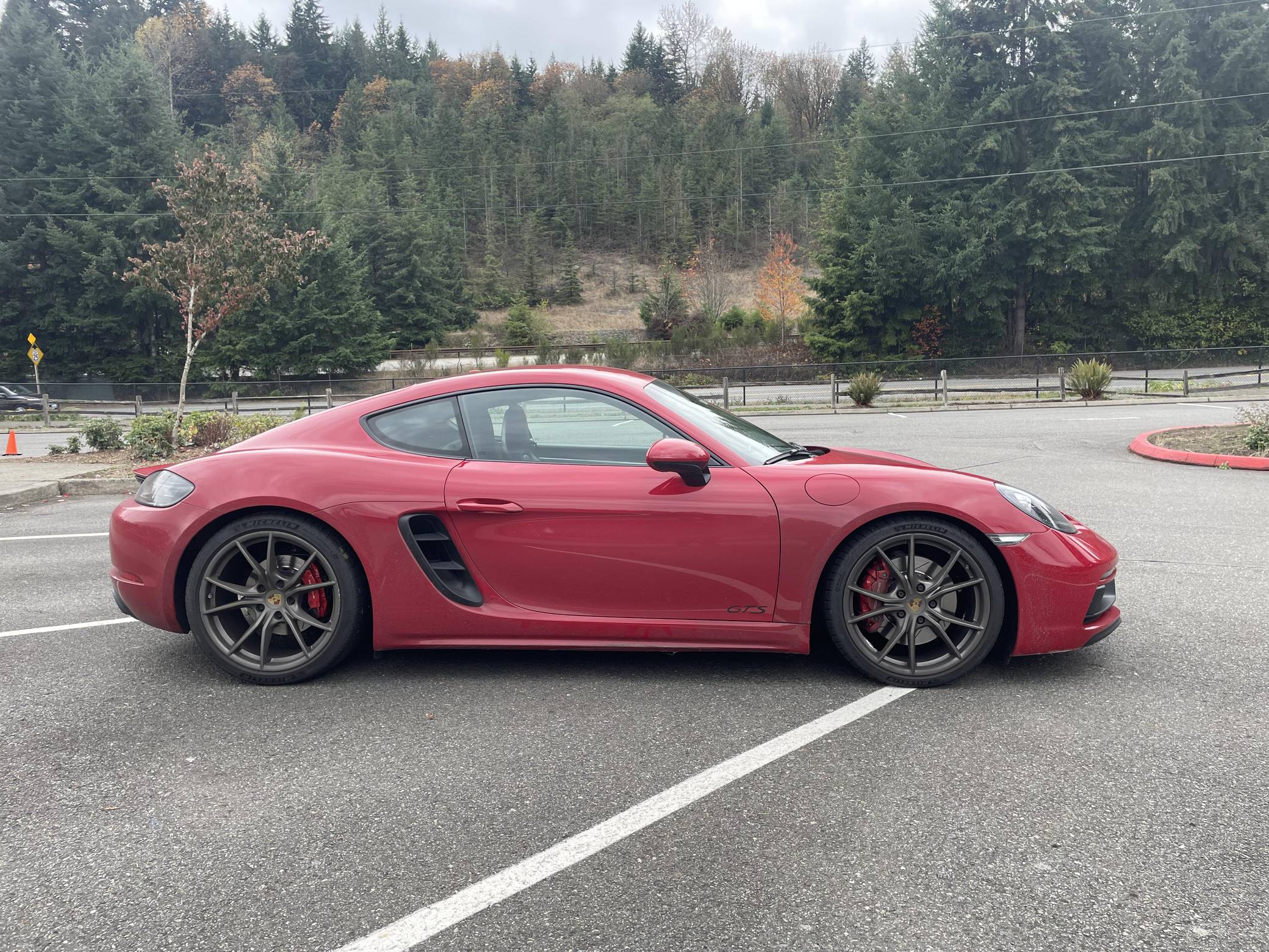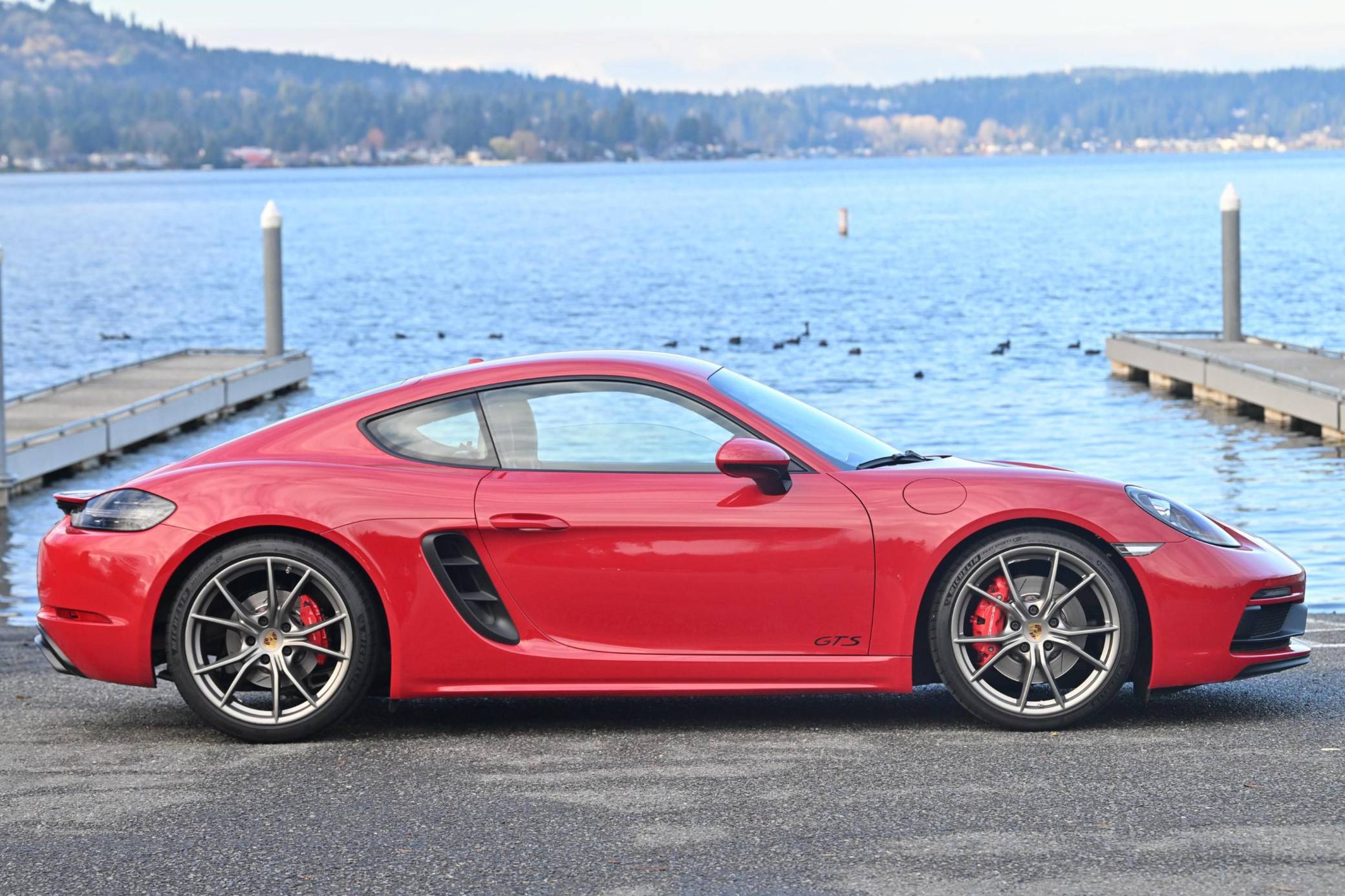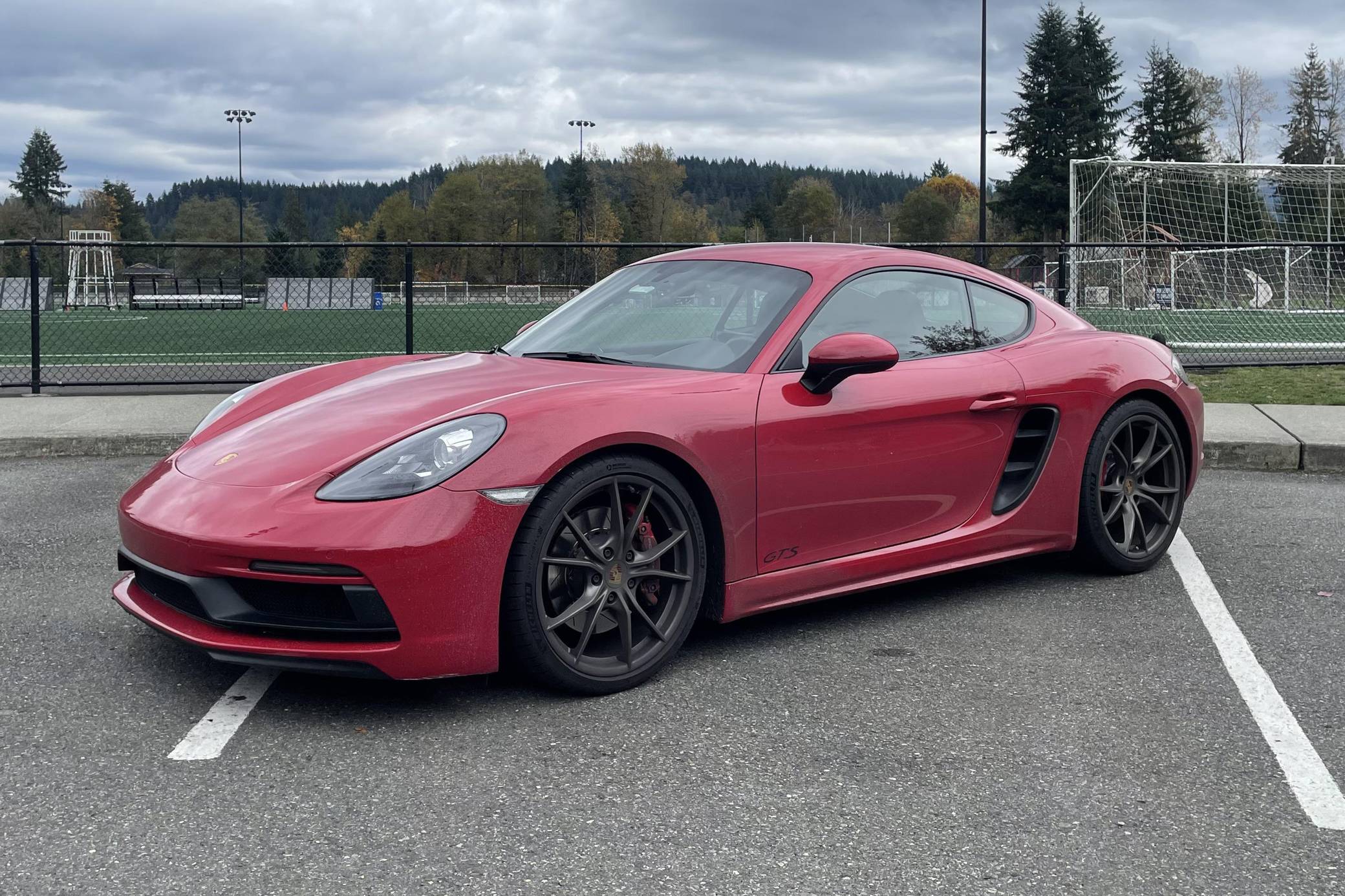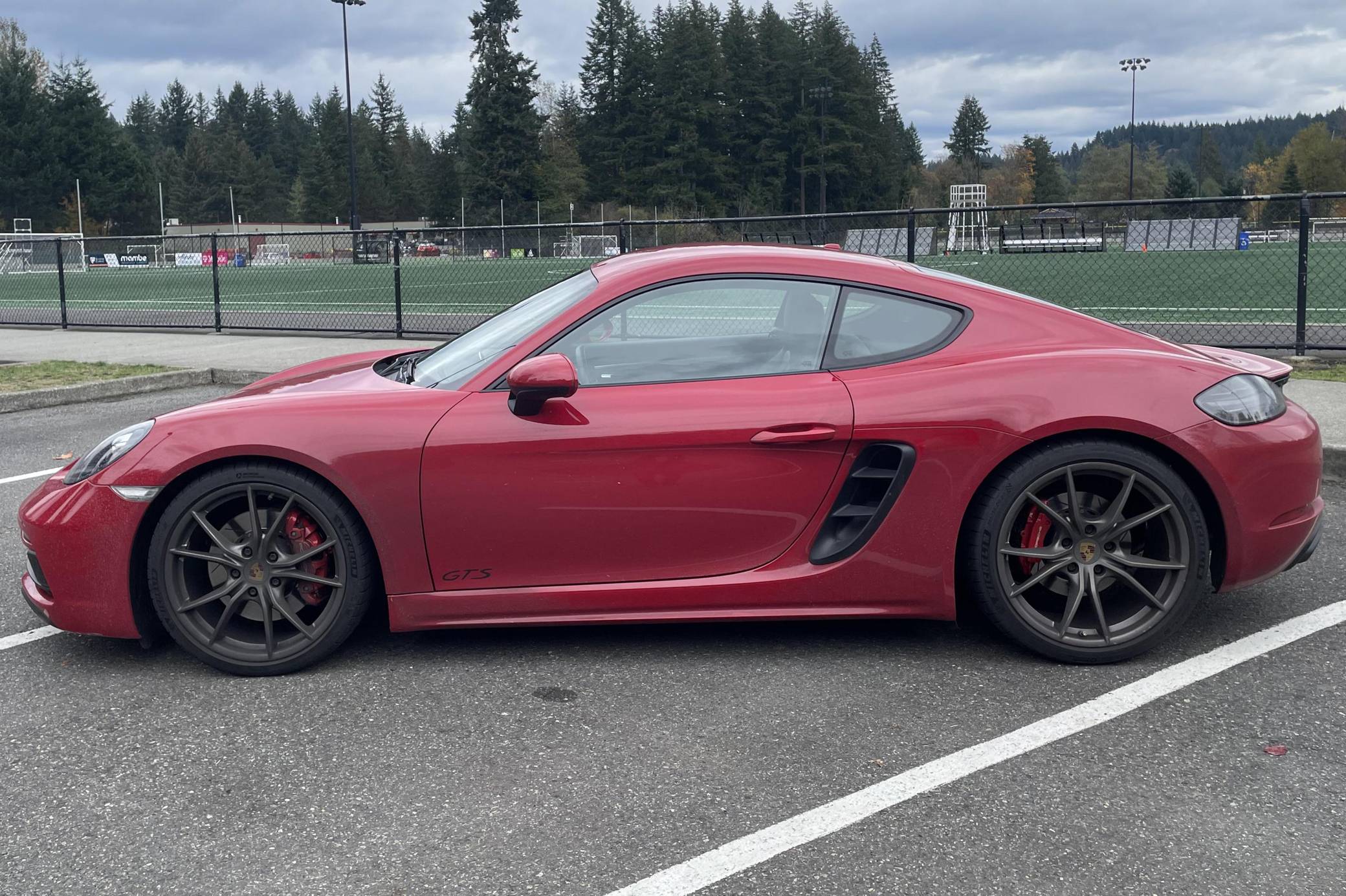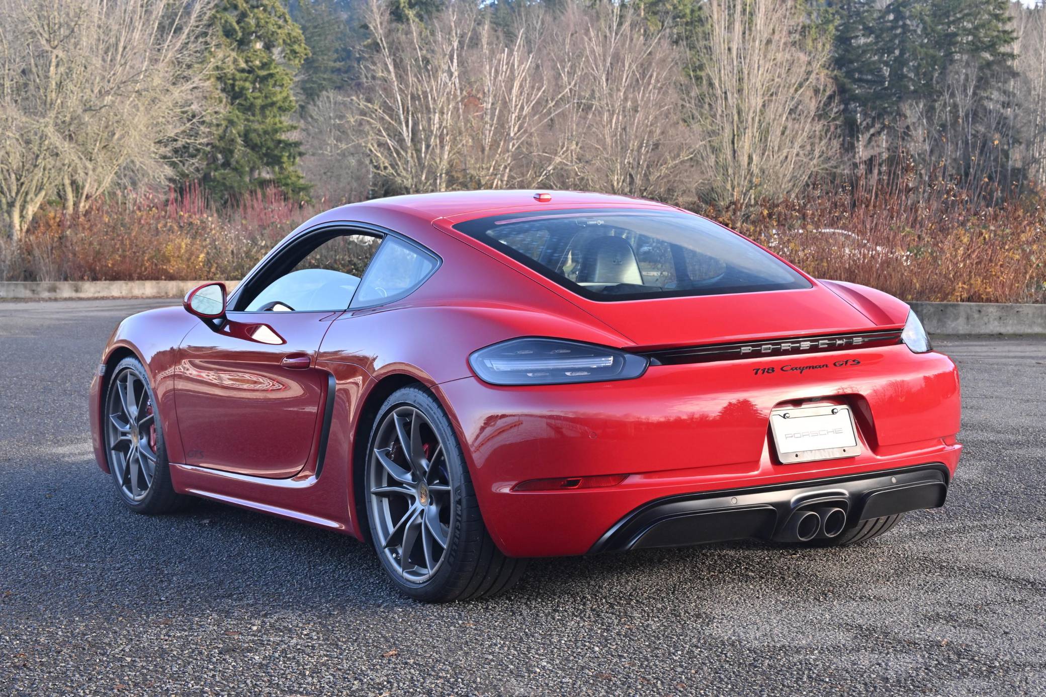 THIS. . . is a 2019 Porsche 718 Cayman GTS, finished in Carmine Red with a black interior. This Cayman is equipped with the desirable 6-speed manual transmission. A build sheet is provided in the photo gallery, and a partial list of notable equipment includes 20-inch Carrera S wheels painted in Satin Platinum, Porsche Active Suspension Management (PASM) sport suspension, a sport exhaust system, an aluminum-look fuel cap, leather upholstery, a GT Sport steering wheel, and a navigation system. Modifications reported by the seller include upgraded brake rotors and pads, paint protection film on the front end, aftermarket components in the sound system, and more listed below. The "982" generation 718 Cayman debuted for the 2017 model year as an evolution on the Cayman nameplate, with the "718" designation paying homage to Porsche's 718 race cars from the 1950s. The model's powerplant was updated with a turbocharged 4-cylinder engine, and the result was a more powerful and more efficient car than its predecessor. The GTS model received a more powerful 2. 5-liter motor, as well as a Porsche Sport Exhaust and PASM adaptive suspension as standard equipment, among other upgrades over the S model. Power comes from a mid-mounted 2. 5-liter turbocharged flat-4, rated at 365 horsepower and 309 lb-ft of torque. Output is sent to the rear wheels via a 6-speed manual transmission.
