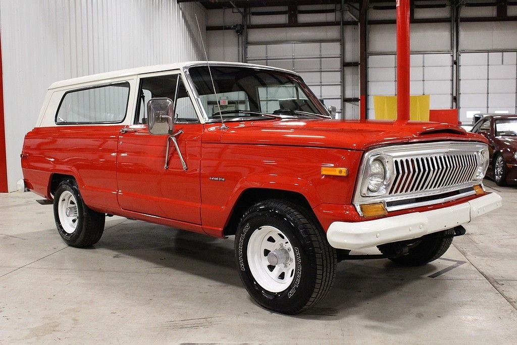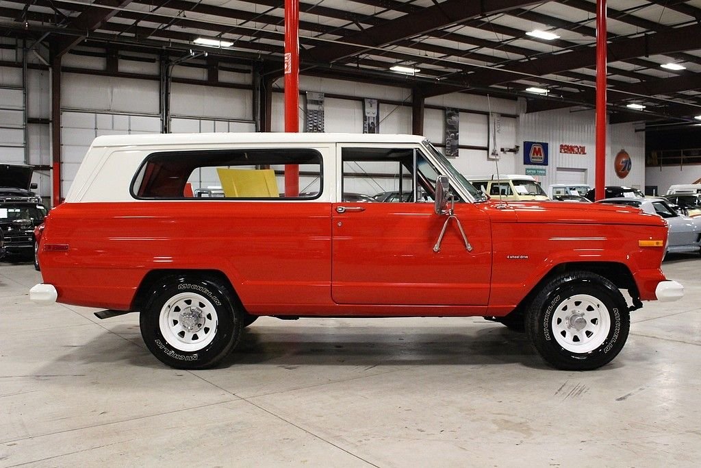 The Cherokee “SJ” was produced from 1974 to 1983 and was promoted as the “sporty” version of the Jeep Wagons. For the first time the term “Sport Utility” appears, in the 1974 sales brochure. These 4x4 vehicles were rugged but comfortable enough for daily use and are the predecessors to the modern SUV boom in the 1990's. This '78 Jeep Cherokee Sport was purchased out of a collection that was stored indoors for a long period of time. The current owner took this clean example and fully restored it this year. This Cherokee has tons of curb appeal with a Robust Red and White paint combination. It's powered by a believed to be original 360ci V8 engine and 3-speed automatic transmission. Inside and out the truck retains a very original appearance, but does have some upgrades for performance and reliability. It features a new dual exhaust, MSD ignition, harmonic balancer, new cam shaft, new pistons, new valves, Holley carburetor, Edelbrock intake, new upholstery, new gas tank, and a new fuel pump. This is a rarely found body style and this one is in excellent condition inside, outside, and underneath.