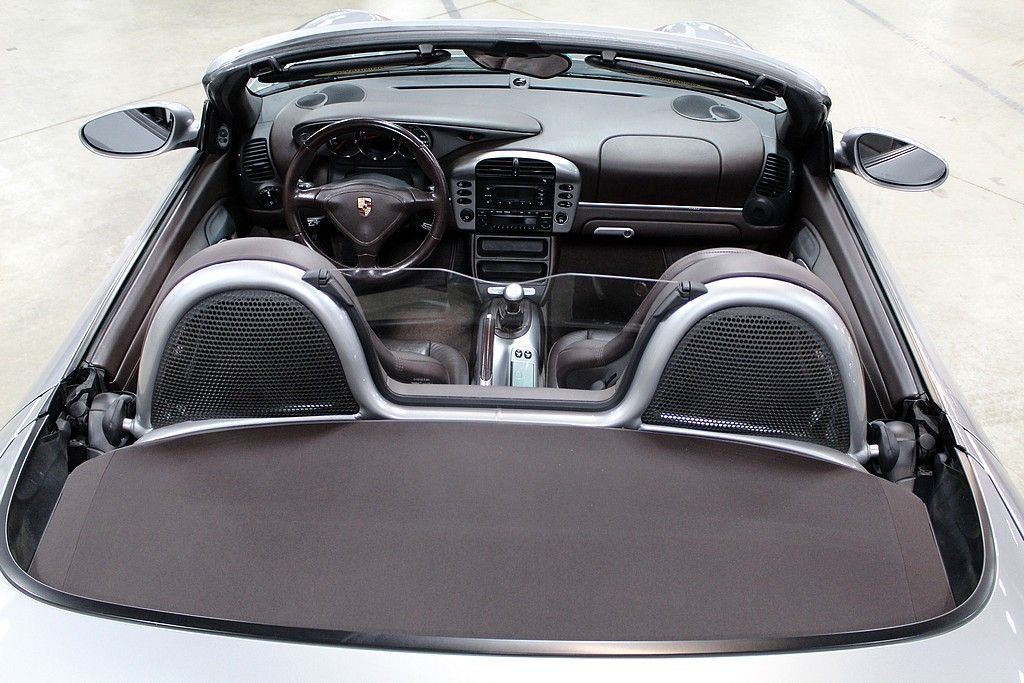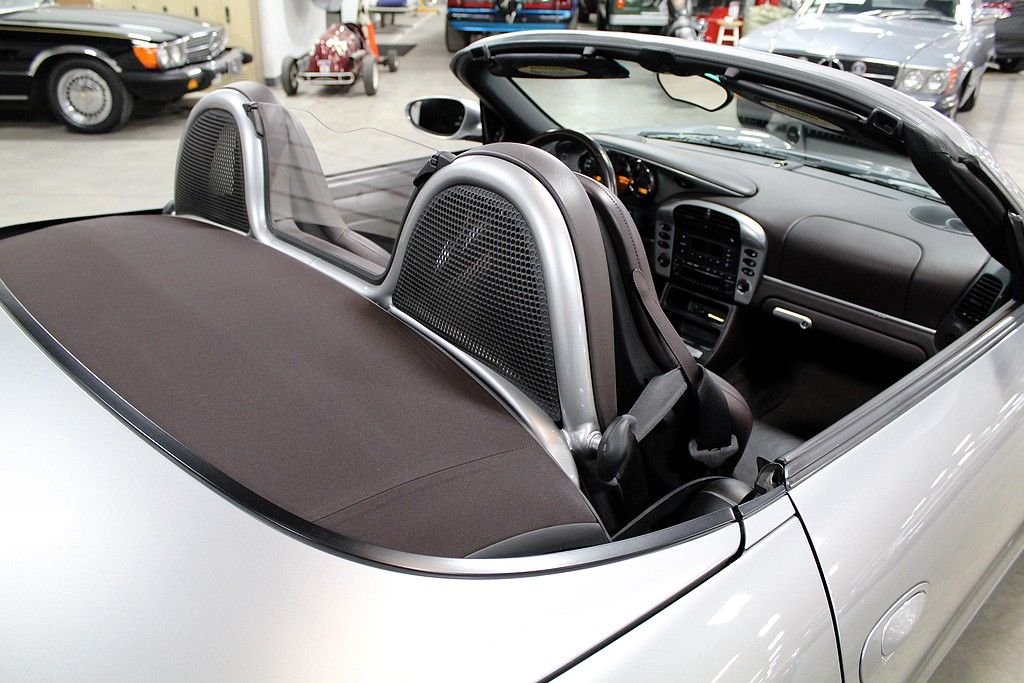 The Boxster is Porsches first road vehicle to be originally designed as a roadster since the 550 Spyder of the 1950's. The first generation Boxster was introduced in 1996 and was powered buy a 2.5 Litre flat 6-cylinder engine and has been significantly upgraded ever since. The Boxster name is derived from the word “boxer”, referring to the vehicle's horizontally opposed engine. The Boxster received a minor facelift and other subtle changes in 2003 but the biggest change came in styling and performance in 2004 with the introduction of 550 Spyder 50th anniversary edition. Only 1953 cars were produced and were all painted the GT Silver Metallic, had unique cocoa-brown full leather inerior as well as special paintwork. A high-end BOSE sound system, two-tone grey and silver 18” Carrera wheels, sport exhaust and the M030 sport suspension. The car offered here today is a two-owner Special Edition car that received a brand new engine under warranty from Porsche in 2005. All work performed was documented from Fred Lavery in Birmingham, MI. The receipts with new engine numbers come with the car. This car is in wonderful condition that operates flawlessly. This car being one of 1953 is very worthy of collector status.