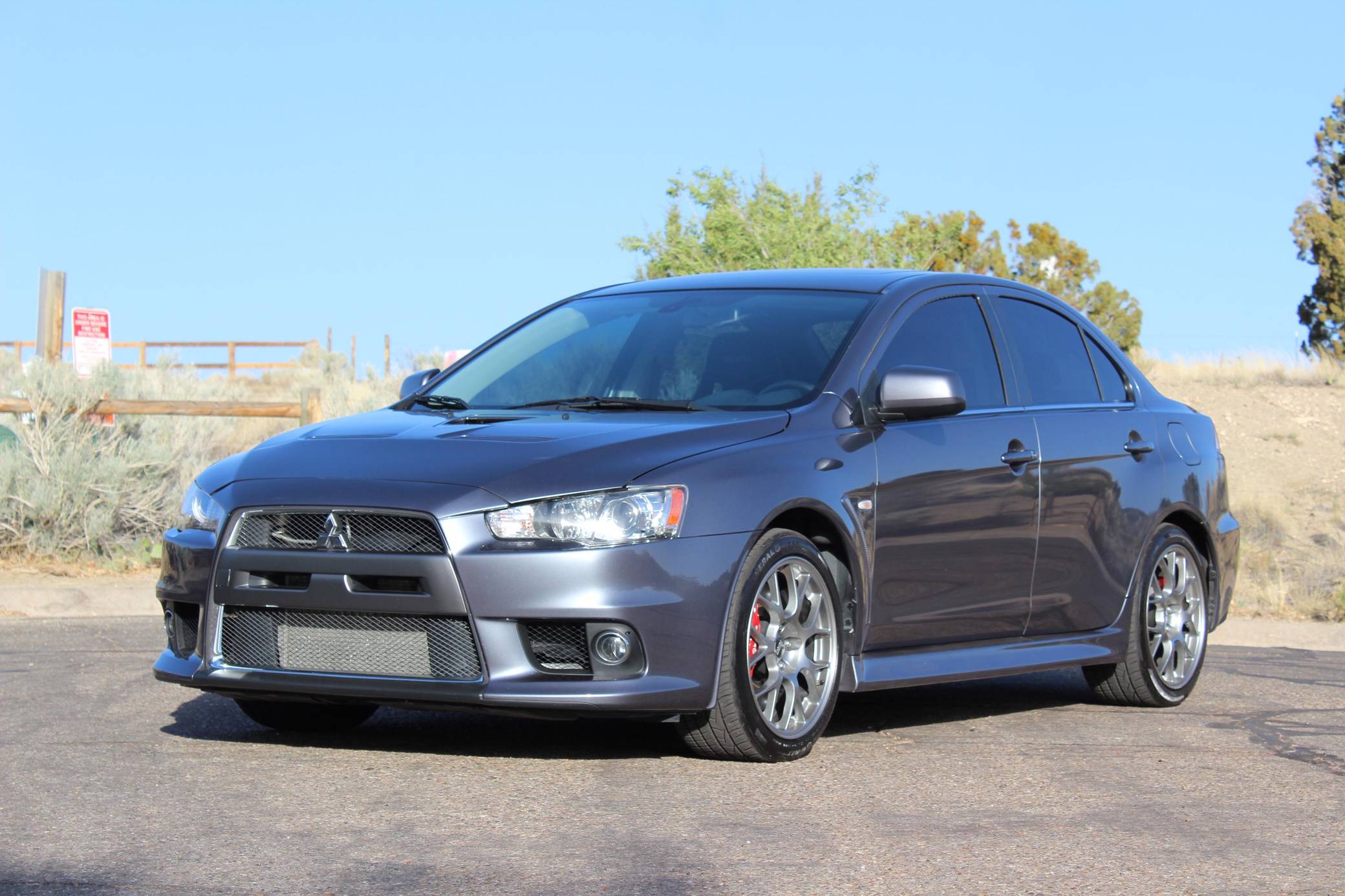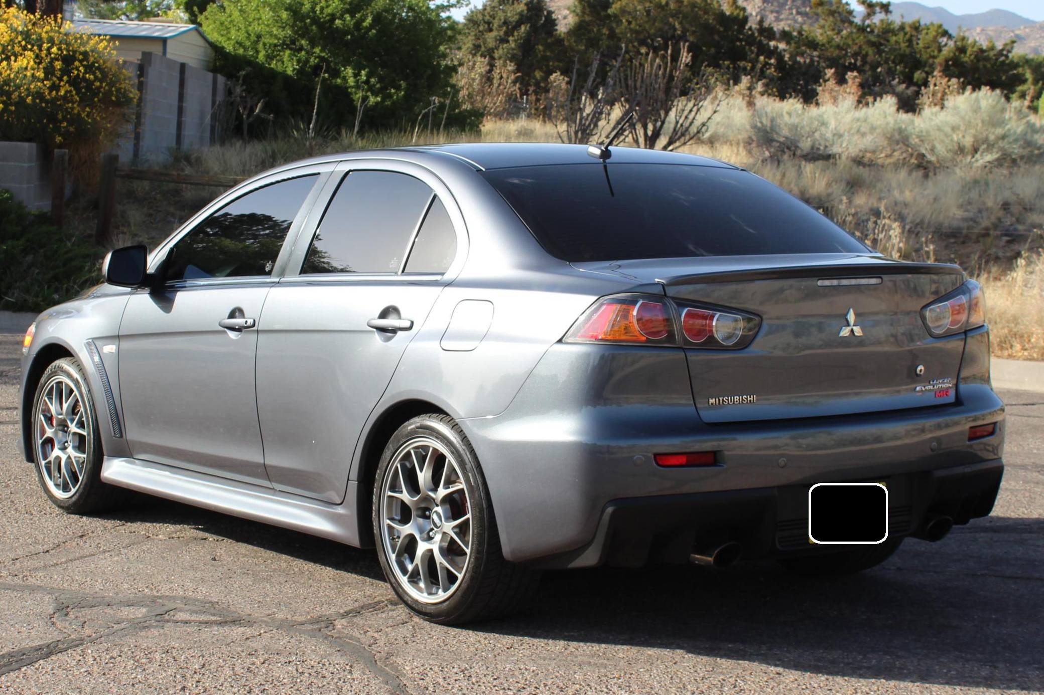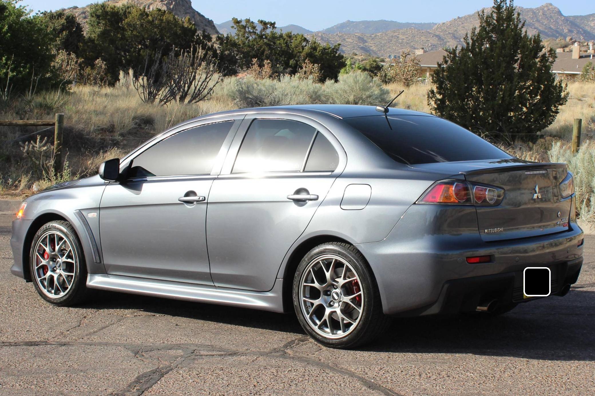 2010 Mitsubishi Lancer Evolution X MR, finished in Graphite Gray with a black interior. The odometer currently indicates approximately 63,200 miles. Modifications reported by the seller are limited to StopTech front brake rotors, GiroDisc brake pads, and tinted windows. Mitsubishi's 10th and final Lancer Evolution arrived for the 2008 model year. It gained a new, more powerful engine, a revised suspension system, and a design inspired by sharks and fighter jets, according to the manufacturer. Mitsubishi canceled the Lancer Evolution in 2016, and it all but confirmed the model will not return in the foreseeable future. Power comes from a 2. 0-liter turbocharged inline-4, rated at 291 horsepower and 300 lb-ft of torque. Output is sent to all four wheels via a 6-speed dual-clutch automatic transmission and an all-wheel drive system.