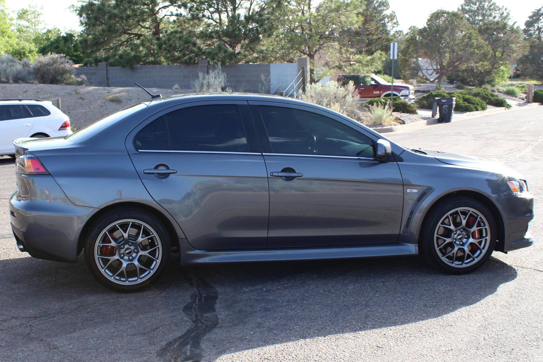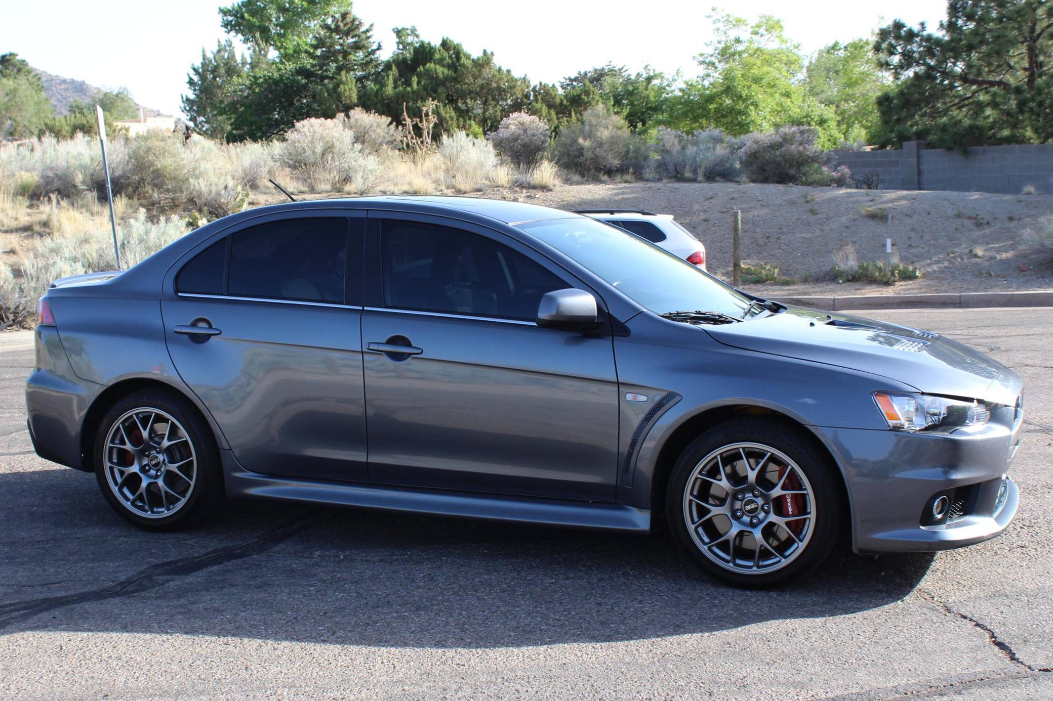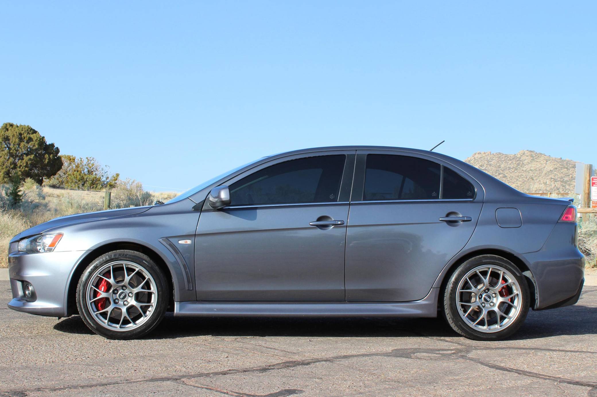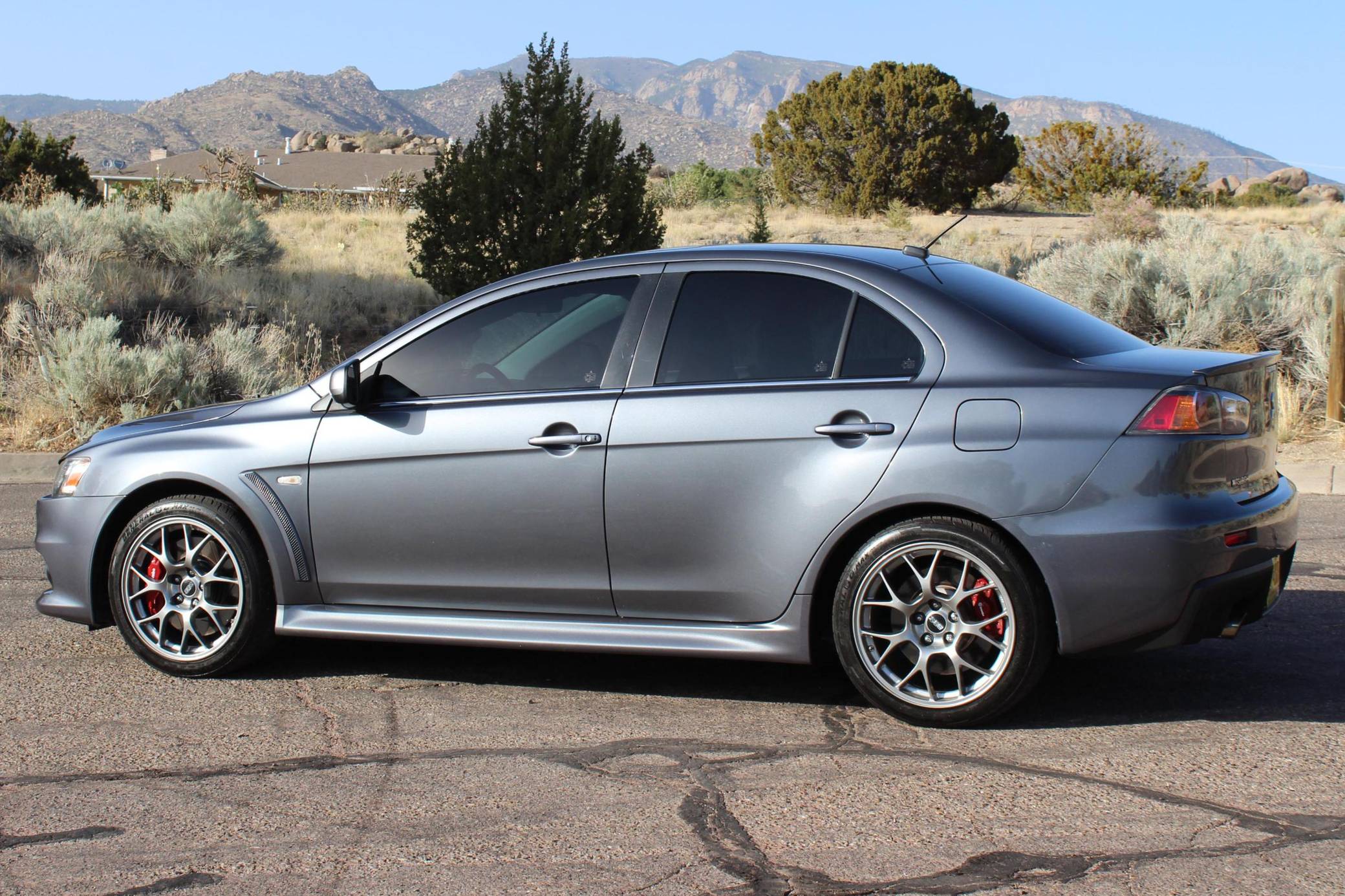 2010 Mitsubishi Lancer Evolution X MR, finished in Graphite Gray with a black interior. The odometer currently indicates approximately 63,200 miles. Modifications reported by the seller are limited to StopTech front brake rotors, GiroDisc brake pads, and tinted windows. Mitsubishi's 10th and final Lancer Evolution arrived for the 2008 model year. It gained a new, more powerful engine, a revised suspension system, and a design inspired by sharks and fighter jets, according to the manufacturer. Mitsubishi canceled the Lancer Evolution in 2016, and it all but confirmed the model will not return in the foreseeable future. Power comes from a 2. 0-liter turbocharged inline-4, rated at 291 horsepower and 300 lb-ft of torque. Output is sent to all four wheels via a 6-speed dual-clutch automatic transmission and an all-wheel drive system.