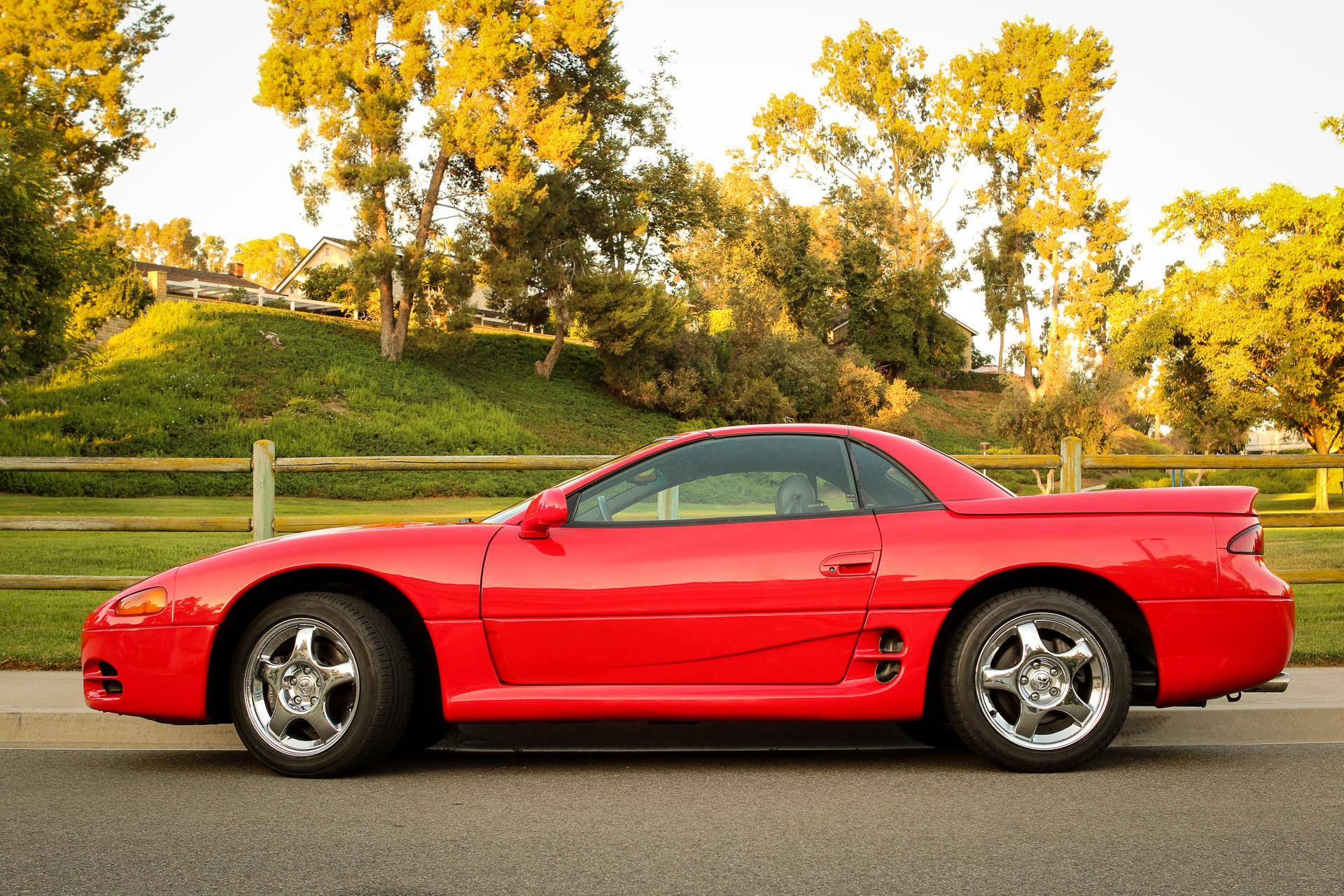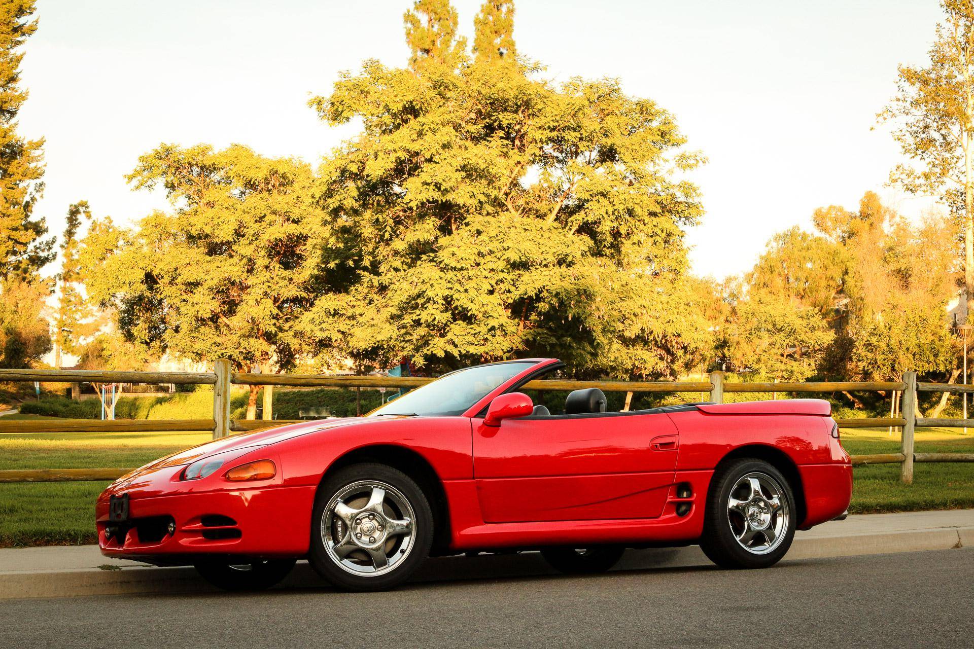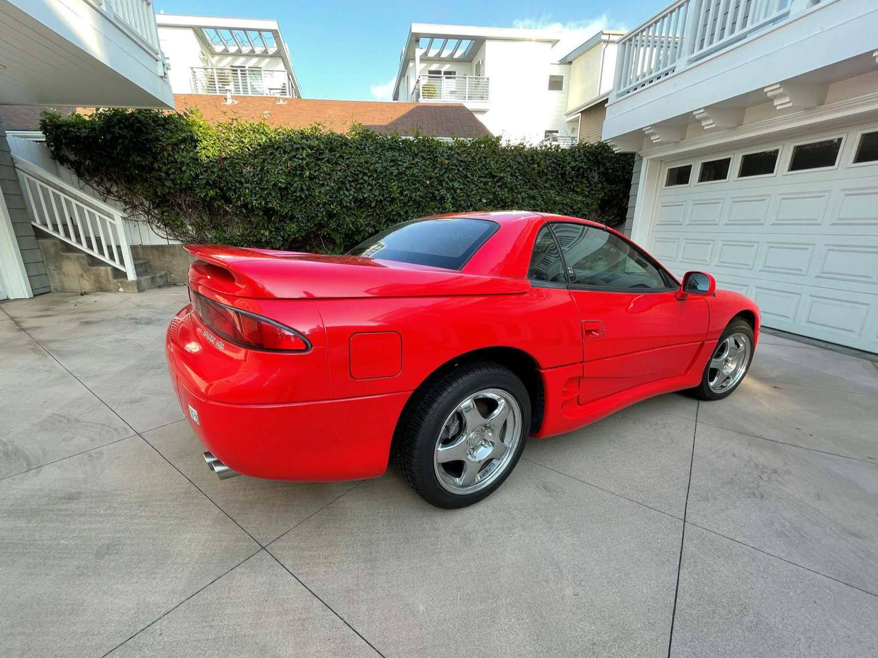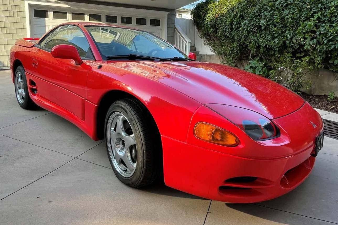 THIS… is a 1995 Mitsubishi 3000GT VR-4 Spyder, finished in Caracas Red with a gray interior. The odometer on this 3000GT VR-4 displays approximately 13,100 miles, and it's equipped with a 6-speed manual transmission. Factory equipment includes 17-inch alloy wheels, a power-folding hardtop, all-wheel drive, 4-wheel steering, automatic climate control, a multifunction steering wheel, and more as detailed below. No modifications have been reported by the seller. The seller states that this car was originally purchased by the then President of the Federated States of Micronesia for his son, who was studying at the time at the University of Hawaii, in Honolulu. The car is currently located in Southern California. Service documentation in the photo gallery indicates that this Spyder recently had a major service that included the replacement of the timing belt, water pump, fuel pump, and more. As Mitsubishi's entrant in the 1990s' battle for turbocharged supremacy, the VR-4 touted all-wheel-drive, 4-wheel steering, and an electronically-controlled suspension. The 3000GT Spyder was produced only for the 1995 and 1996 model years and they are exceptionally rare; according to Mitsubishi Motors North America, only 604 Mitsubishi 3000GT VR-4 Spyders were produced. Power comes from a 3. 0-liter twin-turbocharged V6, rated at 320 horsepower and 315 lb-ft of torque. Output is directed to all four wheels through a 6-speed manual transmission.