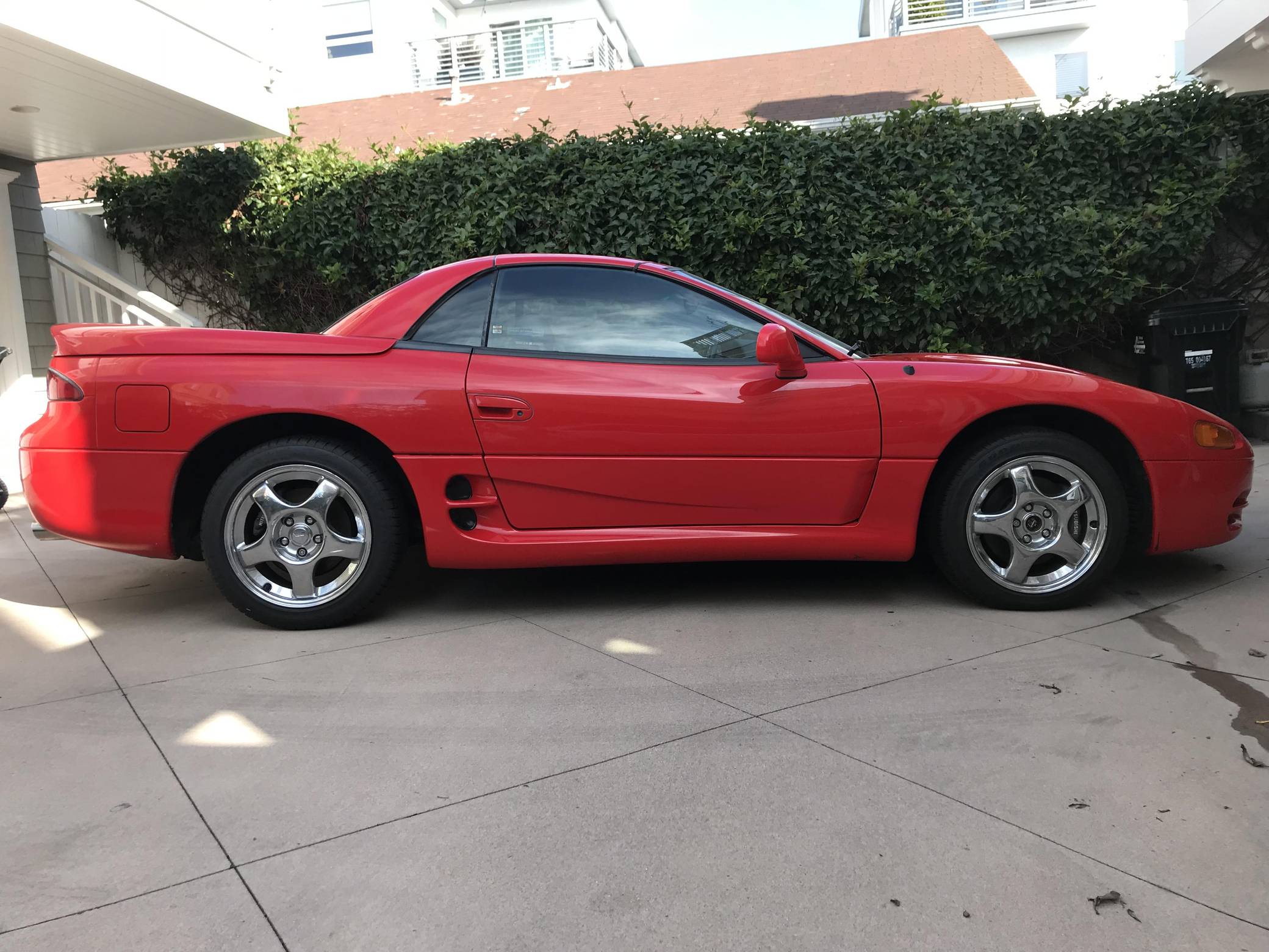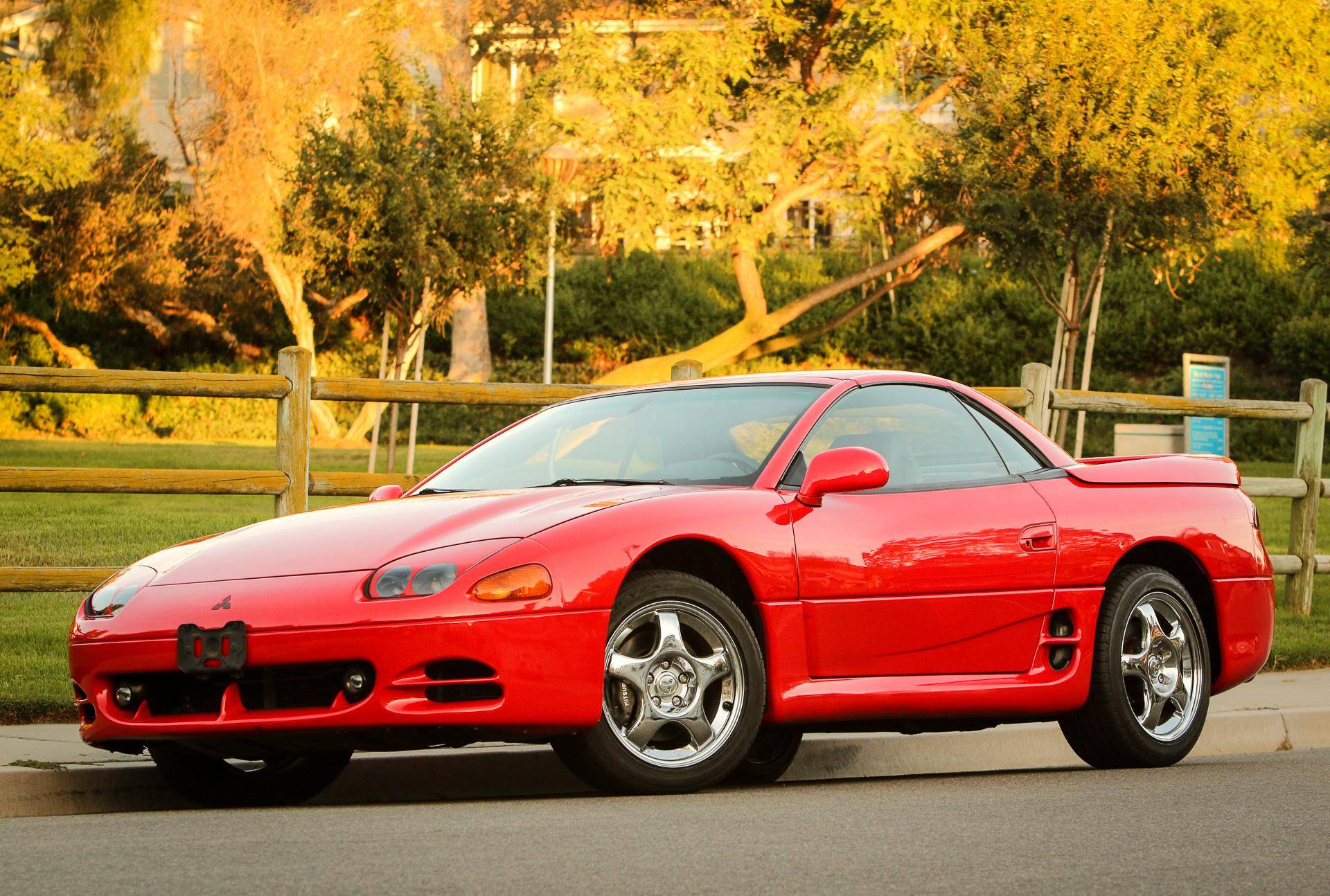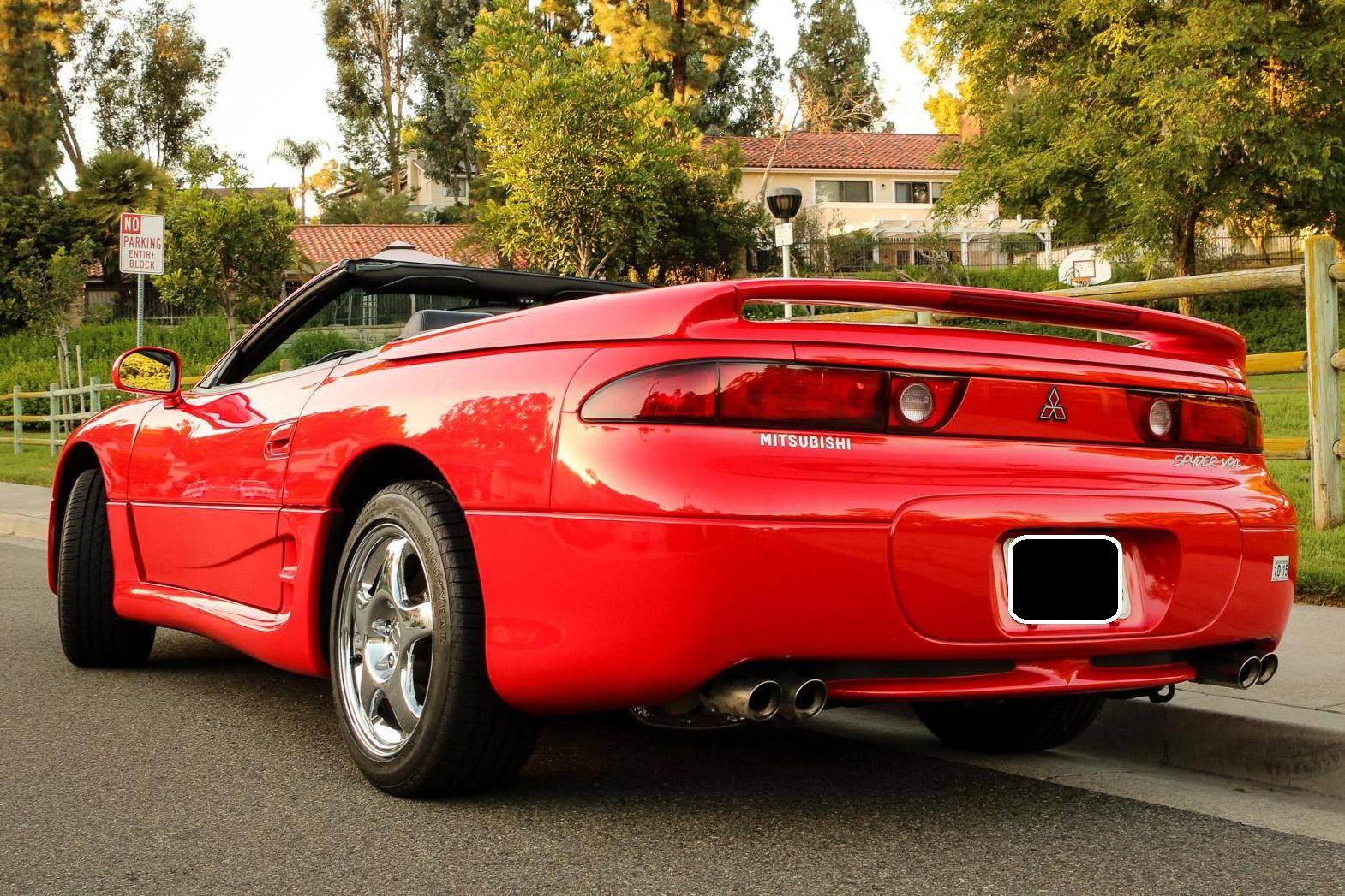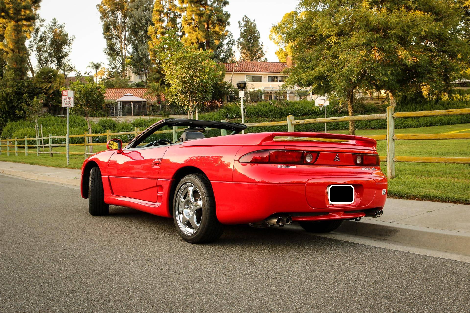 THIS… is a 1995 Mitsubishi 3000GT VR-4 Spyder, finished in Caracas Red with a gray interior. The odometer on this 3000GT VR-4 displays approximately 13,100 miles, and it's equipped with a 6-speed manual transmission. Factory equipment includes 17-inch alloy wheels, a power-folding hardtop, all-wheel drive, 4-wheel steering, automatic climate control, a multifunction steering wheel, and more as detailed below. No modifications have been reported by the seller. The seller states that this car was originally purchased by the then President of the Federated States of Micronesia for his son, who was studying at the time at the University of Hawaii, in Honolulu. The car is currently located in Southern California. Service documentation in the photo gallery indicates that this Spyder recently had a major service that included the replacement of the timing belt, water pump, fuel pump, and more. As Mitsubishi's entrant in the 1990s' battle for turbocharged supremacy, the VR-4 touted all-wheel-drive, 4-wheel steering, and an electronically-controlled suspension. The 3000GT Spyder was produced only for the 1995 and 1996 model years and they are exceptionally rare; according to Mitsubishi Motors North America, only 604 Mitsubishi 3000GT VR-4 Spyders were produced. Power comes from a 3. 0-liter twin-turbocharged V6, rated at 320 horsepower and 315 lb-ft of torque. Output is directed to all four wheels through a 6-speed manual transmission.