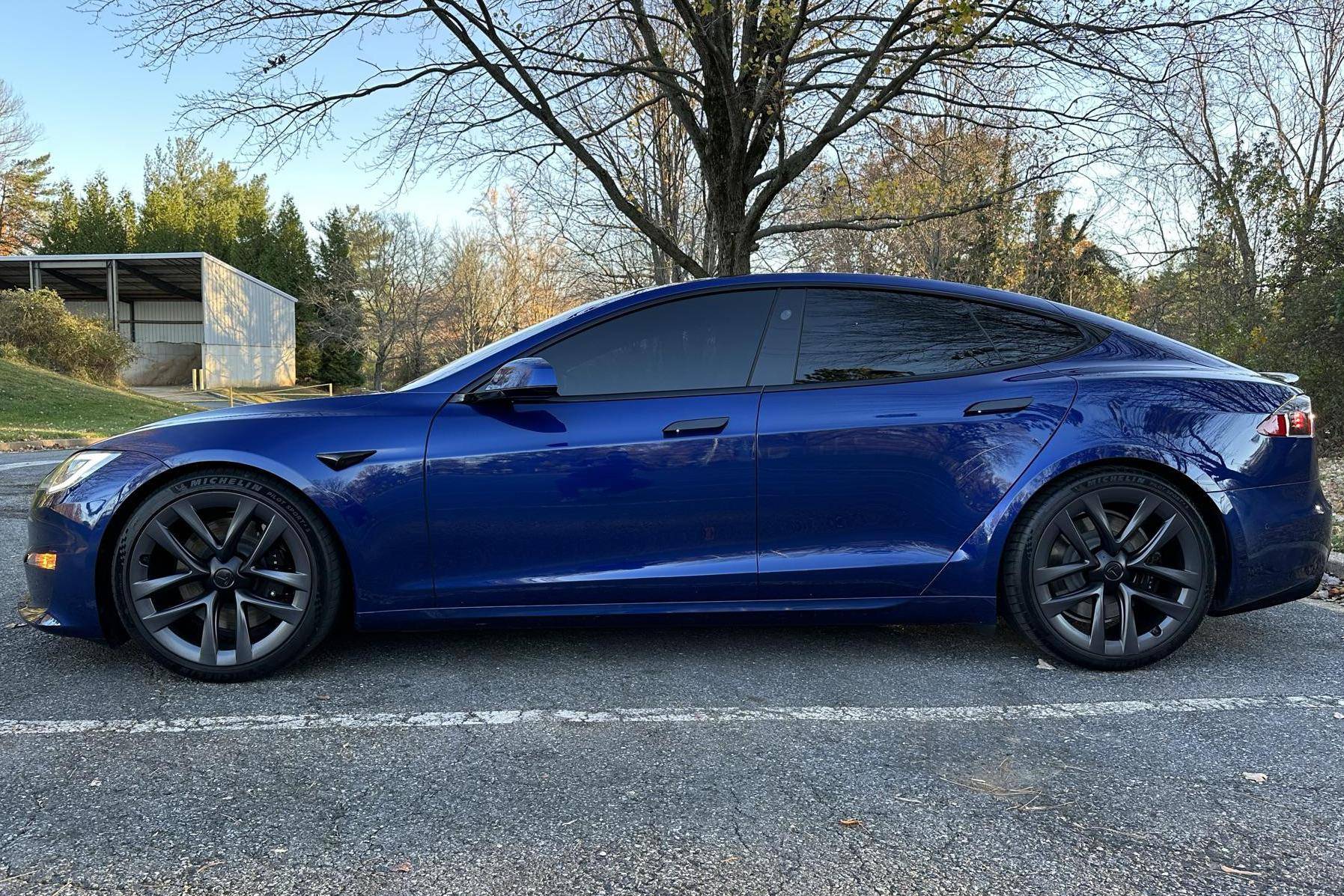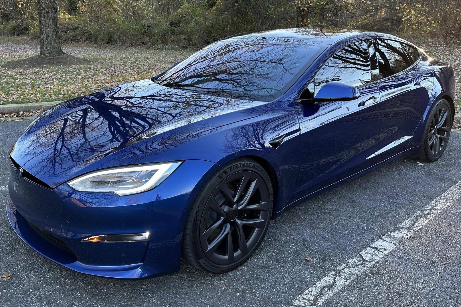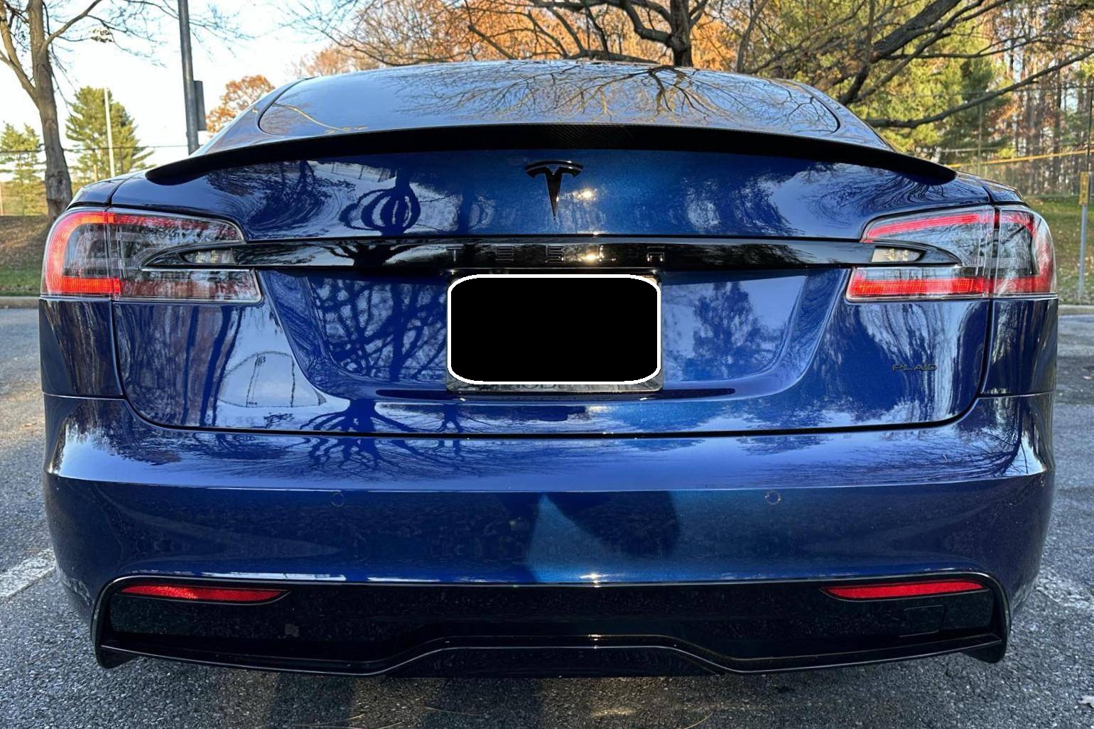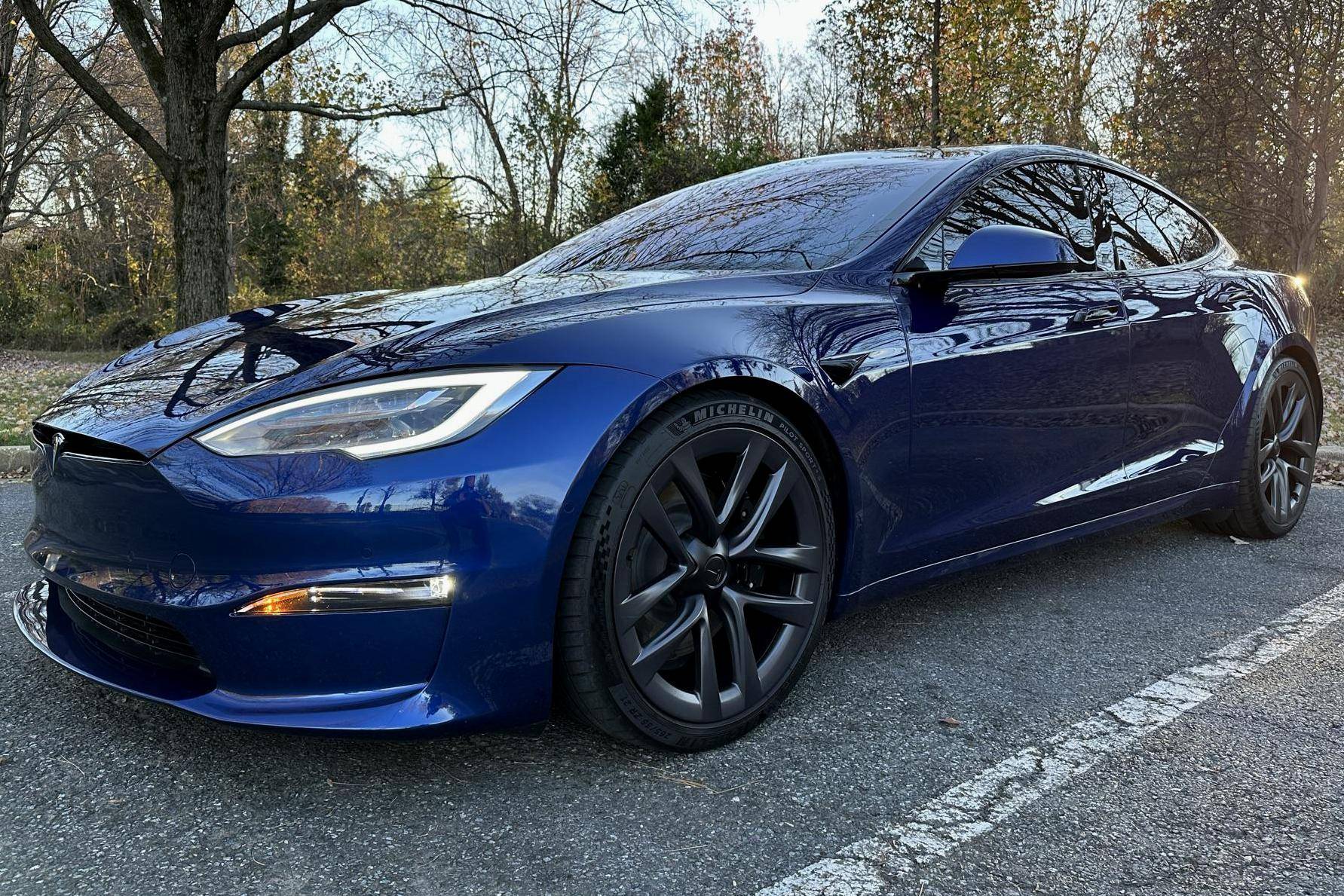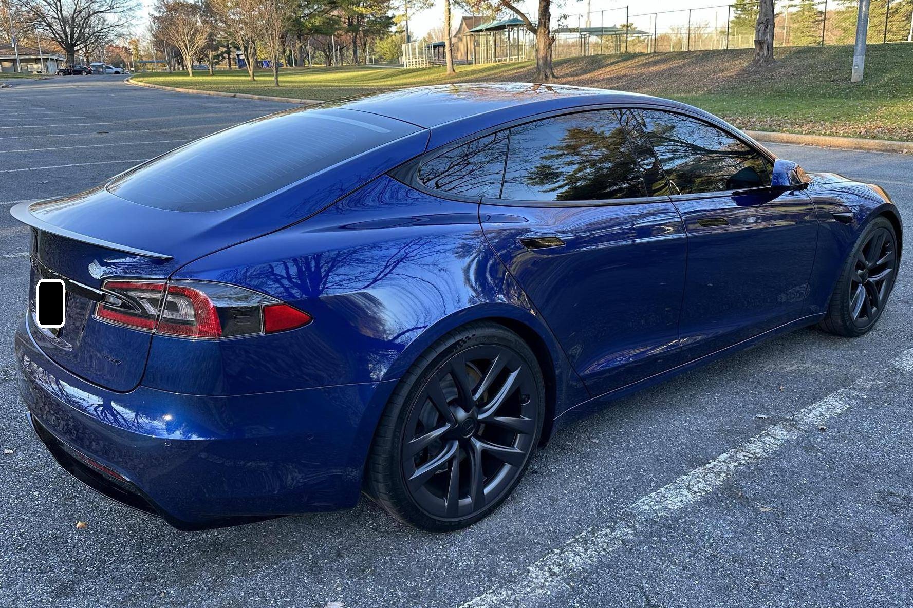 THIS. . . is a 2021 Tesla Model S Plaid, finished in Deep Blue Metallic with a black interior. According to the order agreement pictured in the photo gallery, this Tesla carried a total price of $137,290, including the $10,000 Full Self-Driving Capability option. Notable equipment includes 21-inch "Arachnid" wheels, Autopilot technology, a glass roof, leather upholstery, heated and ventilated front seats, heated rear seats, a yoke steering wheel, a 17-inch front touchscreen, 8 cameras, and more as detailed below. Modifications reported by the seller are limited to tinted windows and exterior paint protection film. Tesla introduced the Model S, the first car it developed in-house, in 2012. Still available today, it was one of the first cars that proved EVs could be more than overgrown golf carts. Released in 2021, the Plaid version of the Model S stands proud as one of the quickest production cars on the planet thanks to an immensely powerful drivetrain. Tesla pegs the sedan's 0-to-60 mph time at slightly under 2 seconds, a figure confirmed by independent tests. Power comes from three electric motors, which draw electricity from a 100-kilowatt-hour lithium-ion battery pack that moves all four wheels with 1,020 horsepower and 1,050 lb-ft of torque, according to tests performed by Motor Trend. The EPA gave the Plaid variant a maximum driving range of 396 miles when equipped with 19-inch wheels, and 348 miles when fitted with 21-inch wheels.