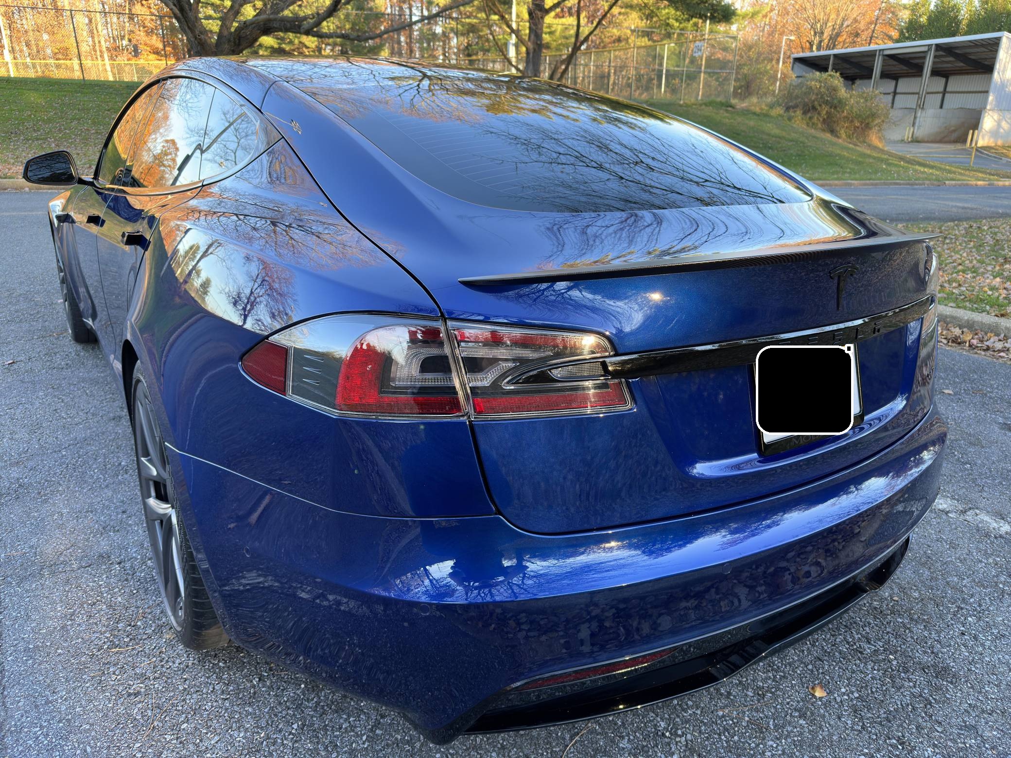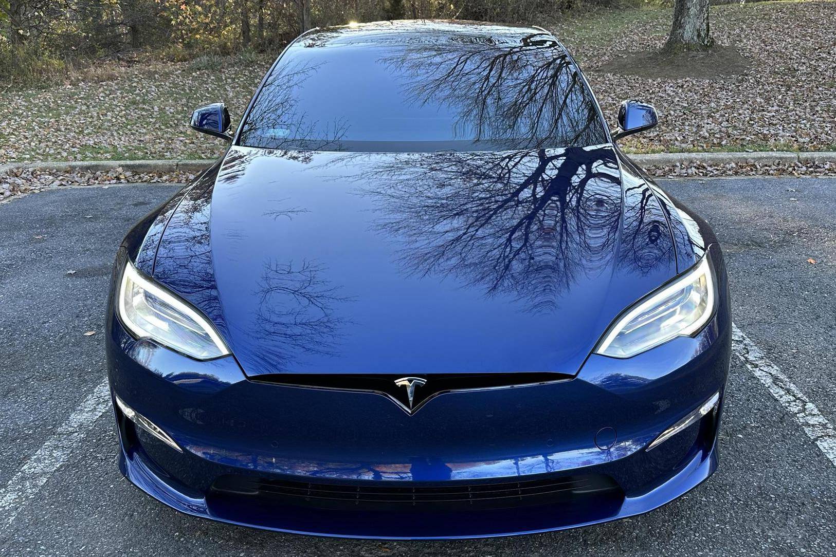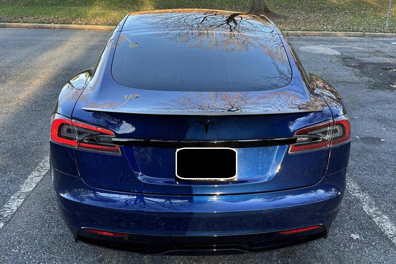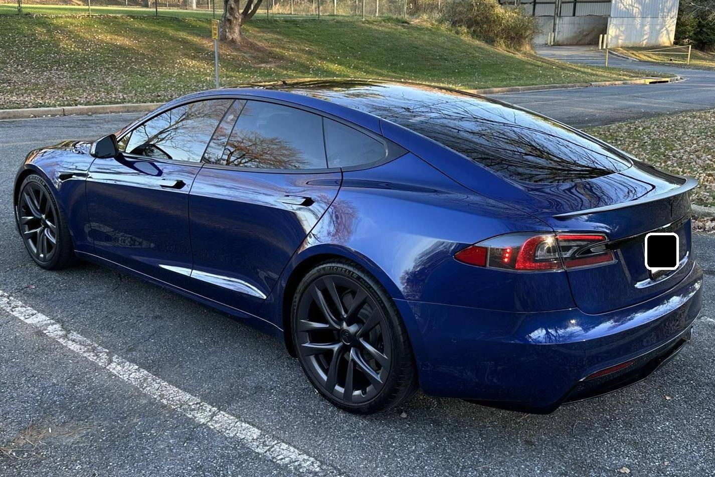 THIS. . . is a 2021 Tesla Model S Plaid, finished in Deep Blue Metallic with a black interior. According to the order agreement pictured in the photo gallery, this Tesla carried a total price of $137,290, including the $10,000 Full Self-Driving Capability option. Notable equipment includes 21-inch "Arachnid" wheels, Autopilot technology, a glass roof, leather upholstery, heated and ventilated front seats, heated rear seats, a yoke steering wheel, a 17-inch front touchscreen, 8 cameras, and more as detailed below. Modifications reported by the seller are limited to tinted windows and exterior paint protection film. Tesla introduced the Model S, the first car it developed in-house, in 2012. Still available today, it was one of the first cars that proved EVs could be more than overgrown golf carts. Released in 2021, the Plaid version of the Model S stands proud as one of the quickest production cars on the planet thanks to an immensely powerful drivetrain. Tesla pegs the sedan's 0-to-60 mph time at slightly under 2 seconds, a figure confirmed by independent tests. Power comes from three electric motors, which draw electricity from a 100-kilowatt-hour lithium-ion battery pack that moves all four wheels with 1,020 horsepower and 1,050 lb-ft of torque, according to tests performed by Motor Trend. The EPA gave the Plaid variant a maximum driving range of 396 miles when equipped with 19-inch wheels, and 348 miles when fitted with 21-inch wheels.