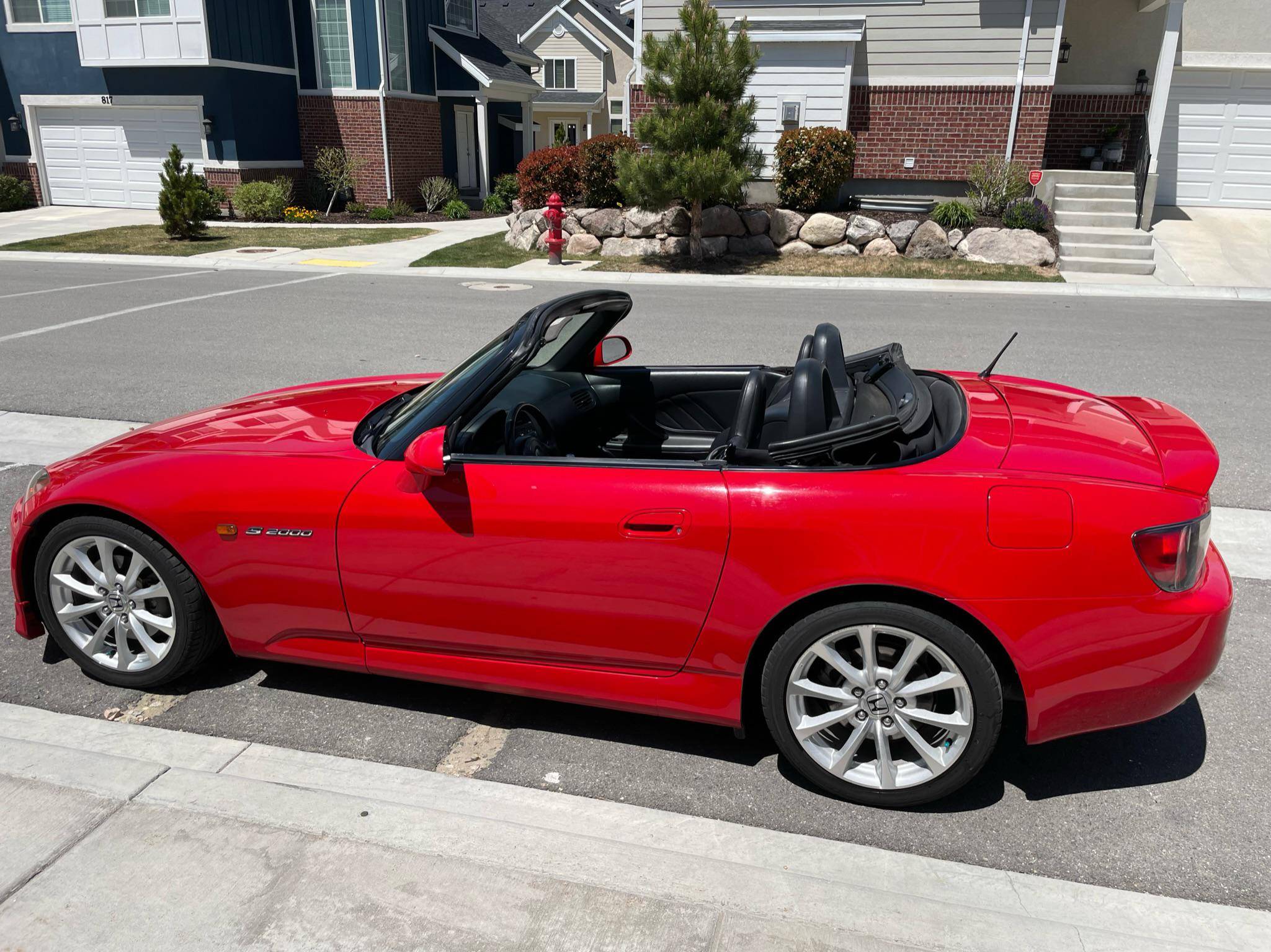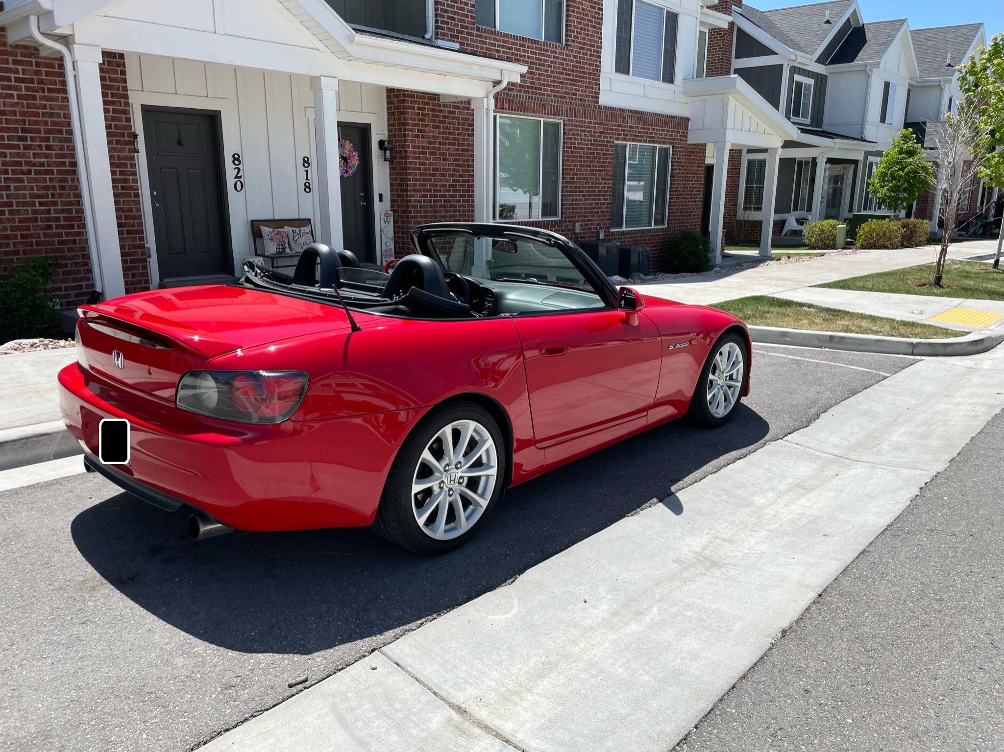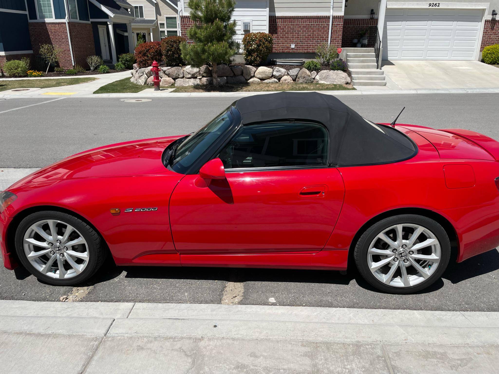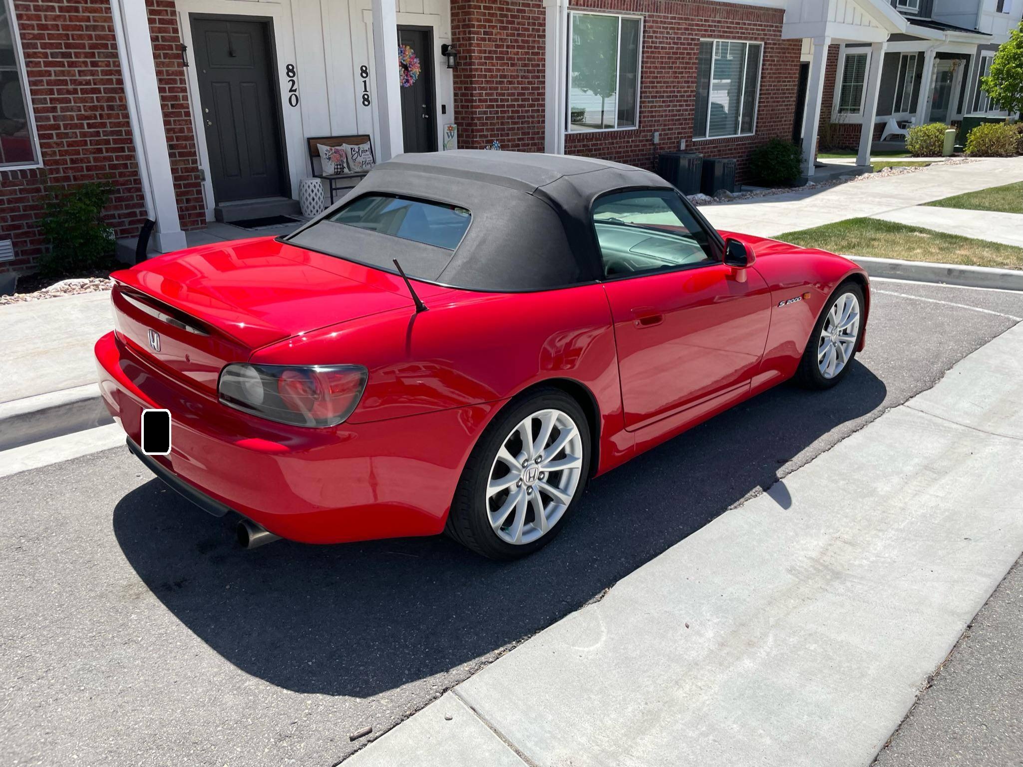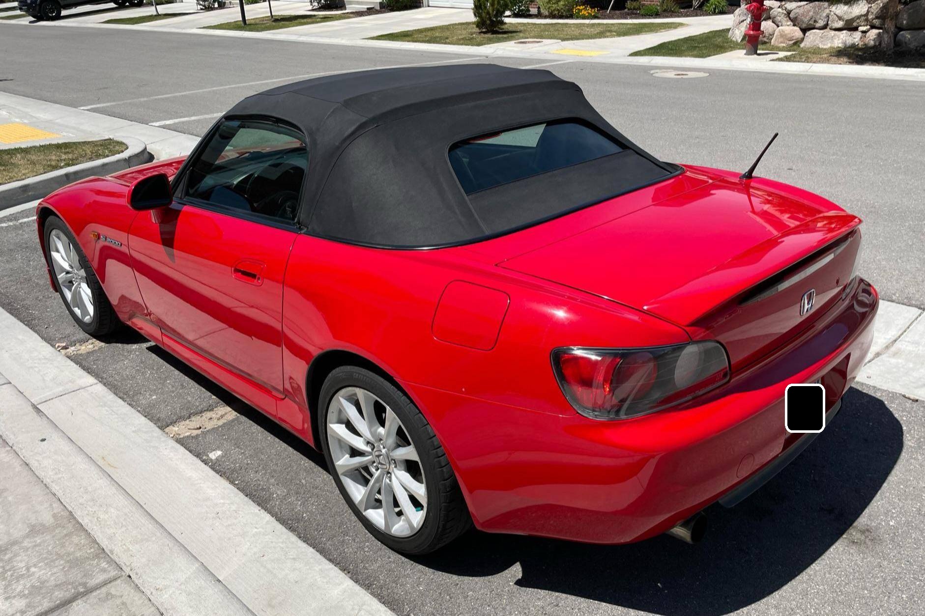 2000 Honda S2000, finished in New Formula Red with a black soft top and a black interior. The list of modifications reported by the seller include a Ballade Sports high-flow catalytic converter, a 6-speed manual transmission from a newer "AP2" S2000, an Advanced Clutch Technology heavy-duty clutch kit, 17-inch wheels from an "AP2" S2000, KW automotive V2 coilovers, and an Alpine CD player. More details about the modifications made to this S2000 are provided below, and some of the removed factory parts are pictured in the gallery and included in the sale. Factory equipment includes a limited-slip differential, HID headlights, a power-operated soft top, leather upholstery, a wind deflector, air conditioning, and cruise control. Honda introduced the S2000 for the 2000 model year to celebrate its 50th anniversary. Available only as a convertible, it offered a 50/50 weight distribution thanks in part to an engine mounted entirely behind the front axle and it stood out as one of the best-handling cars in its segment. Honda called the original S2000 "AP1" internally; it released an updated model called "AP2" for the 2004 model year. Power comes from a 2. 0-liter 4-cylinder engine, rated at 240 horsepower and 153 lb-ft of torque. It spins the rear wheels via a 6-speed manual transmission.