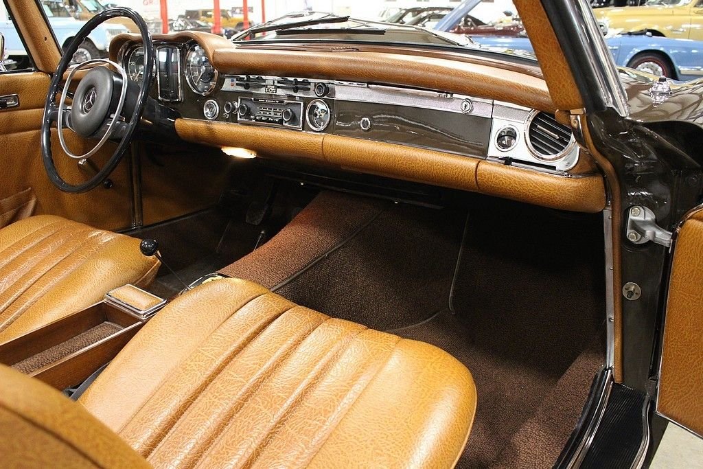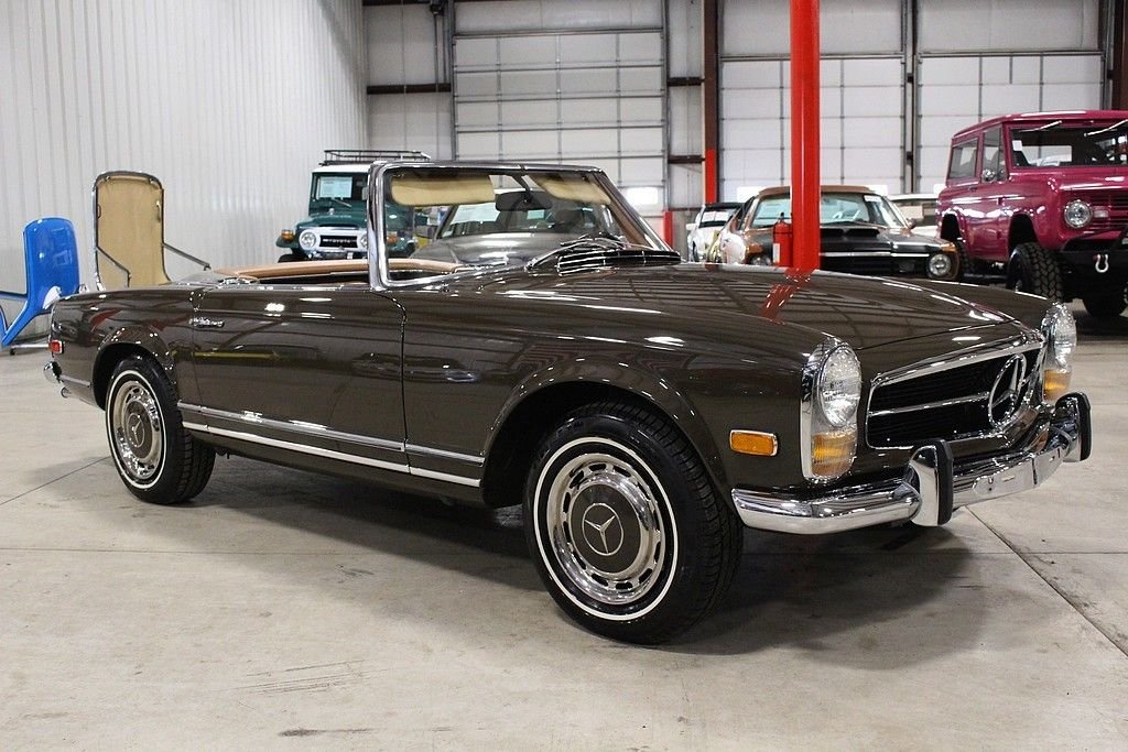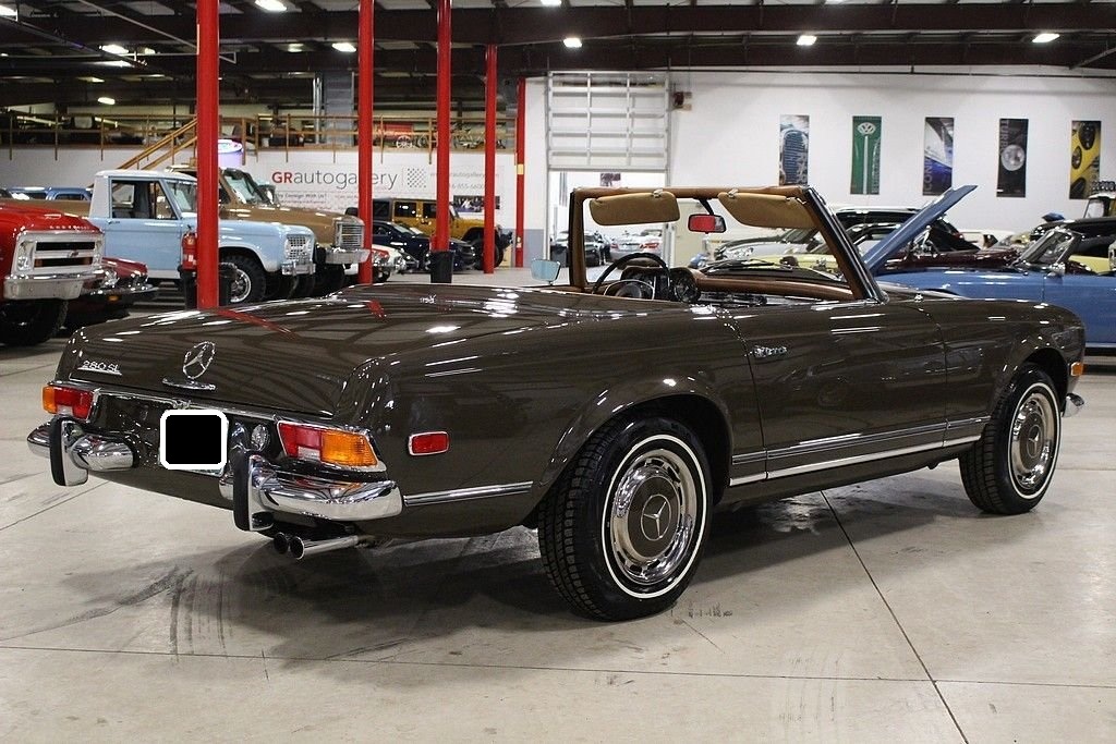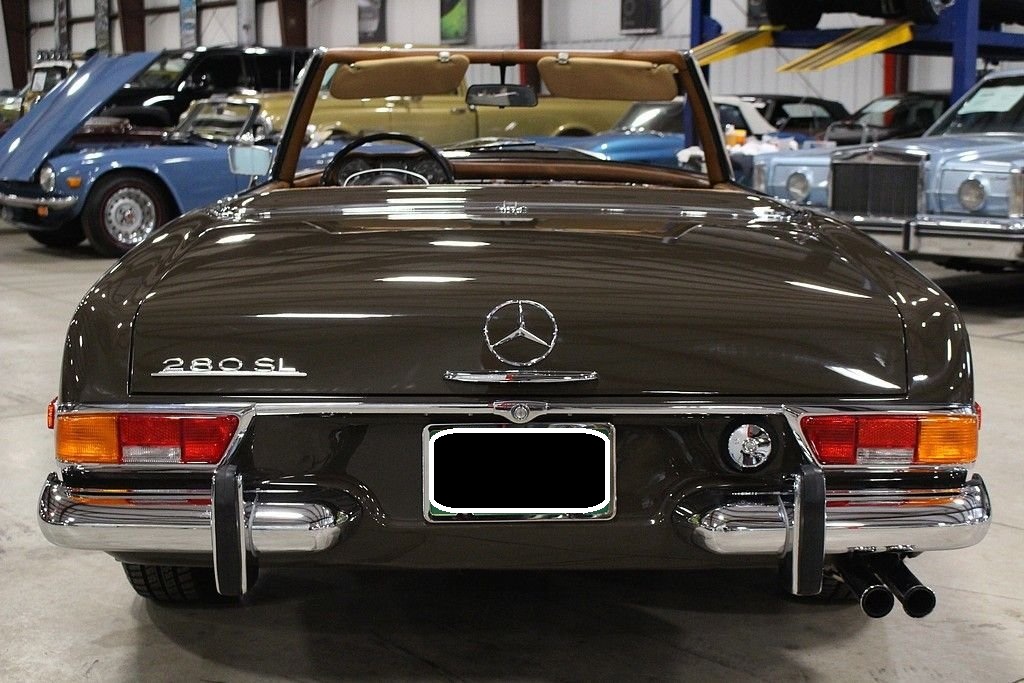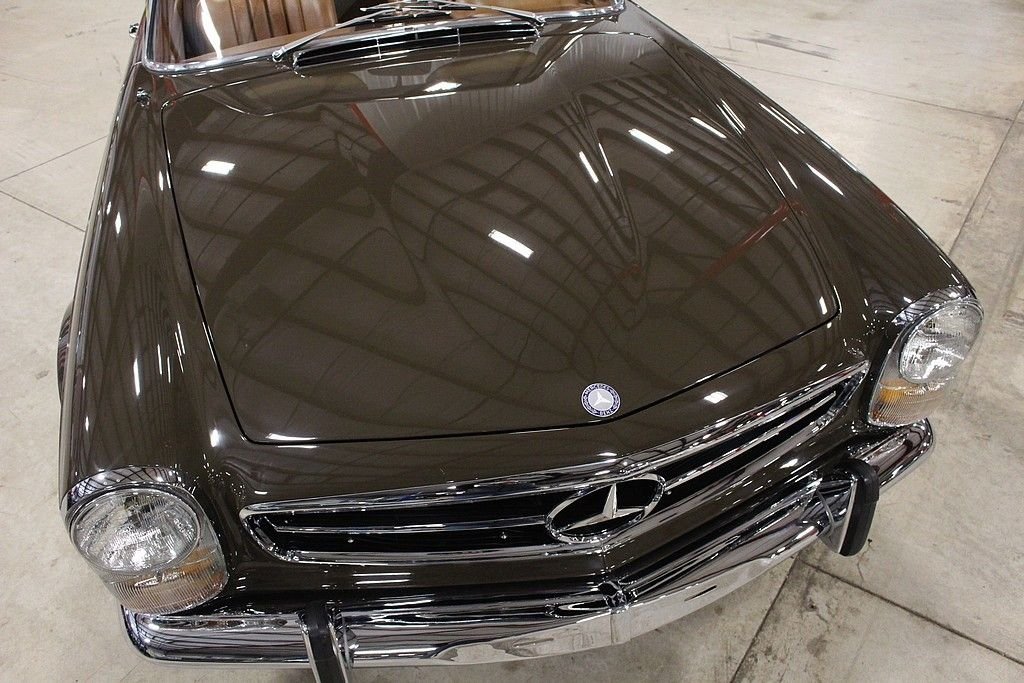 In March 1963 the new generation of SL sports cars was launched with the debut of the 230 SL at the Geneva Show. This revolutionary new model replaced the then ageing 190 and 300SL models. Mercedes engineering, together with elegance and practicality, made the pagoda top SL one of the most distinctive designs of its era. During the 60's, Mercedes-Benz refined the model, later fitting the 250 engine and finally arriving at the 280SL. As today, Mercedes-Benz motorcars were never cheap, but superb build quality and sophisticated styling made the 280SL an extremely popular sports car among motoring enthusiasts. After a 10 year stint in storage, circa 2000, this 1968 Mercedes was taken to restoration perfectionist, David C. Treichel of Appleton, WI for a complete, concourse quality, nut and bolt restoration performed over a two year period and completed in 2002. The car was refinished in its original color combination of 408 Havana Brown over 250 Cognac Leather Interior with 8008 Brown Tufting multi-loop carpeting, matching Havana Brown hardtop and Tan soft top. During the restoration process, the paint was renewed over a chassis that was stripped to bare metal, all trim including bumpers, grille, door handles, moldings, emblems etc. were removed and re-chromed to perfection. The interior was masterfully executed featuring all new upholstery, carpet, all instrumentation including the clock, tachometer, speedometer, oil pressure gauge, and instrument cluster lighting potentiometer were rebuilt and refinished to perfection including the chrome bezels, horn ring, and all other bright work. The 2.8 liter inline six engine and complete drivetrain was completely rebuilt to spec and refinished accordingly. The Fuel system was rebuilt including a new tank, pump, and injection lines. The brake system was completely rebuilt and refurbished with new master cylinder, complete new lines, new calipers, new rotors and the suspension has been completely rebuilt including all new bushings, spring pads, tie rods, shocks etc. All parts needing replacement were supplied by Mercedes Benz and purchased through Enterprise Motorcars, a factory authorized dealer. Only new original equipment parts were installed except for some minor parts that were no longer available which were purchased as used and then refurbished. No expense was spared during the restoration process, in excess of $80, 000, to ensure that this car was renewed to exacting standards. Since, the car has been kept and preserved in a climate-controlled environment, driven approximately 2500 miles, serviced and cared for, and today, the presentation of this car is absolutely stunning. The Havana Brown paint still remains excellent in all areas and after nearly 15 years, shows no signs of shrinkage or dieback. The interior remains near perfect, the engine compartment is stunning, trunk area outstanding, and the underside remains fresh, clean and restored. Mechanically, the car remains extremely fit and completely dialed in and is ready for immediate enjoyment on your favorite winding road. 280SL's offer much in style, performance and ultimate driver satisfaction. This coupled with their legendary build quality and innovations keep them a favorite among collectors and motoring enthusiasts keeping values on the rise. The car offered here possess is stunning in presentation and outstanding in all areas. The car comes complete with restoration documentation, owners manual and photo book. A must consideration for anyone in the market.