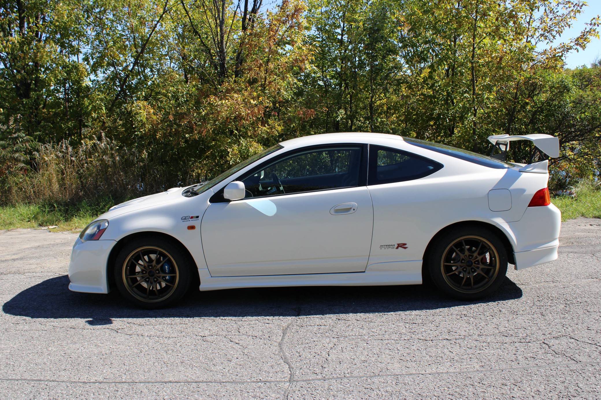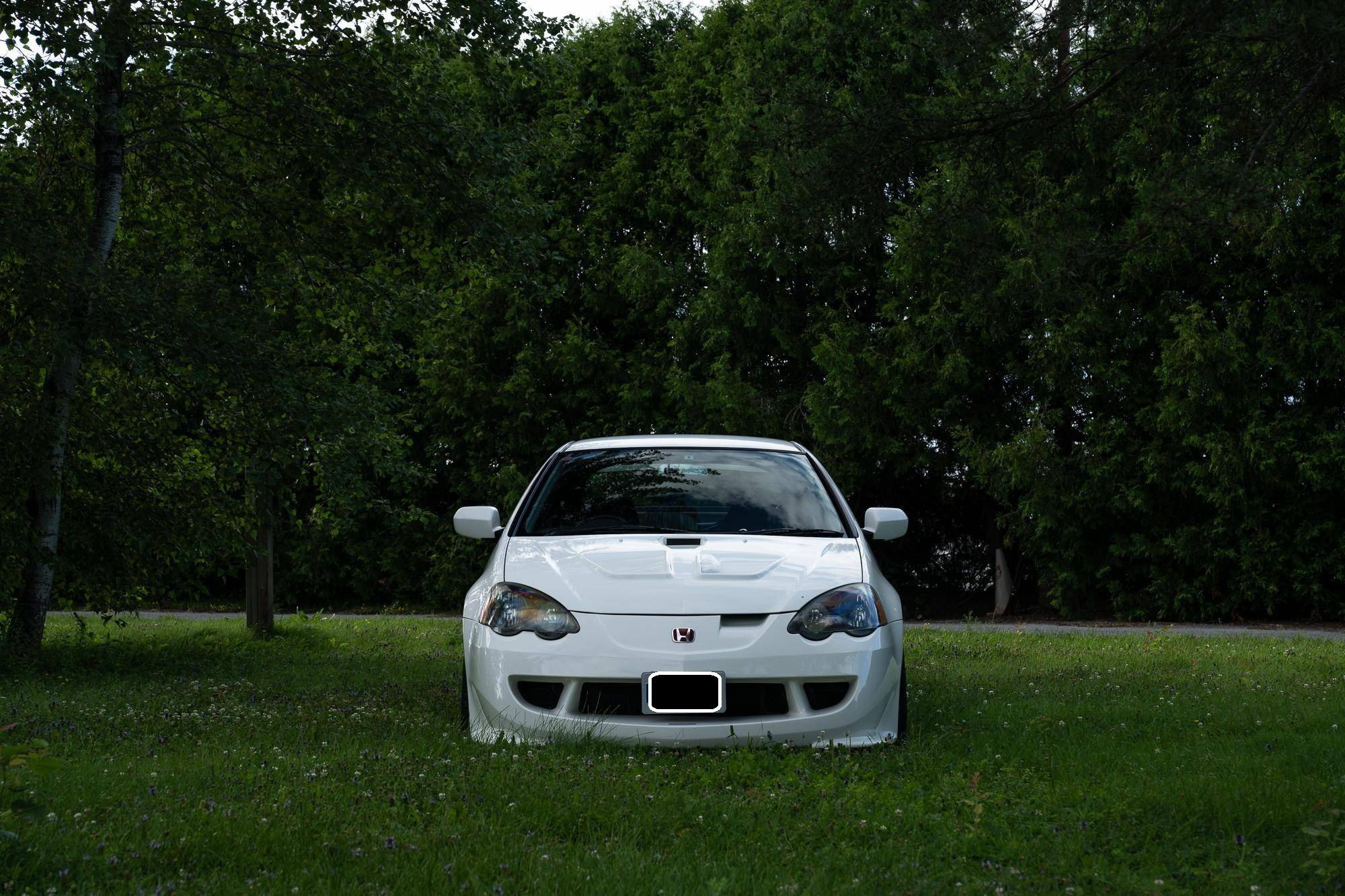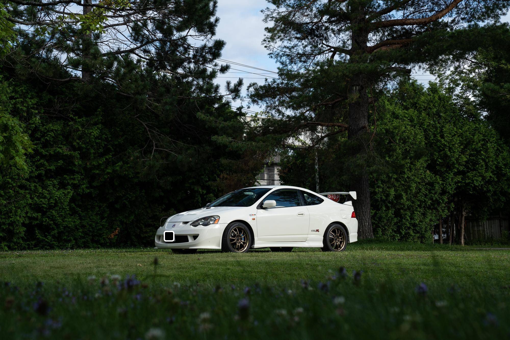 THIS. . . is a 2001 Honda Integra Type R, finished in Championship White with a black and red interior. Imported from Japan in December 2016, it's equipped with a metric instrument cluster, and the odometer shows about 96,500 kilometers, which represents approximately 60,000 miles. Modifications reported by the seller are extensive, and the full list is detailed below. include a Mugen high performance air intake system, a Mugen "Twin Loop" exhaust system, a Mugen front bumper, a Mugen dry carbon fiber hood, Mugen S1-R bucket seats, 17-inch Mugen MF10 bronze wheels, Spoon monoblock brake calipers, and Öhlins DFV adjustable coilovers. Factory equipment includes a limited-slip differential, aluminum pedals, power-operated mirrors, locks, and windows, and air conditioning. When the "DC5" Integra Type R was introduced in 2001, it was tasked with continuing the legacy of the outgoing "DC2" Type R as one of the greatest front-wheel drive sports cars ever. The "DC5" Integra kept the lightweight body, responsive handling, and high-revving VTEC engine that became synonymous with the Type R nameplate, and added several upgrades like a close-ratio 6-speed transmission, four-piston Brembo brake calipers, and a brand new K-series high-performance engine. Power comes from a 2. 0-liter "K20A" 4-cylinder engine, rated at 220 horsepower and 152 lb-ft of torque in stock form. A dyno sheet provided in the gallery shows that this Integra produces 214 horsepower and 152 lb-ft of torque at the wheels in its current configuration. Output is sent to the front wheels via a 6-speed manual transmission.