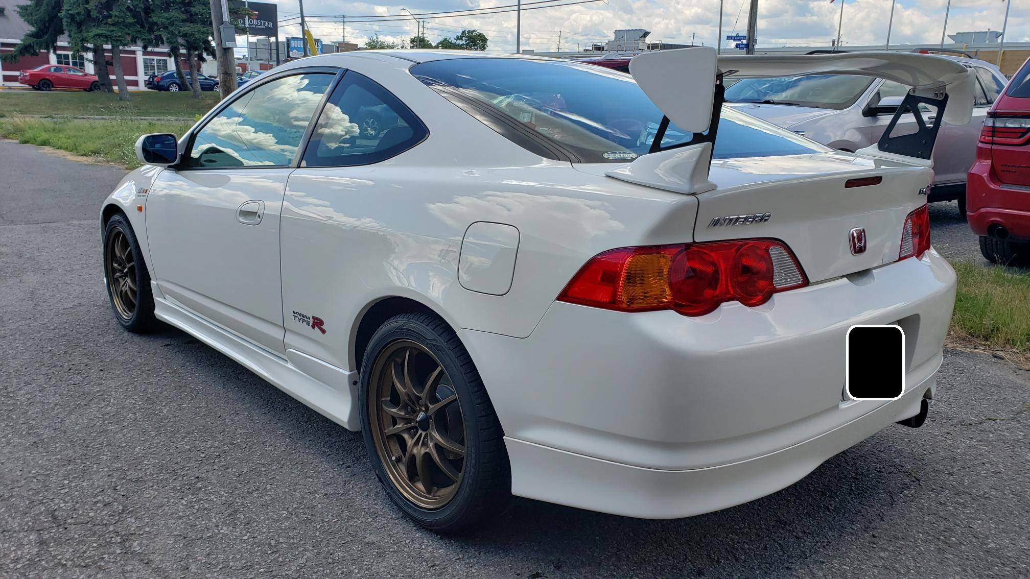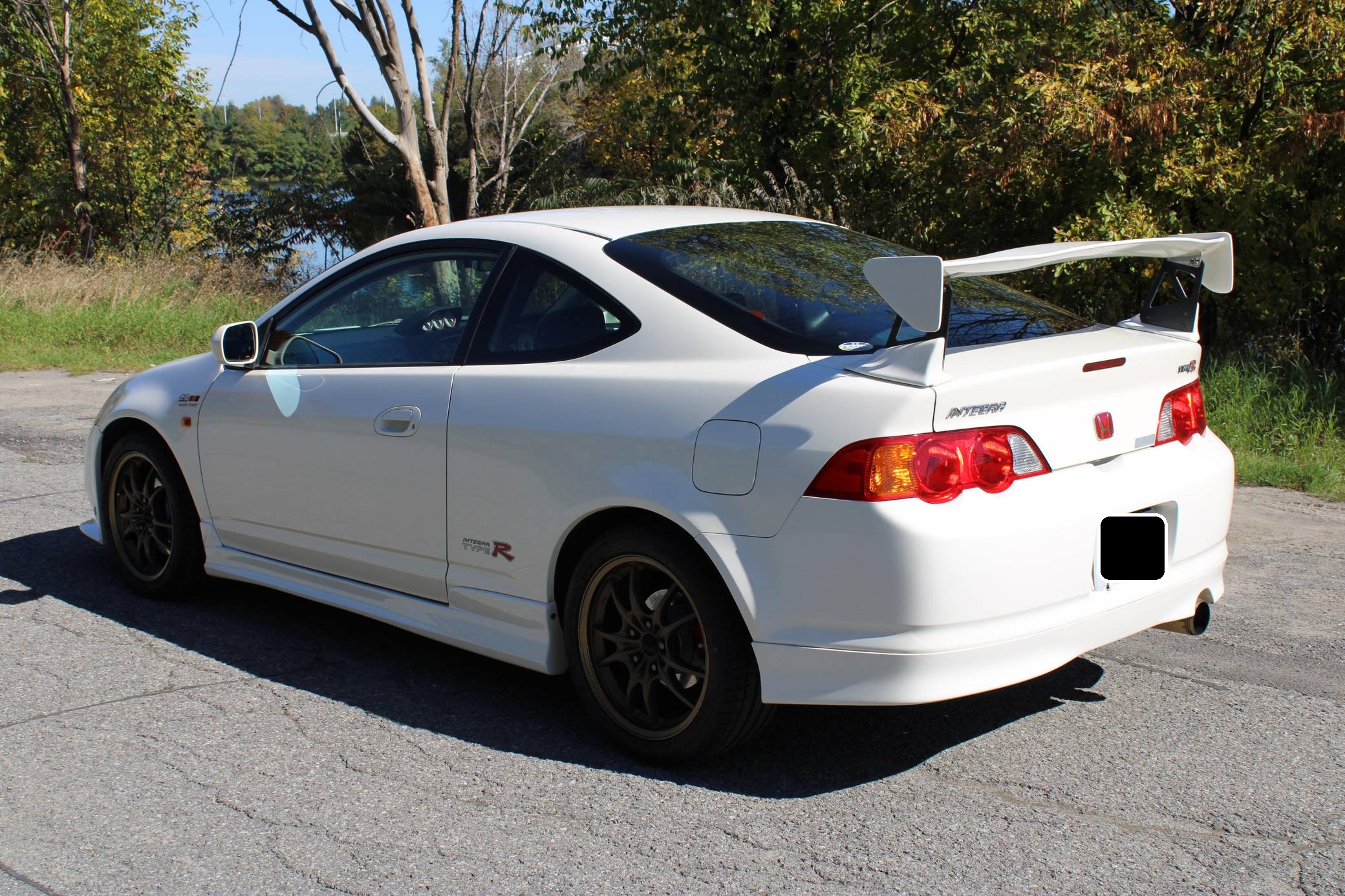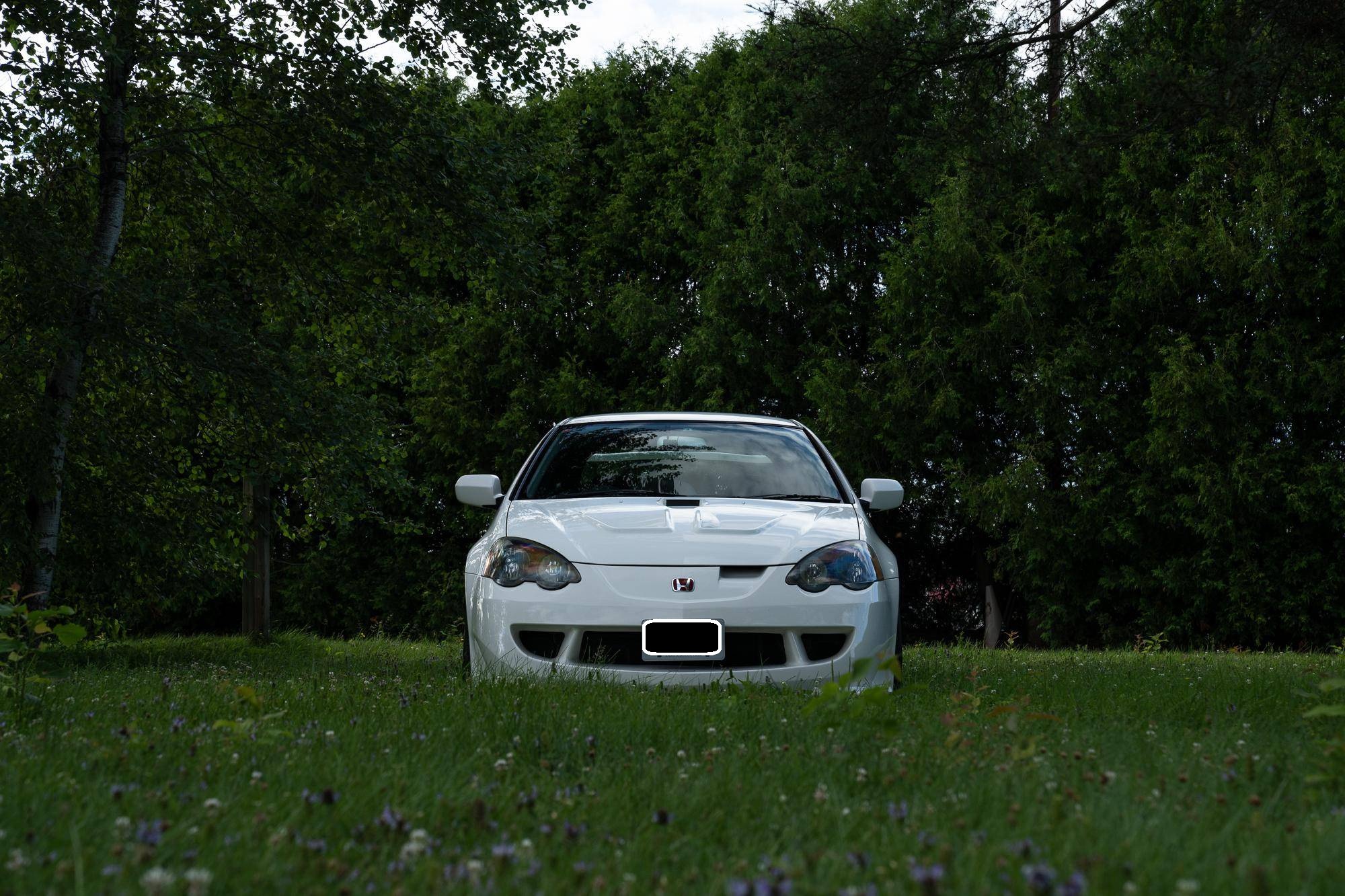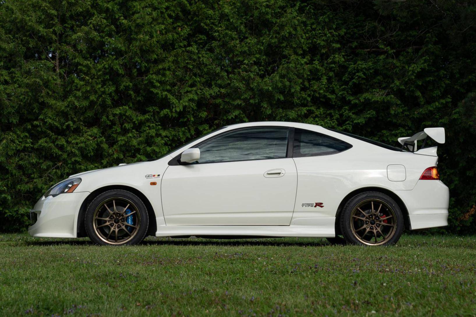 THIS. . . is a 2001 Honda Integra Type R, finished in Championship White with a black and red interior. Imported from Japan in December 2016, it's equipped with a metric instrument cluster, and the odometer shows about 96,500 kilometers, which represents approximately 60,000 miles. Modifications reported by the seller are extensive, and the full list is detailed below. include a Mugen high performance air intake system, a Mugen "Twin Loop" exhaust system, a Mugen front bumper, a Mugen dry carbon fiber hood, Mugen S1-R bucket seats, 17-inch Mugen MF10 bronze wheels, Spoon monoblock brake calipers, and Öhlins DFV adjustable coilovers. Factory equipment includes a limited-slip differential, aluminum pedals, power-operated mirrors, locks, and windows, and air conditioning. When the "DC5" Integra Type R was introduced in 2001, it was tasked with continuing the legacy of the outgoing "DC2" Type R as one of the greatest front-wheel drive sports cars ever. The "DC5" Integra kept the lightweight body, responsive handling, and high-revving VTEC engine that became synonymous with the Type R nameplate, and added several upgrades like a close-ratio 6-speed transmission, four-piston Brembo brake calipers, and a brand new K-series high-performance engine. Power comes from a 2. 0-liter "K20A" 4-cylinder engine, rated at 220 horsepower and 152 lb-ft of torque in stock form. A dyno sheet provided in the gallery shows that this Integra produces 214 horsepower and 152 lb-ft of torque at the wheels in its current configuration. Output is sent to the front wheels via a 6-speed manual transmission.