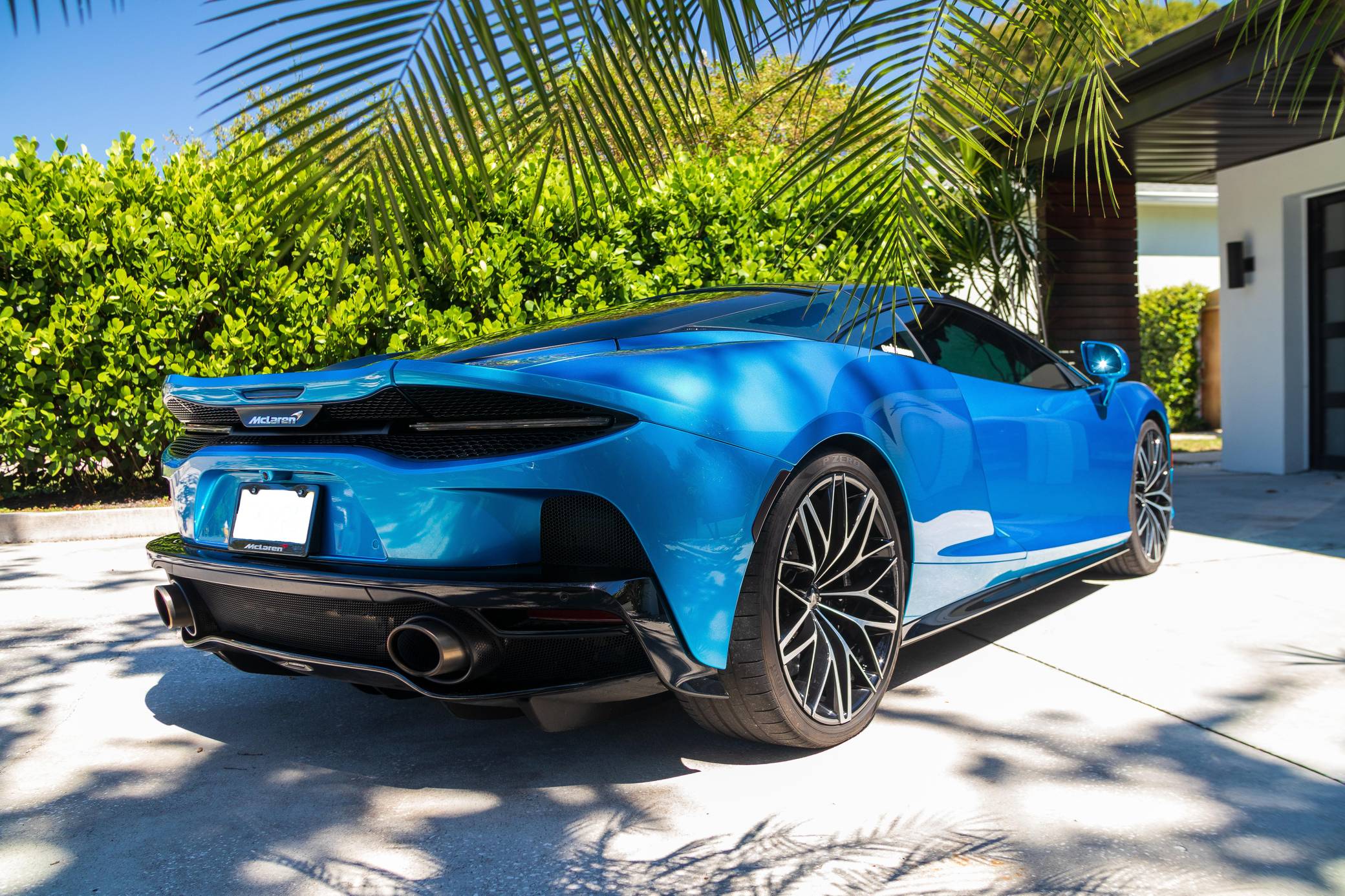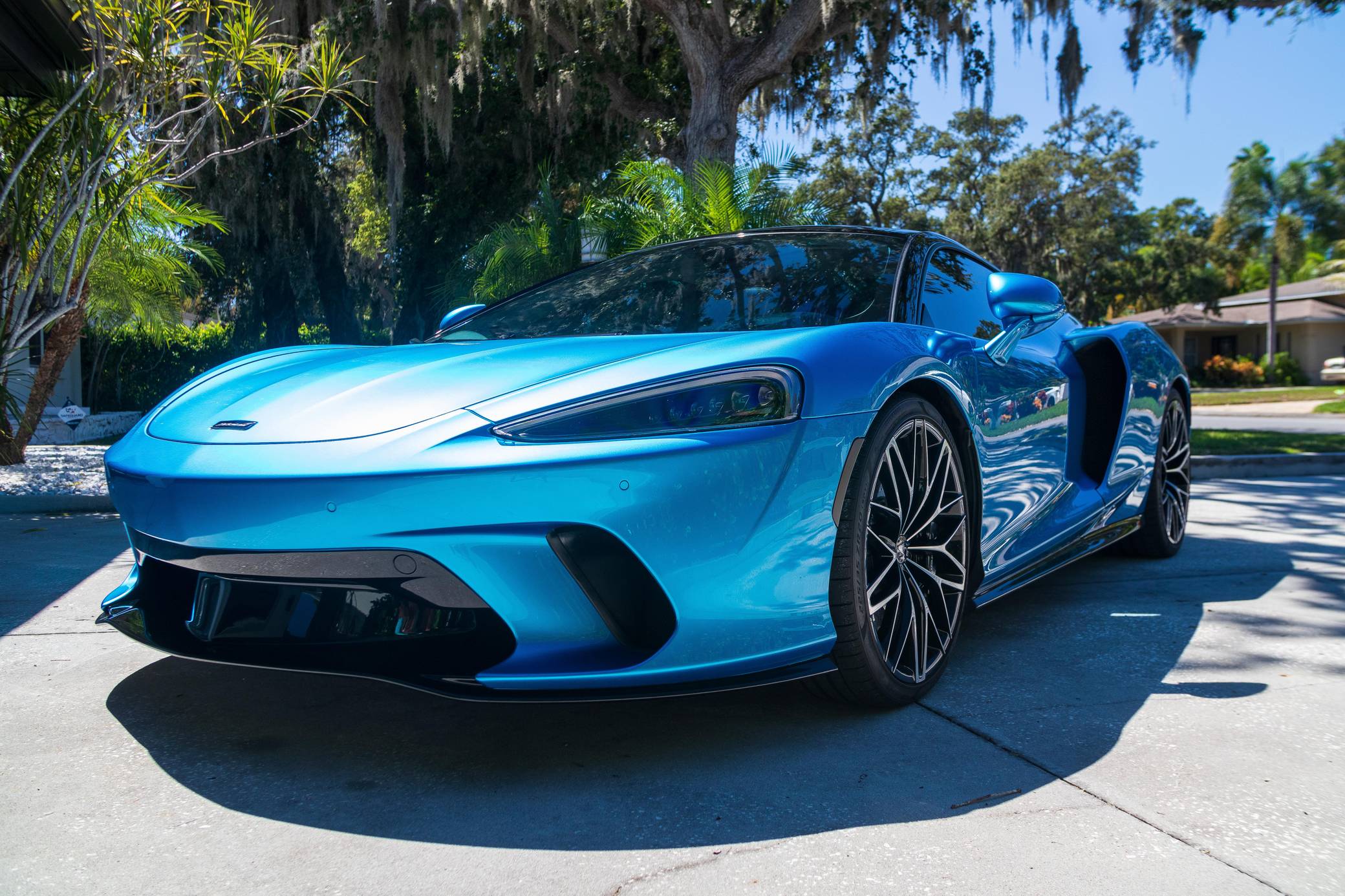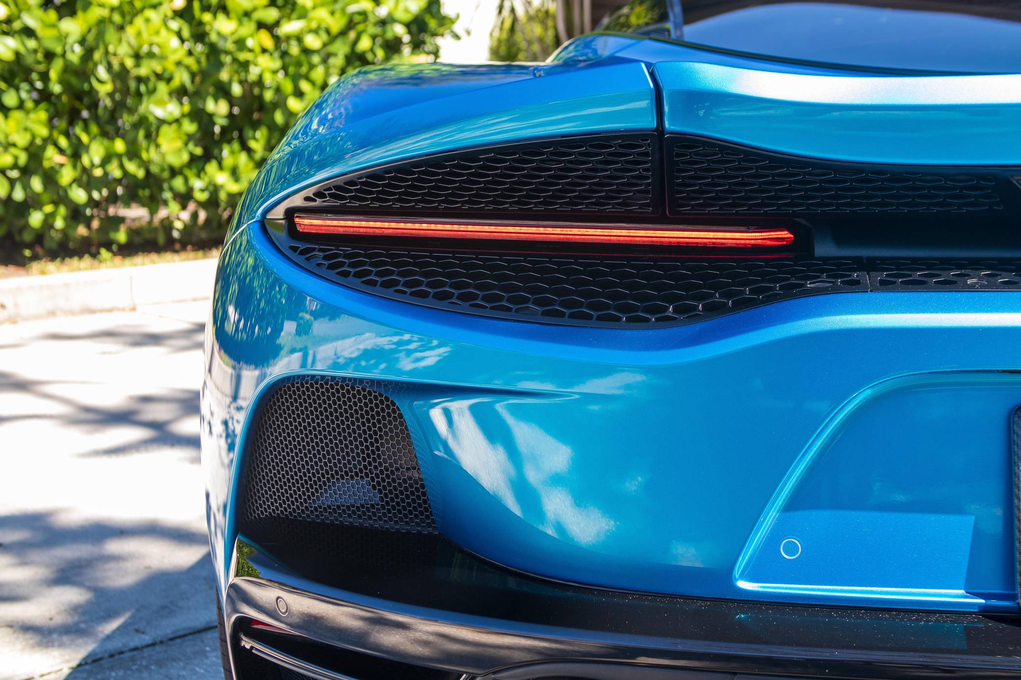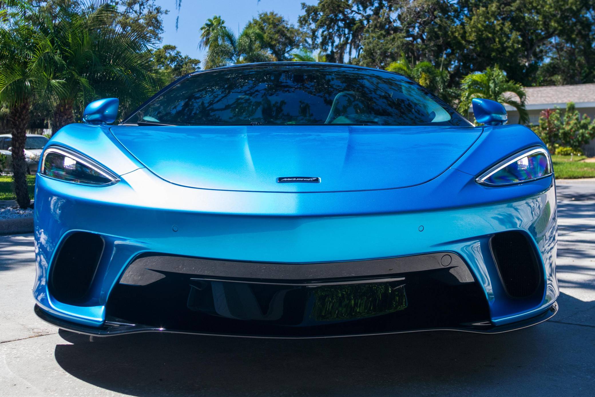 THIS. . . is a 2022 McLaren GT, finished in MSO Defined Ludus Blue with a Porcelain interior. Factory equipment includes the Premium Pack, 20-inch front and 21-inch rear wheels with a gloss black and diamond-cut finish, a carbon ceramic braking system, a sport exhaust system, a panoramic privacy glass roof, dihedral doors, heated and power-adjustable comfort seats, a launch control function, plus front and rear parking sensors. McLaren released the GT for 2020 as a more daily-drivable alternative to the other cars in its line-up, including the 720S. Offered only as a coupe, it featured supercar ingredients like a mid-mounted engine, rear-wheel drive, and a carbon fiber chassis mixed with road trip-friendly features such as a bigger trunk; it aimed to deliver practicality without sacrificing performance. GT production continues in 2022. Power comes from a 4. 0-liter twin-turbocharged V8, rated at 612 horsepower and 465 lb-ft of torque. It spins the rear wheels via a 7-speed automatic transmission.