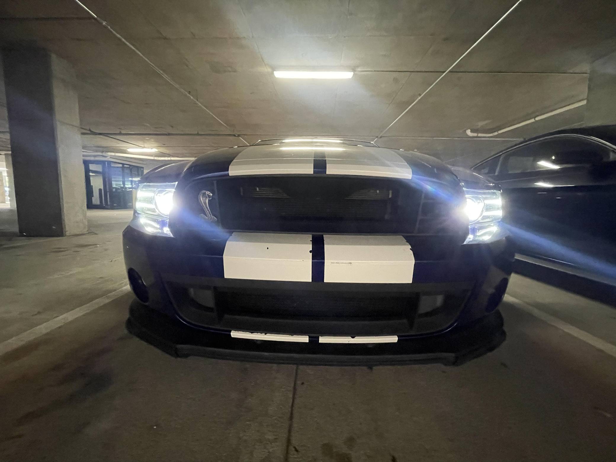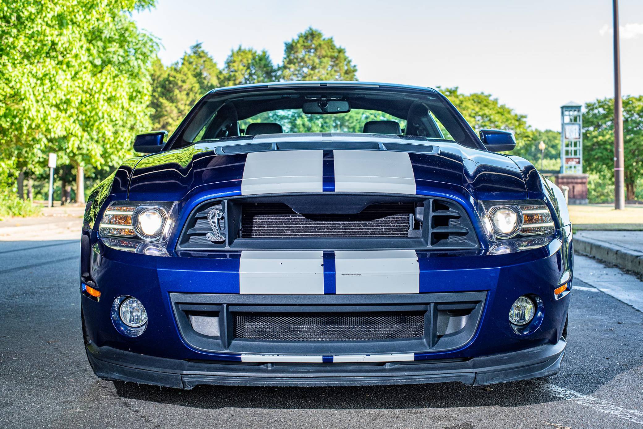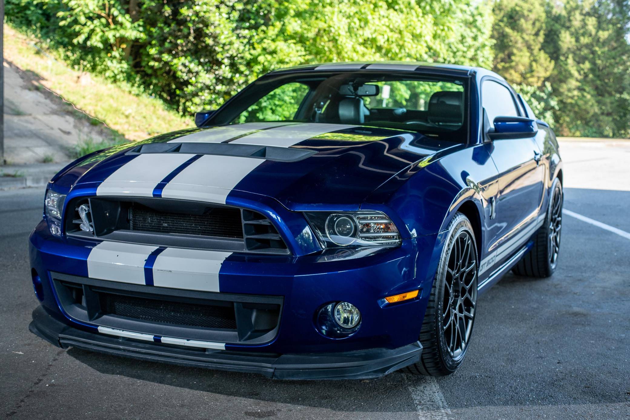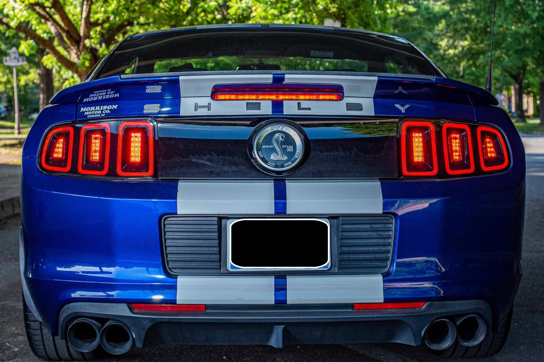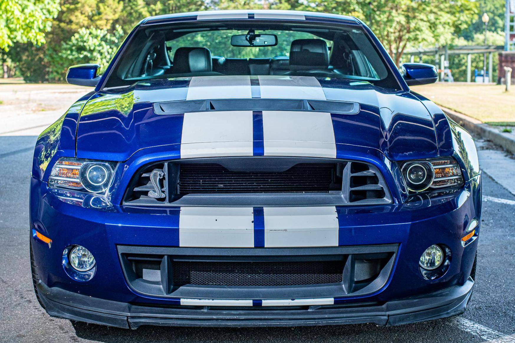 THIS. . . is a 2013 Ford Mustang Shelby GT500 Coupe, finished in Deep Impact Blue Metallic with a Charcoal Black interior. Factory equipment includes 19-inch front and 20-inch rear wheels, Brembo brakes, an SVT-tuned suspension, leather-trimmed seating with racing stripes, and a unique GT500 appearance package. Modifications are limited to a Roush exhaust system, rear quarter window louvers, and a Kenwood head unit. The 2013 Ford Mustang Shelby GT500 was the first factory Mustang to achieve a top speed of over 200 mph, stopping at 202 mph. This is also the last Shelby GT500 variant of the “S197” generation Mustang, featuring many chassis upgrades over its predecessor along with the final styling revisions introduced during the 2013 model year. Power comes from a supercharged 5. 8-liter DOHC “Modular” V8 engine, rated at 662 horsepower and 631 lb-ft of torque. Output is sent to the rear wheels via a 6-speed manual transmission.