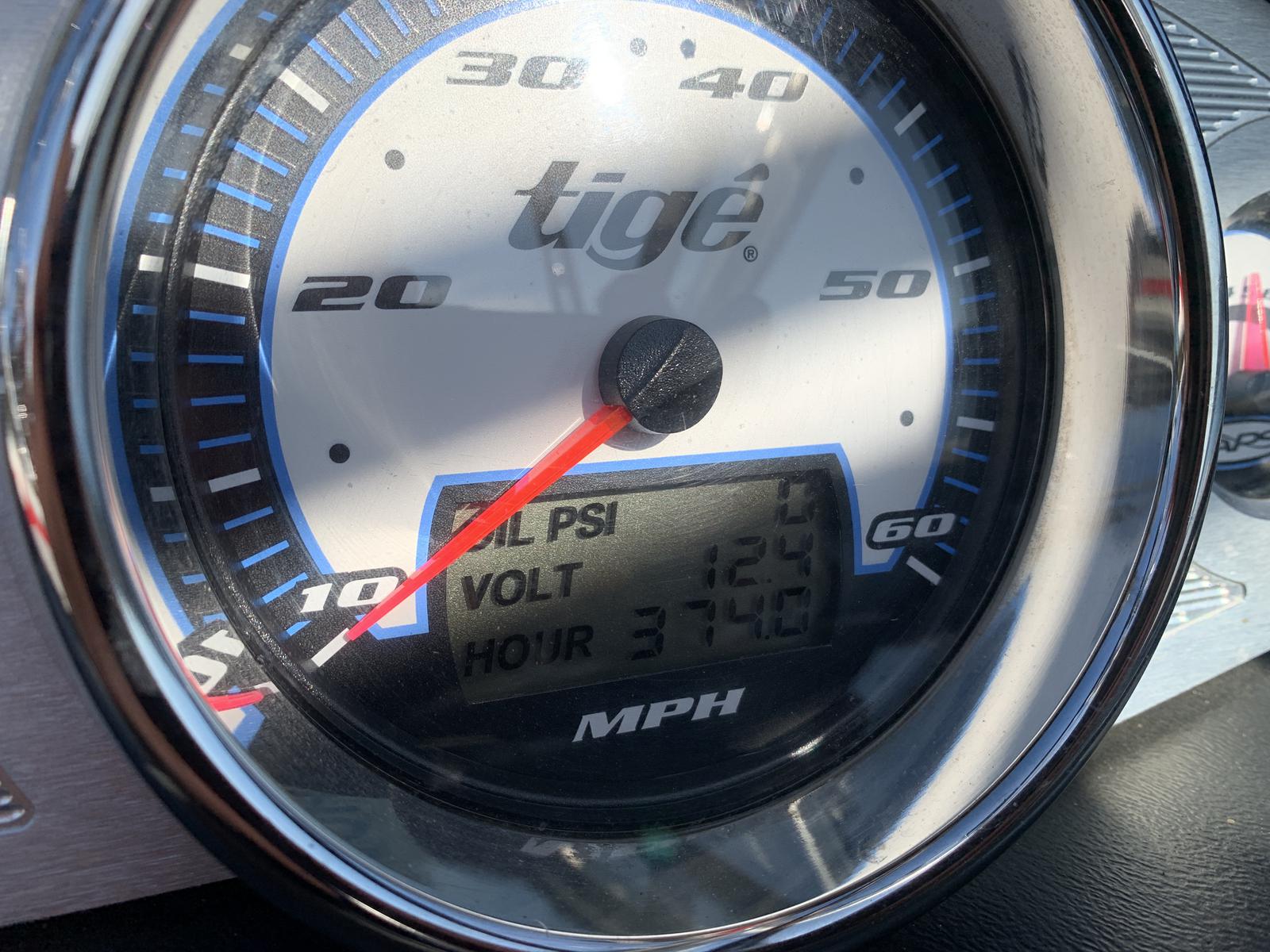 OPTIONS ARE ANODIZED TIGE FACTORY TOWER W/SWIVEL BOARD RACKS, TOWER-MOUNTED BIMINI TOP, FULL TOWER OF POWER STEREO SYSTEM 2 SETS OF P80 WETSOUNDS PLUS 10" SUBWOOFER AND 6 INTERIOR WETSOUNDS 6.5 SPEAKERS AND 2 AMPS, FULL MOORING COVER W/POLE KIT, TIGE SPEED SET CRUISE CONTROL, SWIM PLATFORM, LED UNDERWATER TRANSOM LIGHT, ALL STD FACTORY OPTIONS, TRAILER WITH SPARE TIRE KIT.