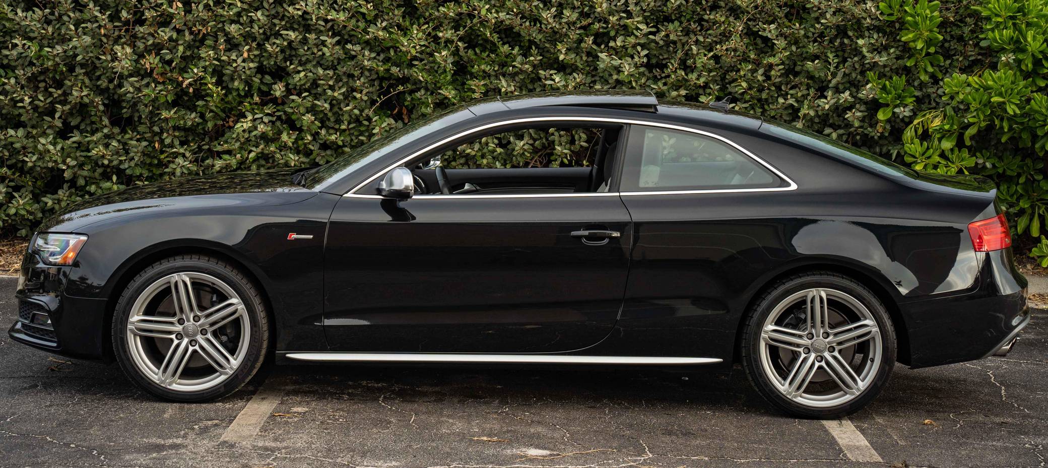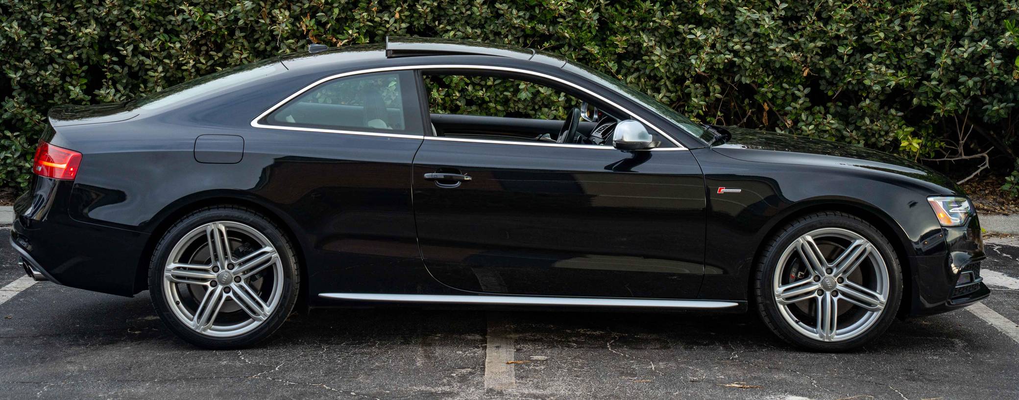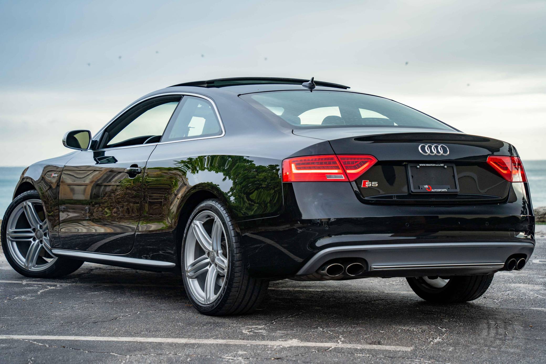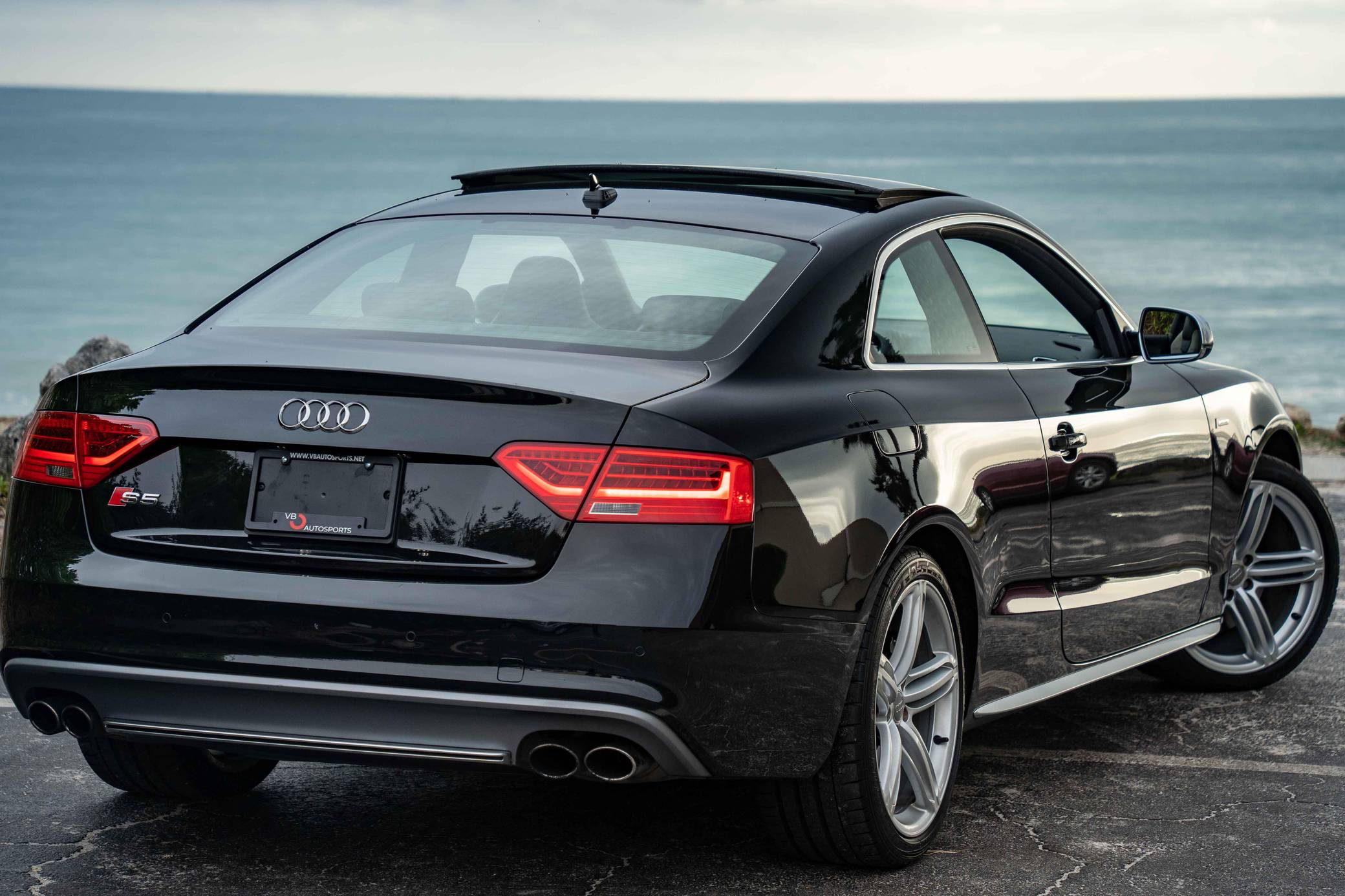 2014 Audi S5 Premium Plus, finished in Phantom Black Pearl with a black and Lunar Silver interior. Factory equipment includes the Audi MMI Navigation Plus Package, 19-inch wheels, power-adjustable and heated front sport seats, birch wood interior trim, a Bang & Olufsen premium sound system, and more as detailed below. The seller reports no modifications. Introduced in 2007, the "B8" Audi A5 platform would join the TT and R8 as the third coupe offering from Audi, and the higher-performance S5 variant was released in coupe form at the same time. A mid-generational refresh for the 2013 model year included a switch to the supercharged V6 that was used in the S5 Cabriolet since 2010, as well as revised styling. Power comes from a "TFSI" 3. 0-liter supercharged V6, rated at 333 horsepower and 325 lb-ft of torque. Output is sent to all four wheels via a 7-speed automatic transmission and Audi's Quattro all-wheel-drive system.