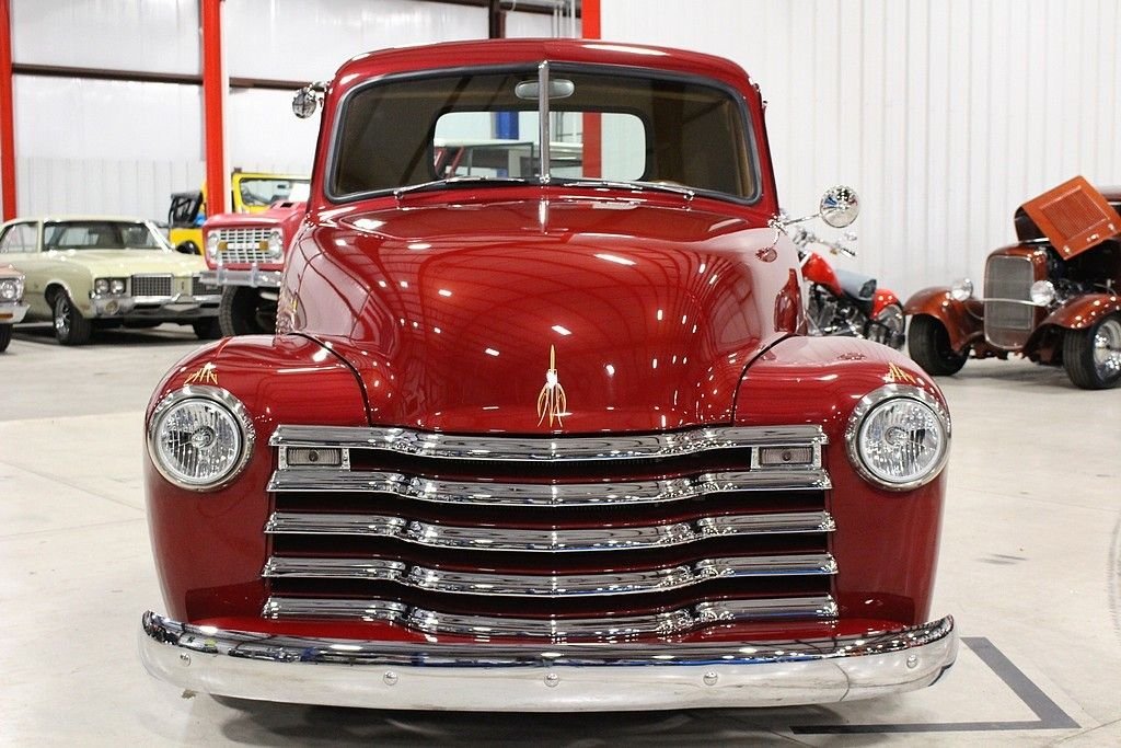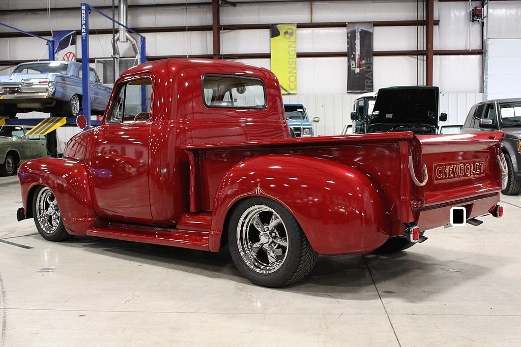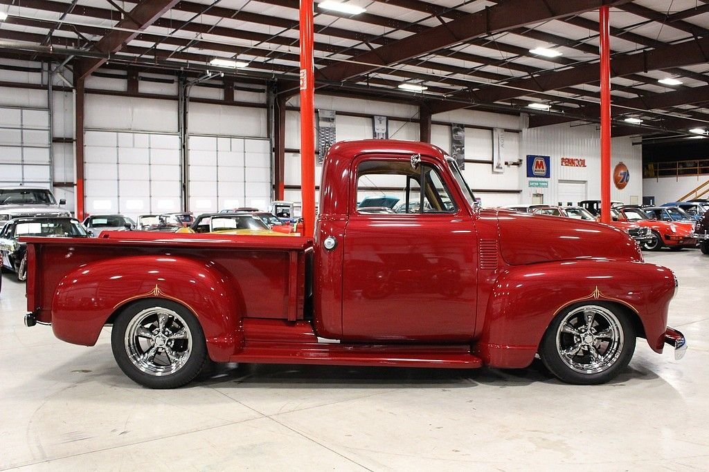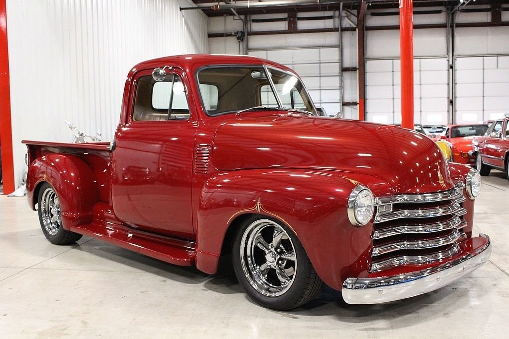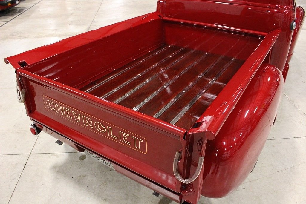 The Advance Design trucks rolled out by GM were radically different in 1947 than pre- WWII pickups. Before this time, pickups produced were essentially glued on flat beds to whatever was produced. GM made a truck that was designed for more than just having a place to put stuff. It was a full on new version of automobile and sales took off. This '52 3100 Custom Pickup is a full build and restoration in 2012 and this truck is a stunner. This restomod is a really cool build with a lot of investment in modern technology's advantages. It's powered by a 1990 Chevy Camaro 350ci V8 engine paired with a 700R4 automatic transmission. It also features a Kenwood CD player/radio (with remote and aux input), power 4-wheel disc brakes, American Racing wheels, 2:73 gears, '90 Camaro rear end, Chassis Engineering front end, wood lined bed, leather seats, and more. This is truck is beautiful inside, outside, and underneath. It's a show truck but it's also a lot of fun to drive at any speed you need to go.