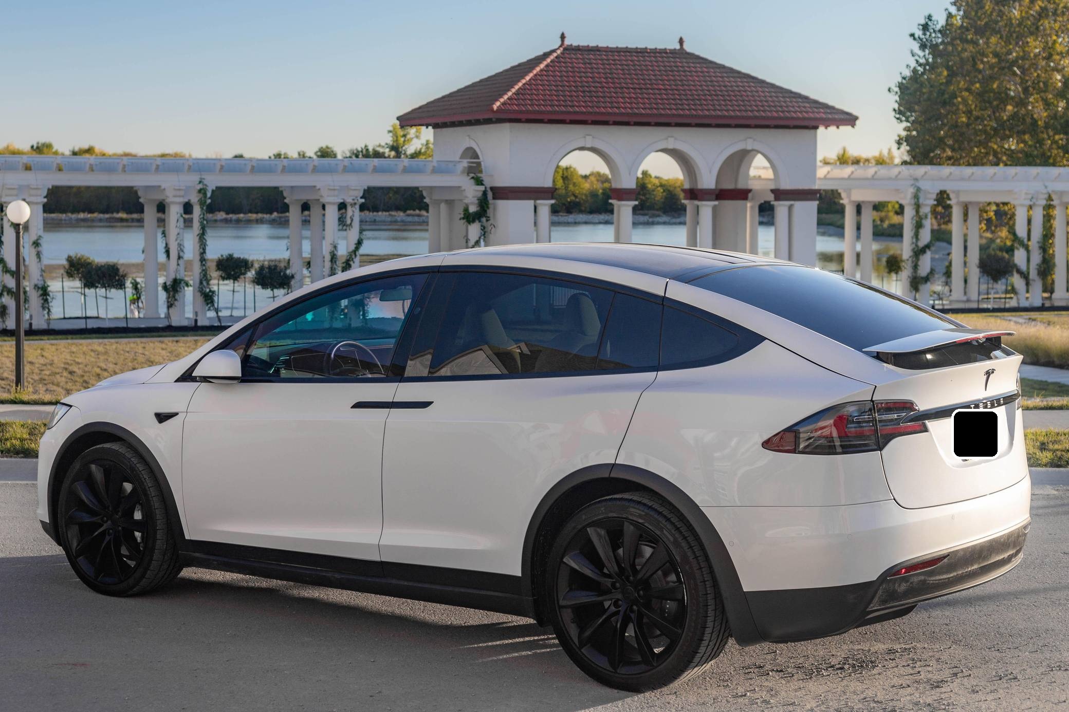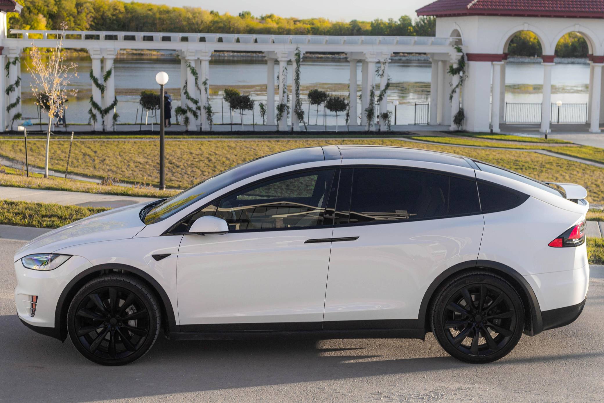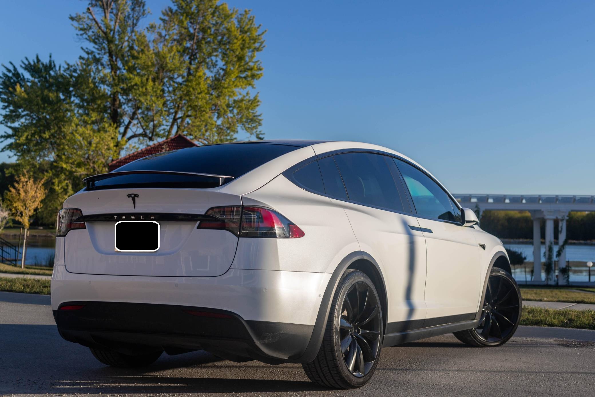 THIS. . . is a 2021 Tesla Model X Long Range Plus, finished in Pearl White with a white and black interior. Factory equipment includes 22-inch "Black Onyx" wheels, LED exterior lighting, a rear spoiler, Dark Ash wood interior trim, heated and power-adjustable front seats, a digital instrument cluster, a 17-inch touchscreen for the infotainment system, a navigation system, and the Full Self-Driving computer (subscription required). Modifications reported by the seller are limited to a vinyl wrap on the bright exterior trim pieces and tinted windows. Tesla introduced the Model X for the 2016 model year as a taller, more spacious alternative to the Model S. It stood out from other crossovers with unusual double-hinged falcon doors. It has gone through several powertrain evolutions and it's still available today. Power comes from a pair of electric motors linked to a 100-kilowatt-hour lithium-ion battery pack. In 2021, the Long Range Plus earned a maximum driving range rating of 371 miles from the EPA.