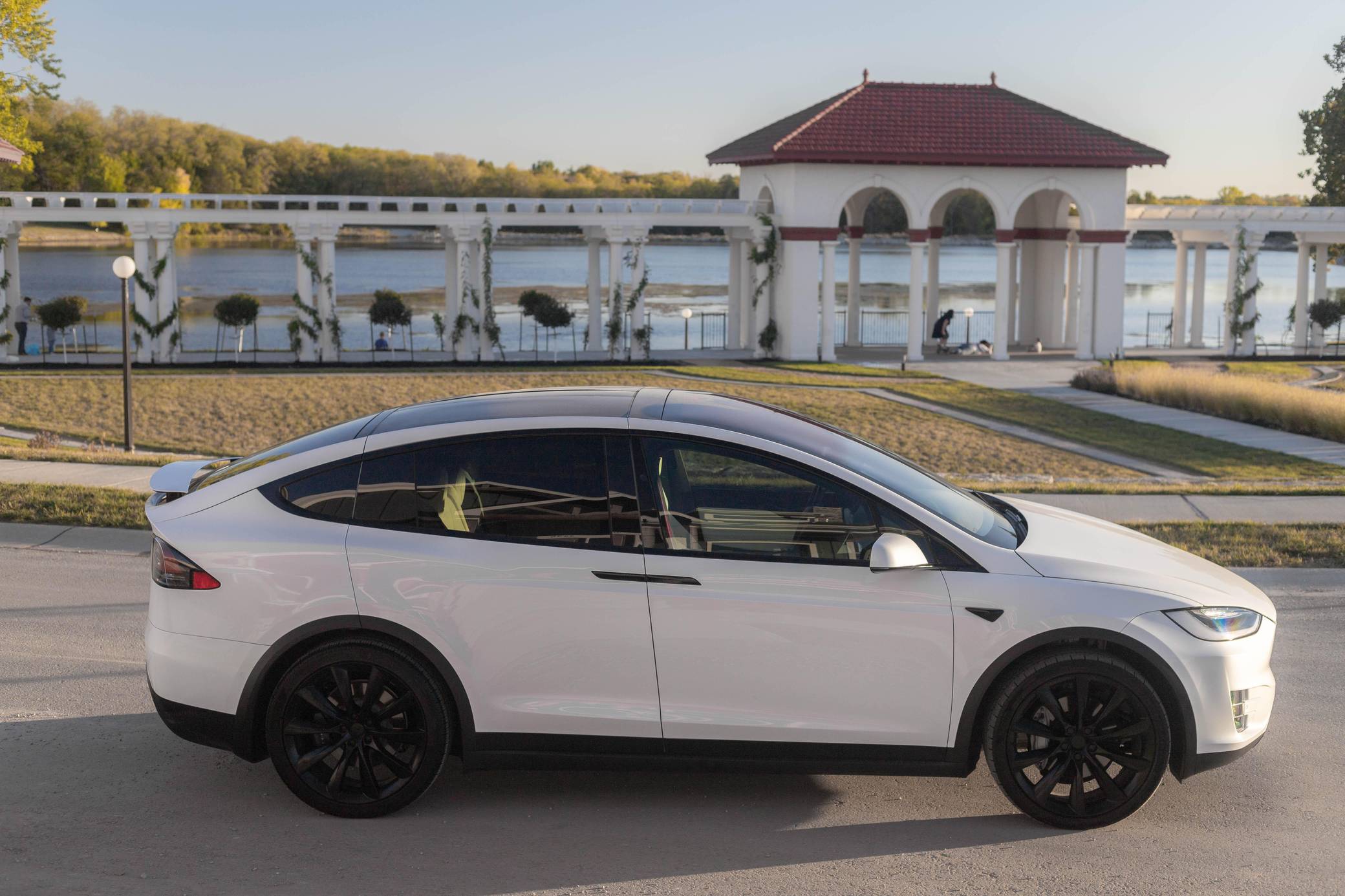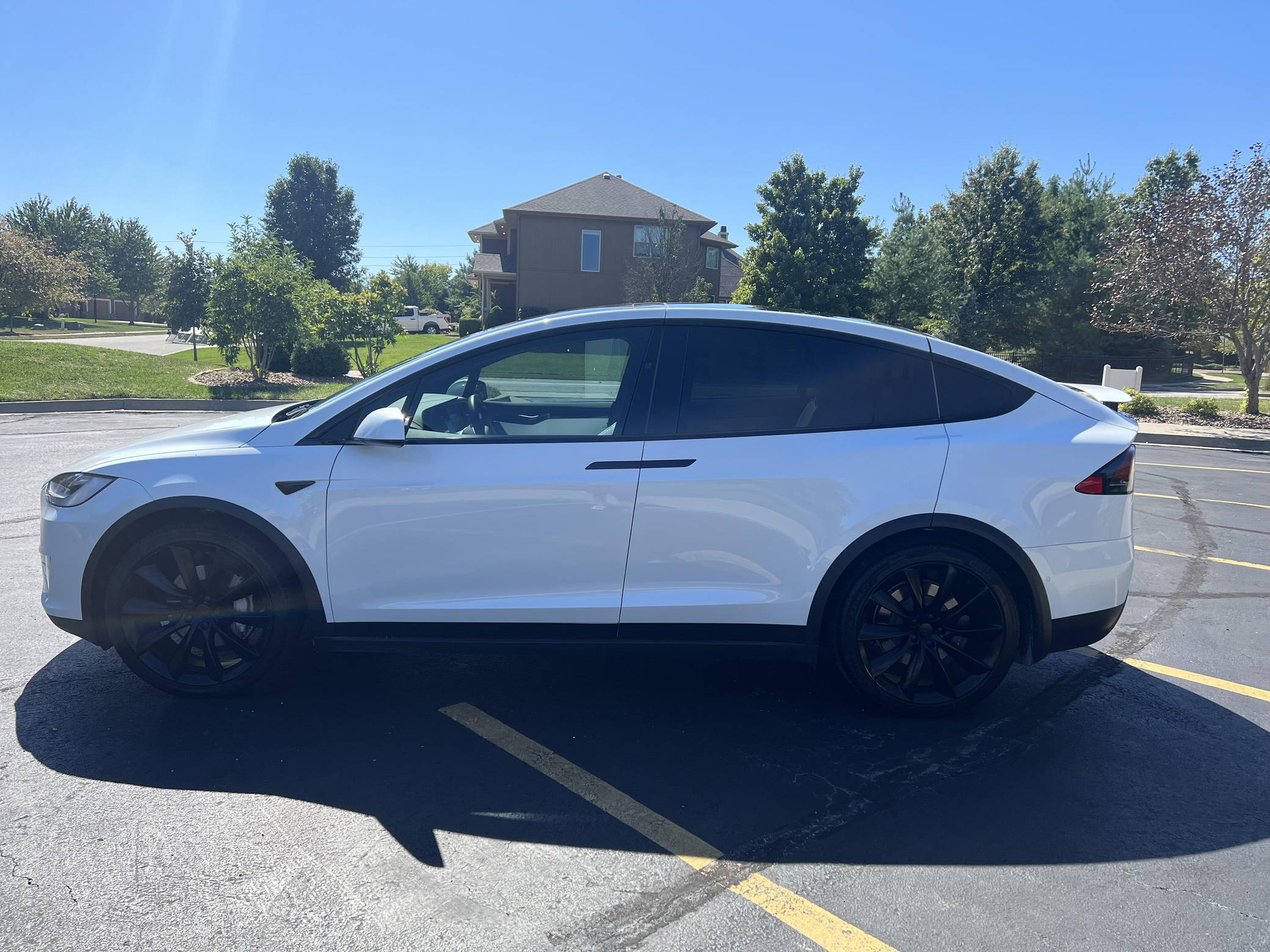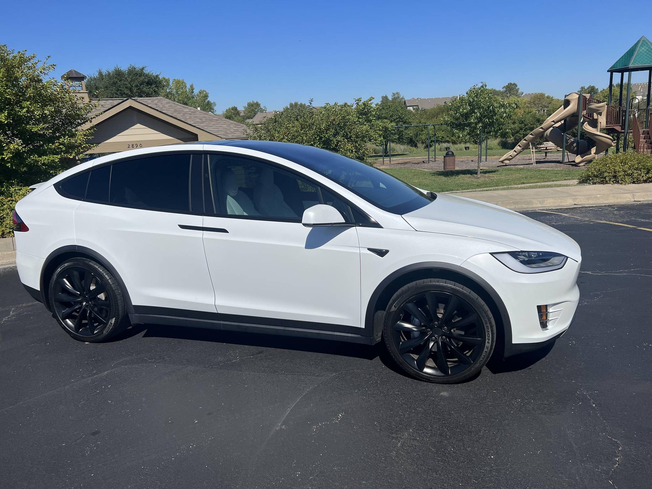 THIS. . . is a 2021 Tesla Model X Long Range Plus, finished in Pearl White with a white and black interior. Factory equipment includes 22-inch "Black Onyx" wheels, LED exterior lighting, a rear spoiler, Dark Ash wood interior trim, heated and power-adjustable front seats, a digital instrument cluster, a 17-inch touchscreen for the infotainment system, a navigation system, and the Full Self-Driving computer (subscription required). Modifications reported by the seller are limited to a vinyl wrap on the bright exterior trim pieces and tinted windows. Tesla introduced the Model X for the 2016 model year as a taller, more spacious alternative to the Model S. It stood out from other crossovers with unusual double-hinged falcon doors. It has gone through several powertrain evolutions and it's still available today. Power comes from a pair of electric motors linked to a 100-kilowatt-hour lithium-ion battery pack. In 2021, the Long Range Plus earned a maximum driving range rating of 371 miles from the EPA.