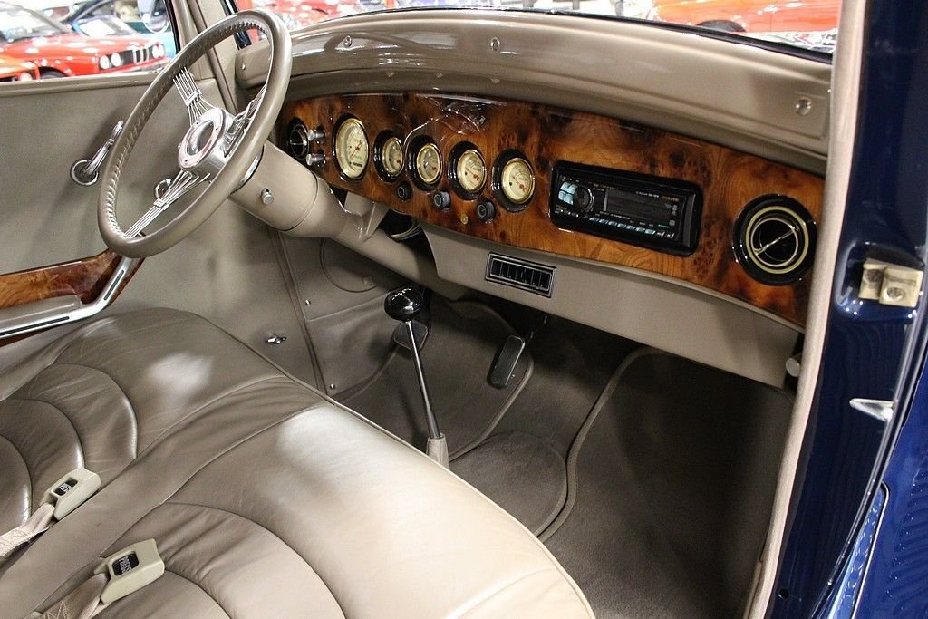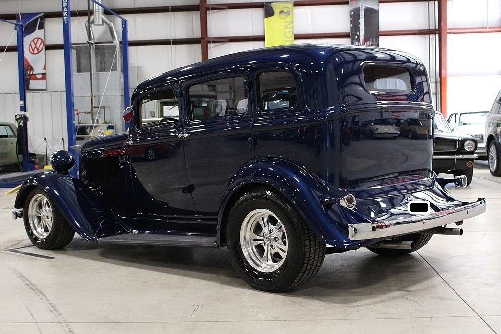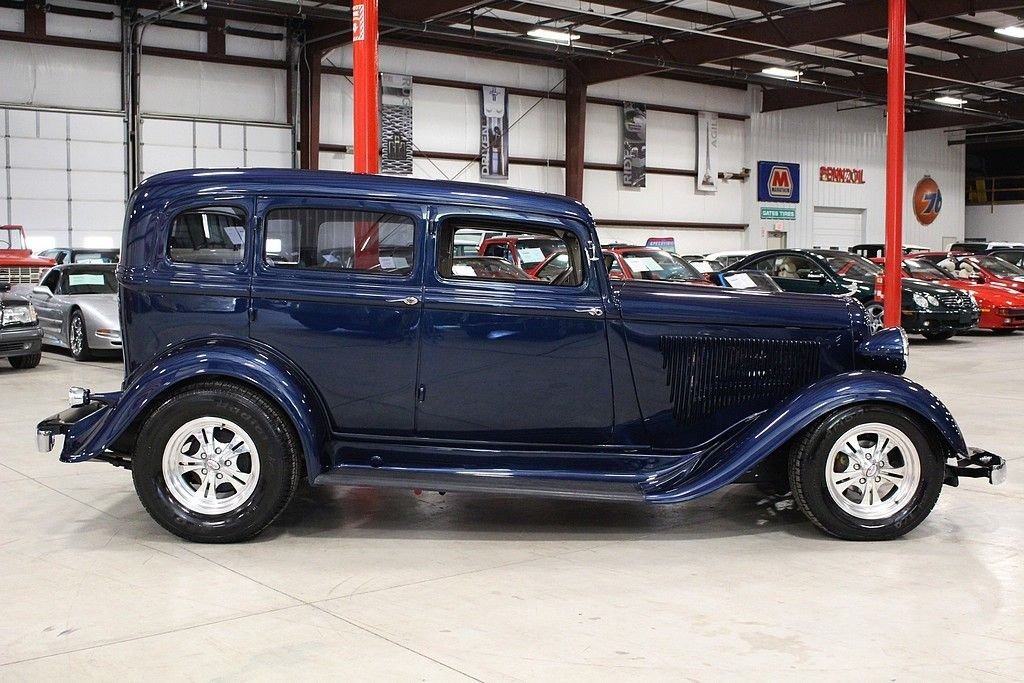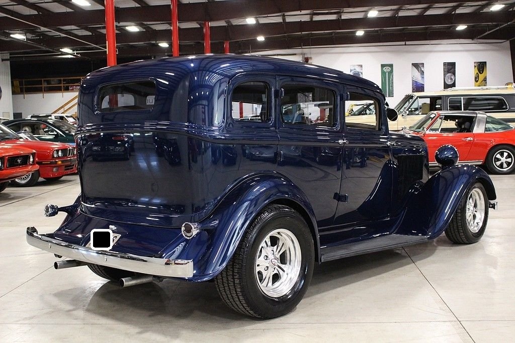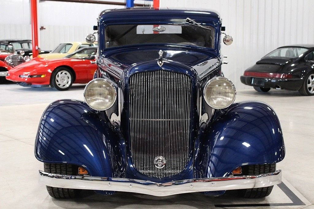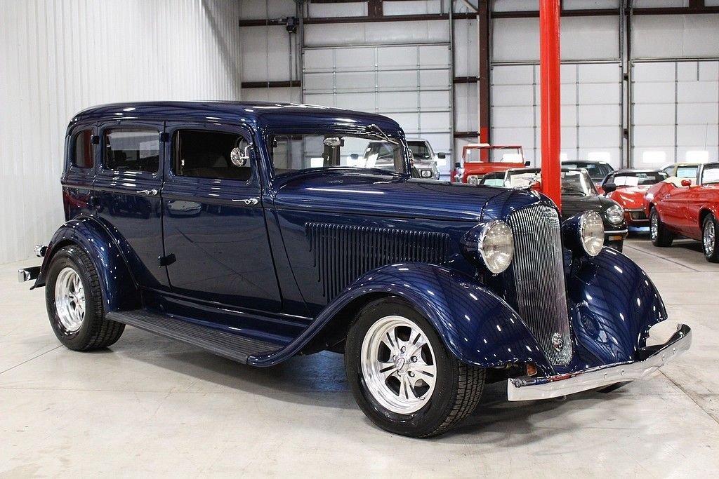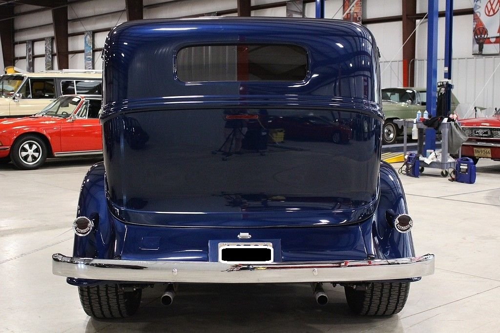 The Plymouth PC and PD of 1933 are very significant in the history of the Chrysler Corporation. Following 1932, in which Plymouth was the only automaker to show a sales increase over 1931, Walter Chrysler announced an unprecedented move. Despite having lost money, the Corporation would spend nine million dollars to retool for a new car to replace the four-cylinder PB. These cars entered Plymouth into the world of the 6-cylinder automobile, which would put the Chrysler Corporation into second place in production and sales for 1933, bumping Ford into the third place spot for the first time in its history. This 1933 PD Sedan is a custom “street rod” that uses the historic looks of the PD to accent this really cool retro cruiser. This car uses an all-steel body, an AMC Gremlin roof panel, and chopped the top 2 inches to round out the aggressive styling. The color is a 1999 Chrysler paint color, Patriot Blue Pearl. It's powered by a crate Chevy 350ci V8 engine paired with a 350 turbo-hydromatic transmission. It also features suicide doors, Ford 8” rear end, Mustang II front end, Ron Francis wiring, leather seats, Boyd Coddington wheels, power steering, power windows, power locks, Vintage air conditioning, CD player/radio, wood grained dash, classic gauges, and tilt steering wheel. This is a great car that is a lot of fun to drive. It is in excellent condition inside and out and looks better the closer you look at it!