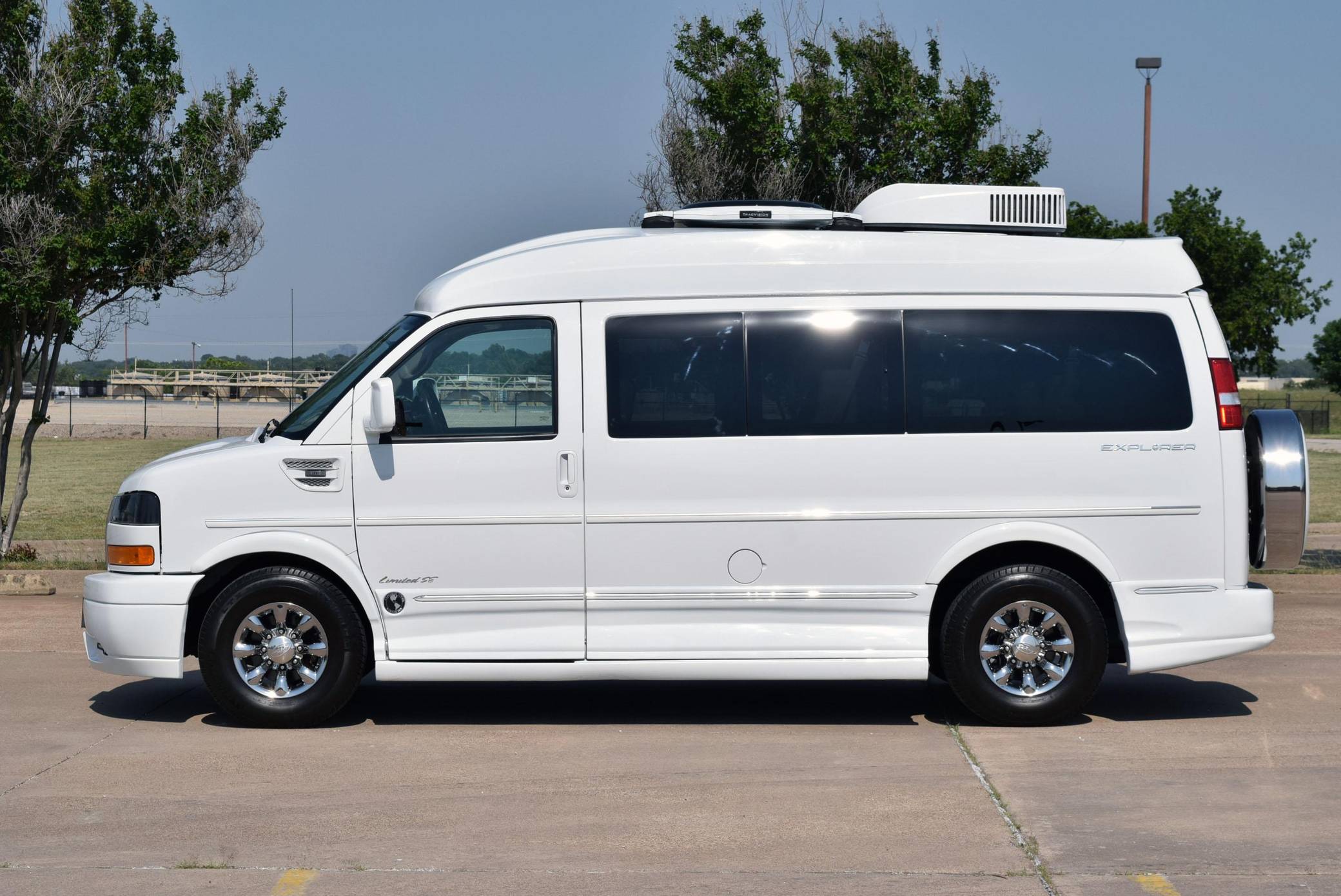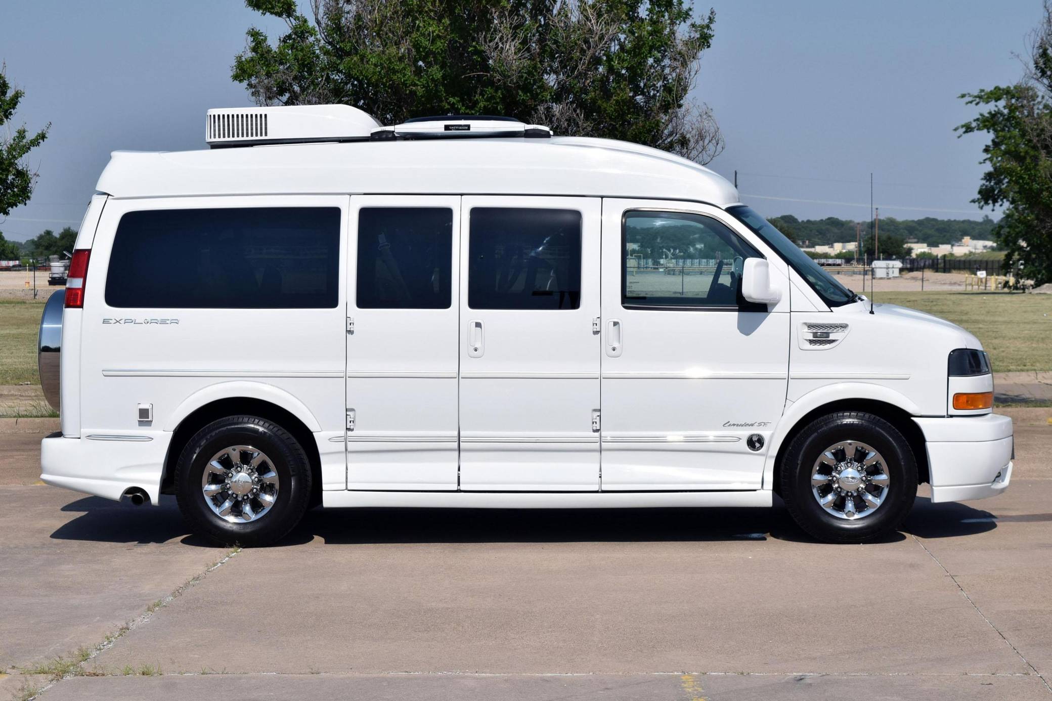 2015 GMC Savana G2500 Explorer Limited SE, finished in Summit White with a beige and brown interior. This van's odometer displays about 20,000 miles. This van has been modified by Indiana-based Explorer Van Company, according to a build sheet shown in the gallery. The list of modifications made includes 16-inch wheels, a "Medallion Series" body kit, an RV electrical outlet, a Sport roof, 6-way power-adjustable swiveling second-row seats, tray tables in the front seatbacks, a rear air conditioning system, a 29-inch Samsung television, and an on-board generator. More details about the aftermarket parts installed on this Savana are provided below. Factory equipment includes a locking rear differential, a trailer hitch, heated and power-adjustable door mirrors, cruise control, and a rear-view camera. GMC released the Savana for 1996 to replace the Vandura, which had joined the line-up for 1971. New from the ground up, and closely related to the Chevrolet Express, the Savana benefitted from numerous improvements including a more spacious interior achieved by moving the front wheels forward by about 10 inches; this reduced the amount of space taken up by the engine in the cabin. The Savana has received several updates since its launch, and it's somewhat surprisingly still part of the GMC range in 2022. Power comes from a 6. 0-liter "Vortec" V8, rated at 342 horsepower and 373 lb-ft of torque. It spins the rear wheels via a 6-speed automatic transmission.