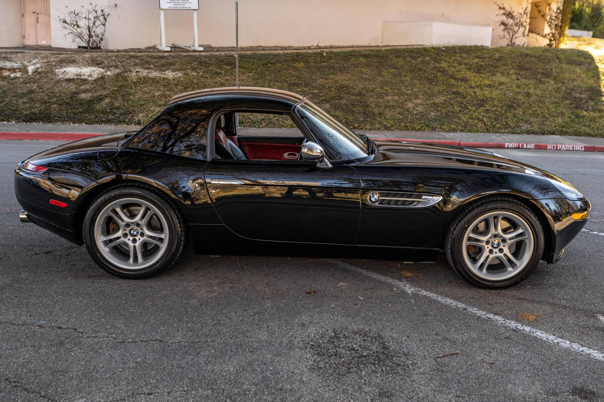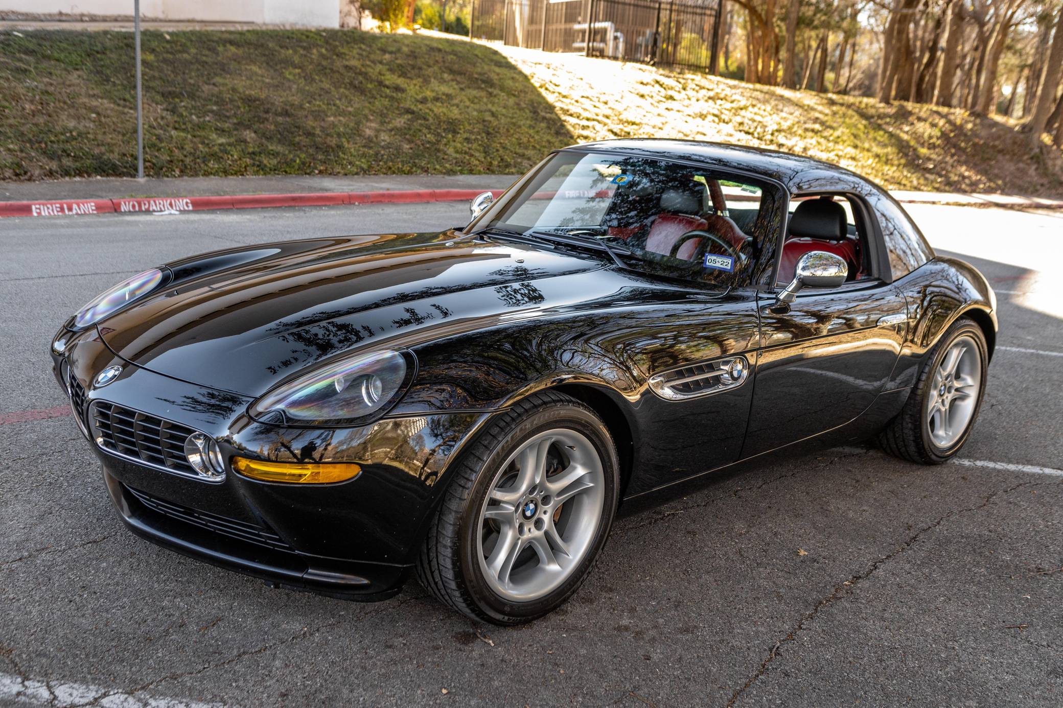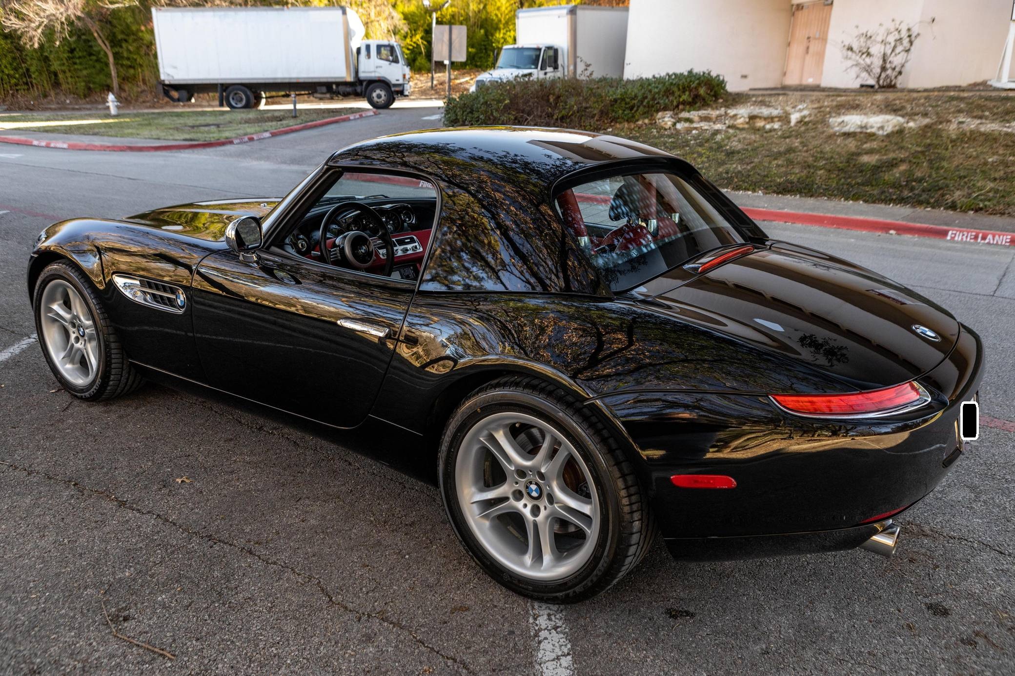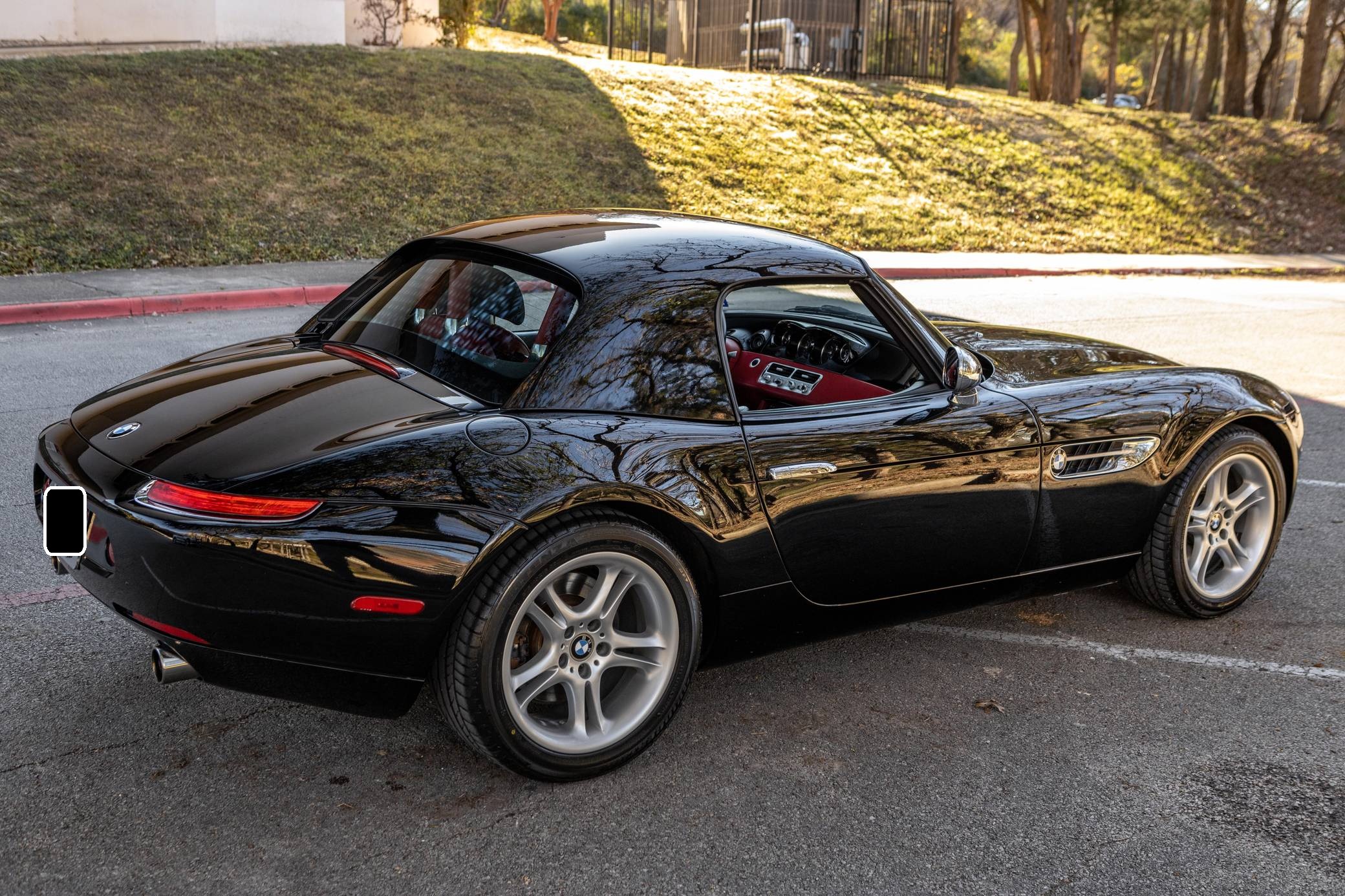 2001 BMW Z8, finished in black with body-colored hardtop, a black soft top, and a red and black interior. Factory equipment includes a factory body-colored hardtop, 18-inch wheels, leather upholstery, heated and power-adjustable seats, and a navigation system. This car's build sheet is pictured in the gallery. The factory tonneau cover and wind deflector are shown in the gallery as well and included in the sale. Modifications reported by the seller are limited to engine software, a cold-air intake system, throttle bodies, and headers from Dinan as well as a BMW Performance brace. The engine oil and filter, the engine air filters, the brake fluid, the coolant, and the cabin air filter were changed in December 2021. BMW's retro-styled Z8 famously starred in the 1999 James Bond movie "The World is Not Enough" before being let loose on American roads. Inspired by the 507, it arrived as a two-seater roadster with gorgeous proportions, aluminum construction, and a 50:50 weight distribution. It was positioned at the top of the BMW range and never envisioned as a volume model. Precisely 5,703 units were built, according to the firm's archives department, and 2,543 of those were sent to America from 2000 to 2003. Power comes from a 4. 9-liter "S62" V8, rated at 394 horsepower and 369 lb-ft of torque. Shared with the "E39" M5, it spins the rear wheels via a 6-speed manual transmission.
