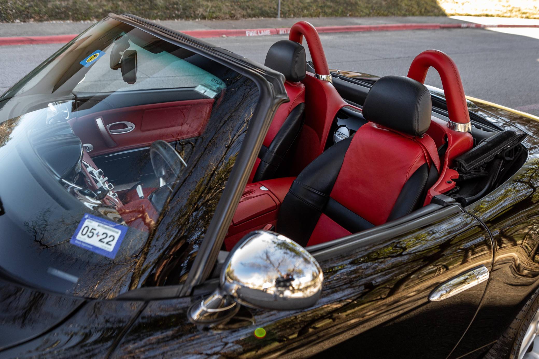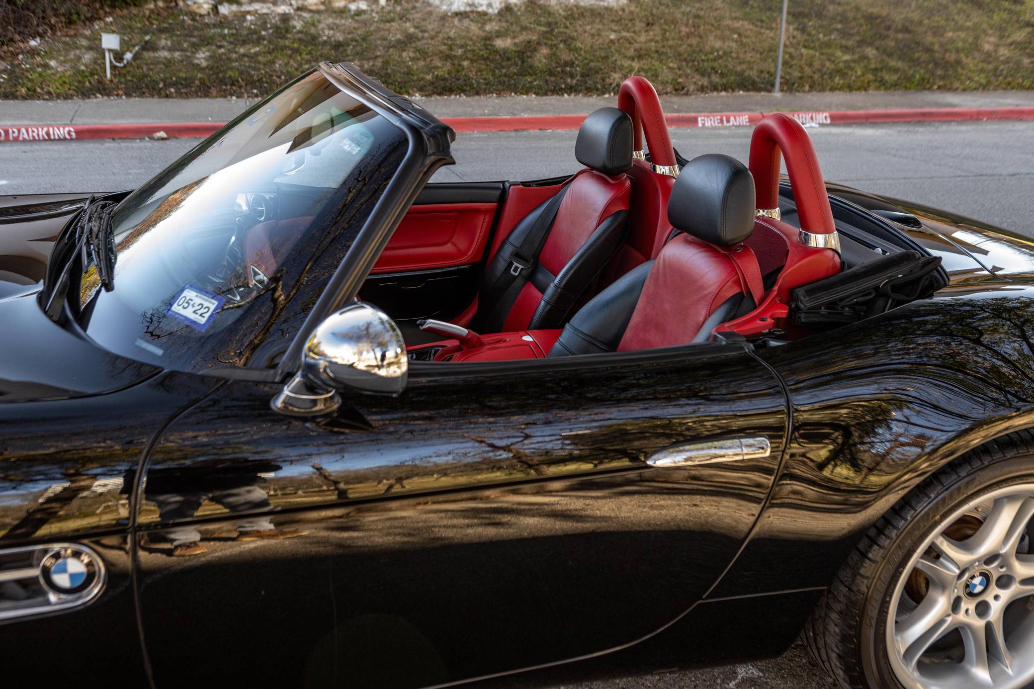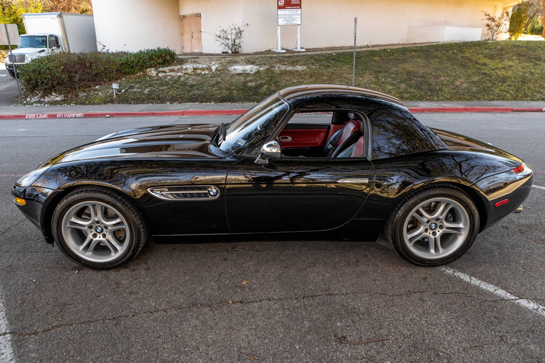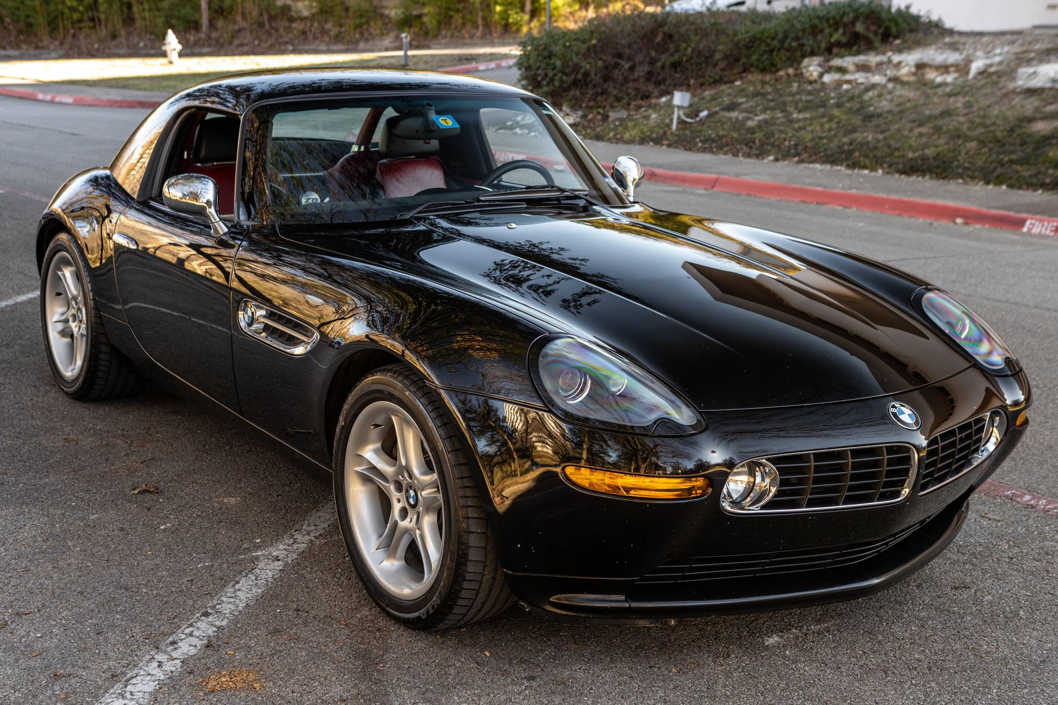 2001 BMW Z8, finished in black with body-colored hardtop, a black soft top, and a red and black interior. Factory equipment includes a factory body-colored hardtop, 18-inch wheels, leather upholstery, heated and power-adjustable seats, and a navigation system. This car's build sheet is pictured in the gallery. The factory tonneau cover and wind deflector are shown in the gallery as well and included in the sale. Modifications reported by the seller are limited to engine software, a cold-air intake system, throttle bodies, and headers from Dinan as well as a BMW Performance brace. The engine oil and filter, the engine air filters, the brake fluid, the coolant, and the cabin air filter were changed in December 2021. BMW's retro-styled Z8 famously starred in the 1999 James Bond movie "The World is Not Enough" before being let loose on American roads. Inspired by the 507, it arrived as a two-seater roadster with gorgeous proportions, aluminum construction, and a 50:50 weight distribution. It was positioned at the top of the BMW range and never envisioned as a volume model. Precisely 5,703 units were built, according to the firm's archives department, and 2,543 of those were sent to America from 2000 to 2003. Power comes from a 4. 9-liter "S62" V8, rated at 394 horsepower and 369 lb-ft of torque. Shared with the "E39" M5, it spins the rear wheels via a 6-speed manual transmission.