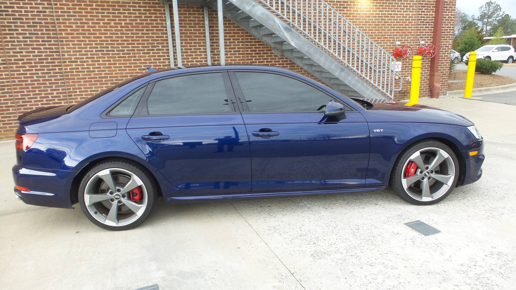 THIS… is a 2018 Audi S4, finished in Navarra Blue Metallic with a Magma Red interior. Factory equipment includes the Black Optic and S Sport packages, LED headlights, Fine Nappa leather upholstery, power-adjustable heated front seats, 3-zone automatic climate control, and more as listed below. Modifications reported by the seller are limited to tinted windows. The B9 generation saw the S4 return to its roots, ditching the supercharger for a single twin-scroll turbo. Like the larger V8s in the RS6 and RS7, the V6 uses a "hot inside V" configuration, with the turbocharger, exhaust manifolds, and exhaust ports all nestled inside the V of the engine. A ZF 8-speed automatic replaces the prior 7-speed dual-clutch transmission, and this upgraded powertrain can take the S4 from 0-60 in just 4. 2 seconds. Power comes from a turbocharged 3. 0-liter V6 engine, rated at 354 horsepower and 369 lb-ft of torque. Output is sent to all four wheels via an 8-speed automatic transmission and Audi’s Quattro all-wheel-drive system.