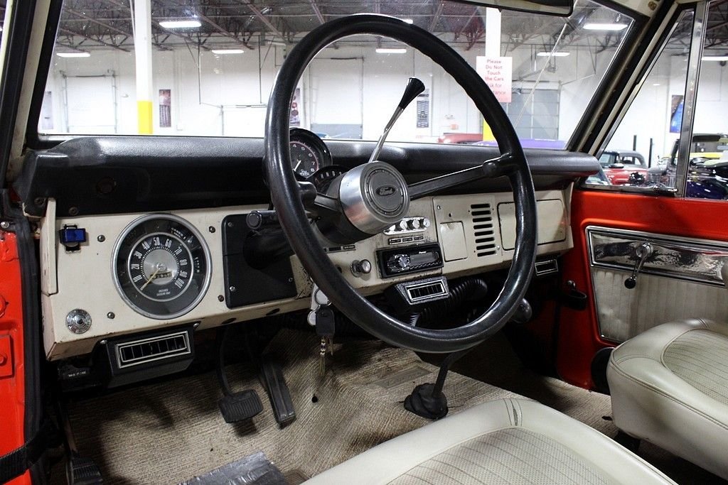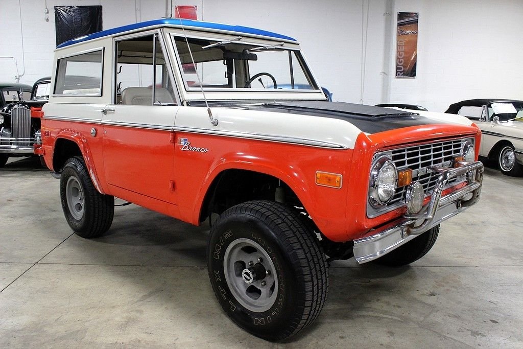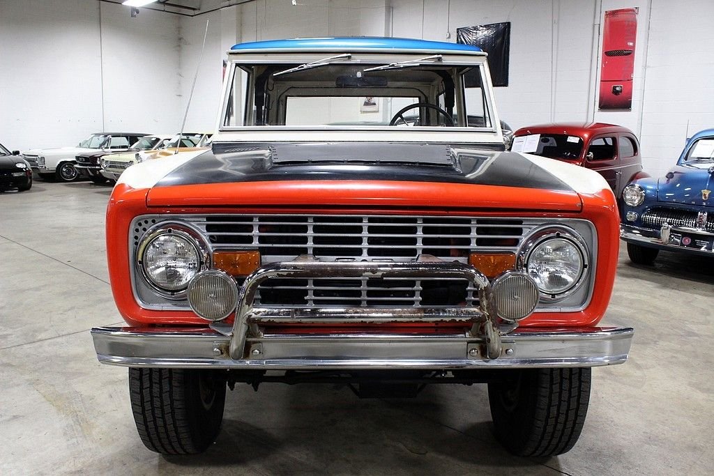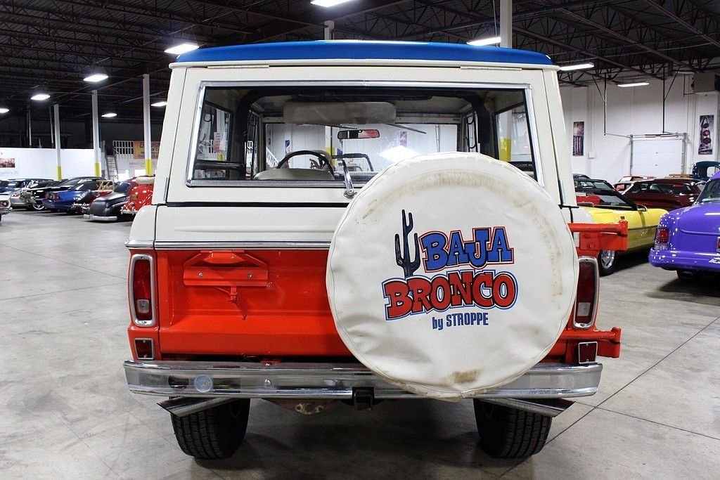 Ford Motor Company began production of their legendary Ford Bronco for the 1966 model year and as soon as the Bronco was released, Bill Stroppe became involved. Since the beginning, Mr. Stroppe used the Bronco to race in desert races, off-road races and even had the chance to win both the Baja 500 and 1000 using the Bronco in 1971. Now with a national recognized brand, Ford saw this as the perfect time to utilize its popularity towards marketing a specialty Bronco for public sale. On January 28th, 1971, Ford announced this new specialty SUV , the Baja Bronco. This vehicle was classified as a “limited production duplicate” of Stroppes team cars and although not many were made, most off-road enthusiasts will attest to the impact they made. From top to bottom, this vehicle screams capability and with the correctly chosen colors throughout, this is a real prize waiting to be had by its next owner! From the outside, it is clear this is a unique example which features a bold orange and white body with a black hood and bright blue roof and all the off-road styling you would come to expect from a legendary ride. The chrome bumpers and brush guard could use refurbishing but the tires and wheels are in good condition and a wonderful moon roof has been installed for extra enjoyment. The interior is still well intact but with an aftermarket media center in place and a vintage air system installed for more modern enjoyment. The documentation is really what sets this one apart from the rest as we have been provided with the original warranty Ownercard, receipts directly from Bill Stroppe Associates for the up-fit with vin matching details and even a copy of the original invoice showing the ship thru to Bill Stroppe in Long Beach, CA and then to Parker Motor Co in Parker, AZ where it was first sold new! Many other documents and receipts included and the current owner has pulled off the extra shocks per wheel to give it a bit smoother ride on the road as well as the secondary gas tank but both will be included in the sale as well.