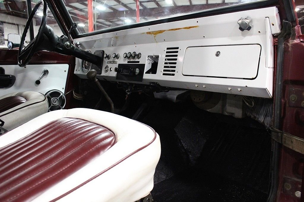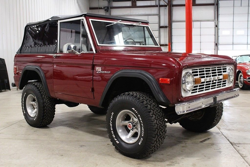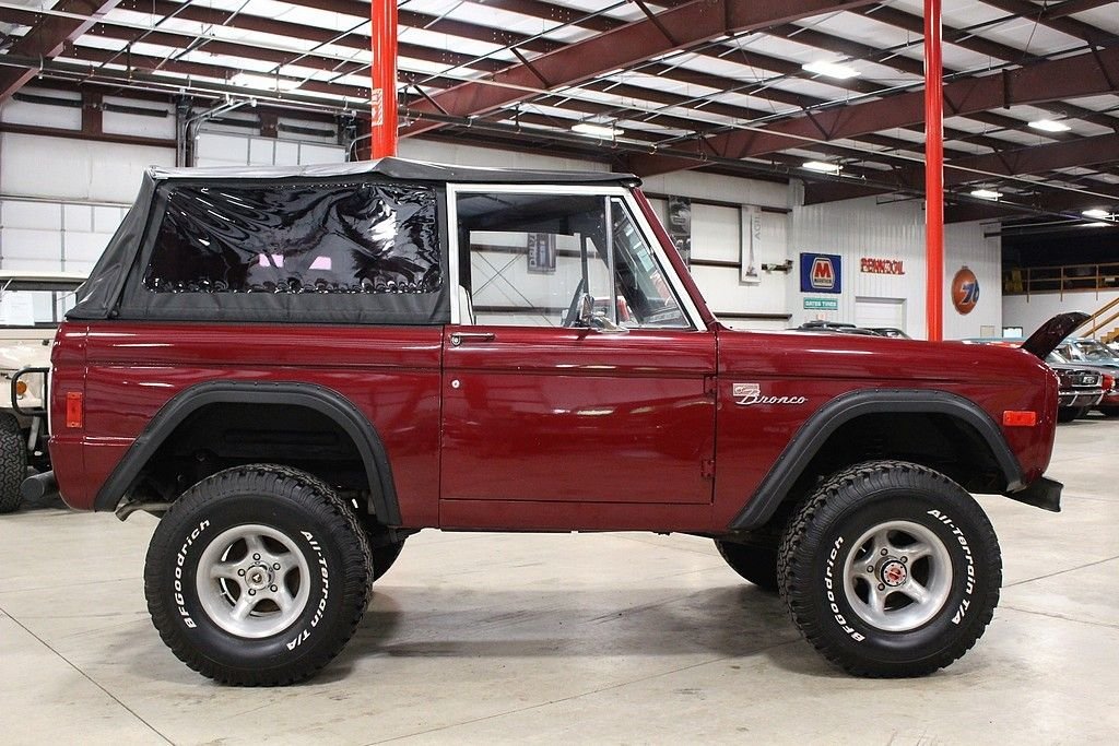 The original Bronco was an ORV intended to compete primarily with Jeep CJ and the International Harvester Scout. The idea behind the Bronco began with Ford product manager Donald N. Frey. With the help of Lee Iacocca, the idea was pushed through into production. The early Bronco (1966-1977) was unlike any other Ford in which it had a frame, suspension, and a body that were not shared with any other vehicle. The Bronco was designed under engineer Paul G. Axelrad and unique to his design, the axles and brakes were used from the Ford F-100 four wheel drive pickup truck, the front axle was located by radius arms (from the frame near the rear of the transmission forward to the axle) and a lateral track bar, allowing the use of coil springs that gave the Bronco a 34ft turning circle, long wheel travel, and an anti-dive geometry which was useful for snowplowing. The rear suspension was more conventional, with leaf springs in a typical Hotchkiss design. A shift-on the-fly Dana Corp. transfer case and locking hubs were standard. This 1977 Ford Bronco Sport is from the last year of production for the iconic first generation model. One of just over 14k built that year, this Candy Apple Red example runs a 351 Windsor /automatic drivetrain combo and is the perfect driver or beach cruiser. Brought here to Michigan just a few months ago from the “everything is bigger” state of Texas. The 77 Bronco is an iconic year not only because it's the last year of the first gen production but also because the way they were equipped. Dual gas tanks with flat gas doors, sway bars, front and rear power disc brakes, power steering, column shift automatic and upgraded axels. Inside the bronco is set up to play in the mud or take to a sandy beach with the interior being completely rhino lined. The 3 inch lift with 33 inch BF Goodrich tires and fender flares trims this 77 out nicely. This Bronco Sport is a nice, solid entry level last year of production that performs great and is ready to get dirty.