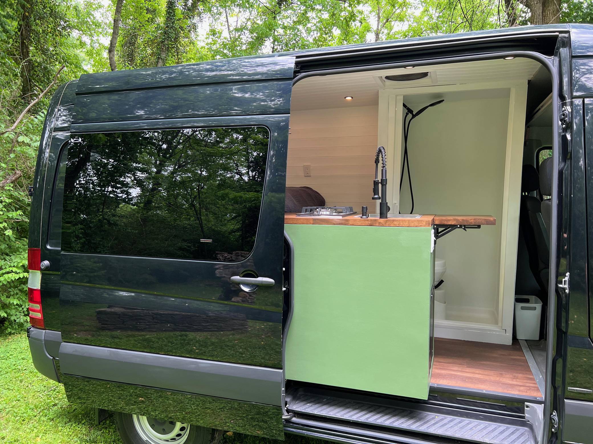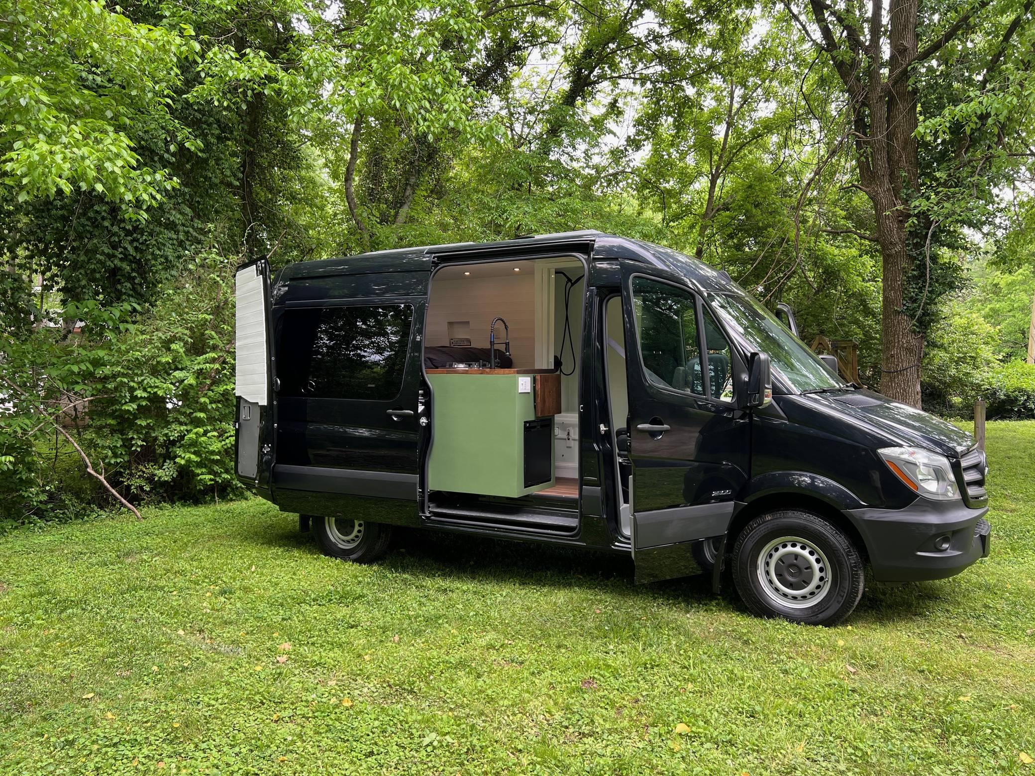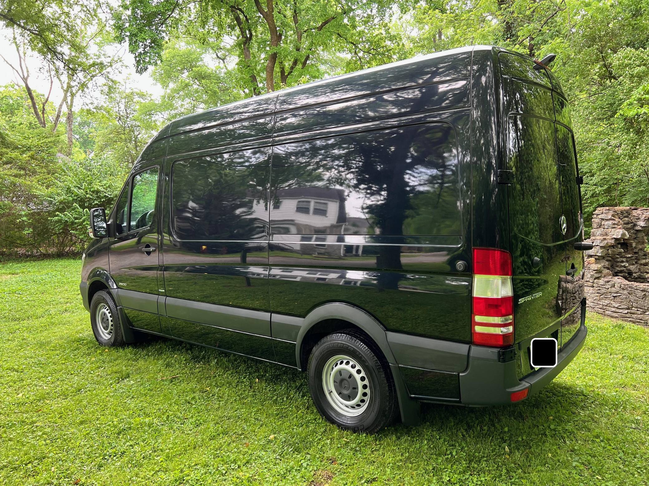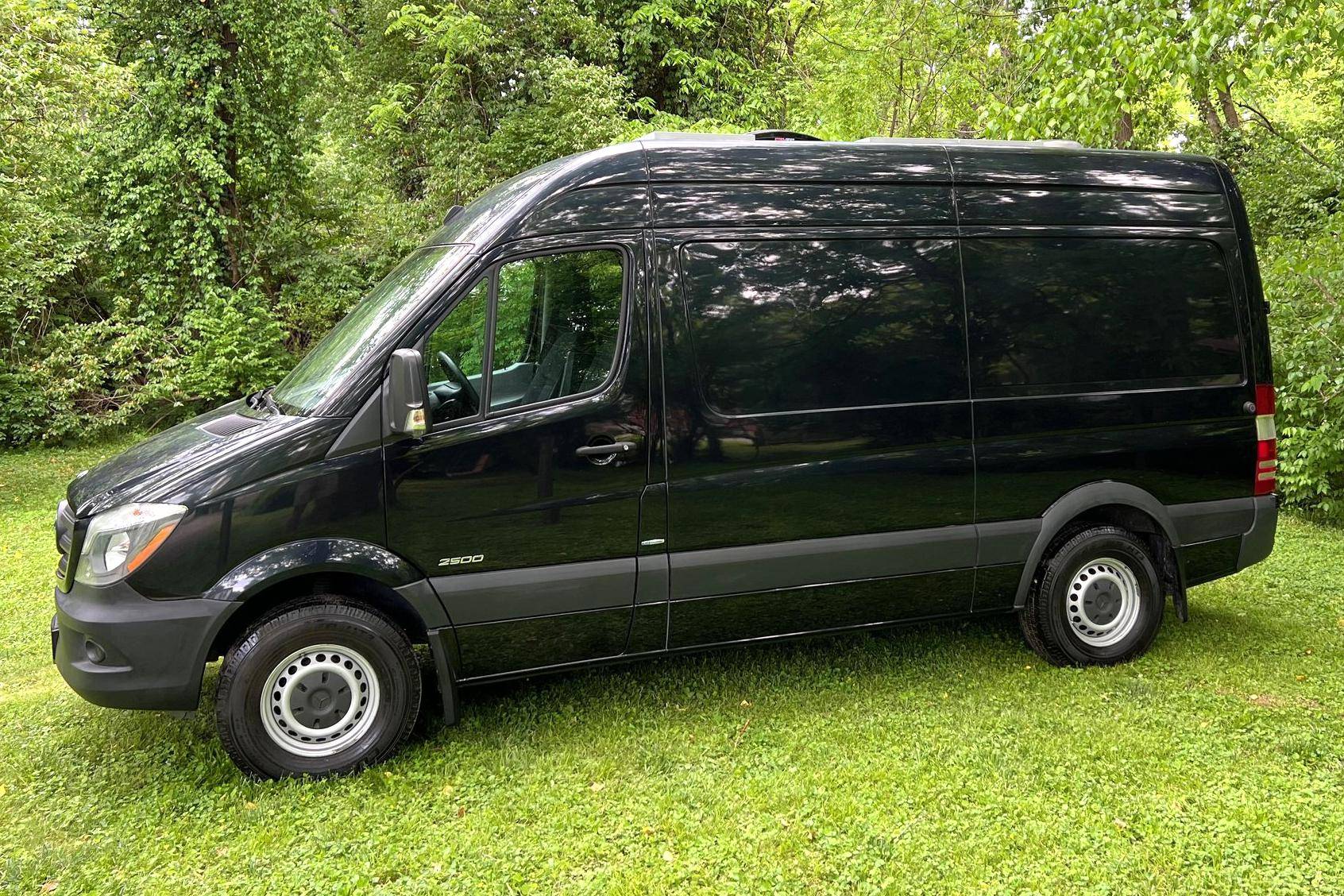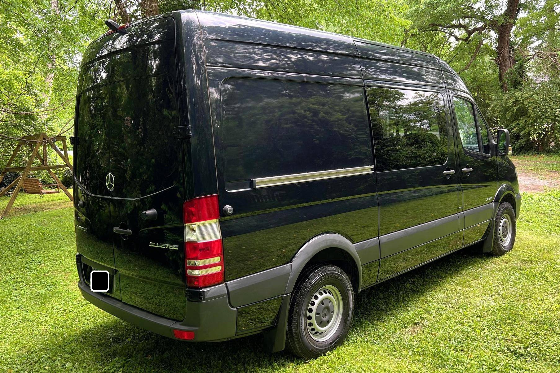2014 Mercedes-Benz Sprinter 2500, finished in Deep Black with a custom interior. Equipment includes 16-inch steel wheels, a high roof body, power windows and locks, dual-zone automatic climate control, and more as detailed below. A partial list of modifications reported by the seller includes wood flooring and custom wall/ceiling coverings in the living area, a kitchenette with 2-burner stove, sink, and refrigerator, a shower, toilet, rear double bed, a rear skylight, a 40-gallon fresh water tank, 300 watts of solar power, and a 200Ah battery bank. The second-generation Sprinter was introduced in North America for the 2007 model year. It became hugely popular not only with contractors and construction firms, but with the burgeoning "van life" set. Not only did it become a focus of established outfitters, but also smaller companies as well as private individuals looking to spread their creative wings while making use of the latest comfort and technical features on the market. Power comes from a 2. 1-liter turbodiesel inline-4, rated at 161 horsepower and 266 lb-ft of torque. Output is sent to the rear wheels through a 7-speed automatic transmission.