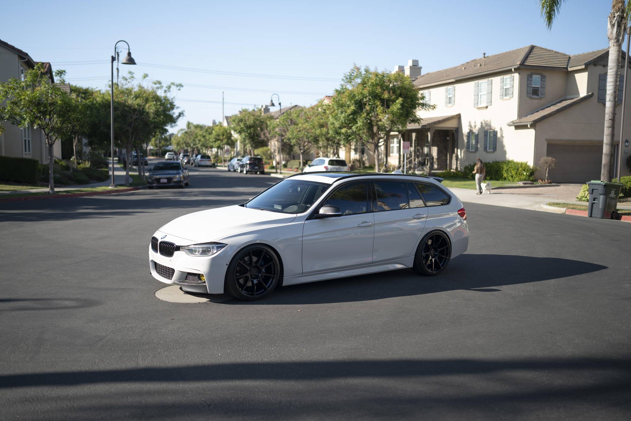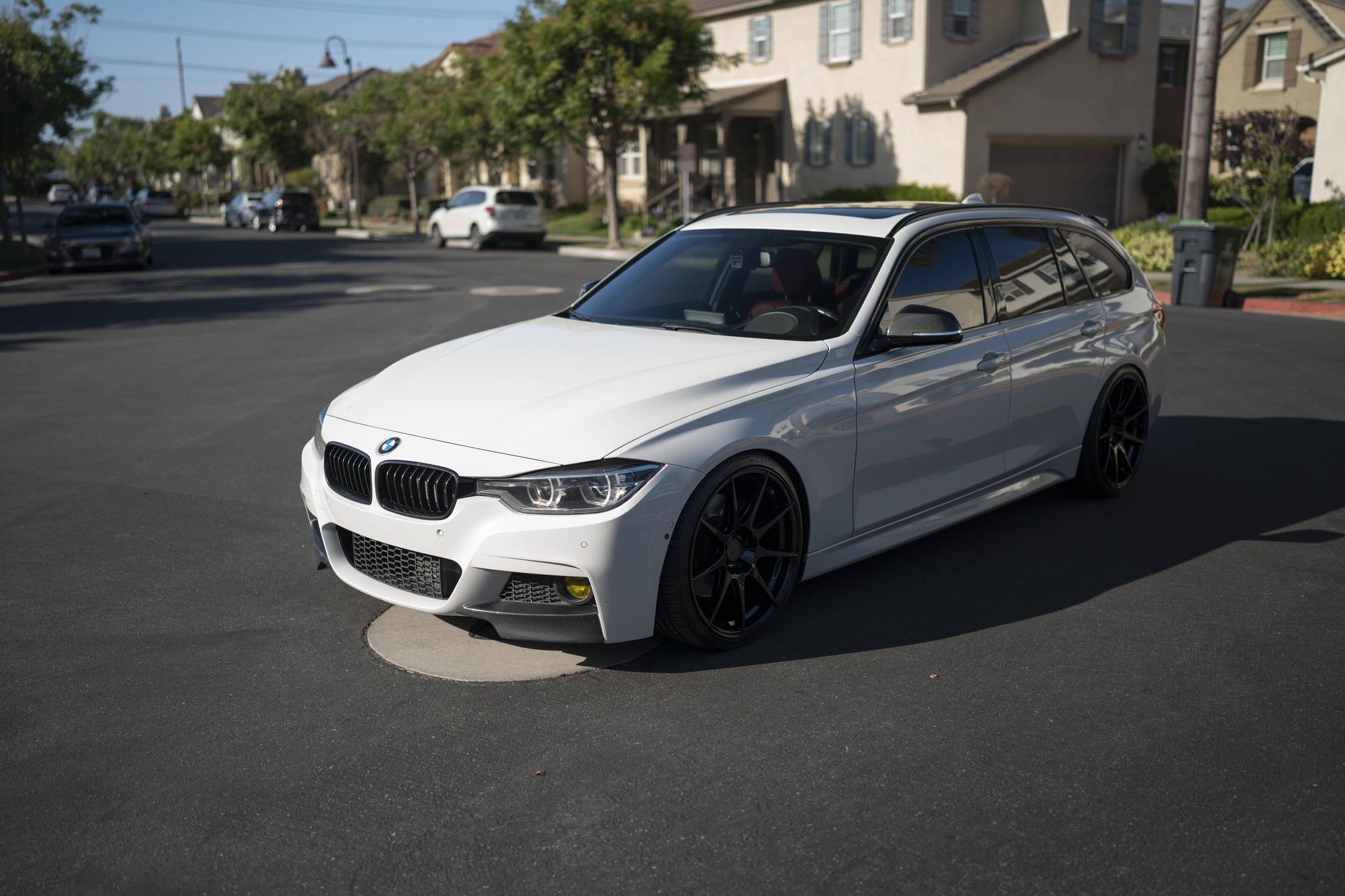 2018 BMW 330i xDrive Sport Wagon, finished in Alpine White with a Coral Red interior. Factory equipment includes the M Sport, Premium, Executive and Track Handling packages, black kidney grilles, black roof rails, a panoramic sunroof, a Harman Kardon surround sound system, and Apple CarPlay compatibility. Modifications reported by the seller include 20-inch ZITO FlowForme ZF02 wheels, a custom exhaust system from a BMW M2, Flatout Suspension SR coilovers, carbon-fiber exterior accents, carbon-fiber interior trim, and more as detailed below. BMW launched the sixth-generation 3 Series for the 2012 model year. It was called F30 internally, and the station wagon variant released later was known as the F31. Both models were slightly bigger than their predecessors, and they offered buyers a much more up-to-date interior. 2016 brought a mid-cycle update that included subtle styling tweaks, a widely praised redesigned suspension, and a revised steering system. This 330i xDrive benefits from all of these updates. Power for this 330i comes from a turbocharged 2. 0-liter 4-cylinder engine, rated at 248 horsepower and 258 lb-ft of torque. Output is sent to all four wheels via an 8-speed automatic transmission and BMW's xDrive all-wheel-drive system.