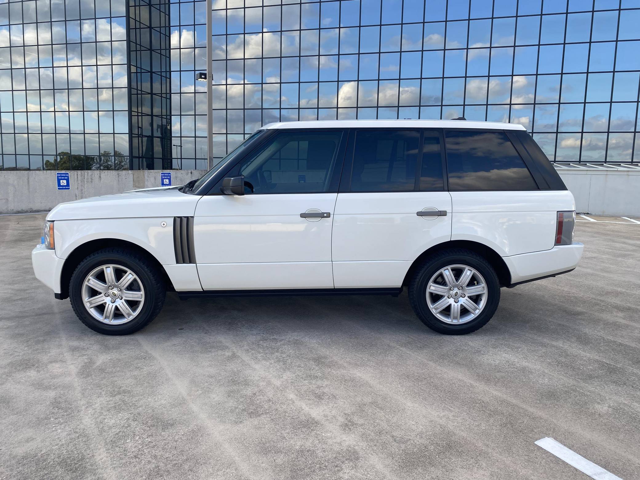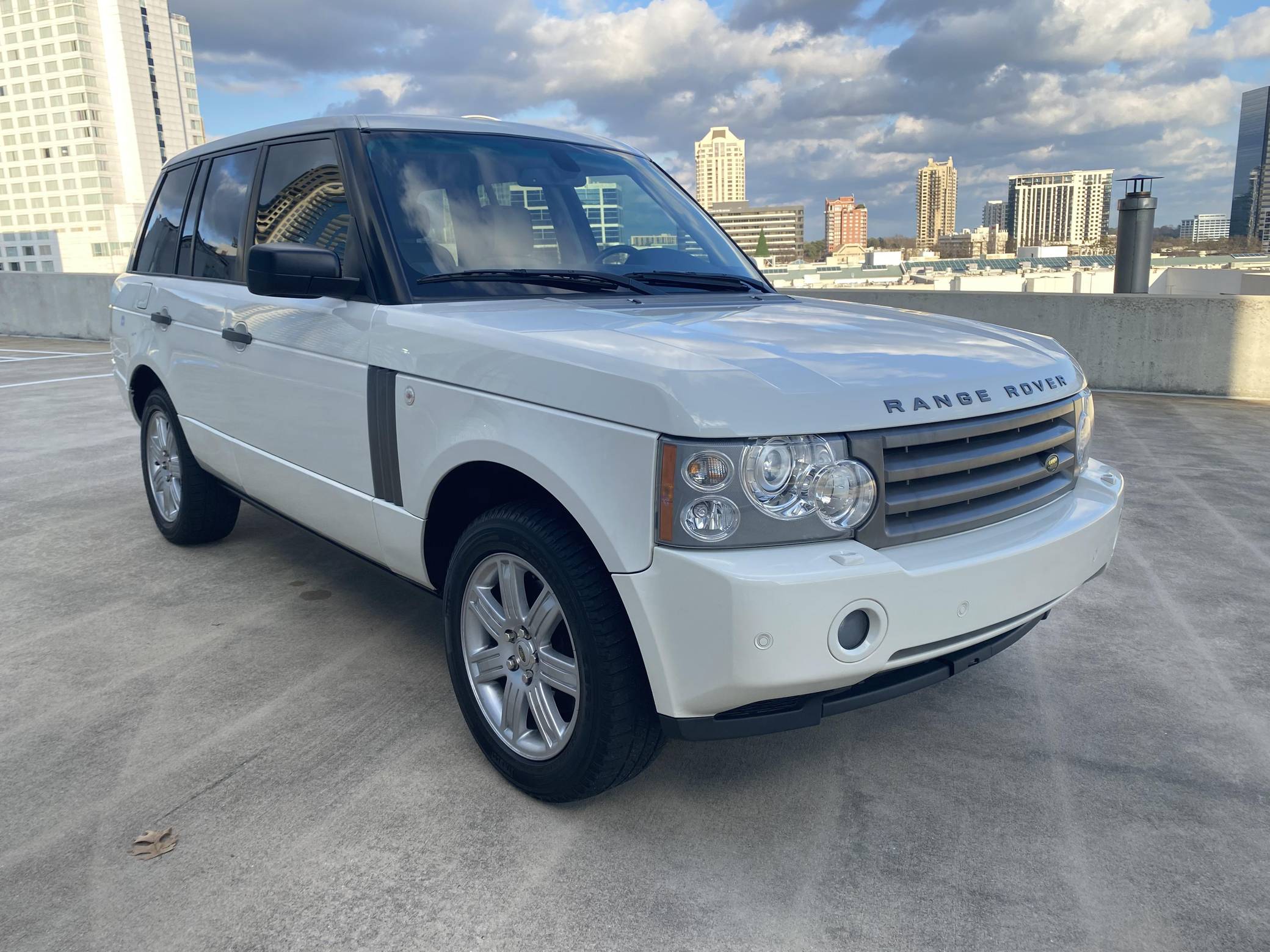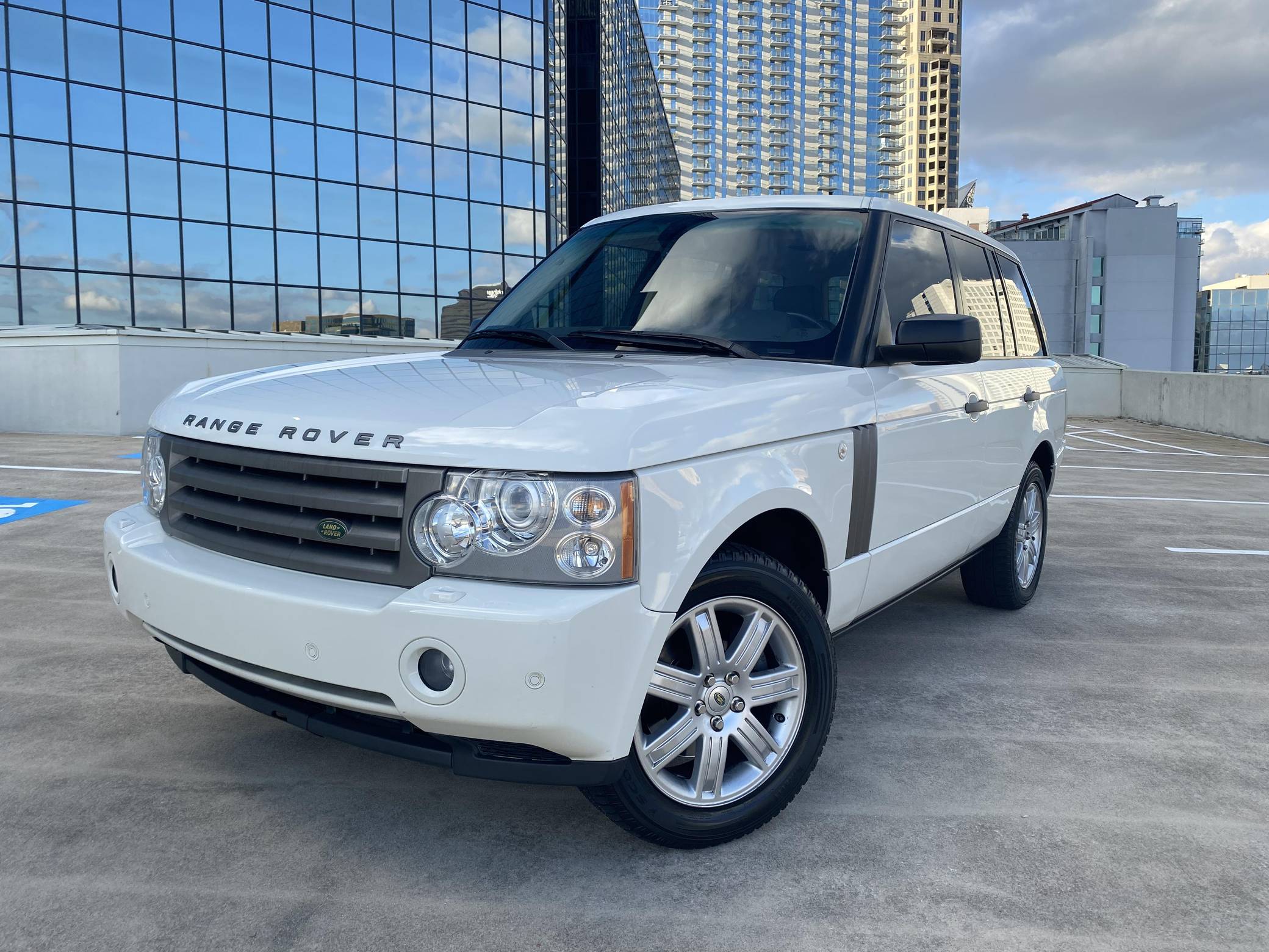 2008 Range Rover HSE, finished in white with a tan interior. Equipment includes 19-inch alloy wheels, the Terrain Response traction control system, a height-adjustable suspension system, bi-xenon headlights, a sunroof, leather upholstery, wood interior trim, heated front and rear seats, a navigation system, a Harman/Kardon audio system, and more as detailed below. The seller reports no modifications. The L322-generation Range Rover was designed under BMW's brief stewardship of Land Rover, and it represented a massive change from previous models. It utilizes partial unit-body construction, independent front and rear suspensions with air springs, and plenty of BMW switchgear and mechanical components. Changes for 2006 however included a switch to Ford-sourced engines, an updated chassis, a redesigned front end, better sound insulation, and a new infotainment system. Power comes from a 4. 4-liter V8, rated at 305 horsepower and 325 lb-ft of torque. Output is sent to all four wheels through a 6-speed automatic transmission and a 2-speed transfer case.