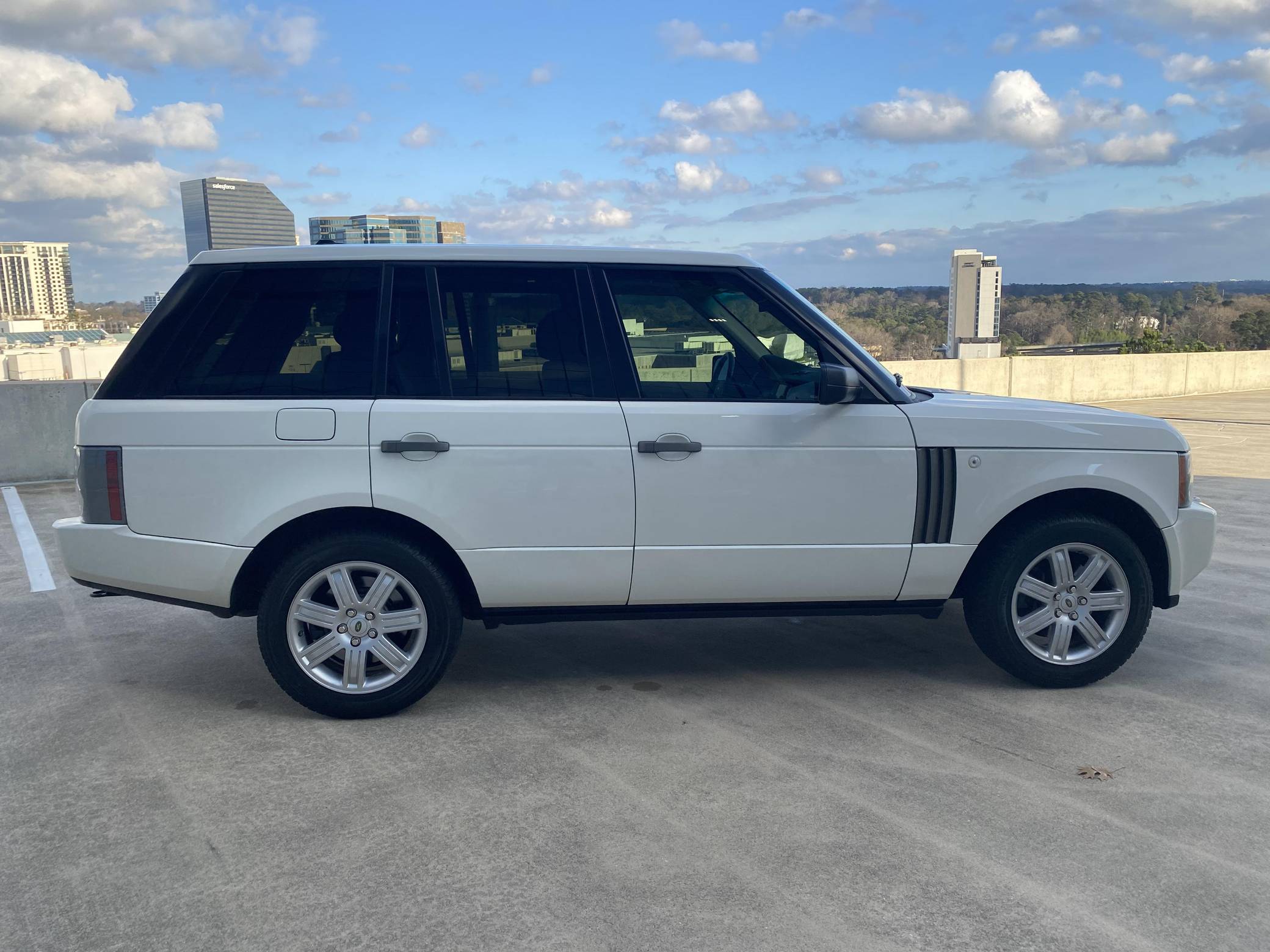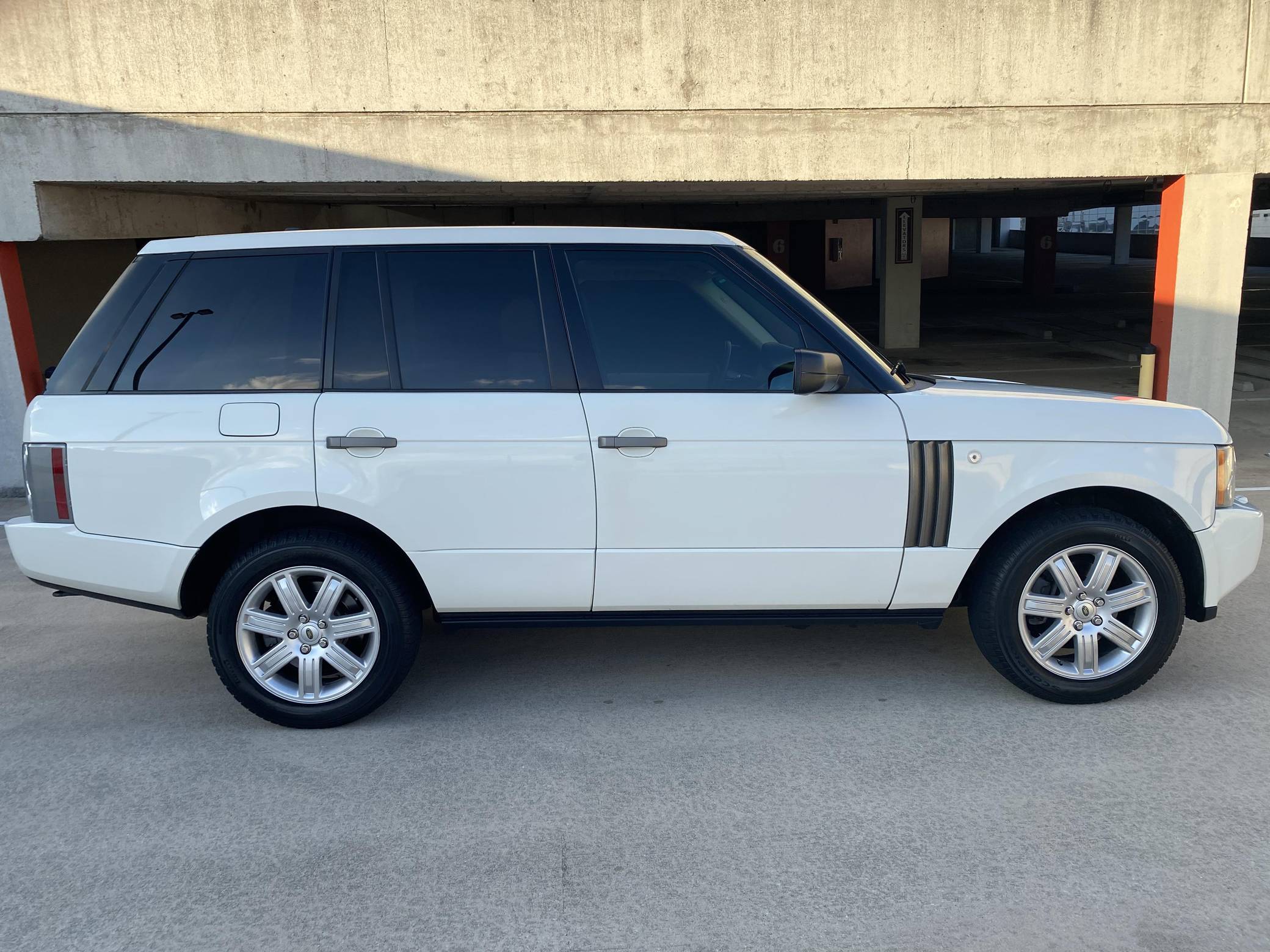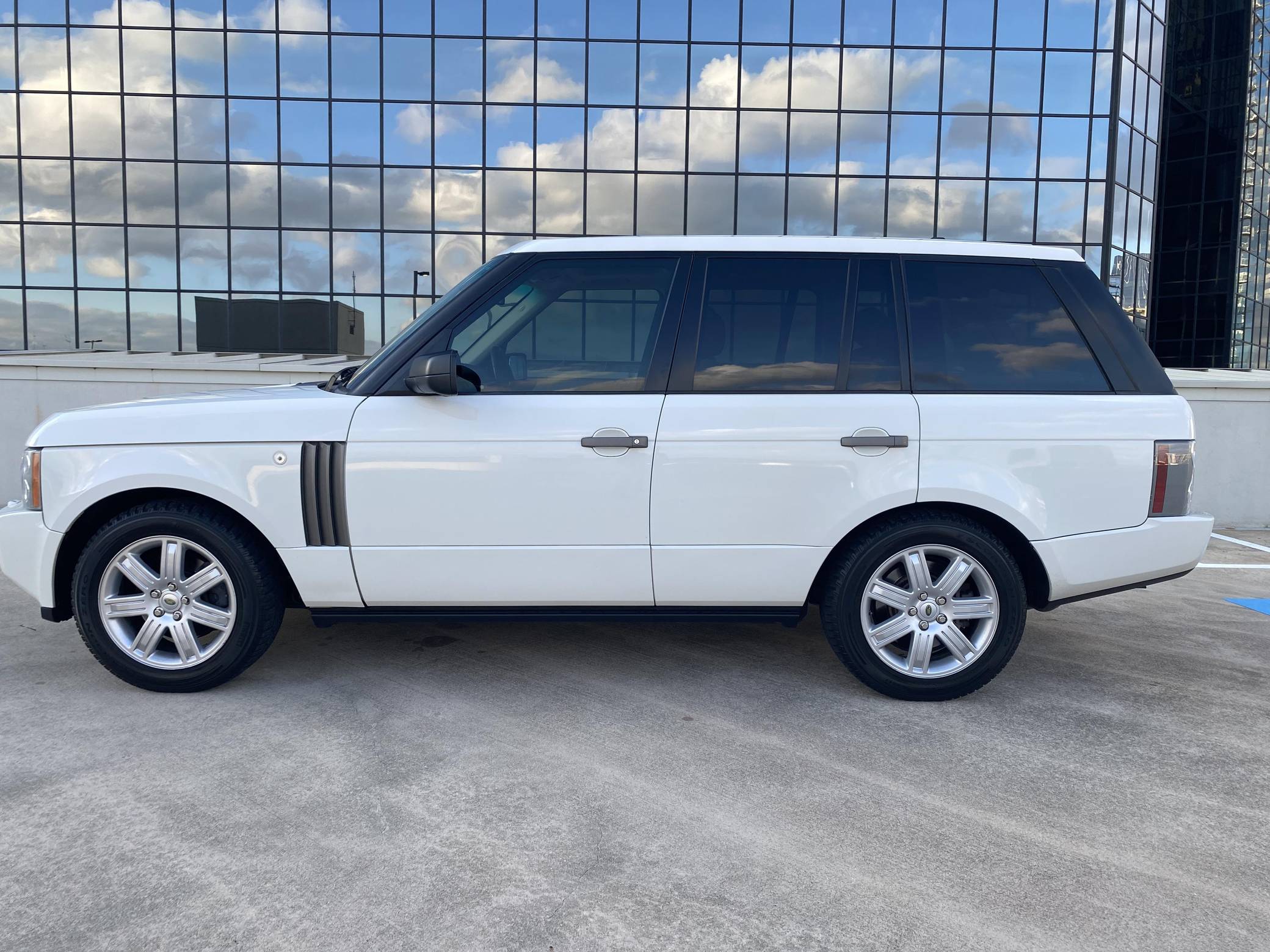 2008 Range Rover HSE, finished in white with a tan interior. Equipment includes 19-inch alloy wheels, the Terrain Response traction control system, a height-adjustable suspension system, bi-xenon headlights, a sunroof, leather upholstery, wood interior trim, heated front and rear seats, a navigation system, a Harman/Kardon audio system, and more as detailed below. The seller reports no modifications. The L322-generation Range Rover was designed under BMW's brief stewardship of Land Rover, and it represented a massive change from previous models. It utilizes partial unit-body construction, independent front and rear suspensions with air springs, and plenty of BMW switchgear and mechanical components. Changes for 2006 however included a switch to Ford-sourced engines, an updated chassis, a redesigned front end, better sound insulation, and a new infotainment system. Power comes from a 4. 4-liter V8, rated at 305 horsepower and 325 lb-ft of torque. Output is sent to all four wheels through a 6-speed automatic transmission and a 2-speed transfer case.