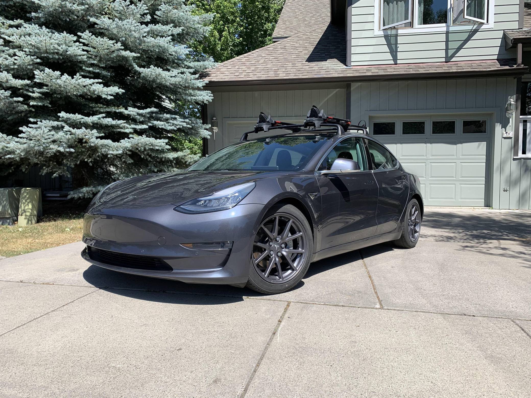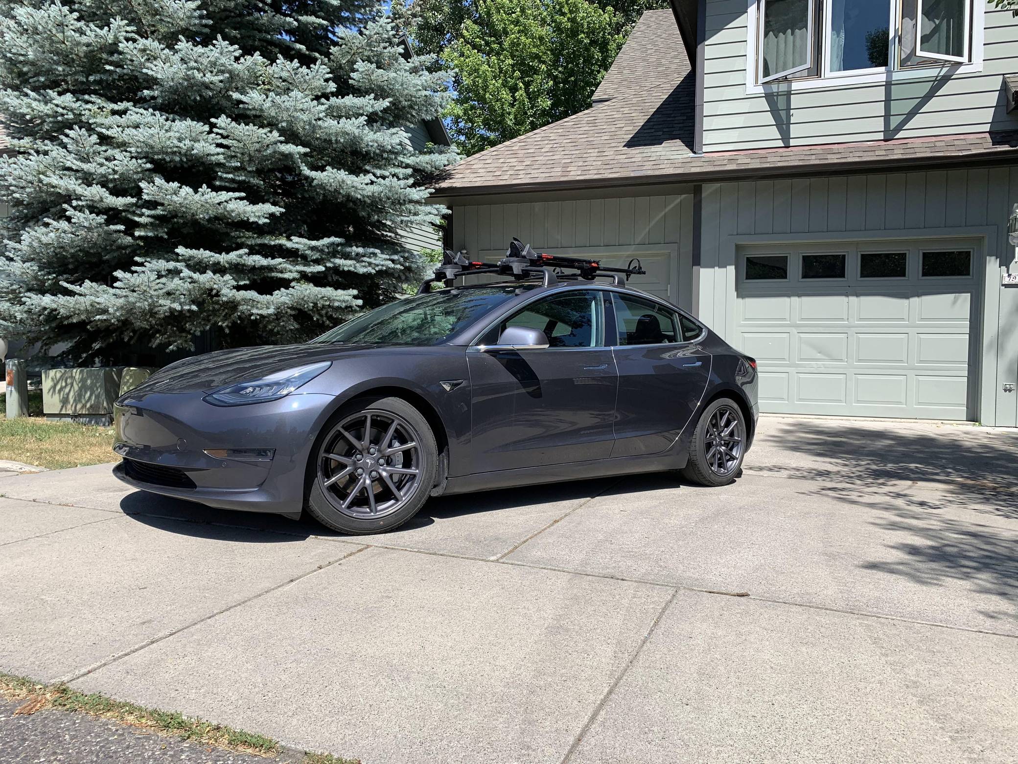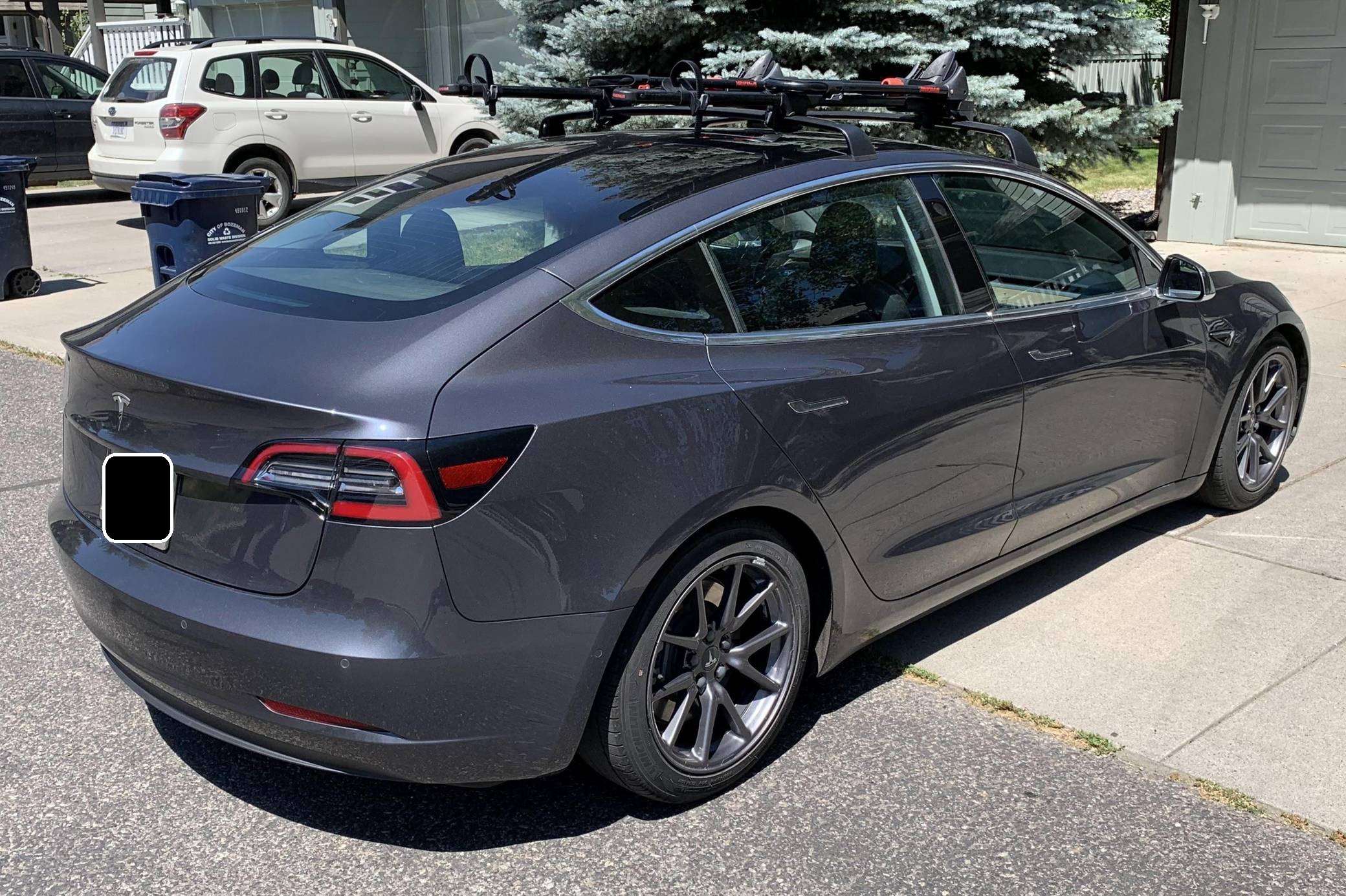 2018 Tesla Model 3 Mid Range RWD, finished in Midnight Silver Metallic with a black interior. Factory equipment includes the Premium Interior, 18-inch wheels, LED exterior lighting, a 15-inch touchscreen, and Autopilot technology. Modifications reported by the seller are limited to Comfort Adjustable coilovers and Arastradero rear camber and toe arms from Mountain Pass Performance, and a 3M wrap on the center console. The removed factory suspension system parts are included in the sale. Positioned as Tesla's entry-level car, the Model 3 was celebrated as a premium EV with a usable range and respectable performance, all at a reasonably attainable price. It's still available today, and it has gone through several evolutions (including many software updates) since its introduction. Power comes from a rear-mounted electric motor, which draws electricity from a 62-kilowatt-hour lithium-ion battery pack to zap the rear wheels with 283 horsepower and 330 lb-ft of torque, according to third-party estimates. The Mid-Range model earned a 260-mile range rating from the EPA in 2018.