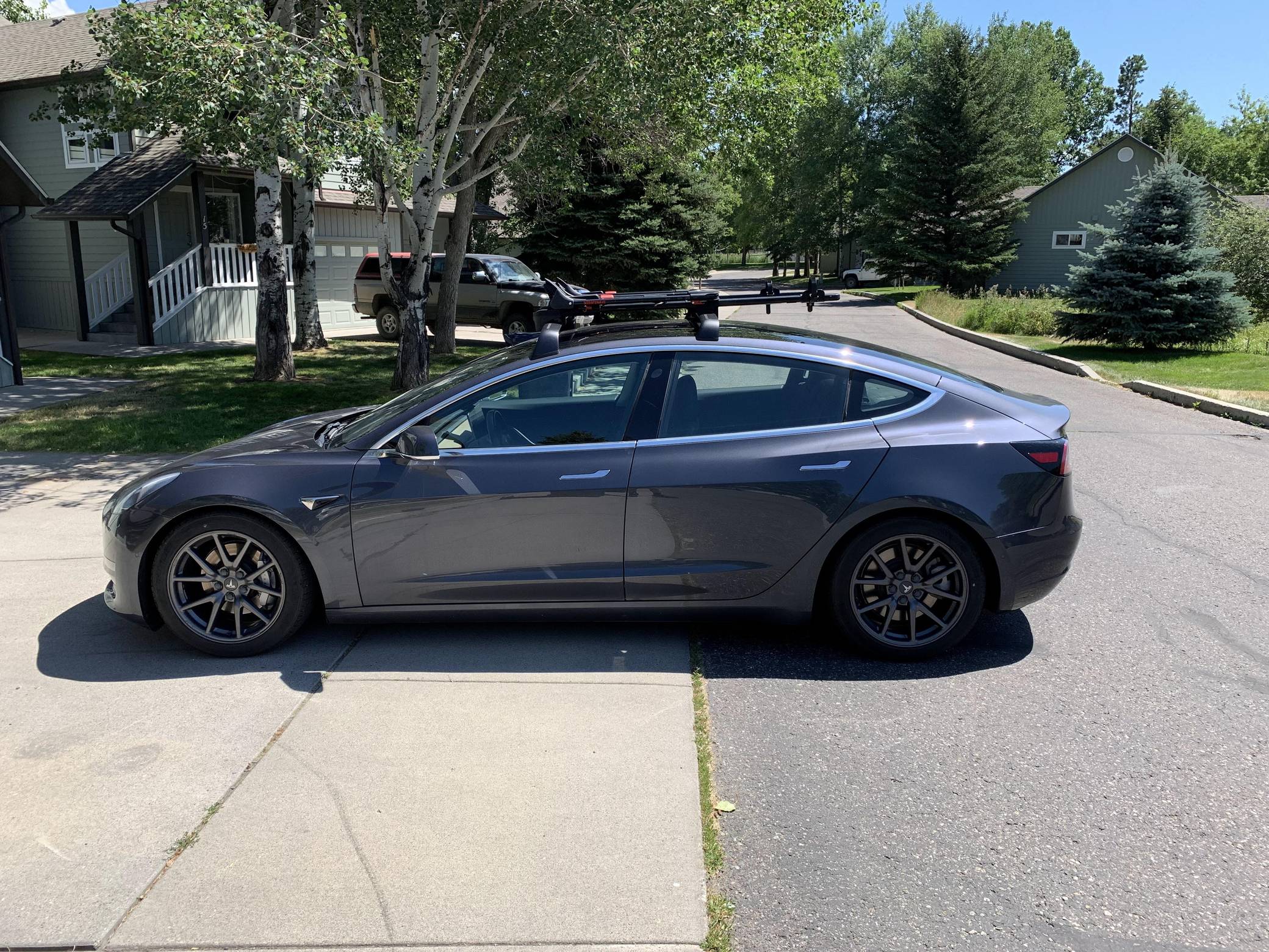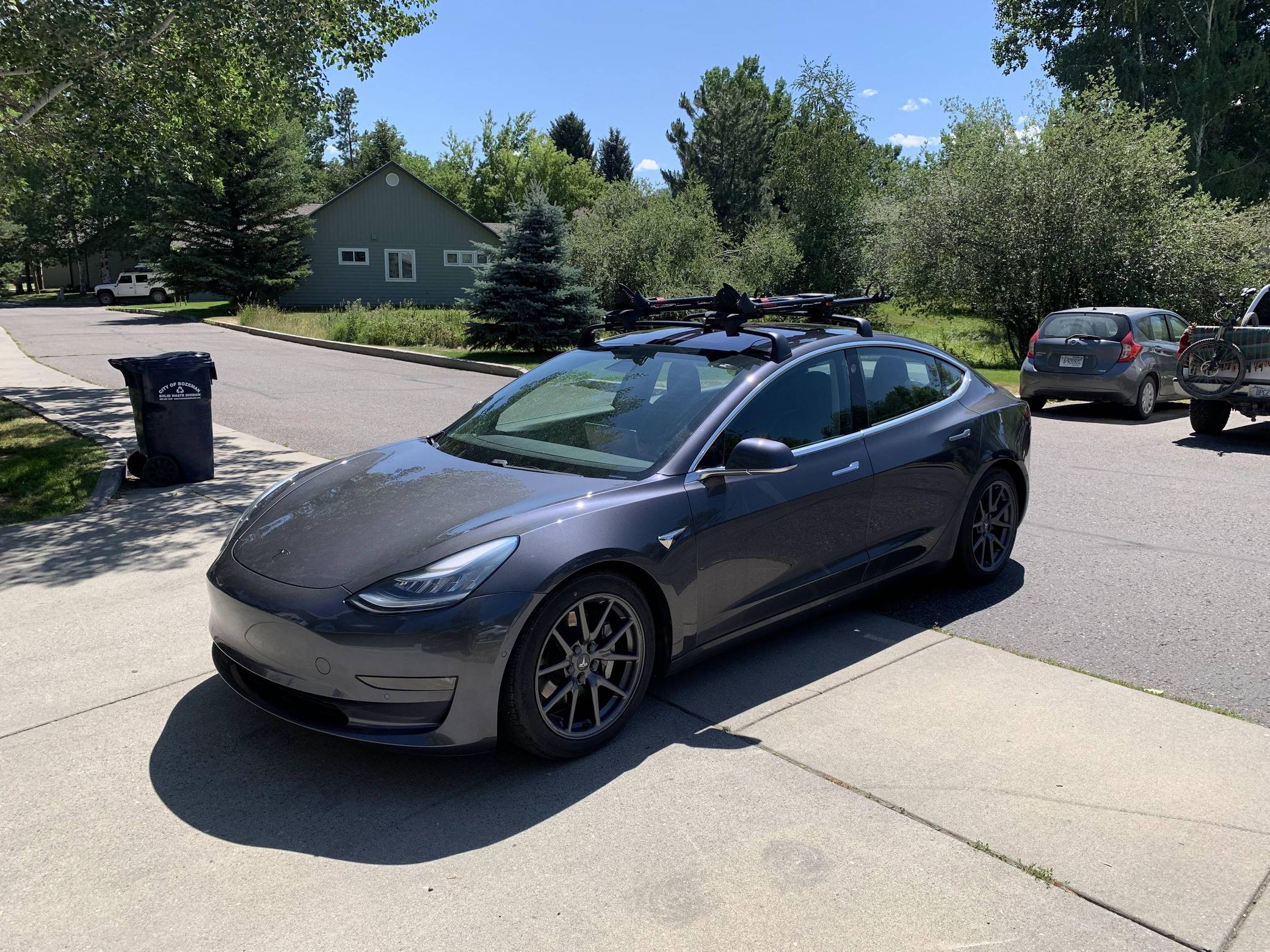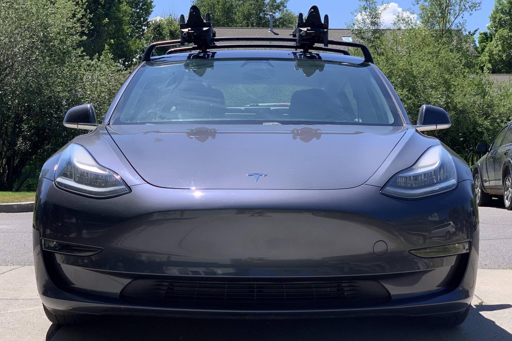 2018 Tesla Model 3 Mid Range RWD, finished in Midnight Silver Metallic with a black interior. Factory equipment includes the Premium Interior, 18-inch wheels, LED exterior lighting, a 15-inch touchscreen, and Autopilot technology. Modifications reported by the seller are limited to Comfort Adjustable coilovers and Arastradero rear camber and toe arms from Mountain Pass Performance, and a 3M wrap on the center console. The removed factory suspension system parts are included in the sale. Positioned as Tesla's entry-level car, the Model 3 was celebrated as a premium EV with a usable range and respectable performance, all at a reasonably attainable price. It's still available today, and it has gone through several evolutions (including many software updates) since its introduction. Power comes from a rear-mounted electric motor, which draws electricity from a 62-kilowatt-hour lithium-ion battery pack to zap the rear wheels with 283 horsepower and 330 lb-ft of torque, according to third-party estimates. The Mid-Range model earned a 260-mile range rating from the EPA in 2018.