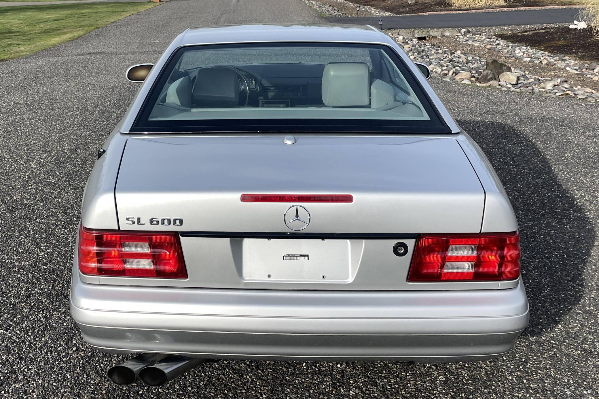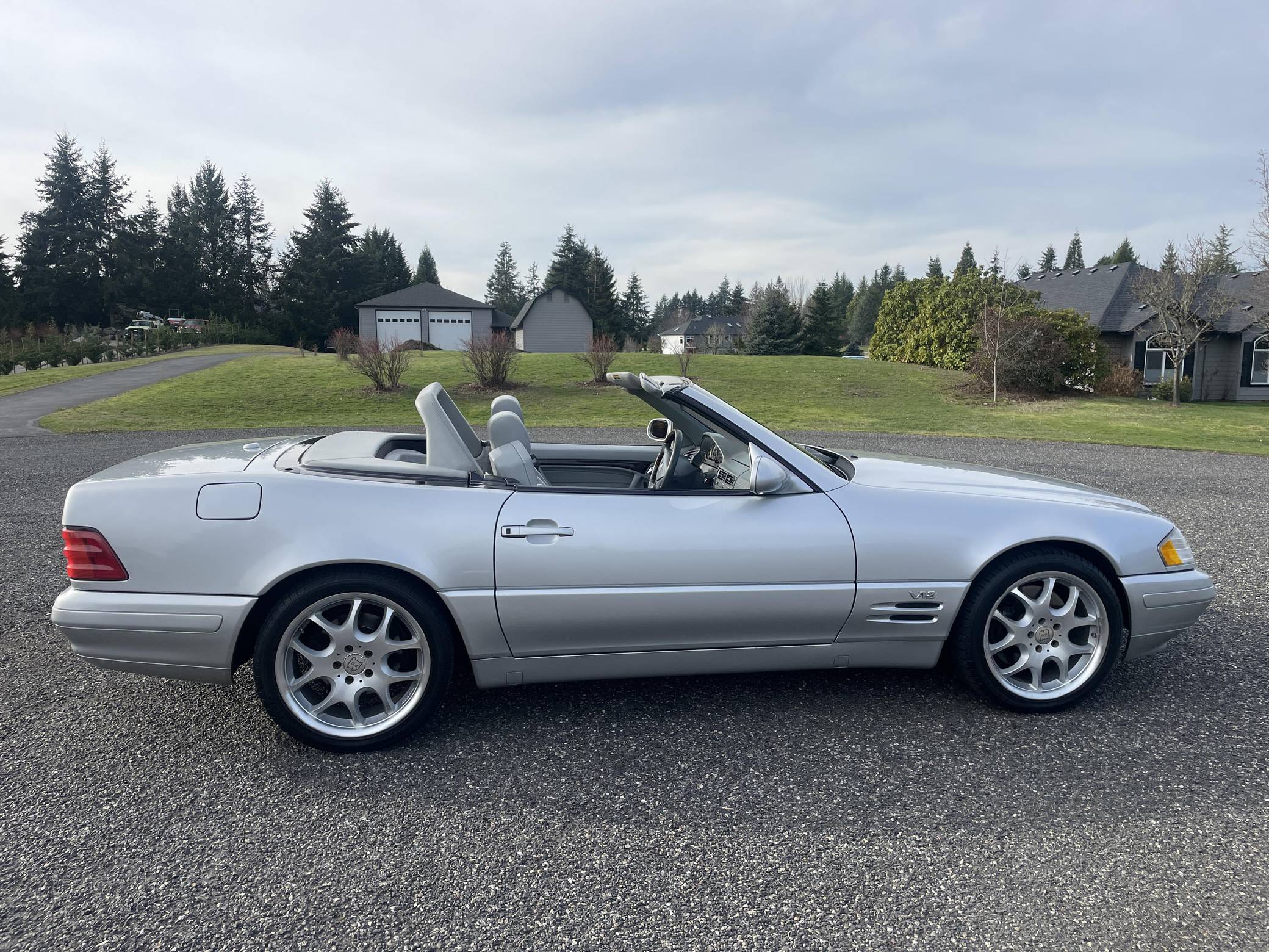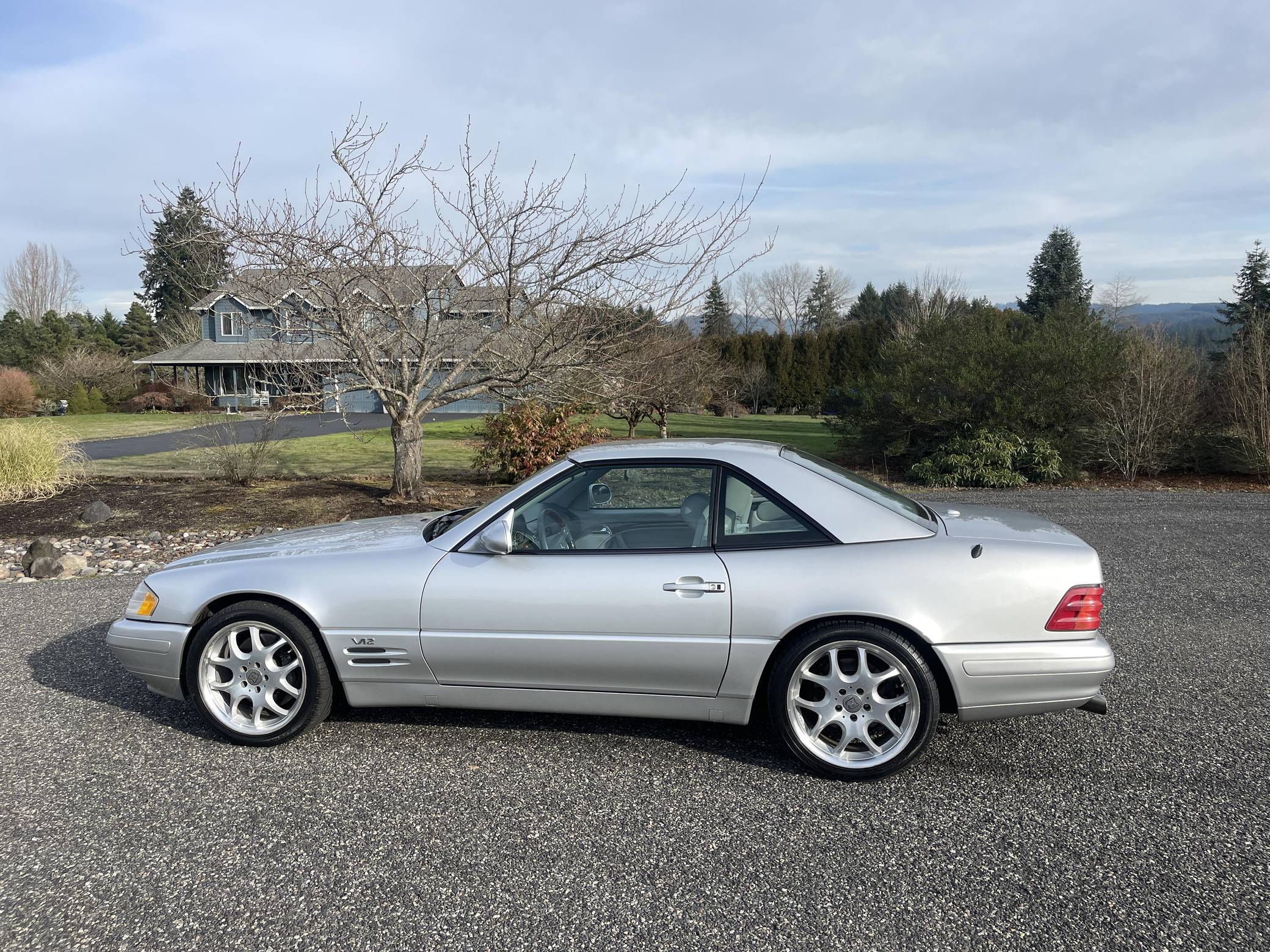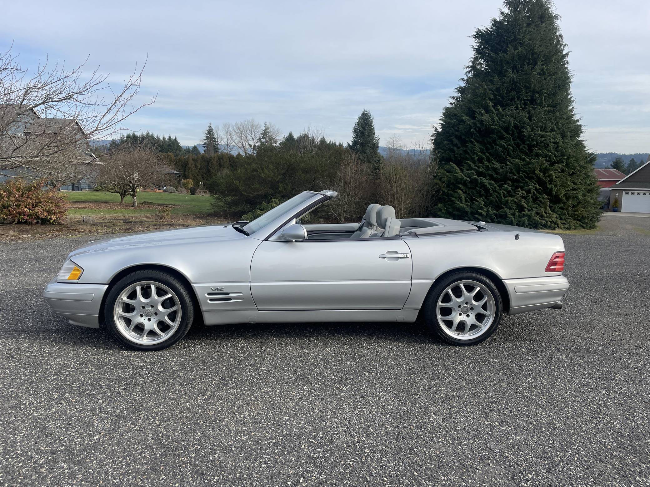 THIS… is a 2000 Mercedes-Benz SL600, finished in Brilliant Silver Metallic with a black soft top, a body-colored hardtop, and a gray interior. It also lists registrations in Oregon from new. Factory equipment includes self-leveling suspension with Adaptive Damping System (ADS), xenon headlights, leather upholstery, wood interior trim, heated and power-adjustable seats, automatic climate control, and a Bose sound system. Modifications reported by the seller are limited to a set of 18-inch Brabus wheels, a Brabus muffler, and a Kenwood head unit. Offered from 1990 to 2002, the "R129" SL-Class has developed a reputation as a luxury-focused but well-performing convertible with timeless Mercedes-Benz styling and quality. At a cost of roughly $120,000 in its time, the V12-powered SL600 sat at the top of the range and came standard with cutting-edge features such as an adaptive suspension system. Power comes from an "M120" 6. 0-liter V12, rated at 389 horsepower and 420 lb-ft of torque. Output is set to the rear wheels via a 5-speed automatic transmission.