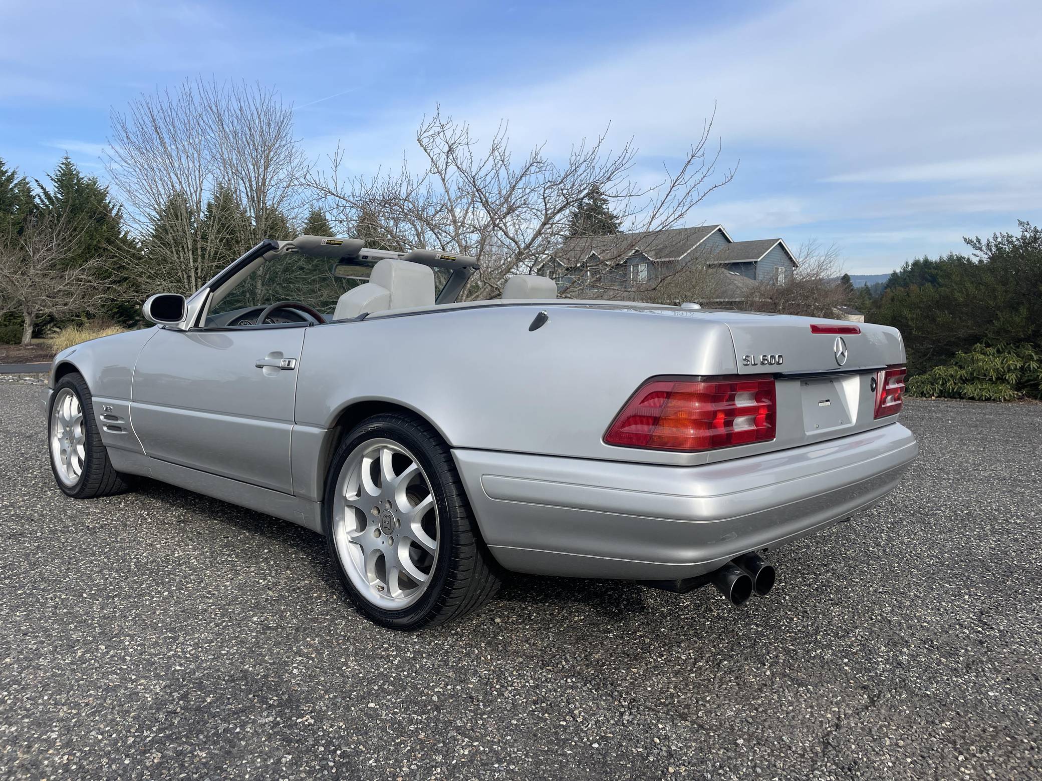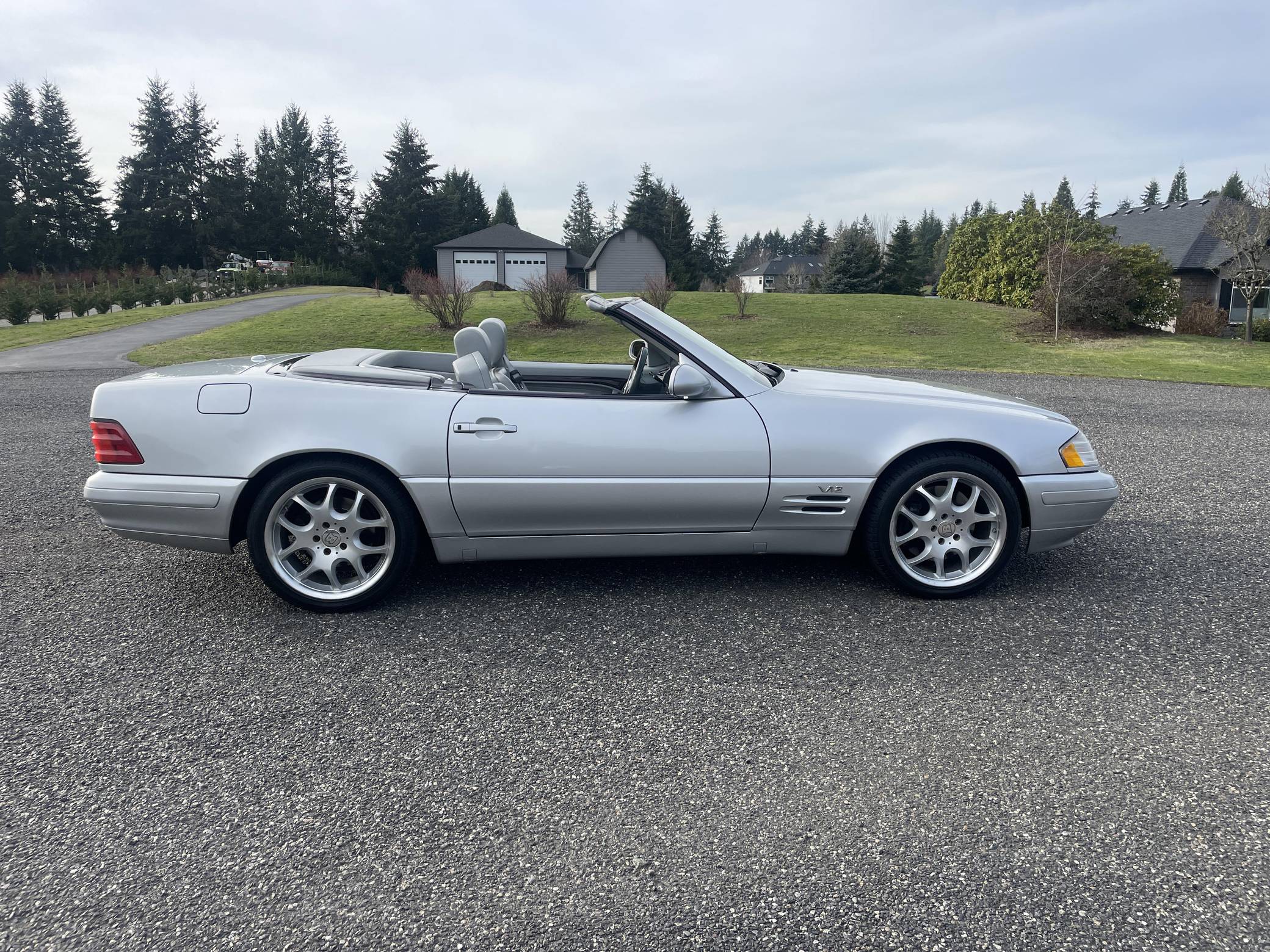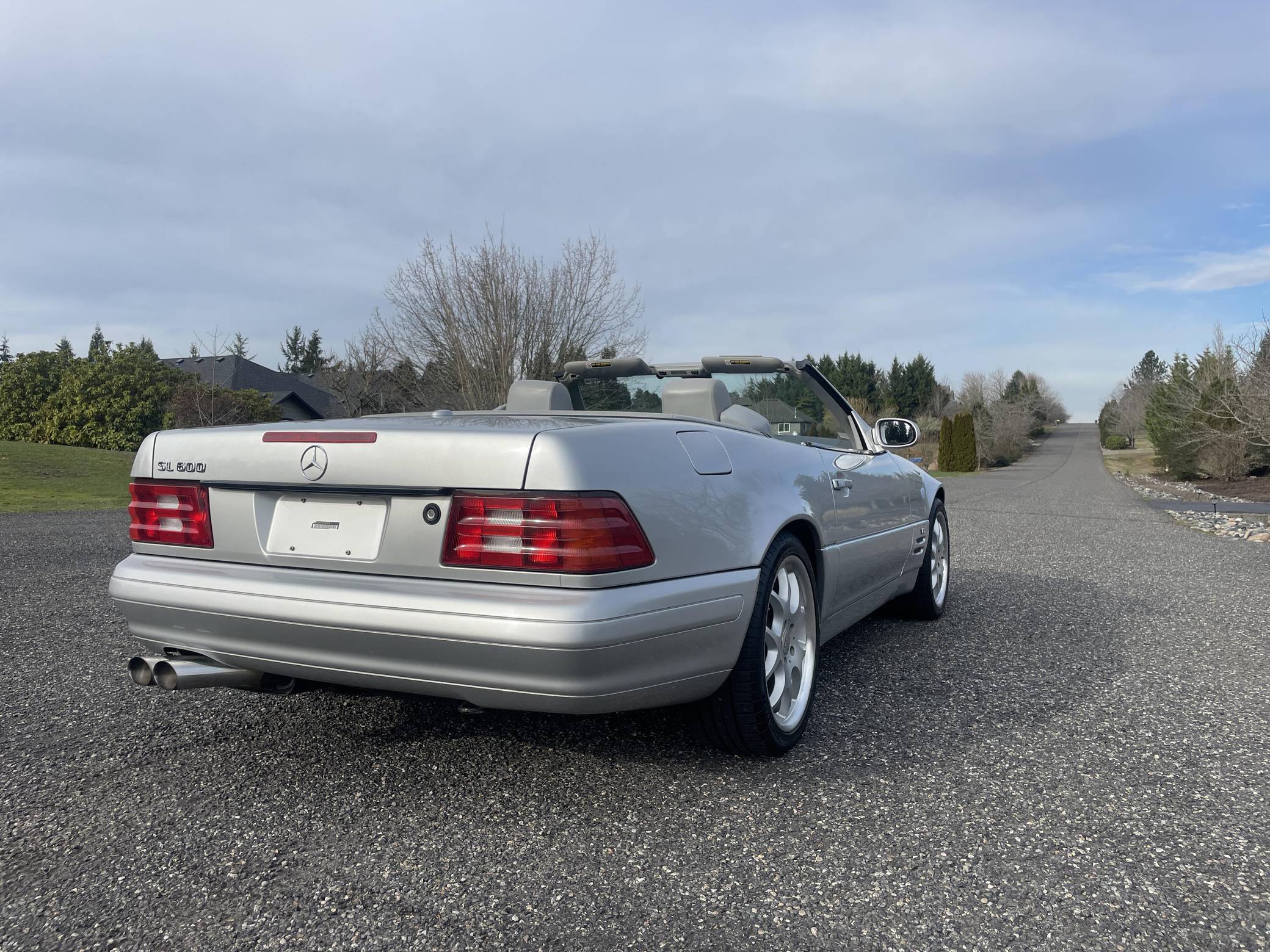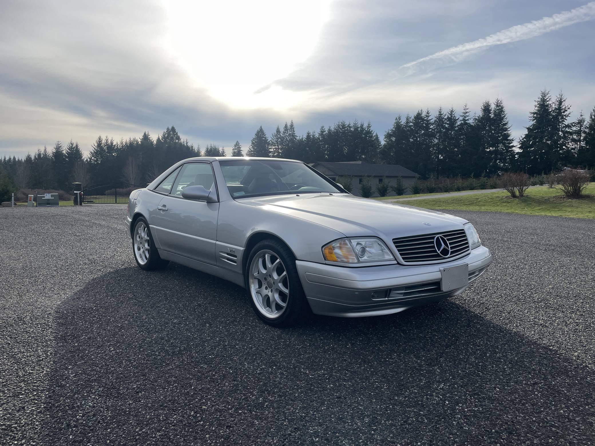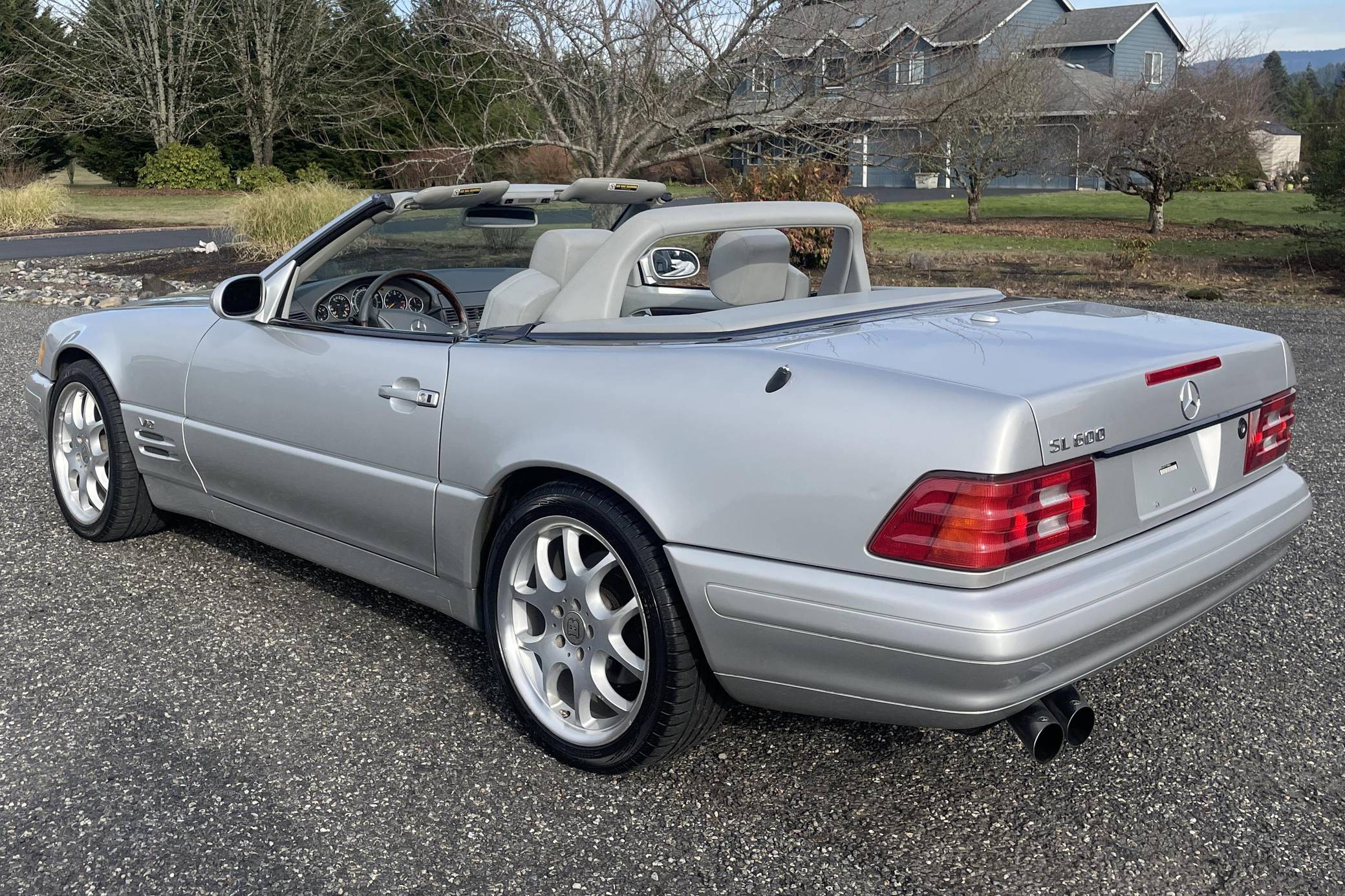 THIS… is a 2000 Mercedes-Benz SL600, finished in Brilliant Silver Metallic with a black soft top, a body-colored hardtop, and a gray interior. It also lists registrations in Oregon from new. Factory equipment includes self-leveling suspension with Adaptive Damping System (ADS), xenon headlights, leather upholstery, wood interior trim, heated and power-adjustable seats, automatic climate control, and a Bose sound system. Modifications reported by the seller are limited to a set of 18-inch Brabus wheels, a Brabus muffler, and a Kenwood head unit. Offered from 1990 to 2002, the "R129" SL-Class has developed a reputation as a luxury-focused but well-performing convertible with timeless Mercedes-Benz styling and quality. At a cost of roughly $120,000 in its time, the V12-powered SL600 sat at the top of the range and came standard with cutting-edge features such as an adaptive suspension system. Power comes from an "M120" 6. 0-liter V12, rated at 389 horsepower and 420 lb-ft of torque. Output is set to the rear wheels via a 5-speed automatic transmission.