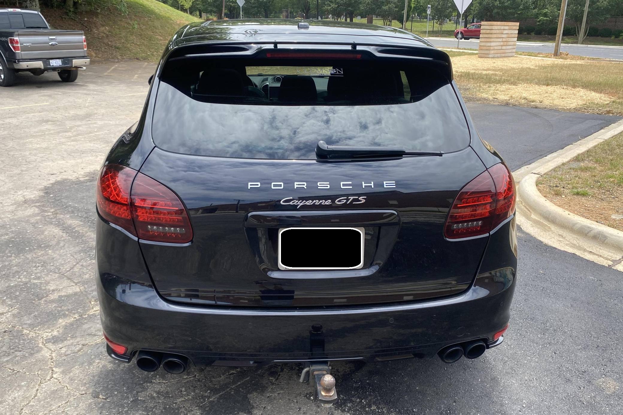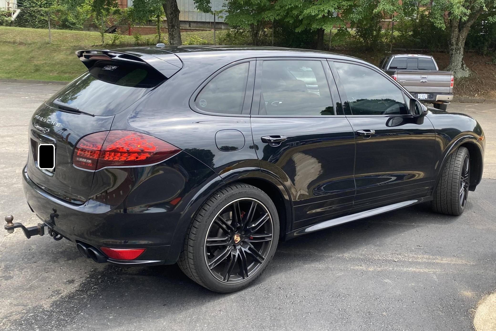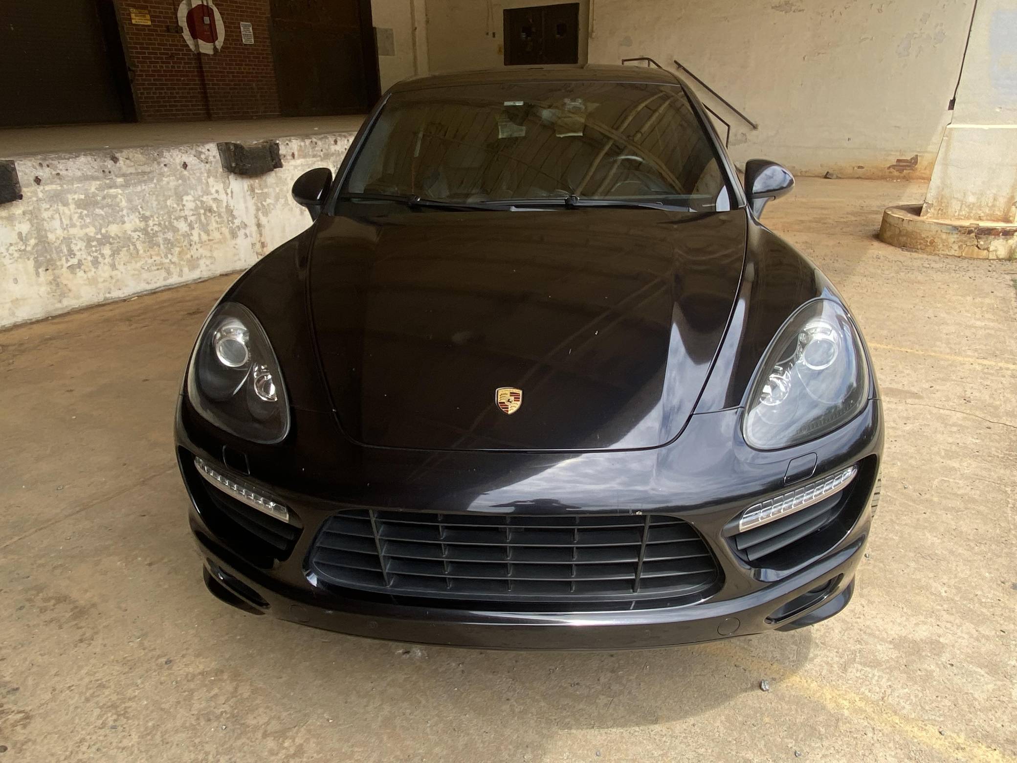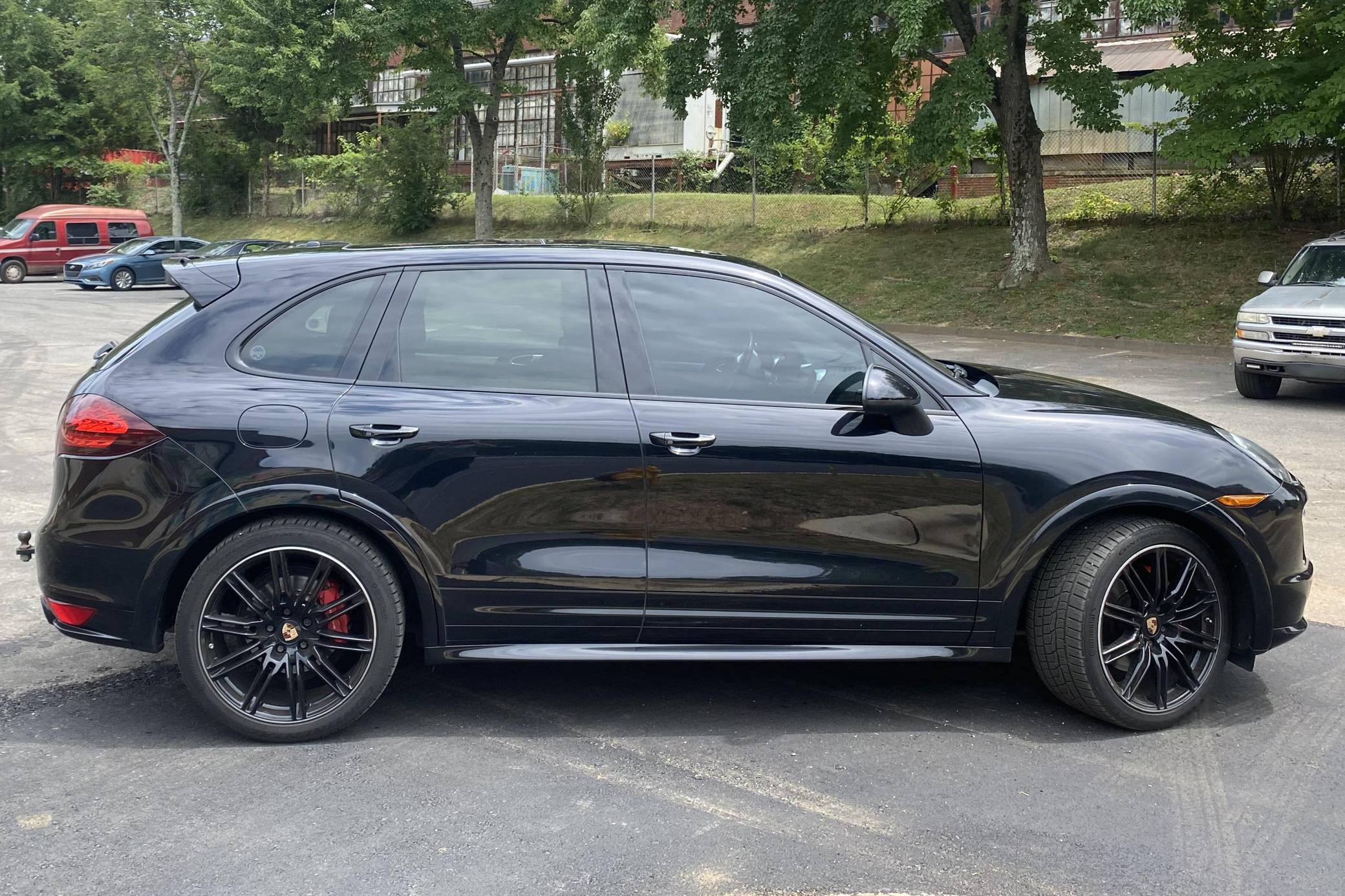 2013 Porsche Cayenne GTS, finished in Jet Black Metallic with a black interior with Carmine Red accents. Factory equipment includes an air suspension system with Porsche Active Suspension Management (PASM), 21-inch black Cayenne Sport Edition wheels, 14-way power-adjustable and heated front seats, Carmine Red interior accents, a Bose sound system, front and rear park assist, lane change assist, and more as detailed below. Modifications are limited to the installation of 3M paint protection film on some surfaces and tinted windows. 2011 was the first model year for the second-generation Porsche Cayenne "958," which had sportier styling, a more luxurious interior, and less weight than its predecessor, despite slightly larger dimensions. The Cayenne GTS features several upgrades over the standard Cayenne S including 20 additional horsepower, a sport exhaust system, and 21-inch wheels. GTS visual enhancements include the SportDesign package with side skirts and high-gloss black exterior trim. Power for this Cayenne GTS comes from a 4. 8-liter V8 engine, rated at 420 horsepower and 380 lb-ft of torque. Output is sent to all four wheels through an 8-speed automatic transmission.