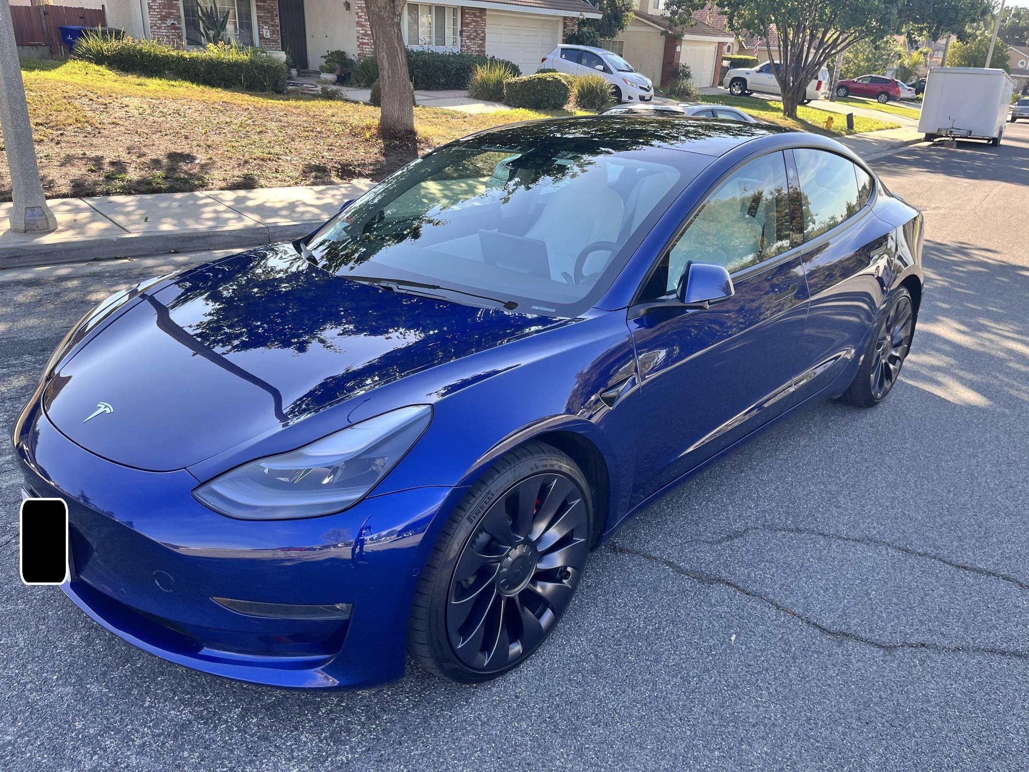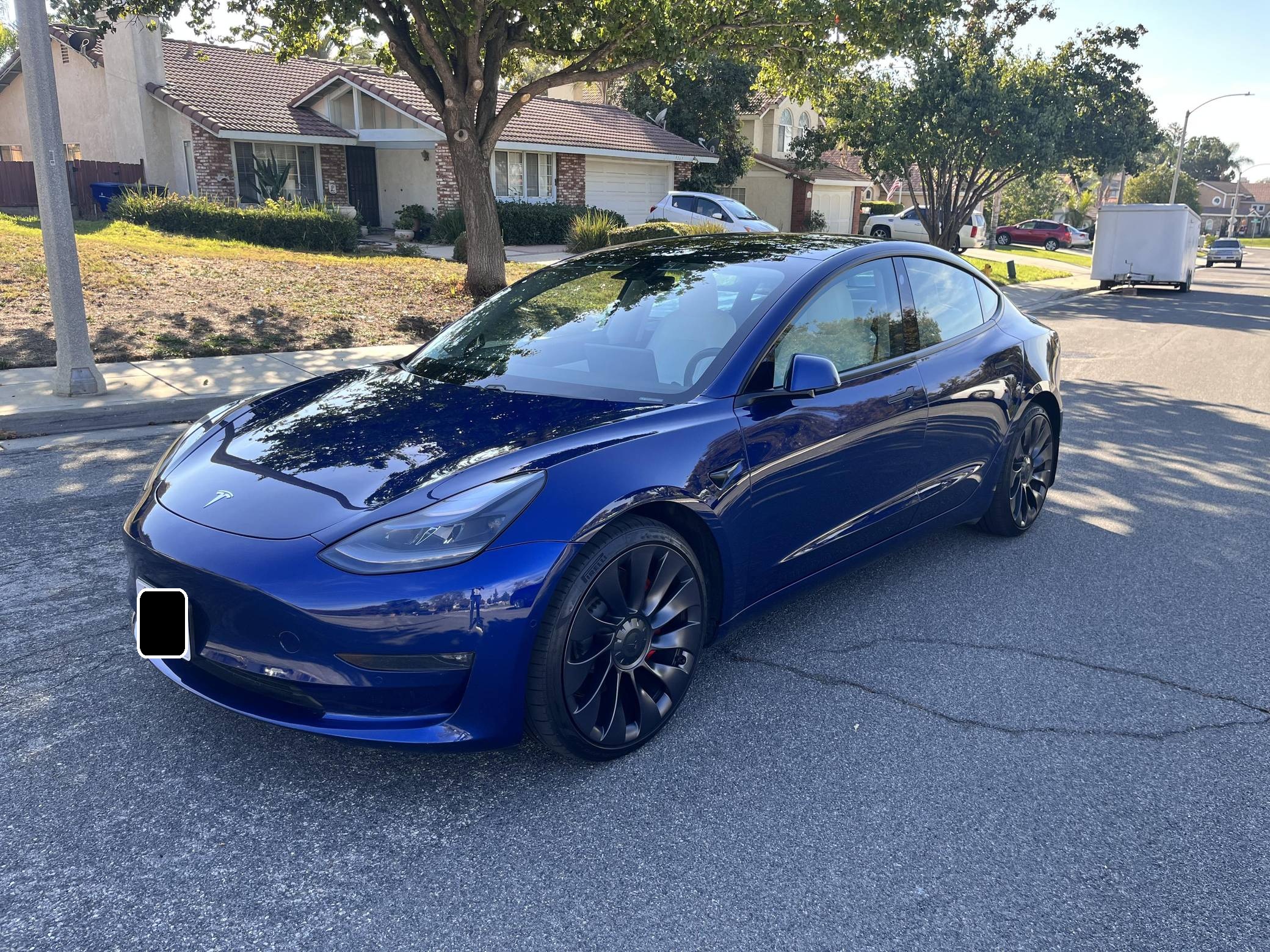 THIS… is a 2021 Tesla Model 3 Performance, finished in Deep Blue Metallic with a white interior. Factory equipment includes the Premium Interior Package, 20-inch Überturbine wheels, performance brakes, a carbon fiber rear spoiler, Tesla's Autopilot driver assistance system, and more as listed below. The seller reports no modifications. Positioned as Tesla's entry-level car, the Model 3 was celebrated as a premium EV with a usable range and respectable performance, all at a reasonably attainable price. It's still available today, and it has gone through several evolutions (including many software updates) since its introduction. Power comes from a pair of electric motors that draw electricity from an 82-kilowatt-hour lithium-ion battery pack to zap the four wheels with about 470 horsepower, according to third-party estimates. This Model 3's maximum driving range was rated at 315 miles in 2021 by the EPA.