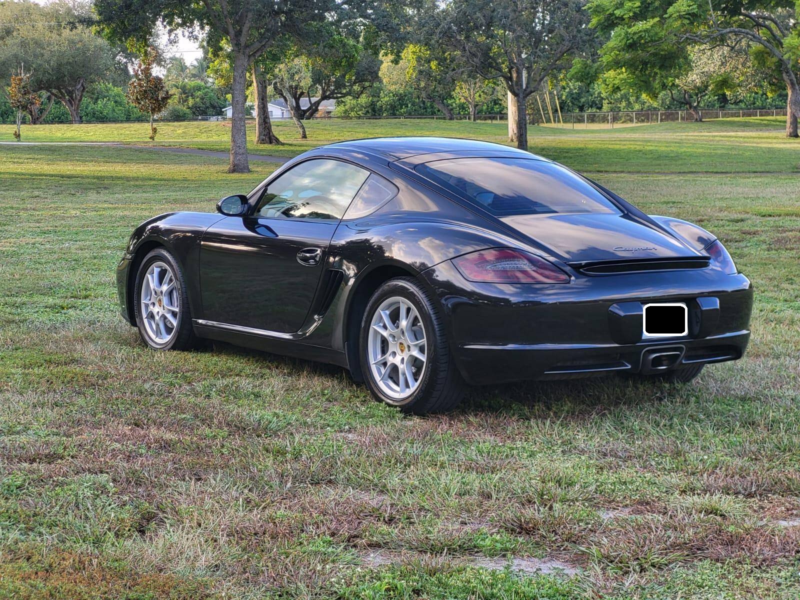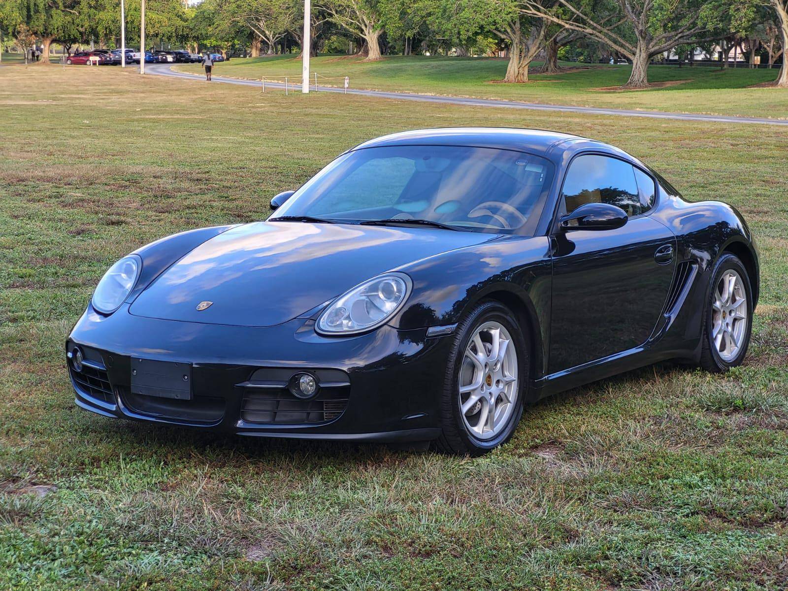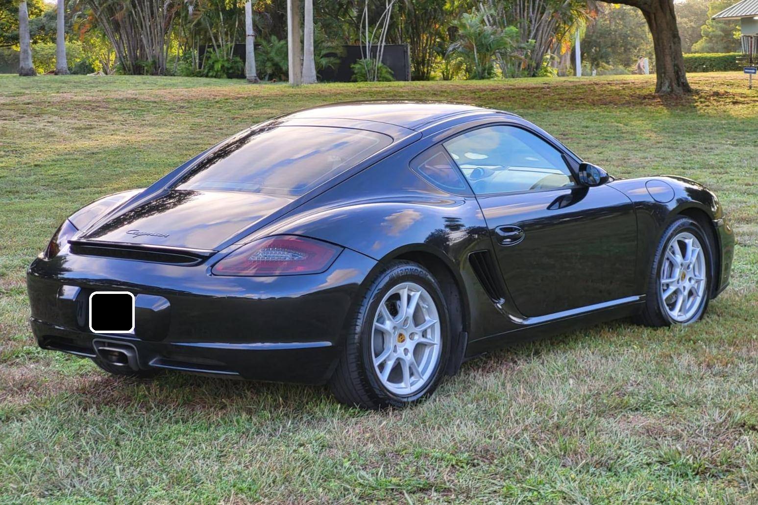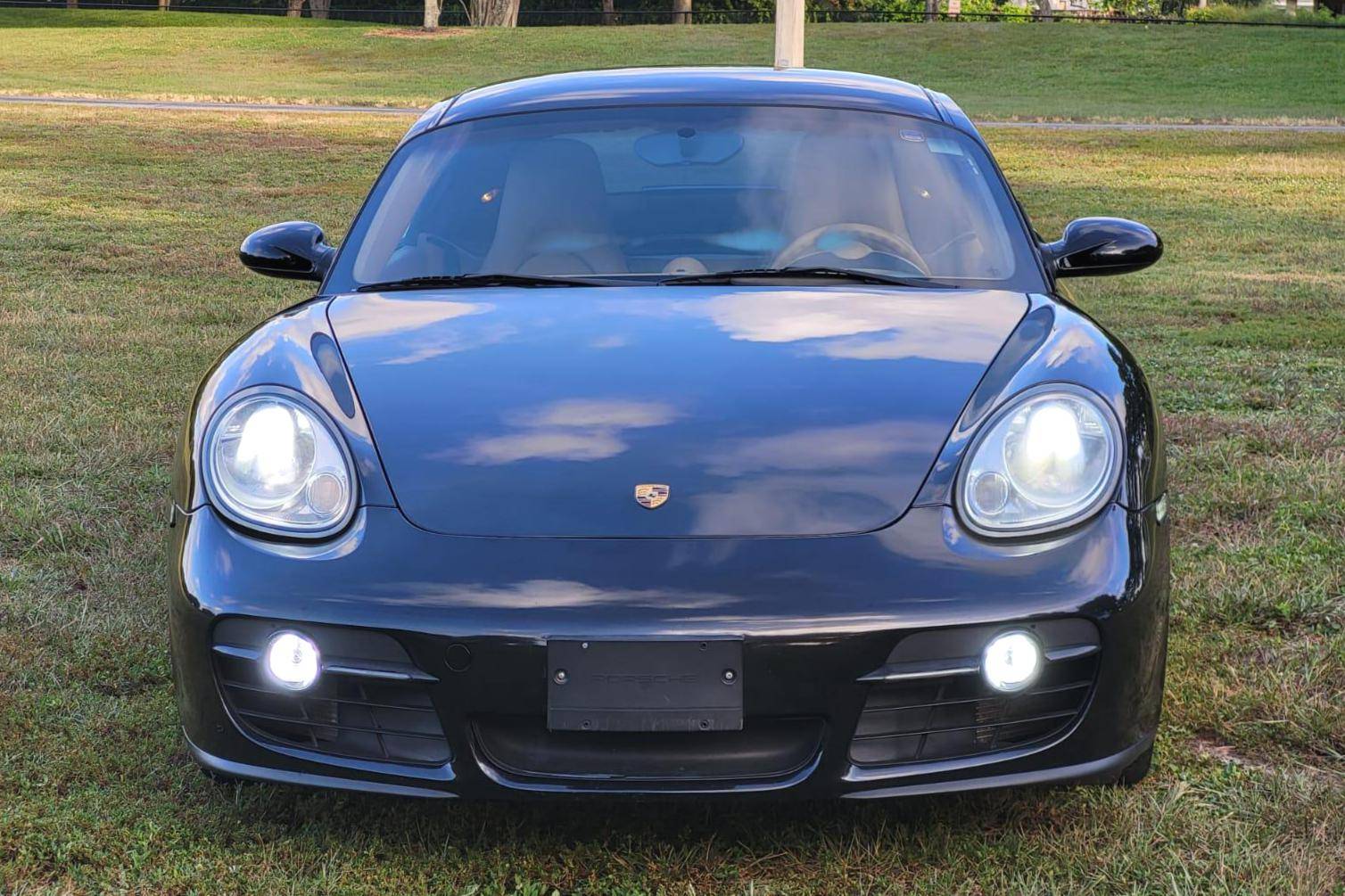 2007 Porsche Cayman, finished in Basalt Black Metallic with a Sand Beige interior. This Cayman features the desirable 5-speed manual transmission. A build sheet is provided in the photo gallery, and a partial list of notable equipment includes the Sport Chrono Package, the Sound Package Plus, 17-inch alloy wheels, 4-wheel cross-drilled disc brakes, a power-retractable rear spoiler, leather upholstery, power-adjustable heated sport seats, and automatic climate control. Modifications reported by the seller are limited to LED front fog lights and taillights, and tinted rear quarter and rear windows. Porsche introduced the original Cayman as the Boxster's long-awaited coupe counterpart for the 2006 model year. Called 987 internally, it was more than merely a Boxster with a fixed top and a hatch, and about 20% of the parts used to build it were new. Some enthusiasts placed the Cayman's chassis above the 911 in the Porsche pecking order because it was nimble, quick, and extremely well-balanced. Power comes from a 2. 7-liter flat-6 engine, rated at 245 horsepower and 201 lb-ft of torque. Output is sent to the rear wheels via a 5-speed manual transmission.
