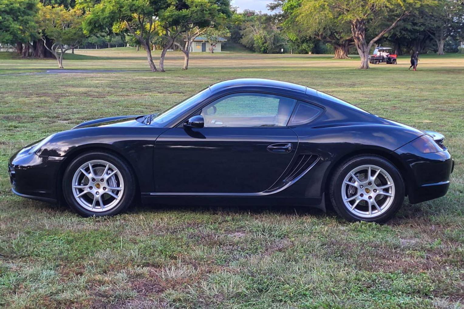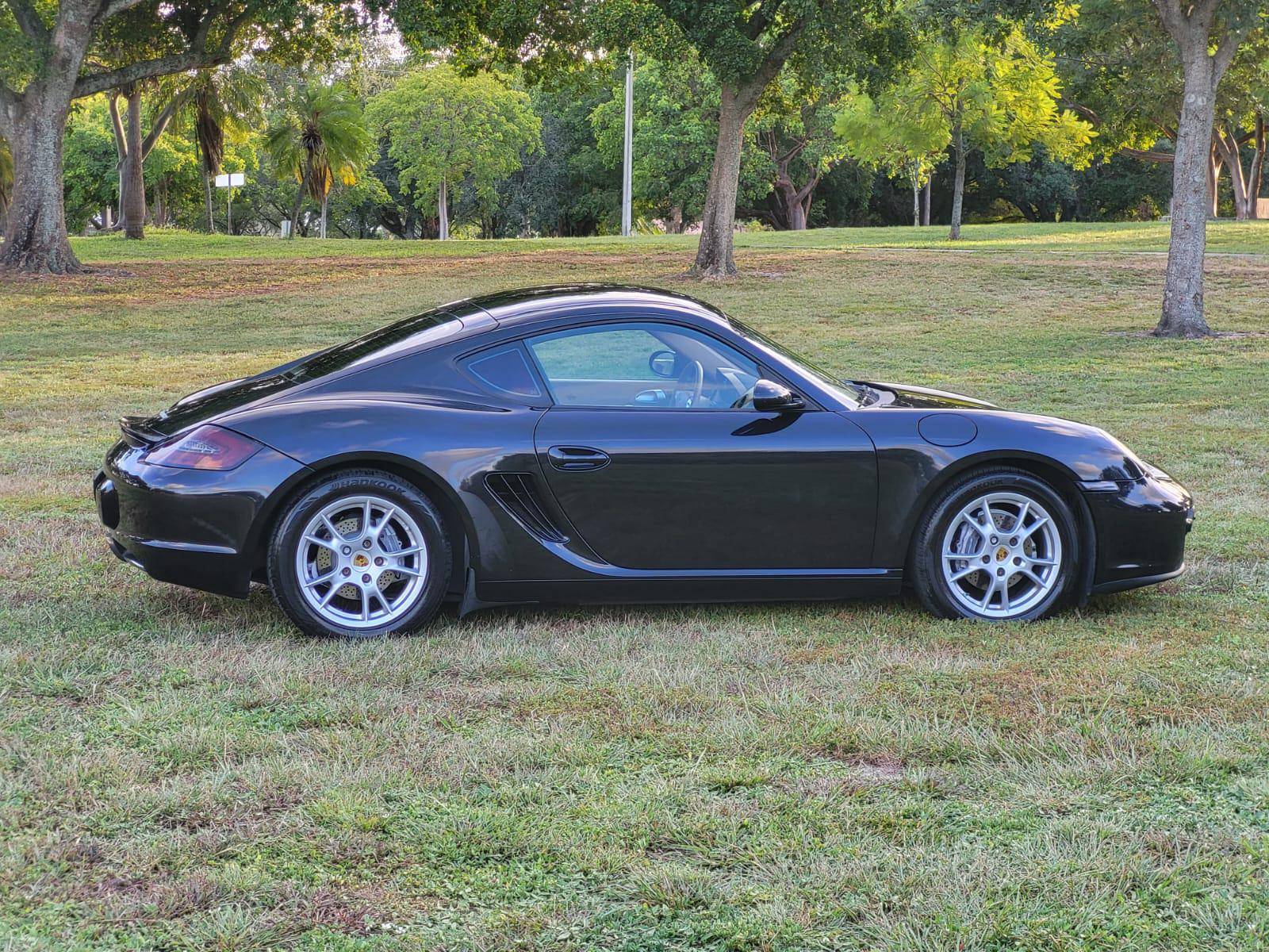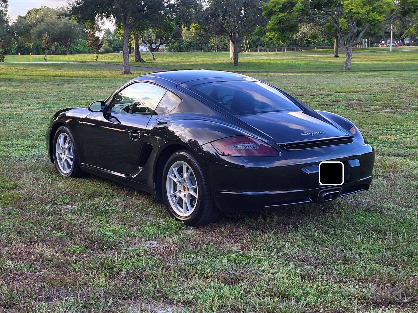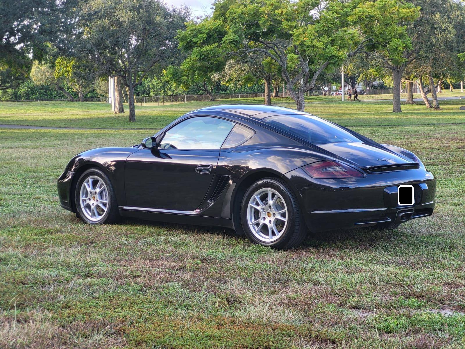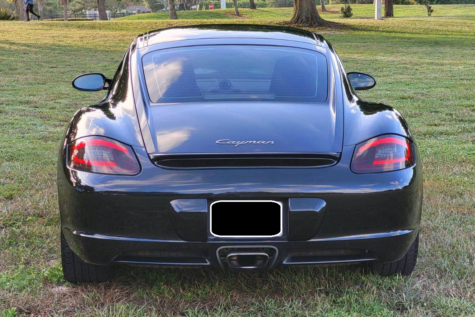 2007 Porsche Cayman, finished in Basalt Black Metallic with a Sand Beige interior. This Cayman features the desirable 5-speed manual transmission. A build sheet is provided in the photo gallery, and a partial list of notable equipment includes the Sport Chrono Package, the Sound Package Plus, 17-inch alloy wheels, 4-wheel cross-drilled disc brakes, a power-retractable rear spoiler, leather upholstery, power-adjustable heated sport seats, and automatic climate control. Modifications reported by the seller are limited to LED front fog lights and taillights, and tinted rear quarter and rear windows. Porsche introduced the original Cayman as the Boxster's long-awaited coupe counterpart for the 2006 model year. Called 987 internally, it was more than merely a Boxster with a fixed top and a hatch, and about 20% of the parts used to build it were new. Some enthusiasts placed the Cayman's chassis above the 911 in the Porsche pecking order because it was nimble, quick, and extremely well-balanced. Power comes from a 2. 7-liter flat-6 engine, rated at 245 horsepower and 201 lb-ft of torque. Output is sent to the rear wheels via a 5-speed manual transmission.
